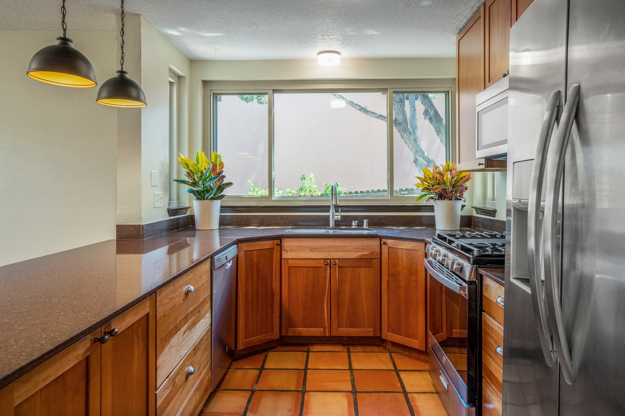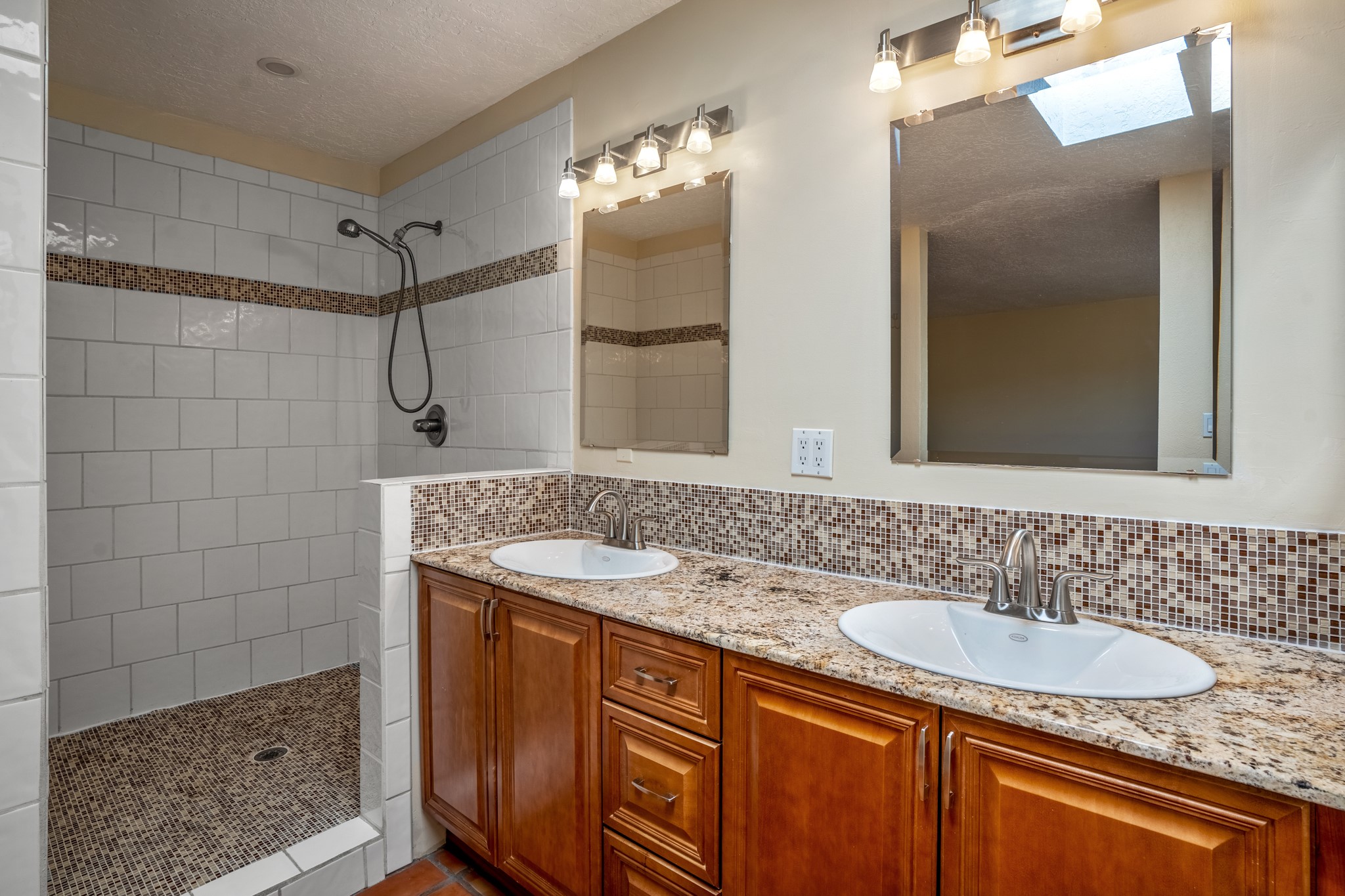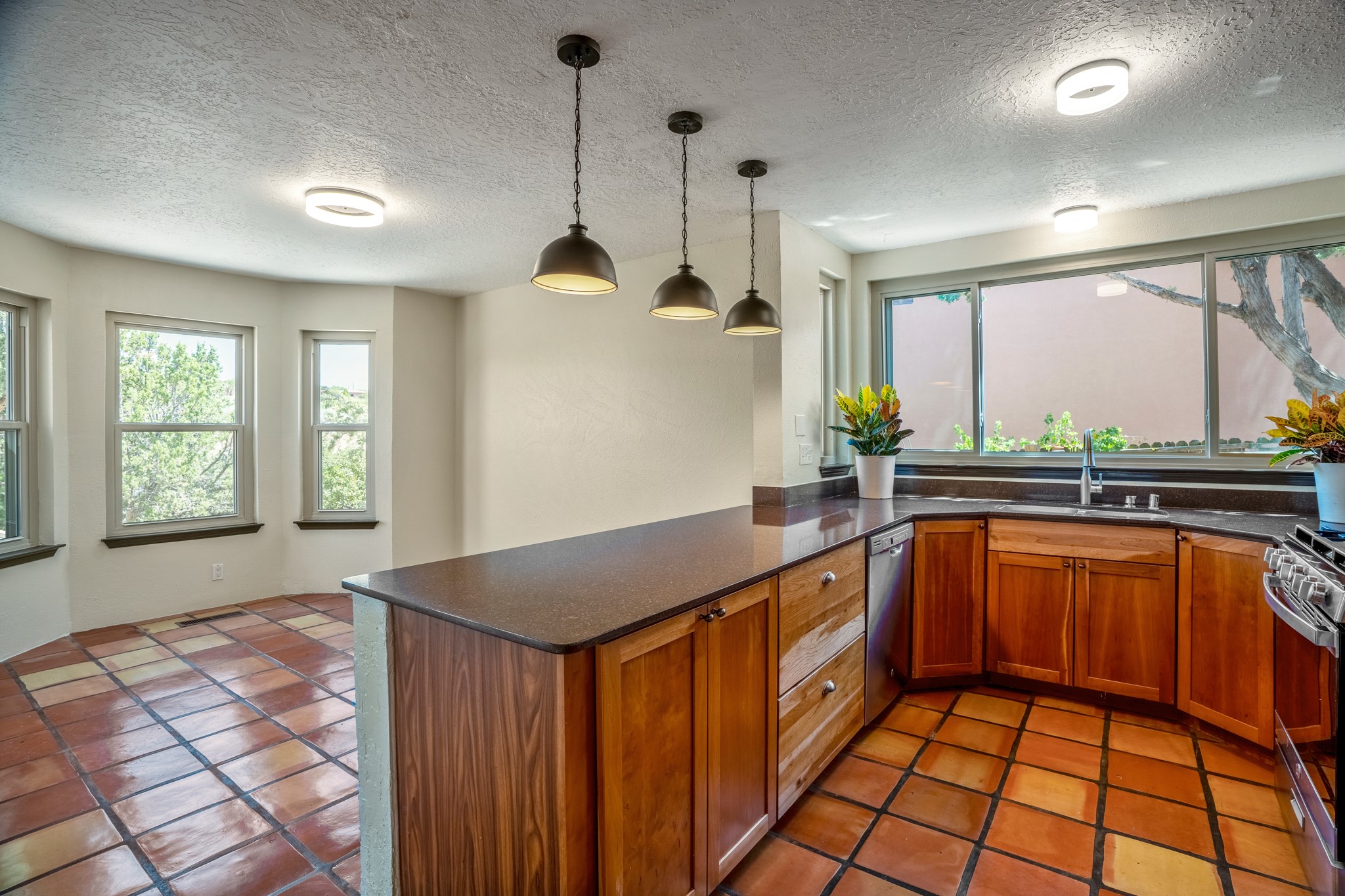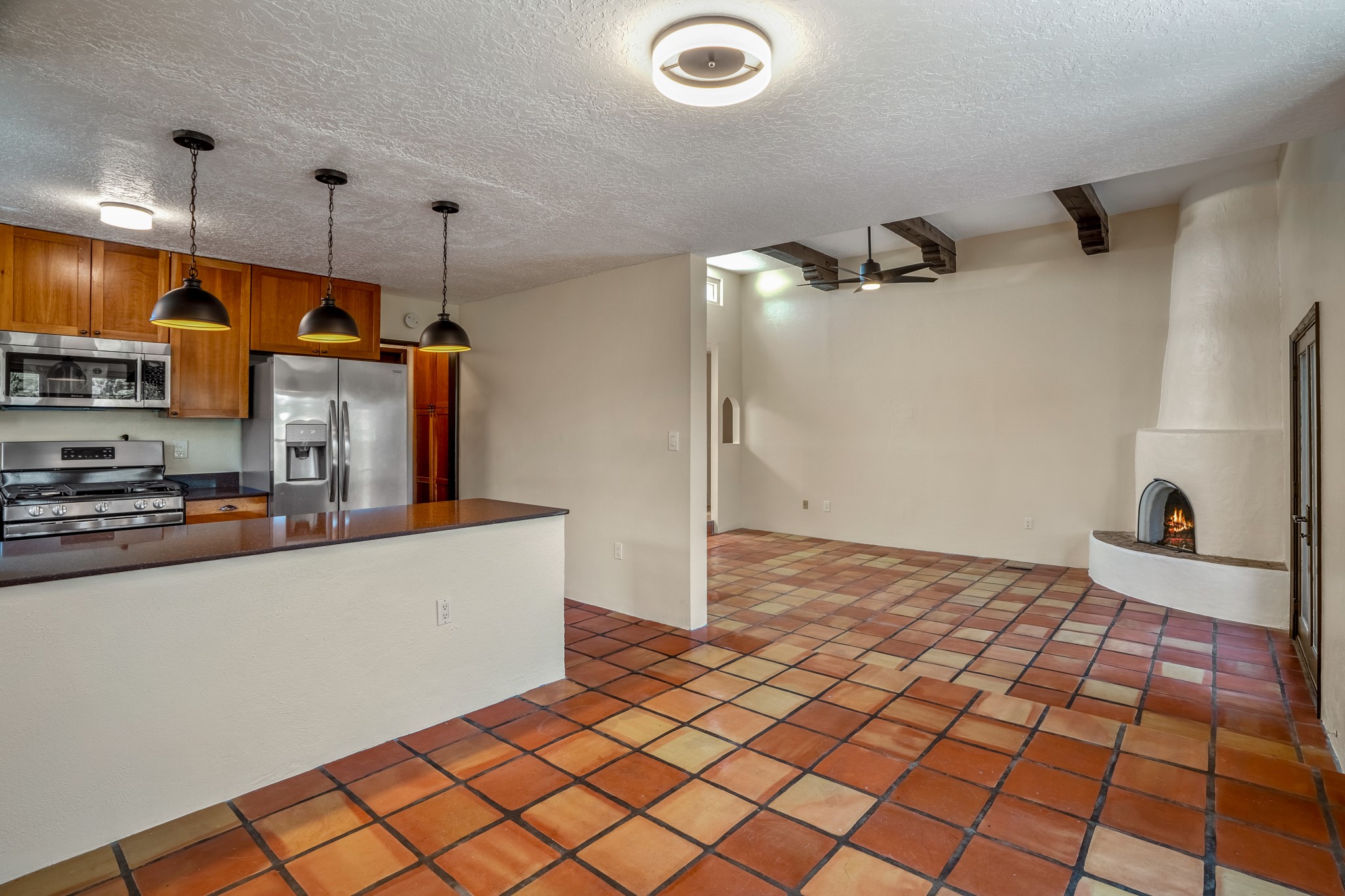 Stylish home located in Candelero Subdivision beautifully updated. Views, Granite Countertops, Saltillo Floors, Formal Dining area, Custom Beams, Kiva Fireplace. All New/Upgraded AC, Garage Door-Keypad & Motor, 12X30 Deck, SS Gas Range, Microwave, Interior/ Exterior Lighting & Fixtures, Paint, 2 Skylights & 11 Windows. HVAC 2021, TPO Roof & Water Heater 2022. Primary suite offers dual sinks, abundant natural lighting, & a generous walk-in closet w/builtins.New landscaping & drip system, a expansive, exceptional private outdoor space for relaxation, recreation, entertaining, ample storage, No HOA, & a 2 car garage finished. Unbeatable location to Rail Runner Station, Historic Plaza, Parks/Trails, Hiking-Biking, Restaurants, Shopping,Hospitals, Schools, I-25, Airport & Albuquerque.