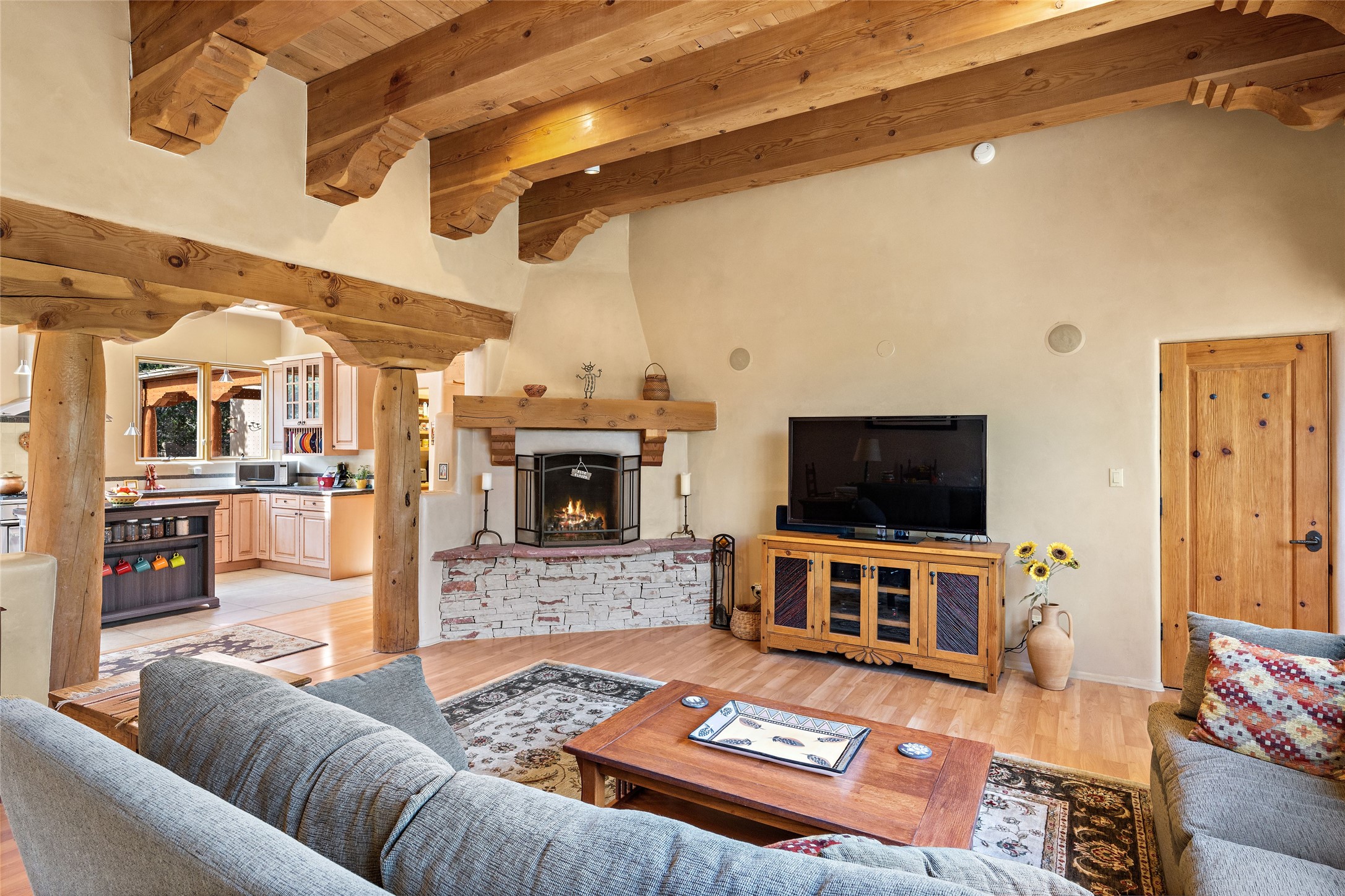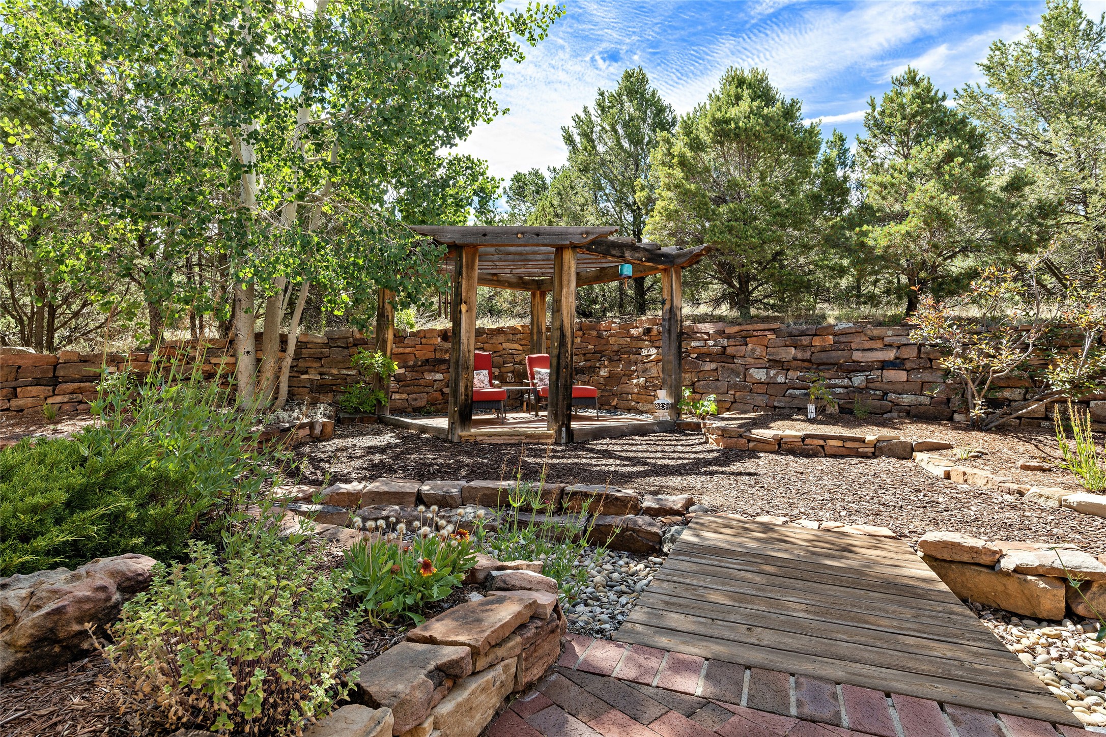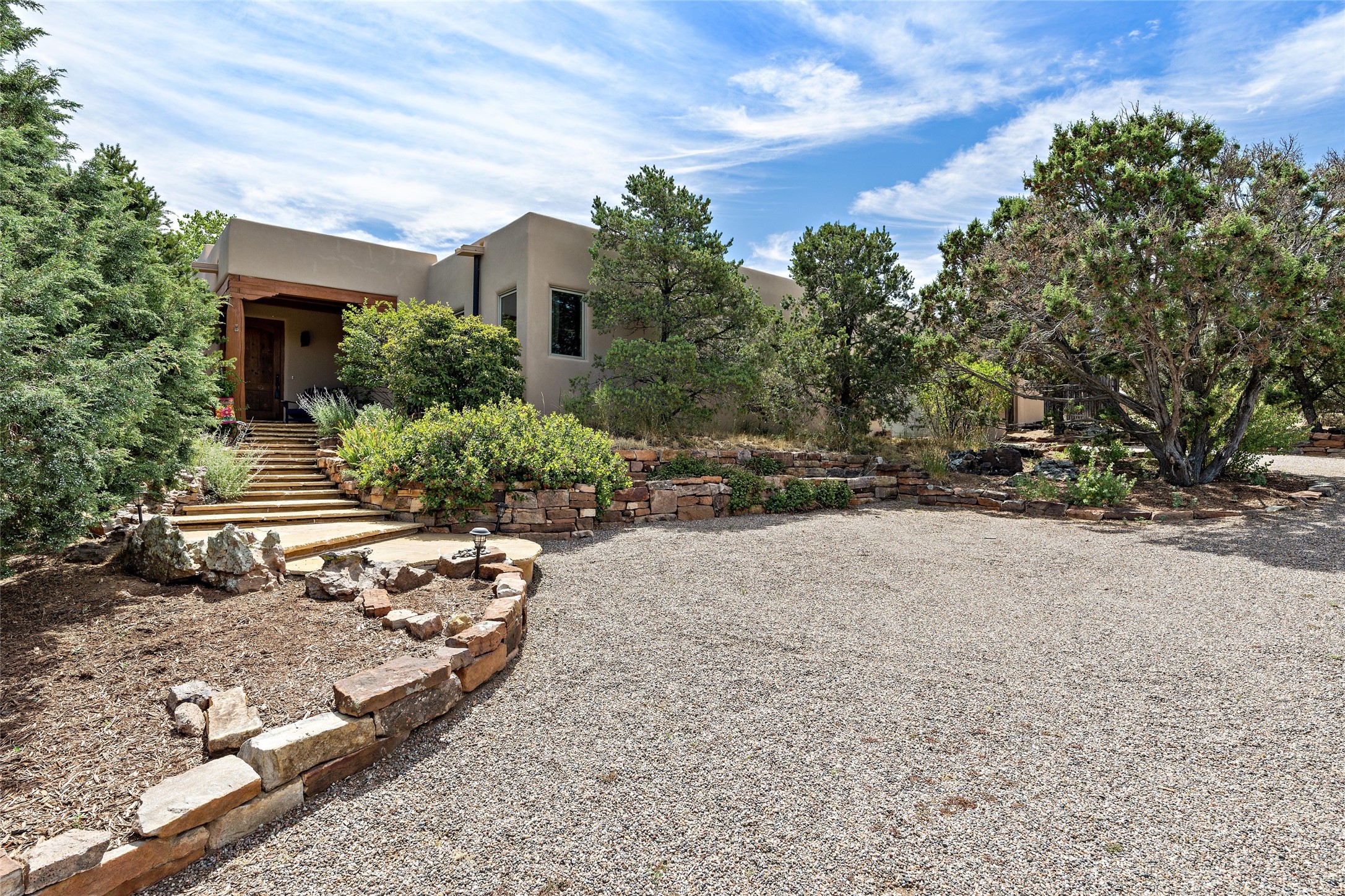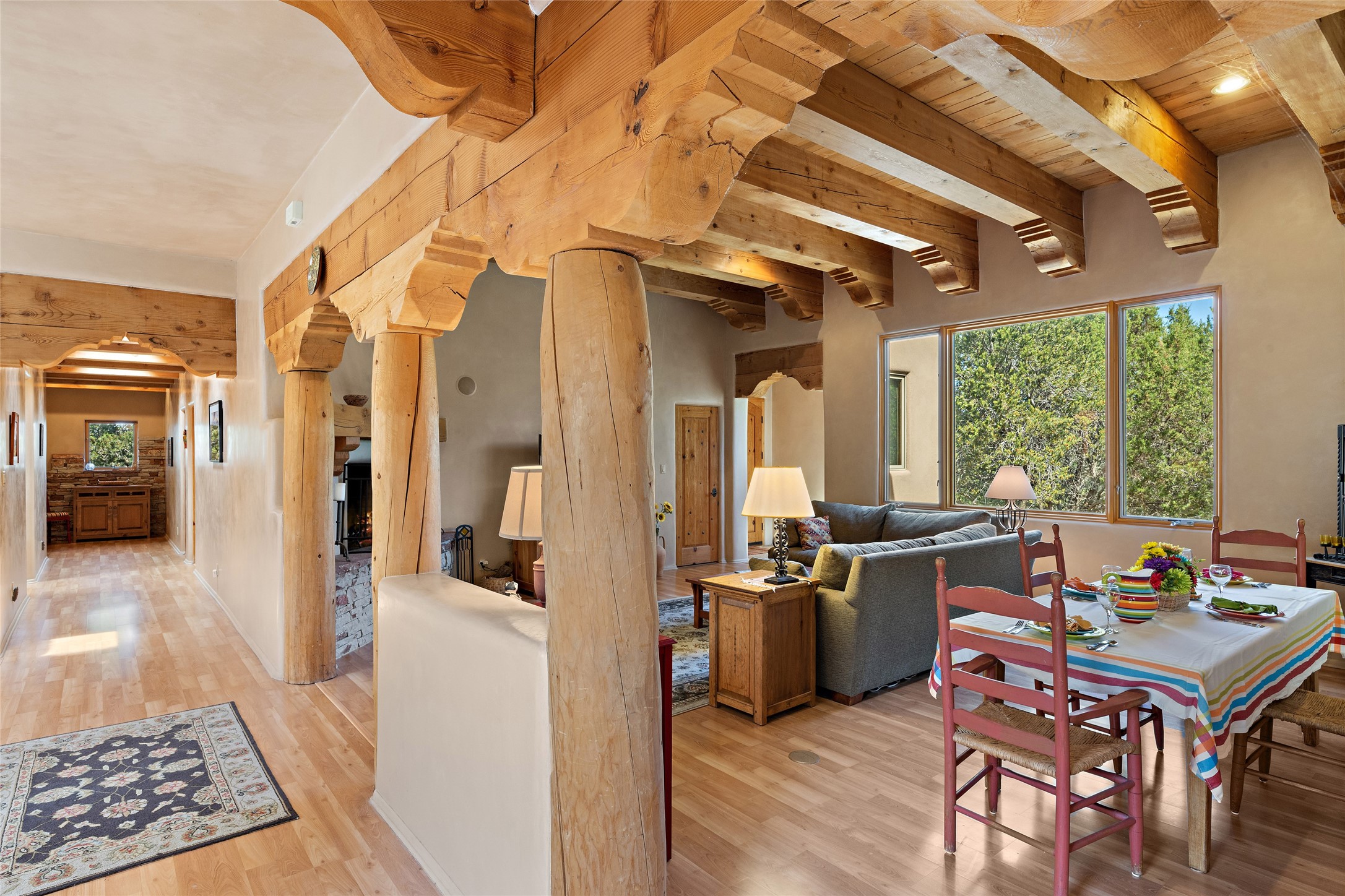 Located in the popular Alteza Estates neighborhood, this stunning home sits on 2.5+ nicely wooded acres and features an open floorplan combining living, dining and kitchen - ideal for entertaining. Dramatic beams and corbels in the majority of the home and hand-troweled plaster in the public areas. Remodeled kitchen has deep soft close drawers, stainless appliances, generous pantry with wine fridge and an island with storage and a granite countertop. Two woodburning fireplaces to enjoy - one in the living room and the other in the primary bedroom. Primary bath has 70-gallon soaking tub, large separate shower and double sinks. Very nice bedroom separation. Pretty gallery hallway to display family photos or artwork. Lush and established landscaping provide a private sanctuary complete with a night sky ramada to check out the milky way nearly every night. Fix My Roof complete silicone coating in 2019. Ten-year transferrable warranty. NO CARPET, NO STEPS. Finished 2-car attached garage. Close to shopping, hiking and parks. All this and on a paved road too! Four minisplits for heat and air conditioning are scheduled to be installed by October 4. Domestic plumbing supply is copper.