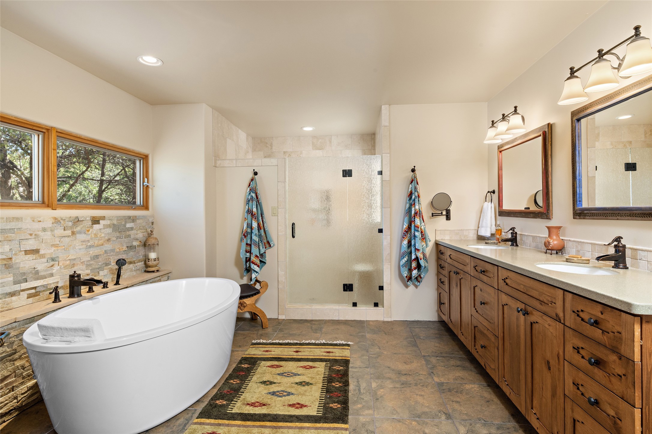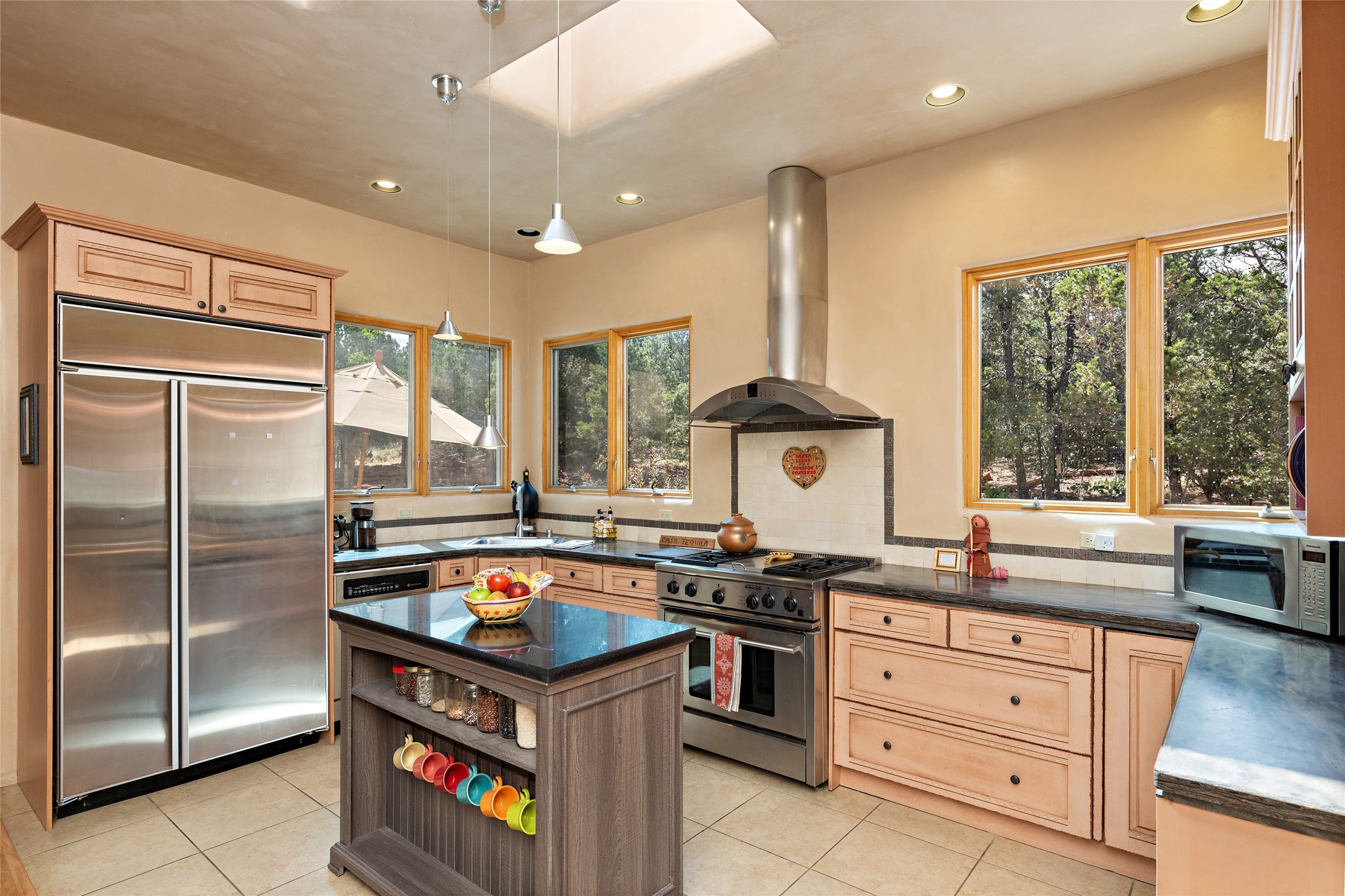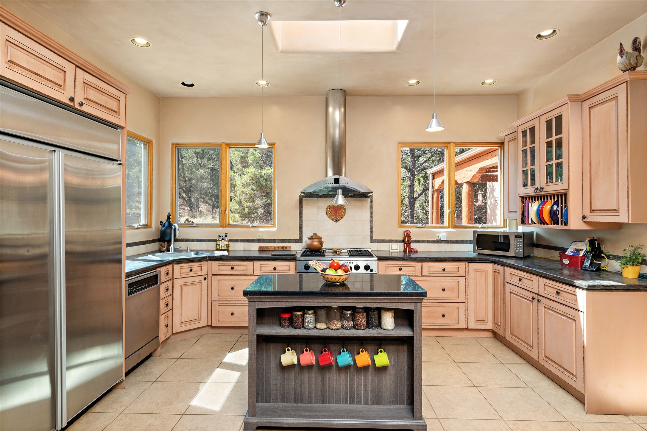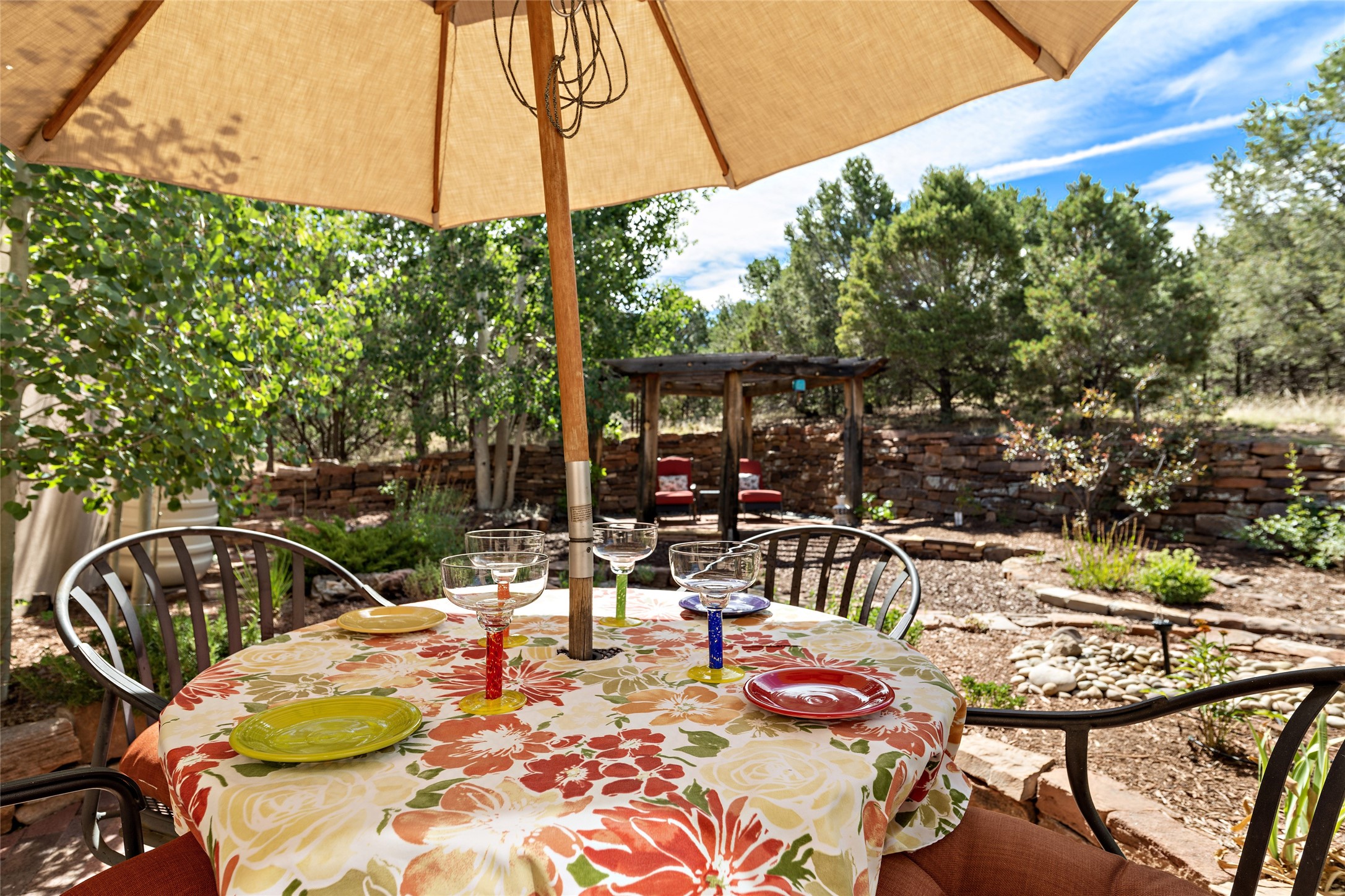 Located in the popular Alteza Estates neighborhood, this stunning home sits on 2.5+ nicely wooded acres and features an open floorplan combining living, dining and kitchen - ideal for entertaining. Dramatic beams and corbels in the majority of the home and hand-troweled plaster in the public areas. Remodeled kitchen has deep soft close drawers, stainless appliances, generous pantry with wine fridge and an island with storage and a granite countertop. Two woodburning fireplaces to enjoy - one in the living room and the other in the primary bedroom. Primary bath has 70-gallon soaking tub, large separate shower and double sinks. Very nice bedroom separation. Pretty gallery hallway to display family photos or artwork. Lush and established landscaping provide a private sanctuary complete with a night sky ramada to check out the milky way nearly every night. Fix My Roof complete silicone coating in 2019. Ten-year transferrable warranty. NO CARPET, NO STEPS. Finished 2-car attached garage. Close to shopping, hiking and parks. All this and on a paved road too! Four minisplits for heat and air conditioning are scheduled to be installed by October 4. Domestic plumbing supply is copper.