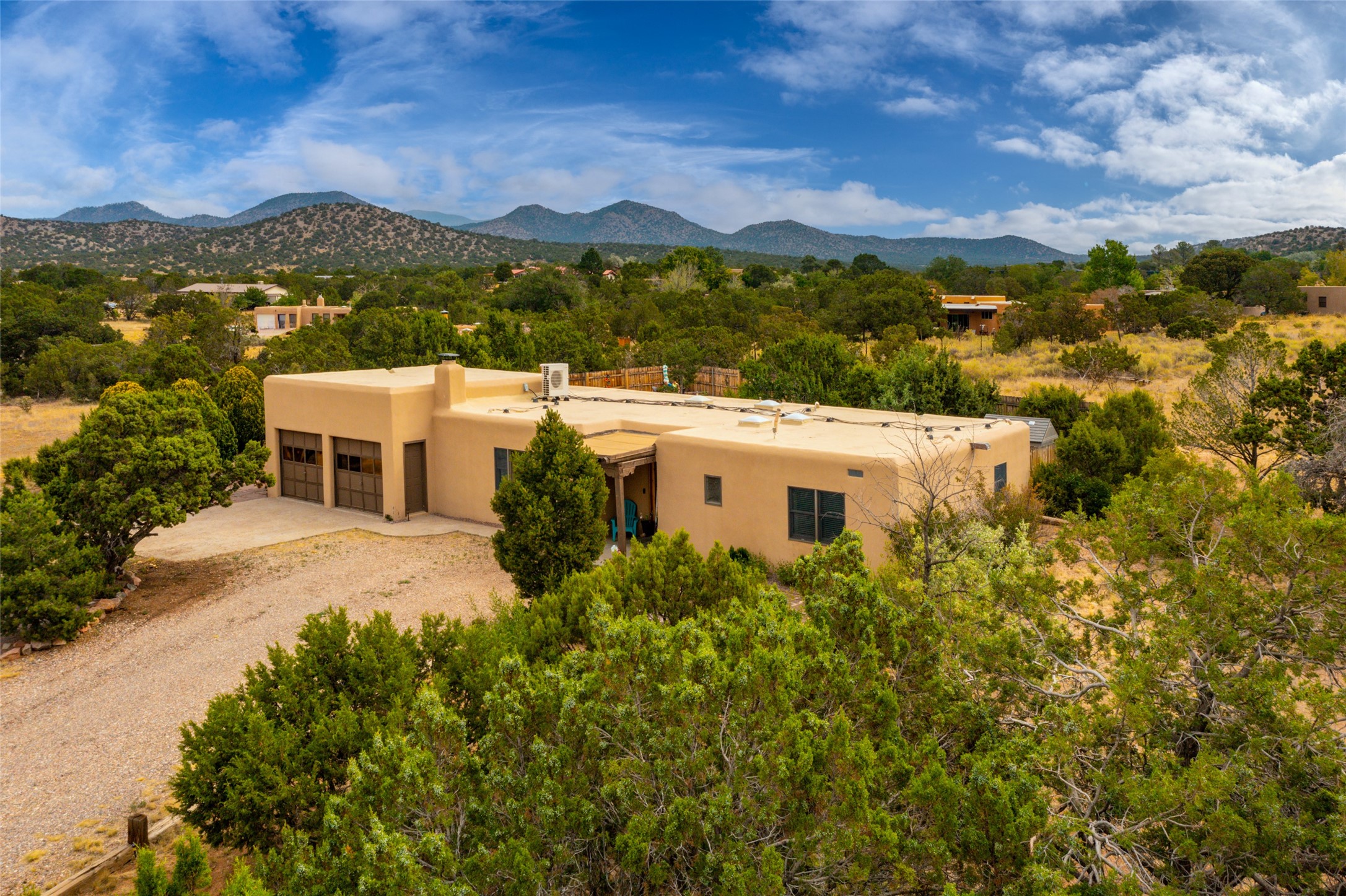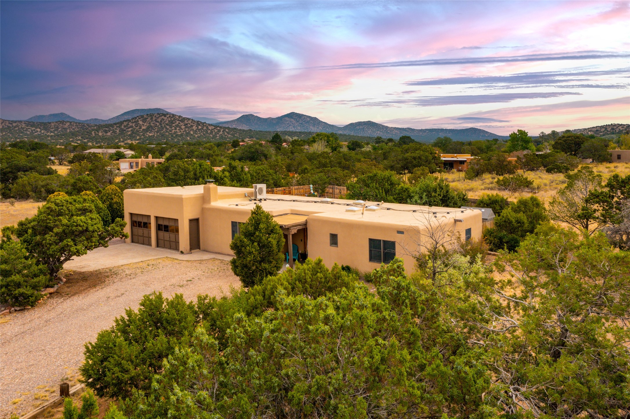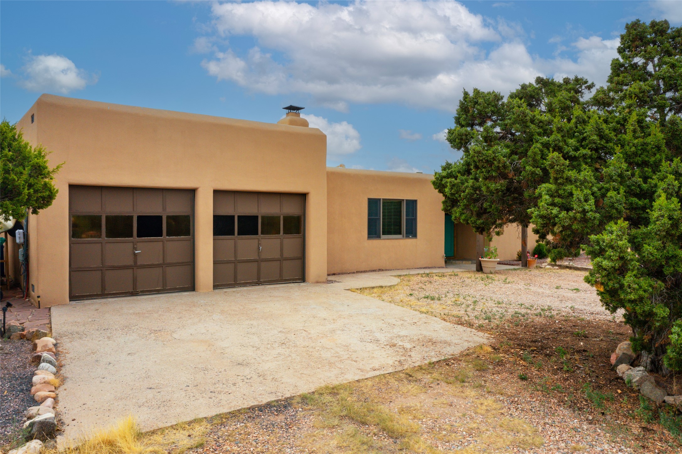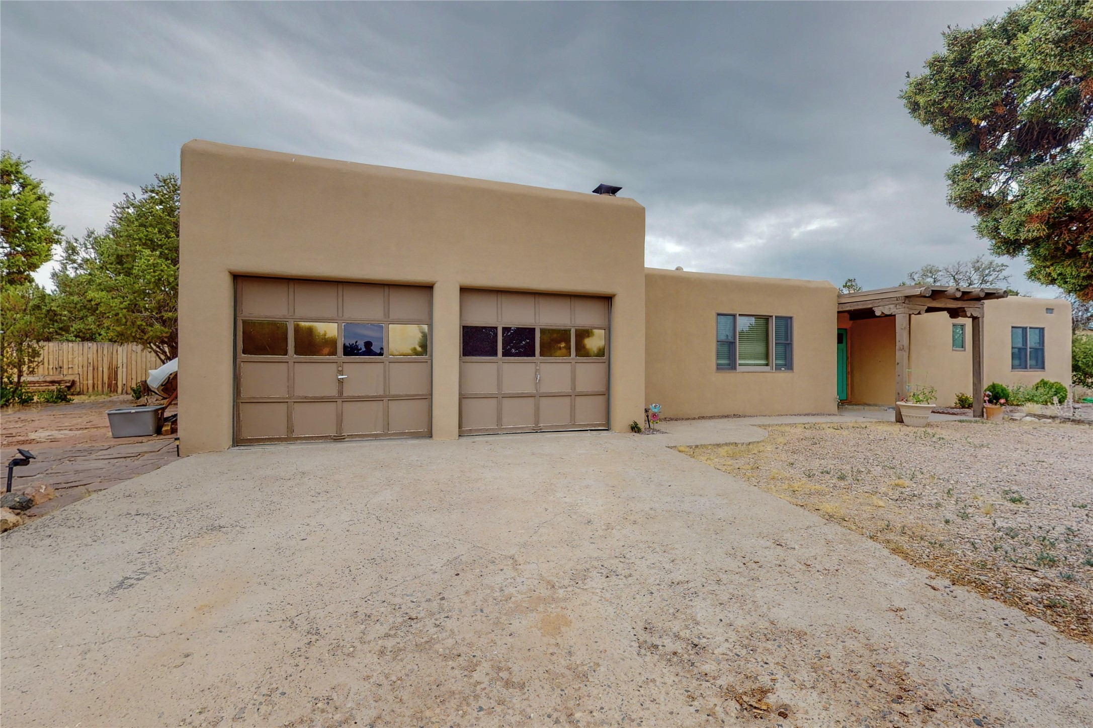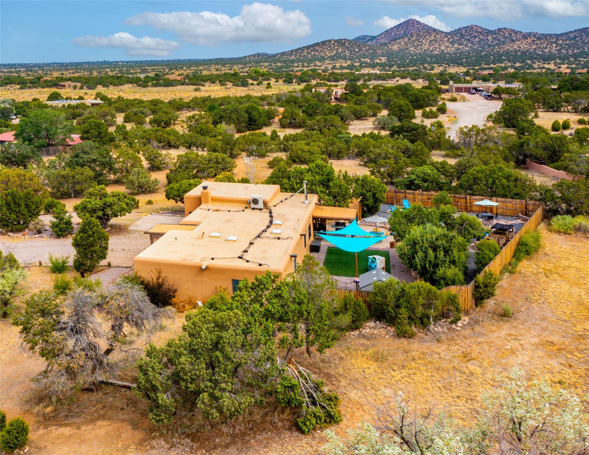 Great opportunity to own a 3-bedroom + Den/office, 2-bath, 2-car garage home on a 1-acre private treed lot in Eldorado on a quiet road. Recently remodeled with luxury vinyl flooring in living areas, new bathrooms, new wood stove, new kitchen appliances, newly installed fans, and freshly painted. Relax in the beautifully landscaped fenced-in backyard observe the sunset over the Jemez mountain range and then gaze up to the dazzling star-filled night sky. Situated in the best location near the first entrance with a quick commute to town, walking distance to Eldorado Community School, community center, pool, tennis courts, playground, and dog park. These features along with 5-mini-split cooling/heating units make this a turnkey home, ready to move into.
