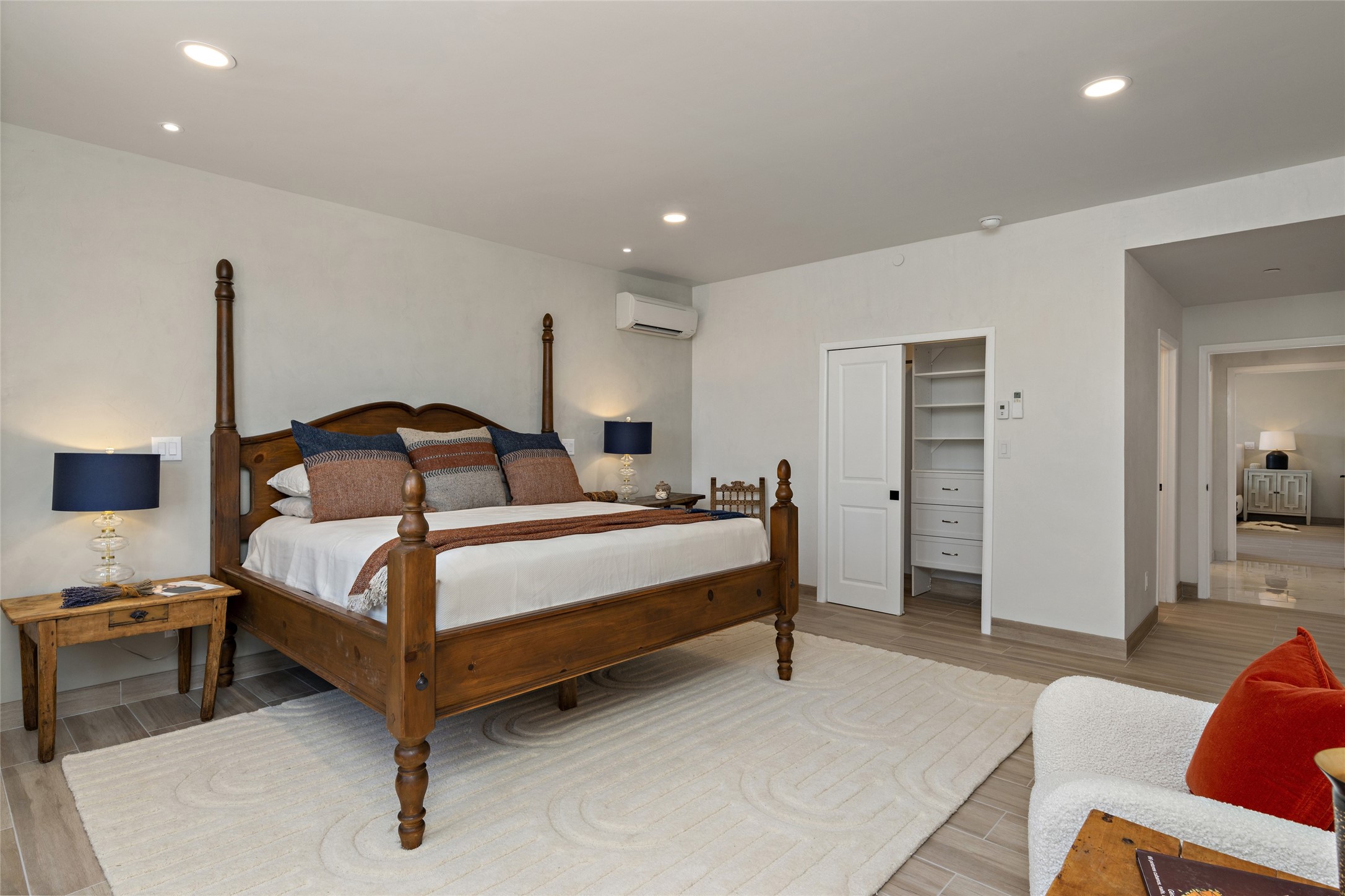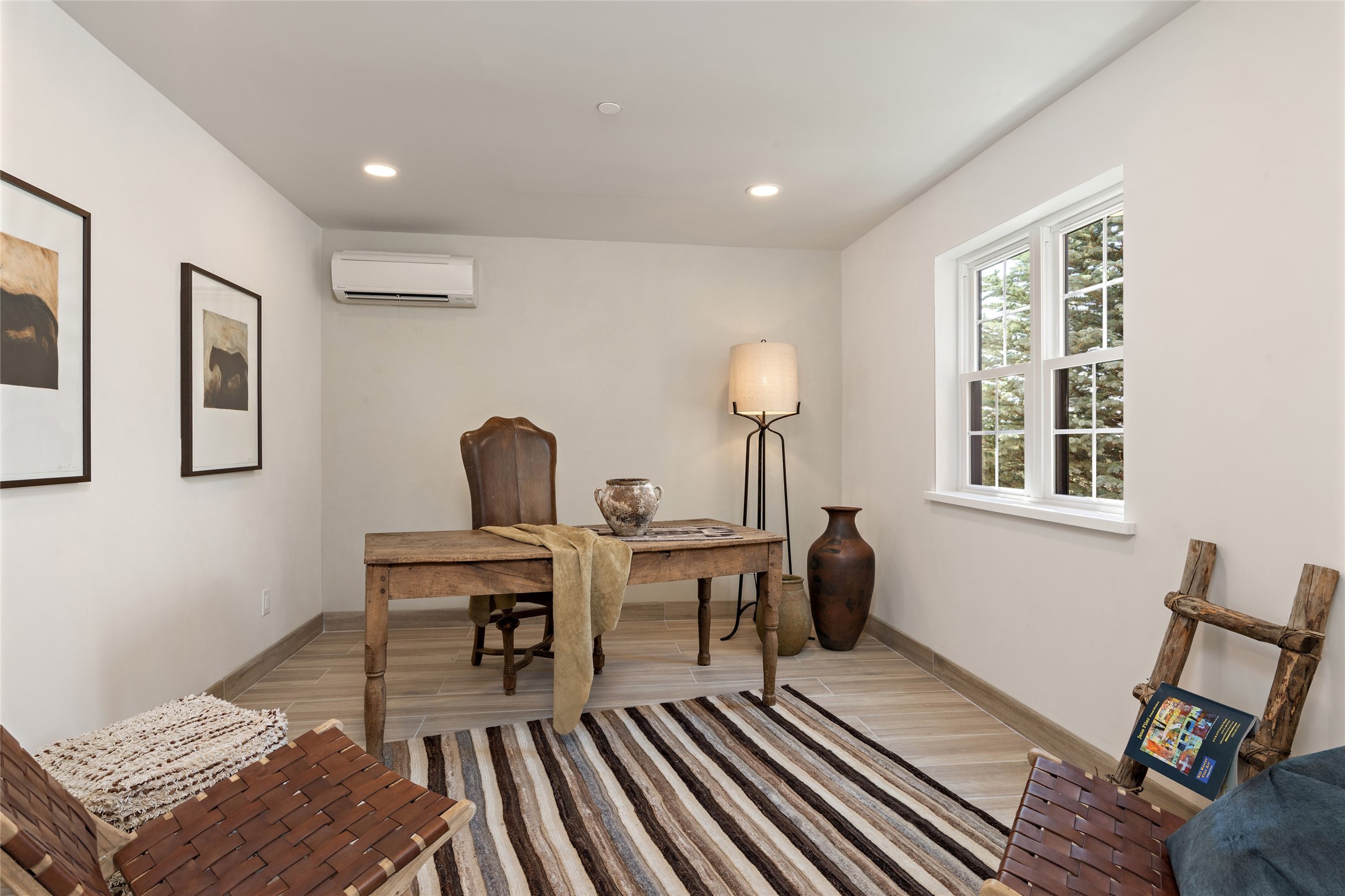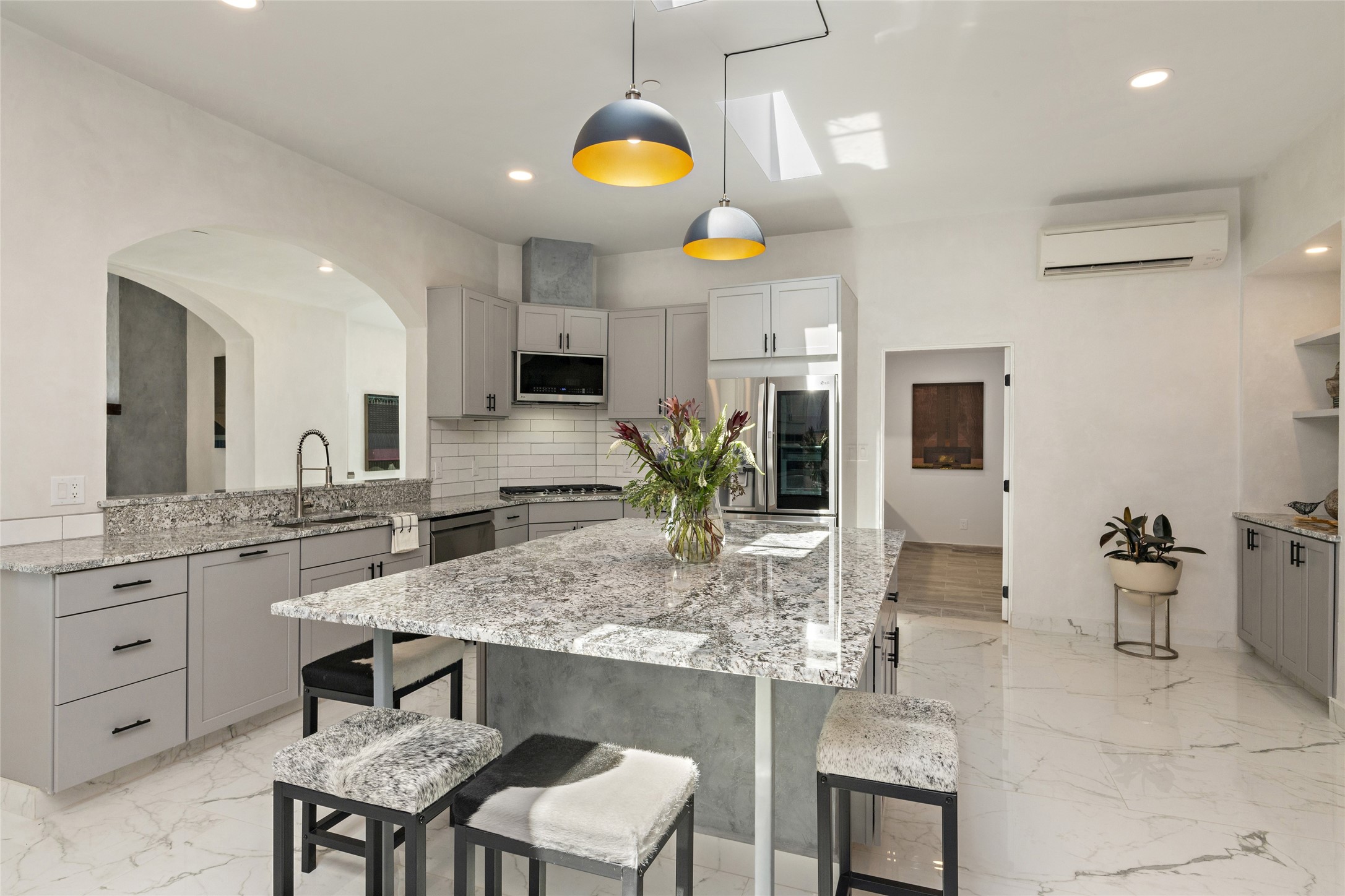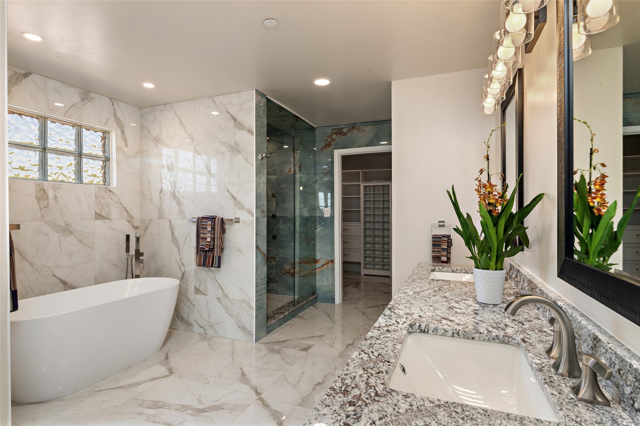 This newly constructed home on two rolling acres offers inspiring Jemez and Sangre de Cristo Mountains views, contemporary conveniences and beautiful finishes throughout. The smart, single-level floor plan was designed to satisfy the needs of various lifestyles with seamless transitions between the open interior and exterior living areas, three private bedroom suites, plus a dedicated office. Multiple chefs can enjoy cooking together in the showcase kitchen which includes a center island with seating and storage, three built-in buffets, a large butler's pantry, and a wine storage pantry. Meanwhile friends and family can relax in the adjacent living-dining room or family room each with its own view portal and fireplace. In the gracious primary bedroom suite, relax in front of the kiva fireplace or on the view portal, or luxuriate in the incredible spa bathroom with a steam shower, soaking tub and dual walk-in closets. Design elements include arched doorways, hand-troweled diamond plaster walls, lighted nichos, built-in shelving, and hand-carved beams. An oversized 2-car garage, new mechanical systems and a 6,000 gallon water harvesting cistern serving two irrigation zones complete the low-maintenance, quality-of-life package.