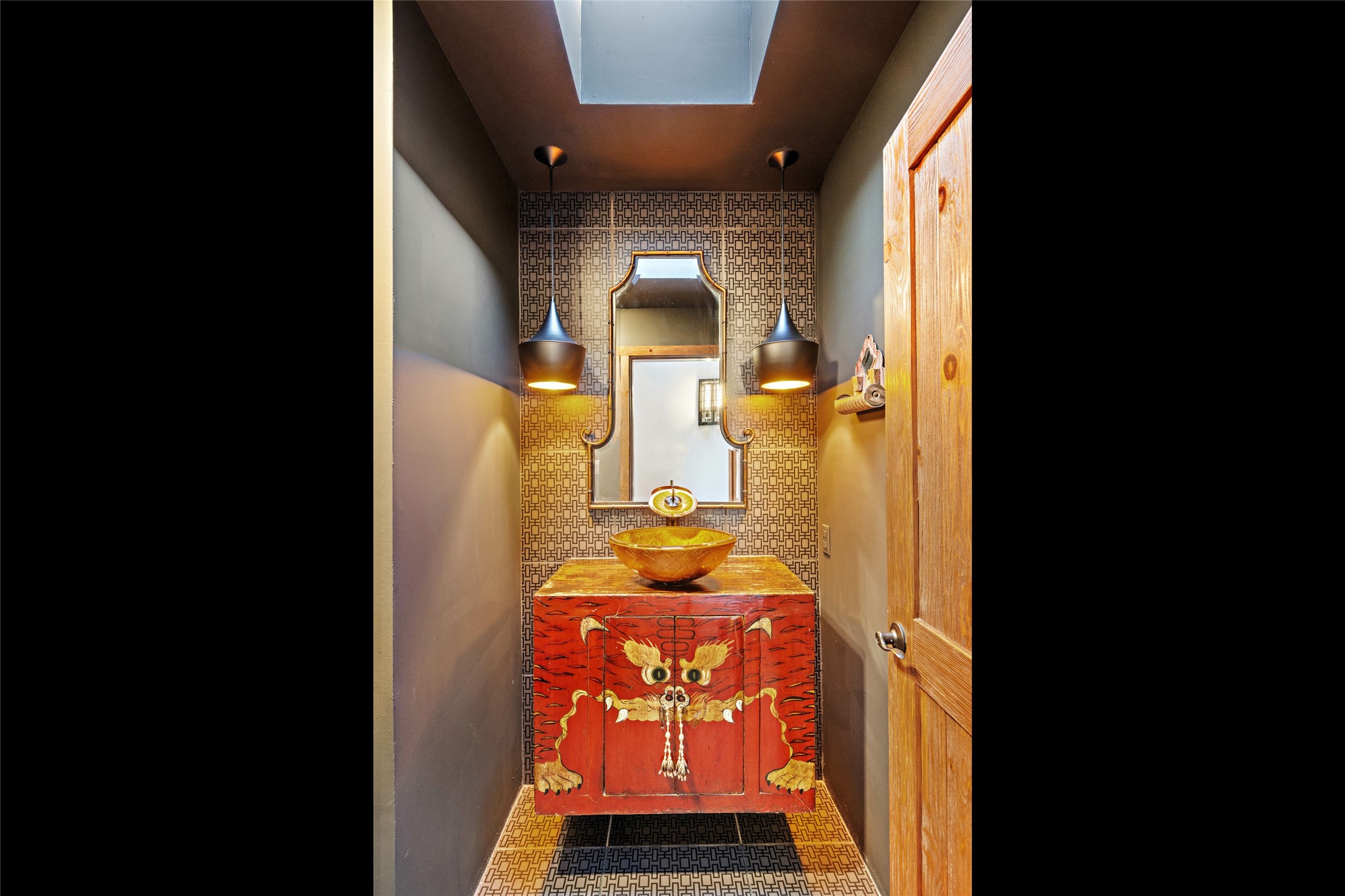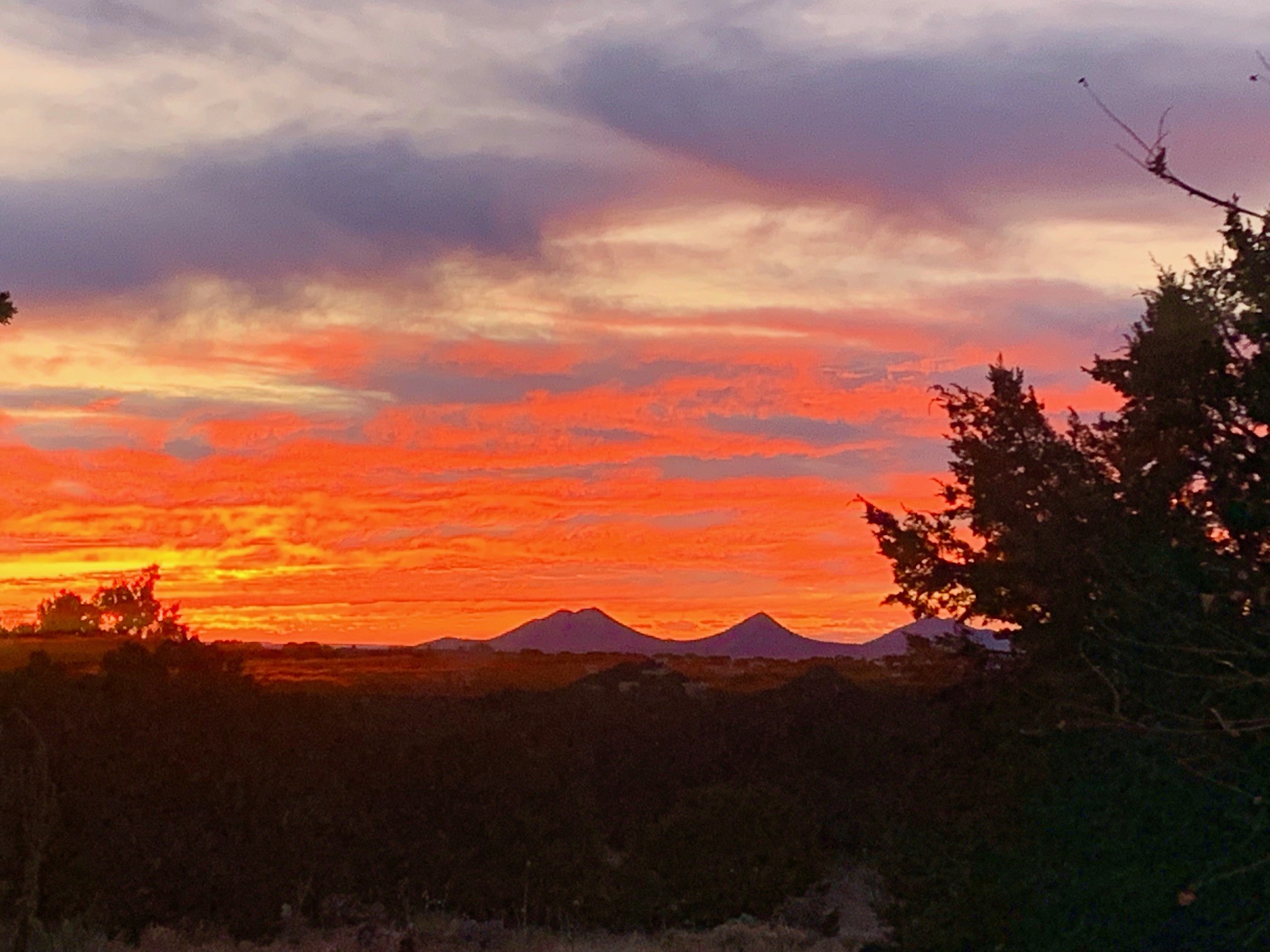 ENTERTAINER'S PARADISE! Not to mention the spectacular postcard-worthy sunset views of the Sandia and Ortiz, mountains from the back patio, and Sangres from the front patio. Sited on a large greenbelt at the end of a cul-de-sac. Four mini-splits provide real air conditioning. New stucco, interior paint and brick floors refinished in September 2023. Kitchen updated in 2022 with new appliances - a 6-burner Wolf gas range, Bosch dishwasher and LG refrigerator and more counter seating and storage. Two primary suites on opposite ends of the house, both with large walk-in closets, provide numerous options, from an in-law suite, to a large artist's studio. The larger of the suites has a sitting room with fantastic mountain views, a smaller room that is plumbed to be a kitchenette, and a separate back entrance. Huge closest with an entire wall of built-in shelves and drawers in first primary bedroom with beautiful spa-like bath with jetted tub, and double sinks. Banco with storage under picture window. Primary bedroom two has a generous 2-person jetted tub, double sinks and beautiful shower. Both primary suites have a fireplace, and there are two more in living areas, for a total of four. Fifth bedroom is set up as a beautiful office with built-ins. The new brick back patio has a sunken seating area with a built-in gas grill, a fire table and a long covered portal which is a great place to entertain or relax. The two added front flagstone patios provide additional space for seating and gorgeous views of snow-covered mountains in the winter - both patios have solar lighting. There is also a secure coyote-fenced backyard space that provides a safe area for dogs to play. Generous laundry room with sink and pantry. Oversized, extra deep 2-car garage with storage. A few steps up from the garage, otherwise single-level. Radiant is PEX. Domestic is copper. Water softener 2019. Each room has a ceiling fan. Custom screen doors, insulated blinds.