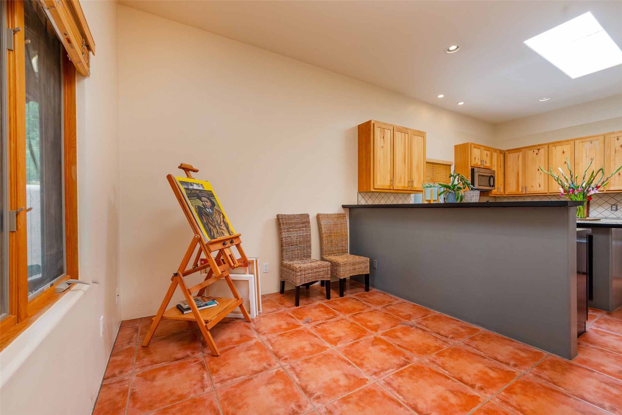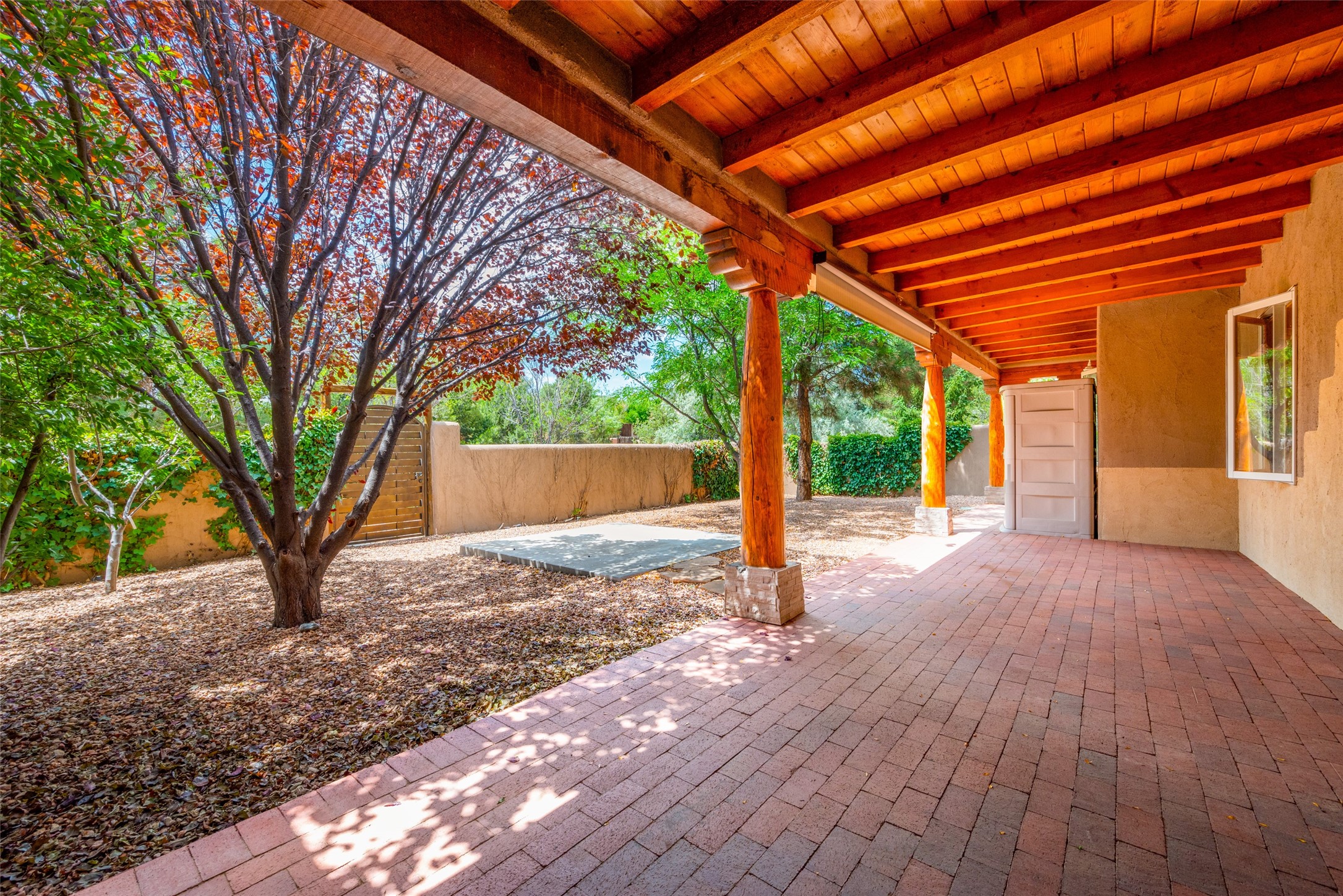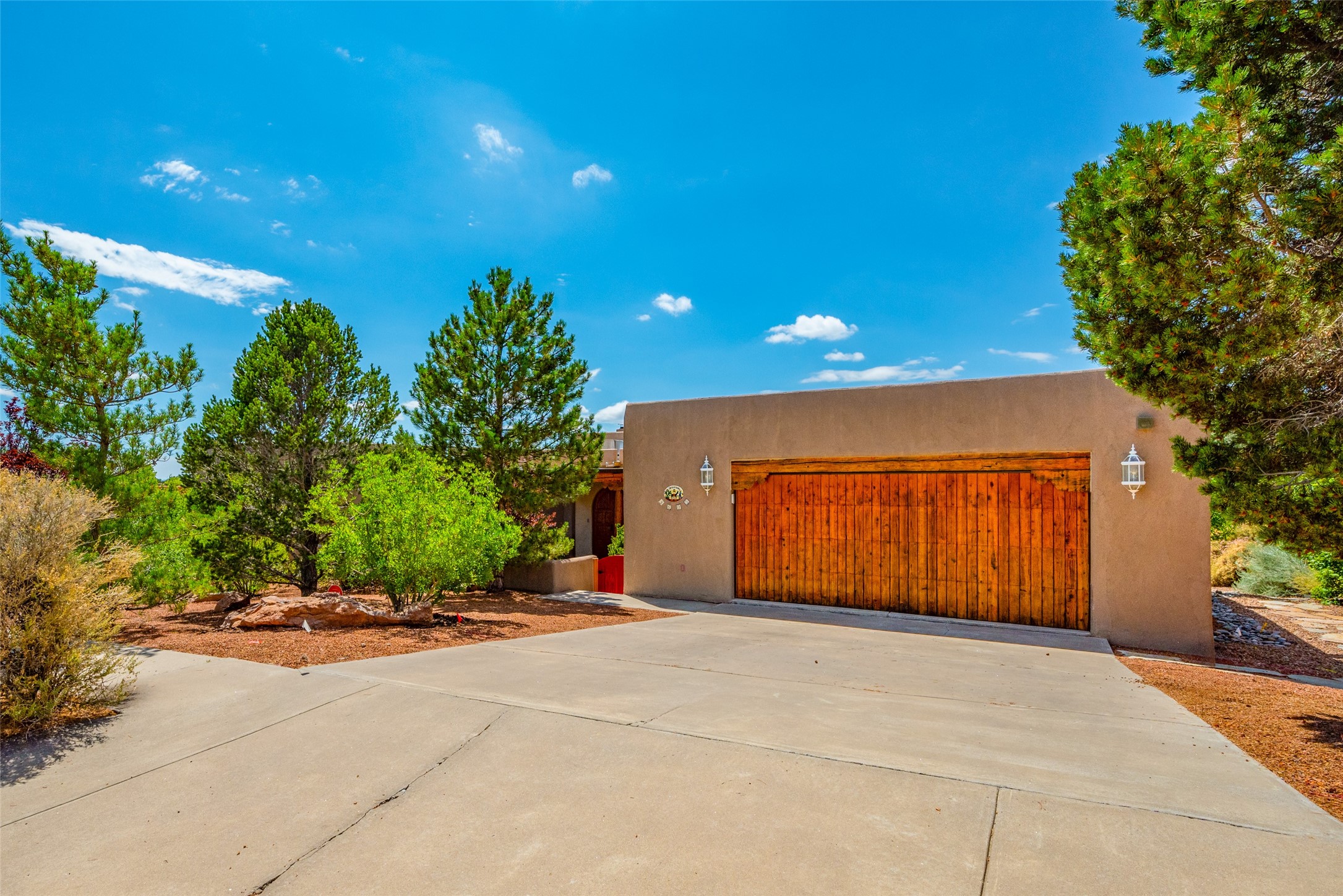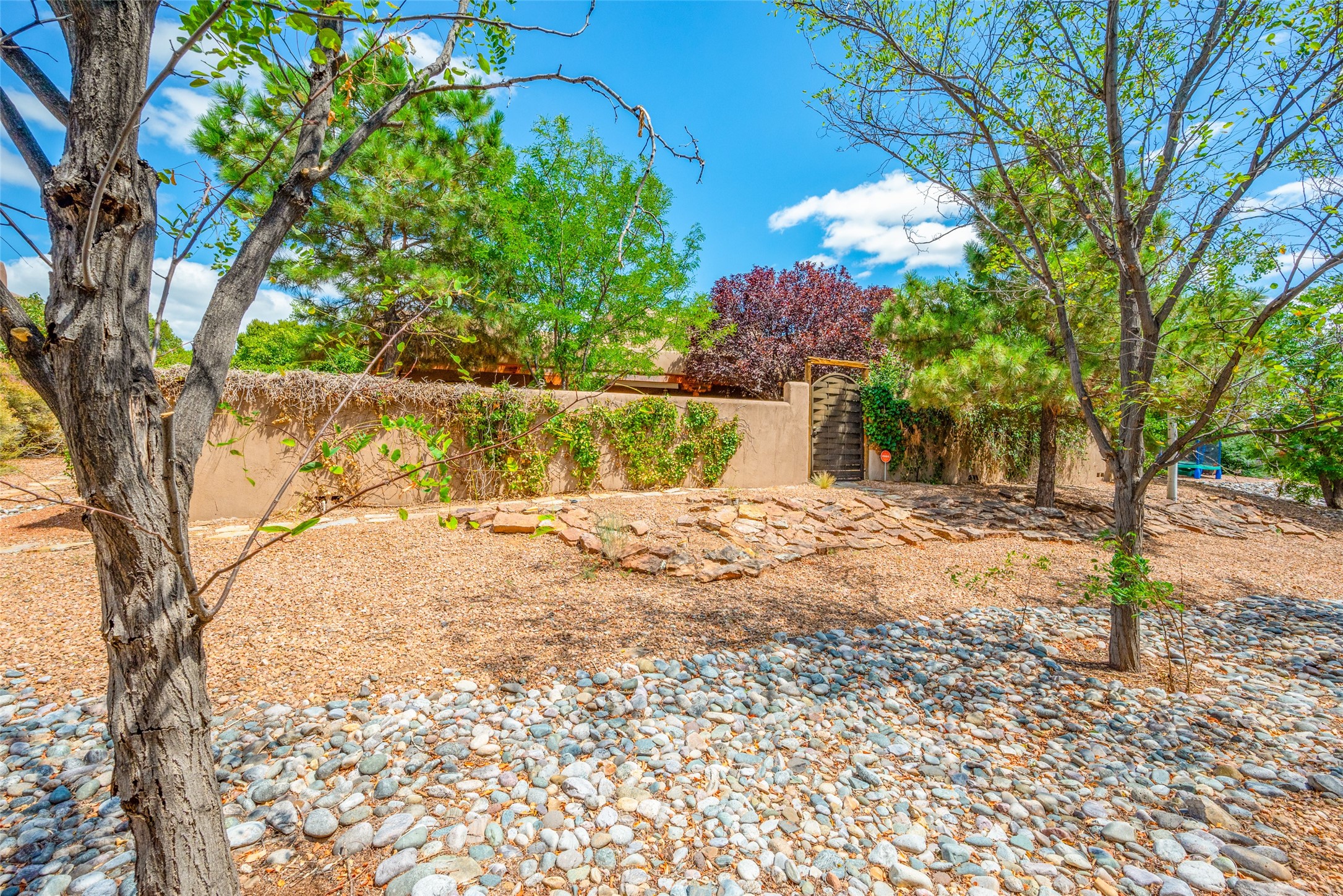 Nestled on a 1/3 acre lot, this charming pueblo-style residence boasts 3 bedrooms and 2 1/2 baths. Inside, enjoy the elegance of plaster-finished interiors, accented by coved vigas. The living area features a convenient wet bar, while the ample formal dining room, breakfast nook, and spacious kitchen make living easy. A few steps lead to the serene primary bedroom suite, adorned with a kiva fireplace, generous bath, and walk-in closet. The guest wing, situated on the entry level, ensures privacy. Outside, mature landscaping, fruit trees, and a vast back portal create a peaceful haven. With radiant heat, evaporative cooling, and a double garage, this well-maintained home is ready to welcome you. County Assessor shows the square footage at 2738 which differs from the floor plan provided. Neither Listing Brokers nor Sellers warrant the square footage of the home or lot. If size of the home or lot are of material consideration to the Buyer, then the Buyer should have them measured. Tax Levy is from the Assessor website. All fires depicted are photo-shopped. Buyer to verify functionality of the fireplaces.