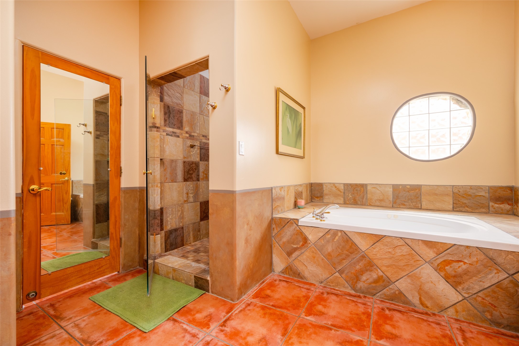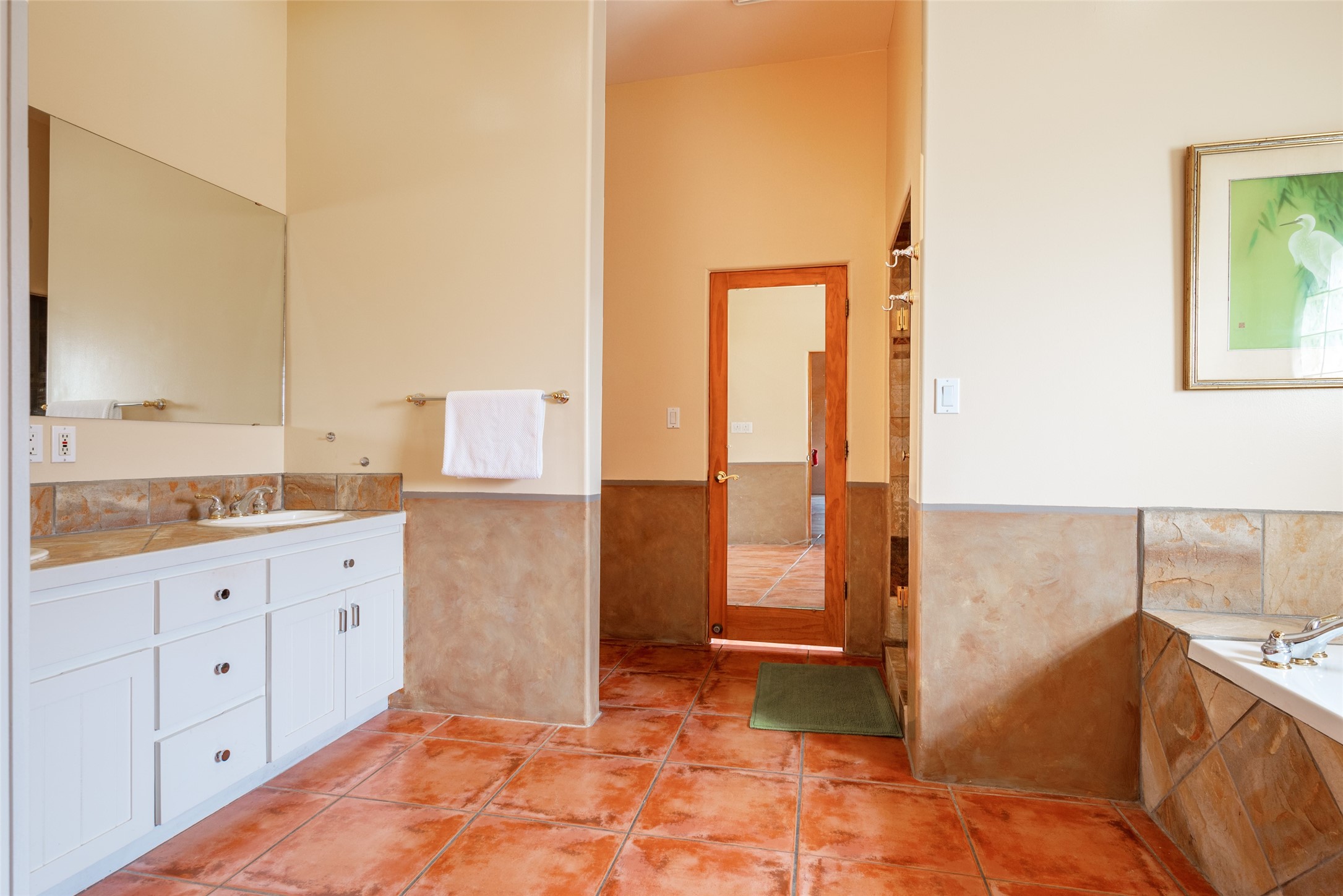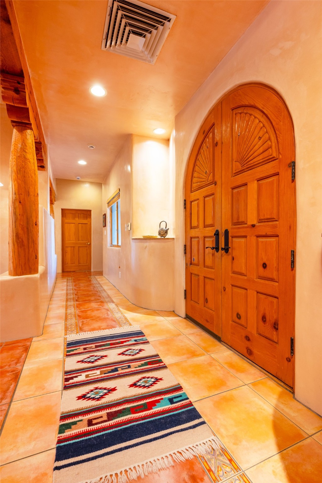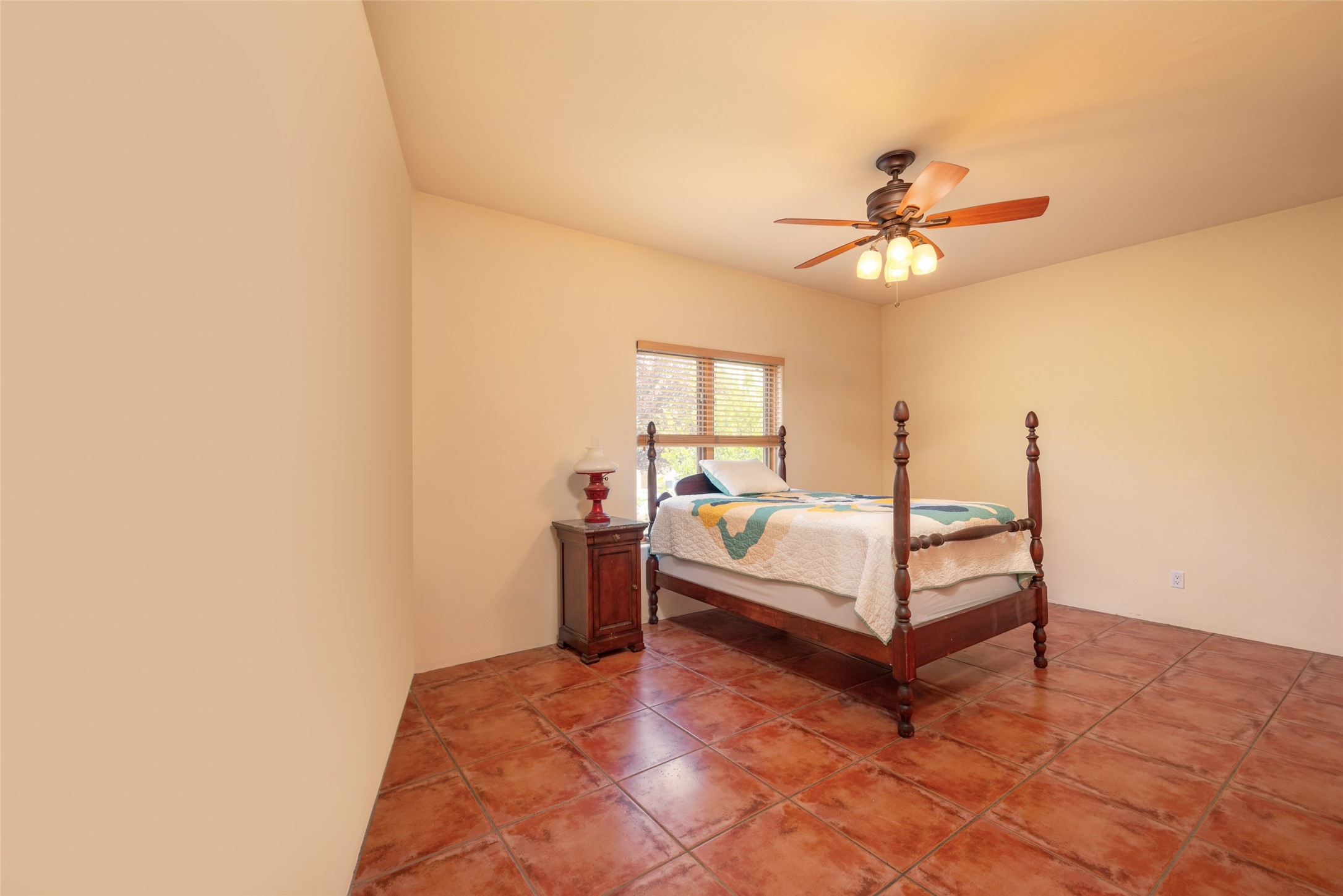 Nestled on a 1/3 acre lot, this charming pueblo-style residence boasts 3 bedrooms and 2 1/2 baths. Inside, enjoy the elegance of plaster-finished interiors, accented by coved vigas. The living area features a convenient wet bar, while the ample formal dining room, breakfast nook, and spacious kitchen make living easy. A few steps lead to the serene primary bedroom suite, adorned with a kiva fireplace, generous bath, and walk-in closet. The guest wing, situated on the entry level, ensures privacy. Outside, mature landscaping, fruit trees, and a vast back portal create a peaceful haven. With radiant heat, evaporative cooling, and a double garage, this well-maintained home is ready to welcome you. County Assessor shows the square footage at 2738 which differs from the floor plan provided. Neither Listing Brokers nor Sellers warrant the square footage of the home or lot. If size of the home or lot are of material consideration to the Buyer, then the Buyer should have them measured. Tax Levy is from the Assessor website. All fires depicted are photo-shopped. Buyer to verify functionality of the fireplaces.