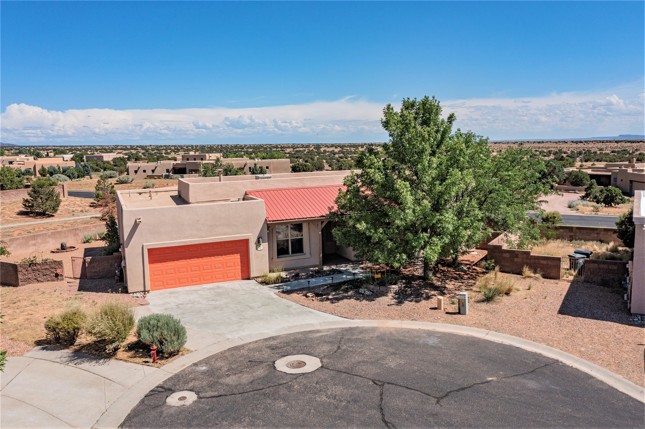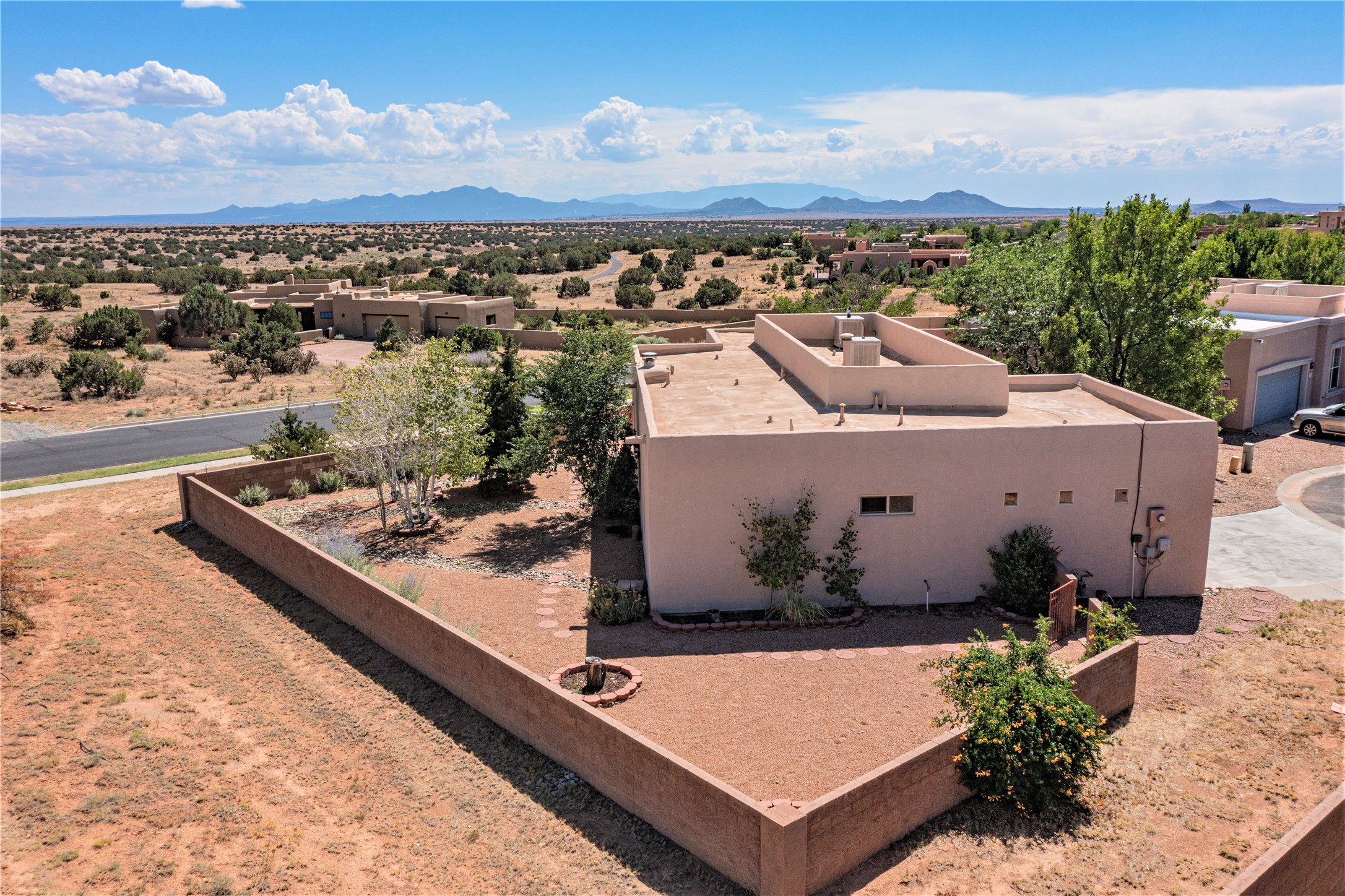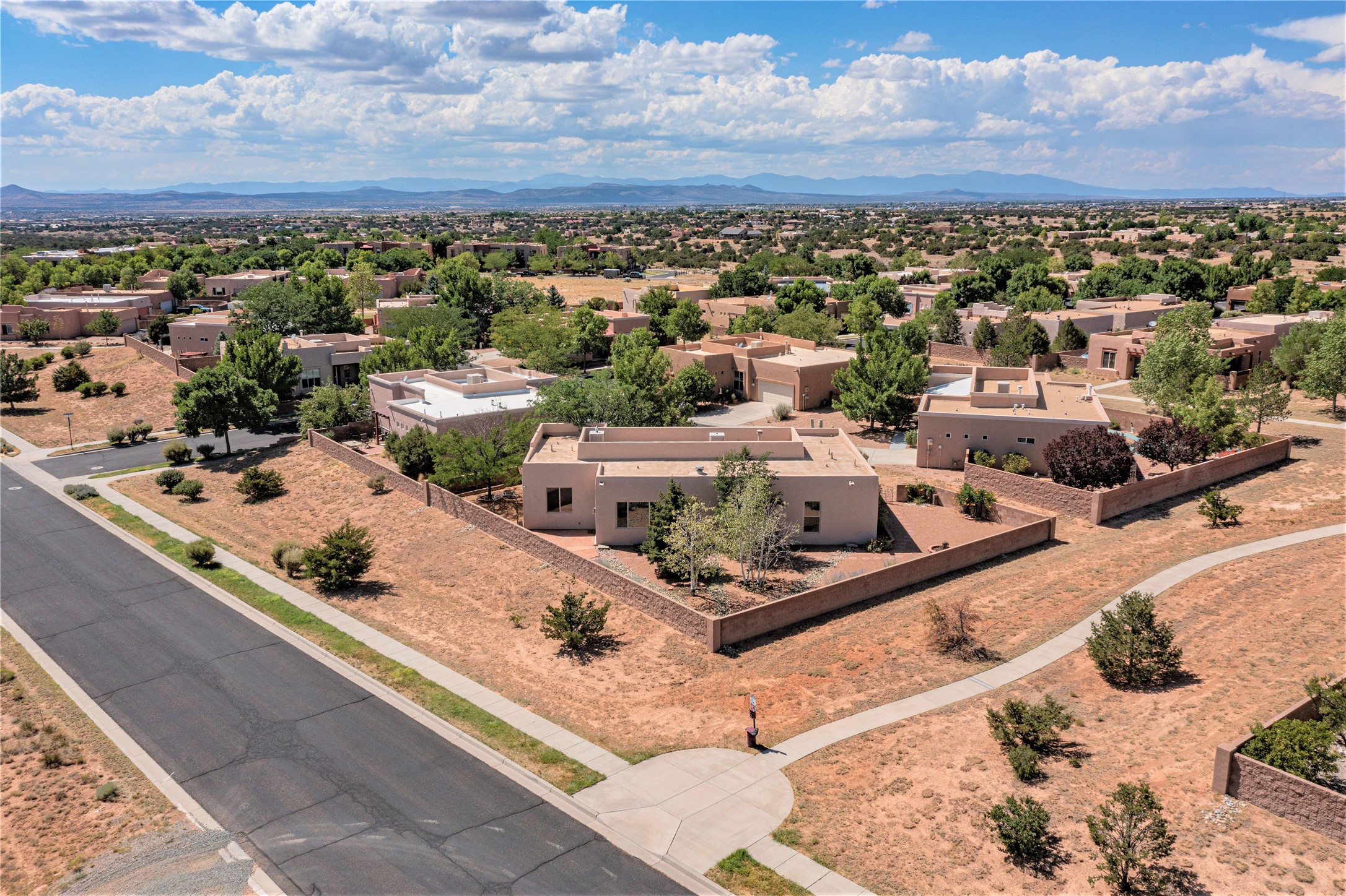 Step into unparalleled value in the heart of Windmill Ridge. This fine home with Rancho Viejo charm, nestles on a premium view lot at the end of a quiet cul-de-sac. As you arrive the sweeping vistas of Jemez, Sangre de Cristo and Sandia Mountains will welcome you. Every corner of this adobe radiates with natural light, blending with its functional open design. This well maintained improved home features: 1825 square feet, 3 bedrooms, 2 full baths, great room with a kiva fireplace, adjoining open kitchen with eating bar, pantry and breakfast nook, den/dining room, 2 car garage, radiant heated floors, dual evaporative cooling, instant hot water, established front and back landscaping, flagstone patio and much more. MORE IMPROVEMENTS: New TPO Roof Warranty to 2033, new custom painted interior including front and garage doors, new custom carpeting, new surfaced sidewalk and driveway. Beyond this home's privacy and tranquility, life thrives beginning with out your door to paved trails. Moments away are the education hubs of the Santa Fe Community College and the Institute of American Indian Arts. Rancho Viejo is more than a neighborhood; it's an experience. Paved roads, enchanting parks, underground utilities and an ambience free of street lights make for starlit nights. Your forever vistas and nearly 15 miles of walking trails ensure nature is your companion. This is your opportunity to experience the soul of Santa Fe living in a community with something for everyone with easy access to museums, galleries, shopping, restaurants and more. This home is a great beginning for your next Santa Fe chapter whether your first or forever home. Call to learn more and see. BONUS: 10 years roof warranty and one year Home Warranty from Home Warranty of America at no cost to Buyer. Call for your showing appointment today.