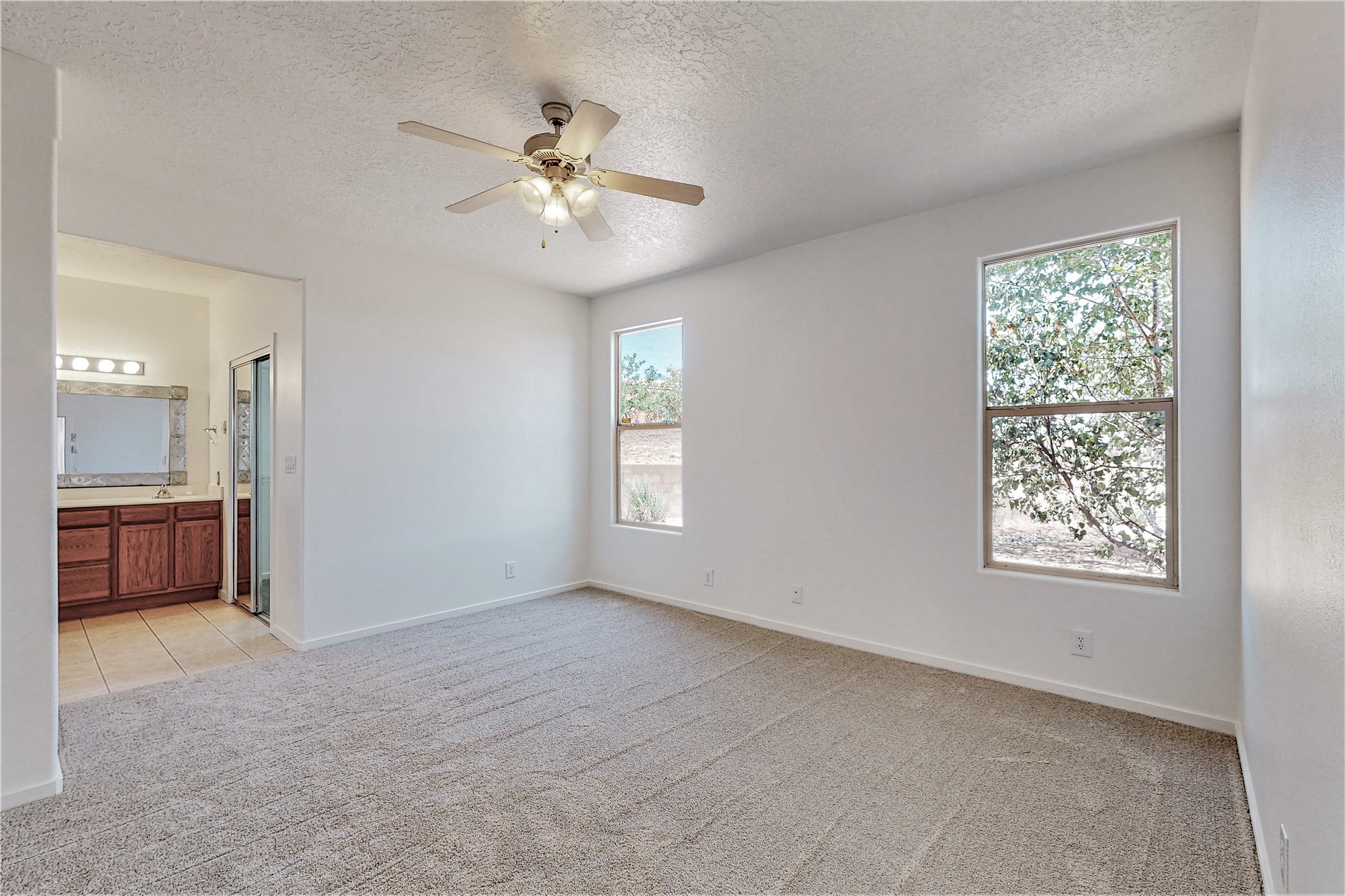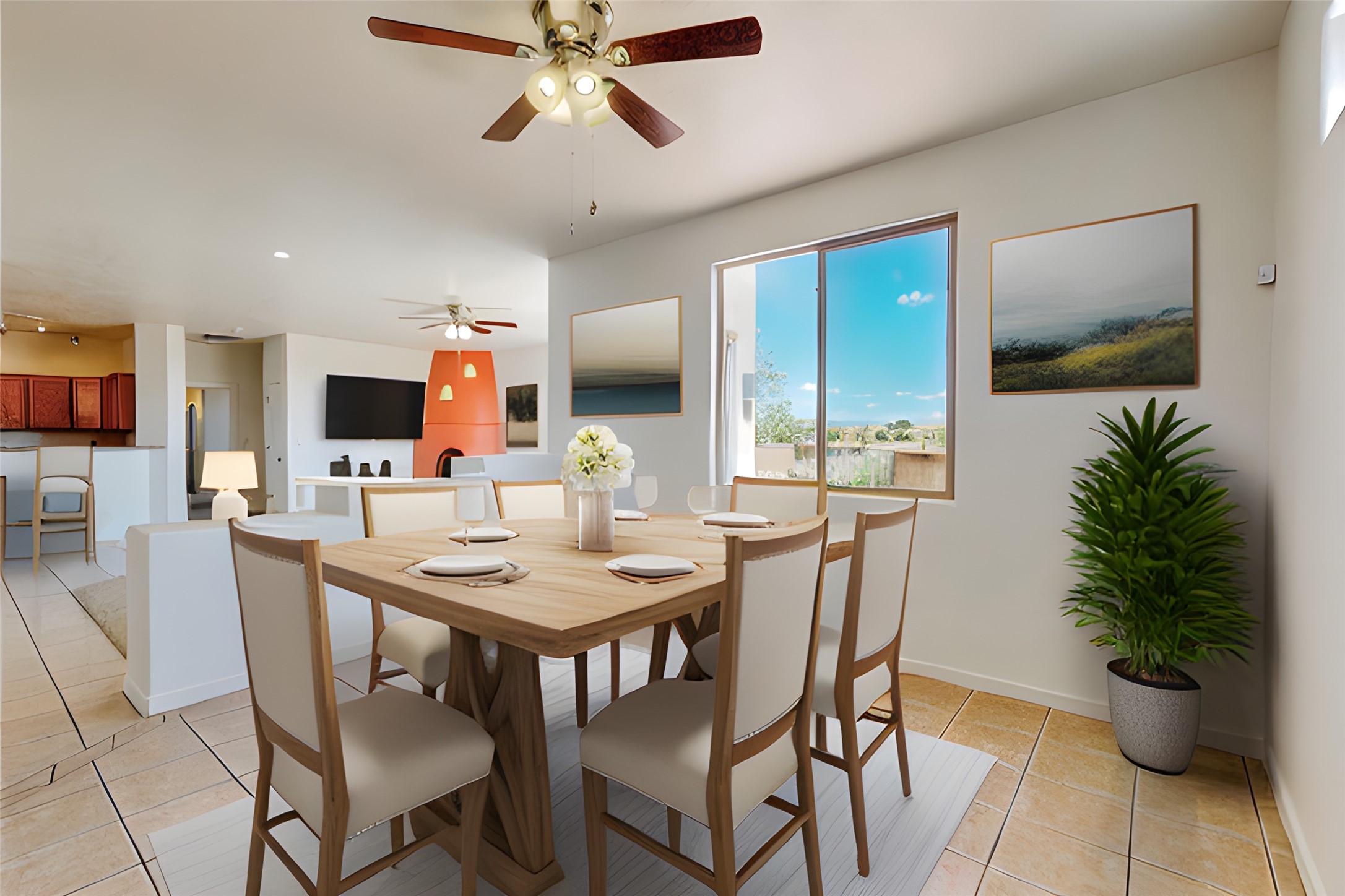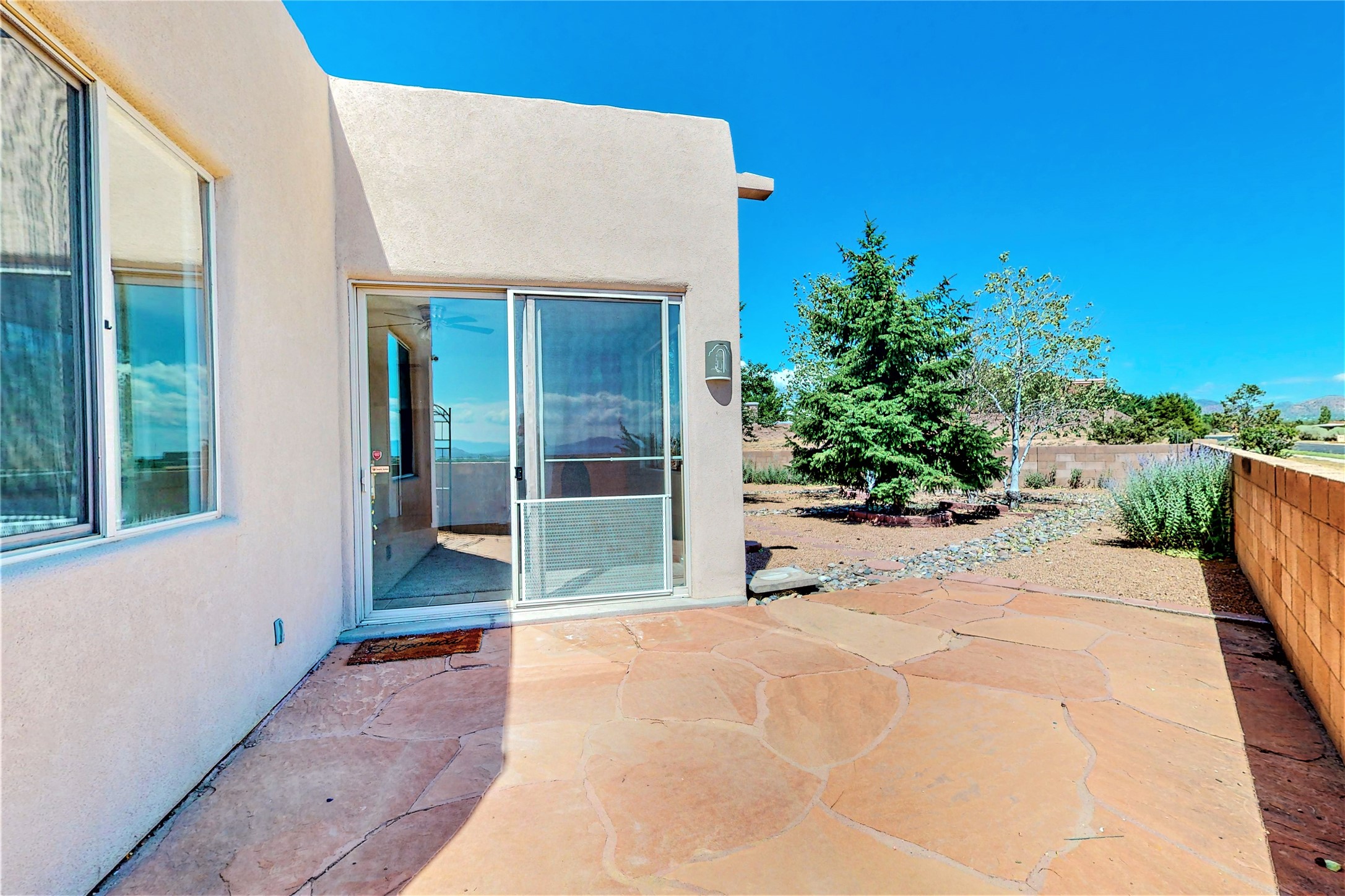 Step into unparalleled value in the heart of Windmill Ridge. This fine home with Rancho Viejo charm, nestles on a premium view lot at the end of a quiet cul-de-sac. As you arrive the sweeping vistas of Jemez, Sangre de Cristo and Sandia Mountains will welcome you. Every corner of this adobe radiates with natural light, blending with its functional open design. This well maintained improved home features: 1825 square feet, 3 bedrooms, 2 full baths, great room with a kiva fireplace, adjoining open kitchen with eating bar, pantry and breakfast nook, den/dining room, 2 car garage, radiant heated floors, dual evaporative cooling, instant hot water, established front and back landscaping, flagstone patio and much more. MORE IMPROVEMENTS: New TPO Roof Warranty to 2033, new custom painted interior including front and garage doors, new custom carpeting, new surfaced sidewalk and driveway. Beyond this home's privacy and tranquility, life thrives beginning with out your door to paved trails. Moments away are the education hubs of the Santa Fe Community College and the Institute of American Indian Arts. Rancho Viejo is more than a neighborhood; it's an experience. Paved roads, enchanting parks, underground utilities and an ambience free of street lights make for starlit nights. Your forever vistas and nearly 15 miles of walking trails ensure nature is your companion. This is your opportunity to experience the soul of Santa Fe living in a community with something for everyone with easy access to museums, galleries, shopping, restaurants and more. This home is a great beginning for your next Santa Fe chapter whether your first or forever home. Call to learn more and see. BONUS: 10 years roof warranty and one year Home Warranty from Home Warranty of America at no cost to Buyer. Call for your showing appointment today.