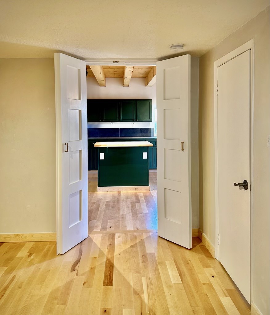 Artistic whole home remodel near Downtown Santa Fe and the Santa Fe River trails. This quaint home has many fine features. Artisanal hand troweled plaster walls thru out, imported tadelakt lime plaster in shower of main bedroom, beautiful 3/4 inch hard wood floors throughout, kiva fireplace, herringbone pattern latilla details on ceiling in living room, custom tiled guest bathroom. New Anderson windows and doors, timeless Art Deco exposed beam kitchen, lots of natural light. New roof! Nice sized lot with landscaping. Everything was thought of!