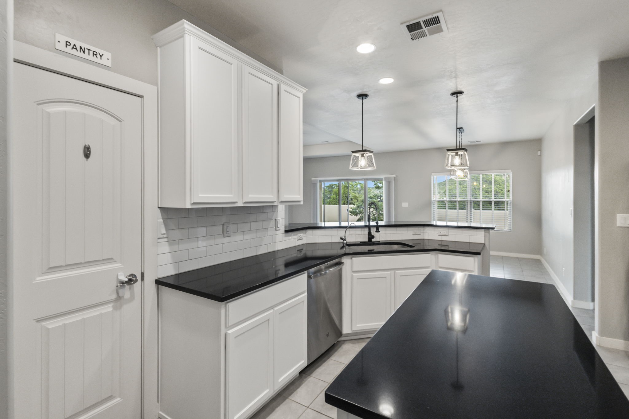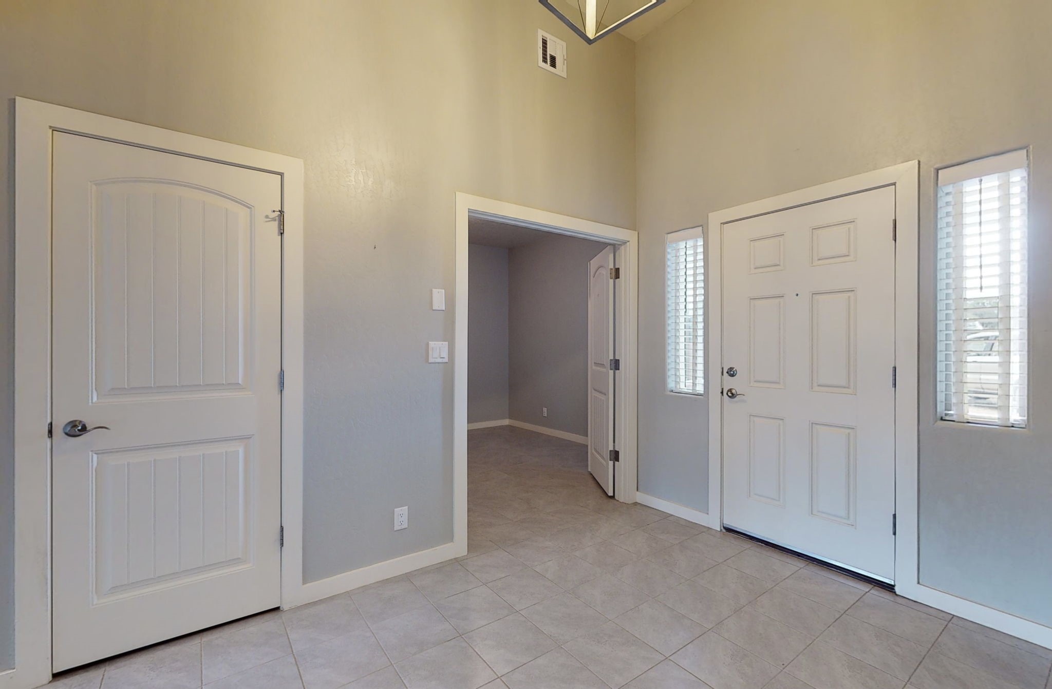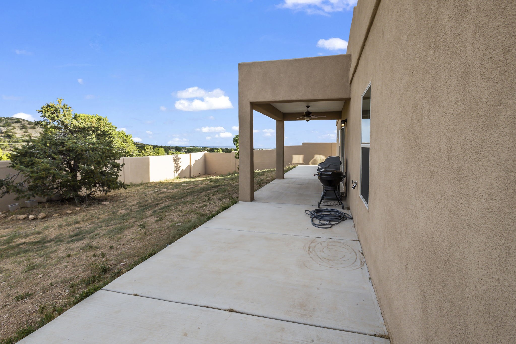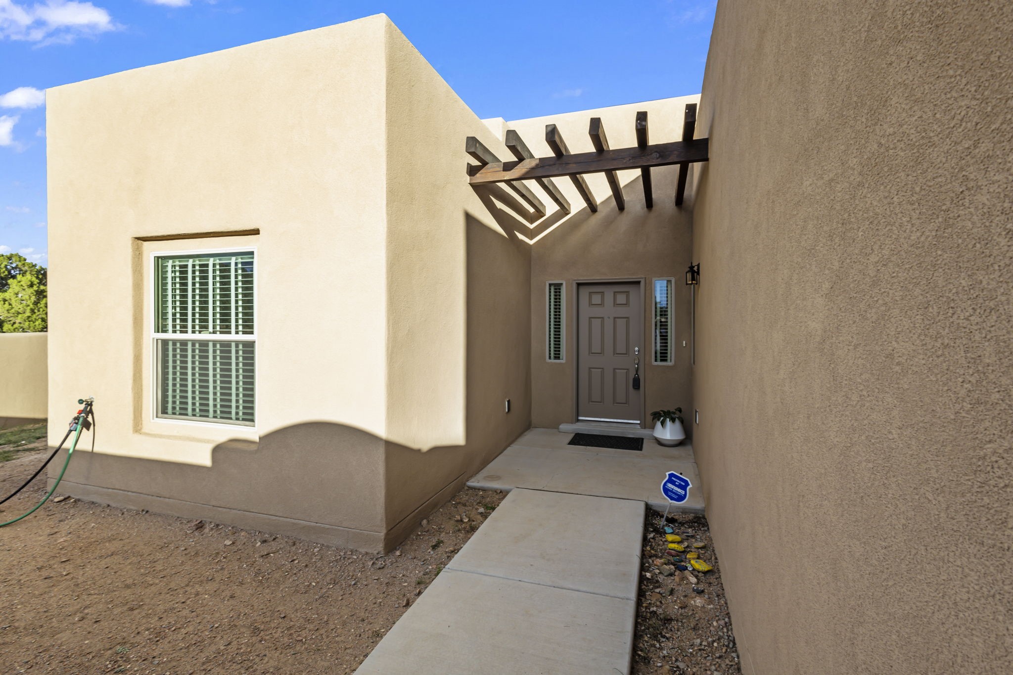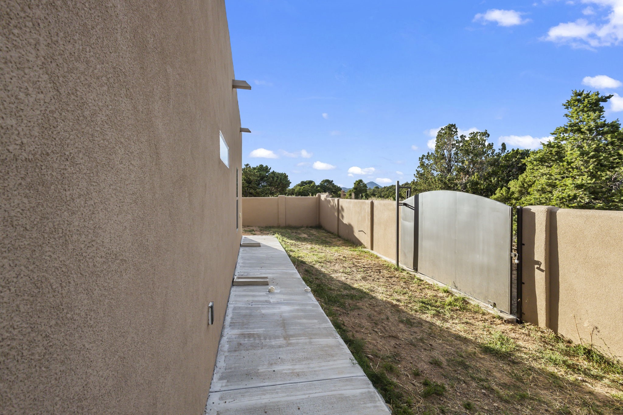 Built in 2019, this custom home near Eldorado of Santa Fe awaits! This bright and spacious home is situated on a 2.79 acre lot and conveniently located near I-25 and Hwy 285 in the beautiful Dos Griegos neighborhood. Features include 4 bedrooms, 3 full bathrooms, a home office/den, open concept living area, gas fireplace in the gathering room, and a chef's kitchen with large walk-in pantry, quartz countertops and stainless steel appliances. The primary bedroom is privately located and offers an ensuite bath with soaking tub, separate shower and a generous walk-in closet. Ample storage spaces throughout the home include a finished and extended 3 car garage. Bonus features: High-speed internet connection, central refrigerated air-conditioning, whole house water softener and reverse osmosis system at kitchen. Outdoors, the private courtyard with custom entry gates awaits your unique vision to create your own outdoor living spaces. Just a short 15 minute drive to Santa Fe. Come and take in the beautiful views that surround this home and make it yours! NMREL Owner/Broker.