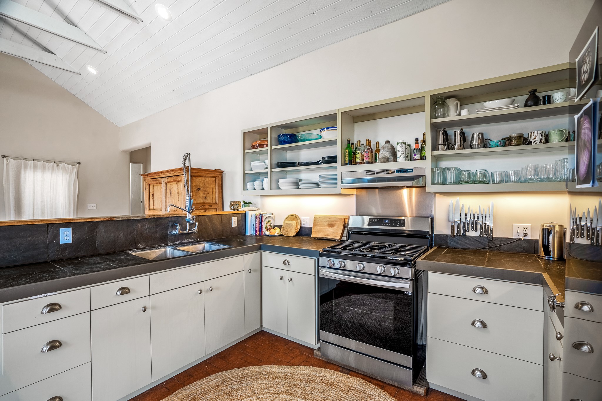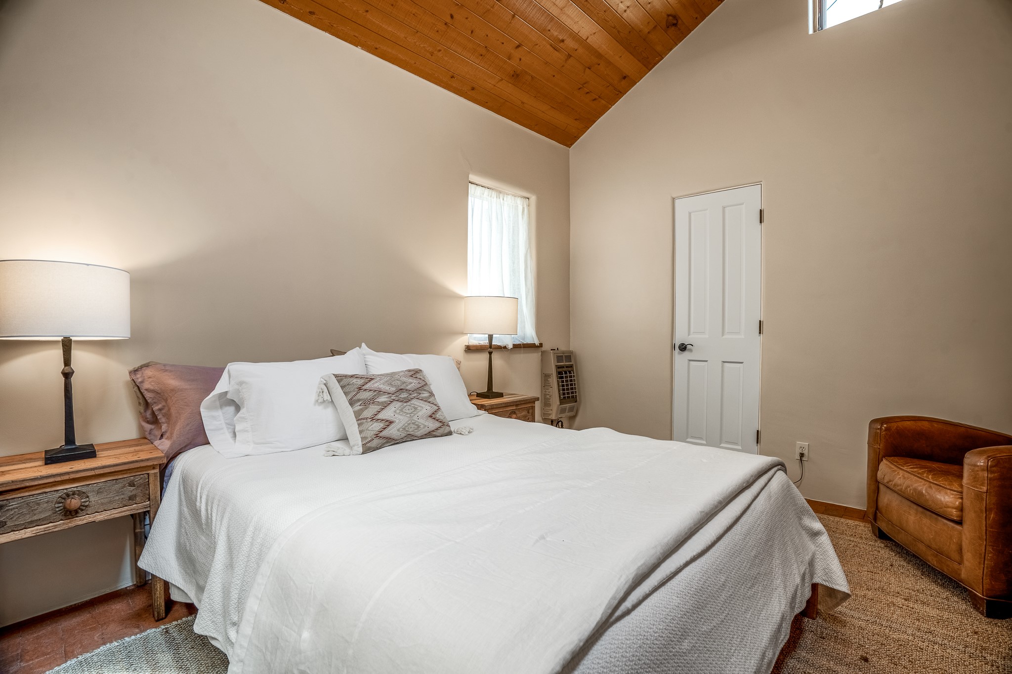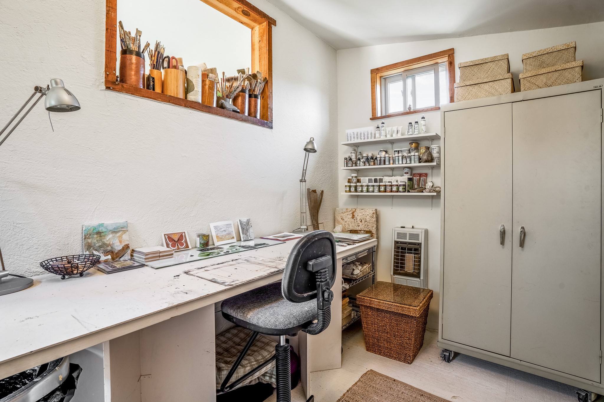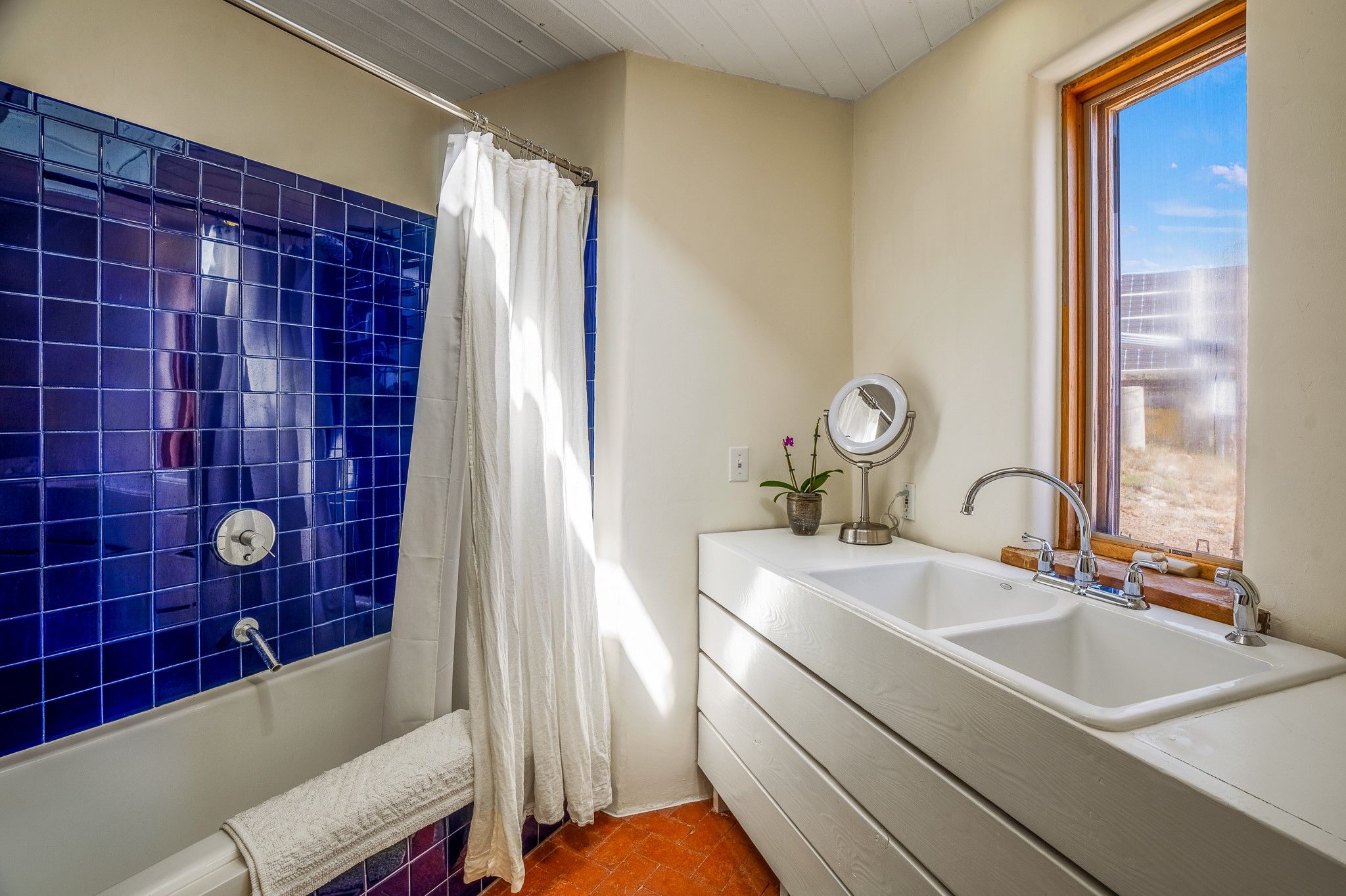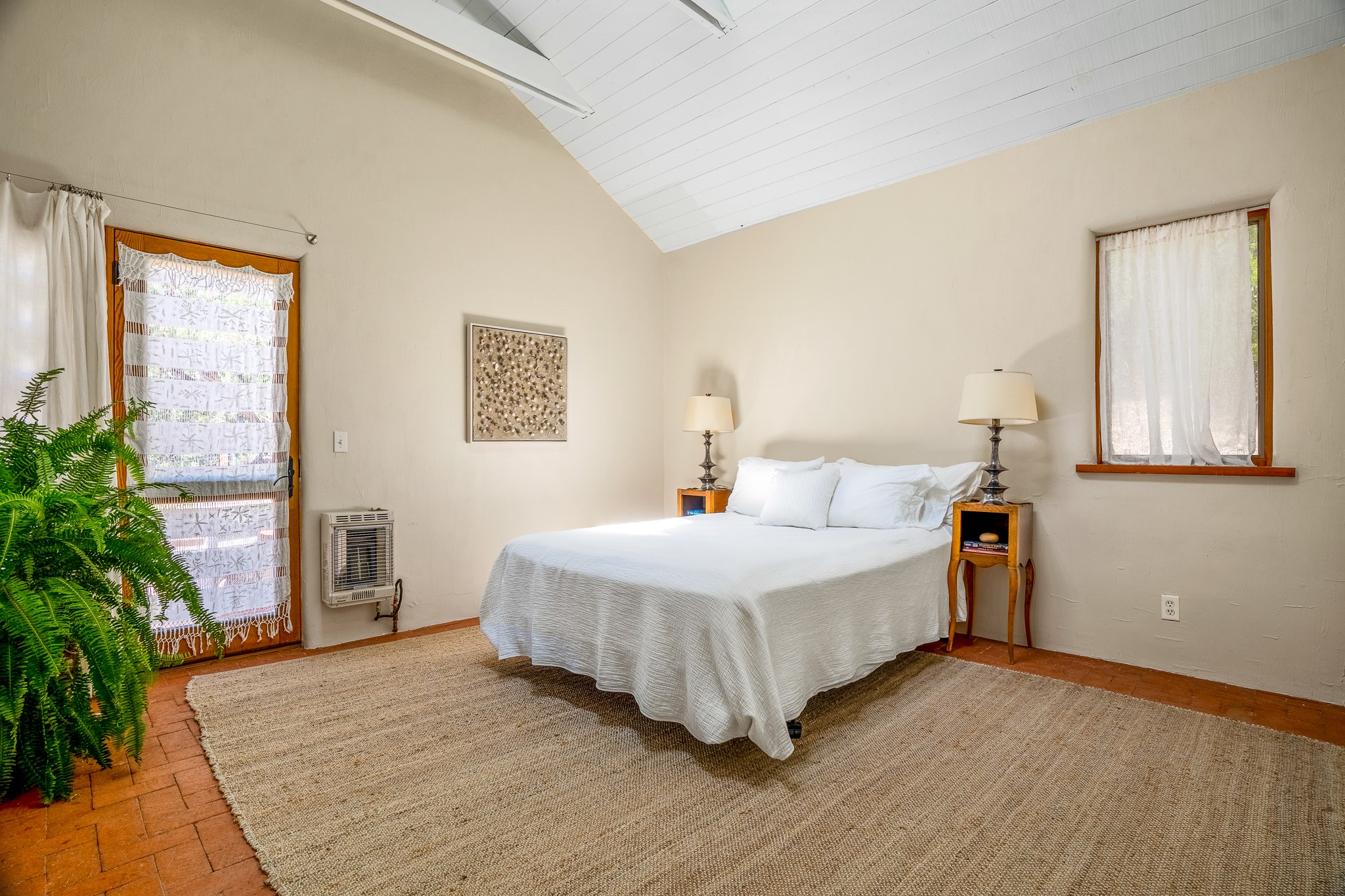 Gracious off-grid living in Lamy only 1 mile East of the Legal Tender and the heart of the Lamy village. This elegant 2bed/1 bath home with a separate studio is beautifully sited on 5 acres with broad views down Lamy's valley. Built in 2004by Karen Terry, a highly respected eco-friendly builder, this property is completely self-sufficient: a shared well (thewell is on the property of the owners of 73 Los Hornos), solar-powered with a 2+ year old battery bank, E-creteconstruction, 3 hand-poured trombe walls for warmth in the winter, 3 cisterns for water catchment, and a Morso wood stove in the beautiful main living area. The main house has an open concept living/dining/kitchen with high ceilings andskylights in every room. Brick flooring throughout the house. Established native pollinator plant beds. There are 3wonderful outdoor areas and 5 raised vegetable garden beds. The art studio is separate and has also been used as a guest casita/office. This special property is 25 minutes to Santa Fe's Plaza and yet another world and time period away.