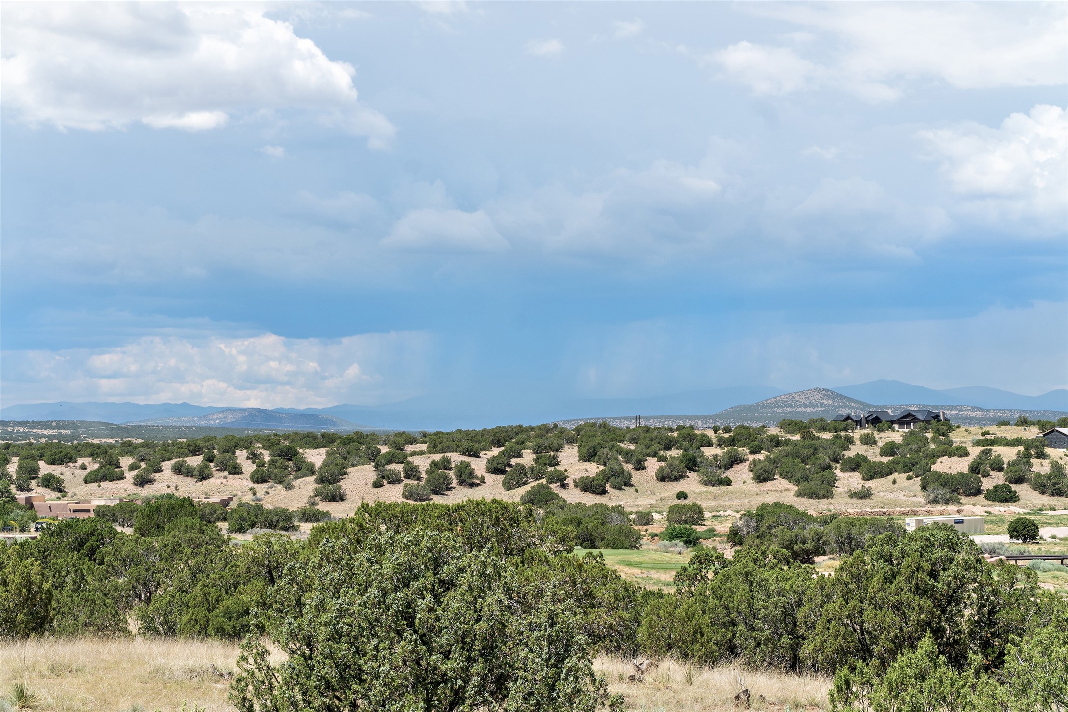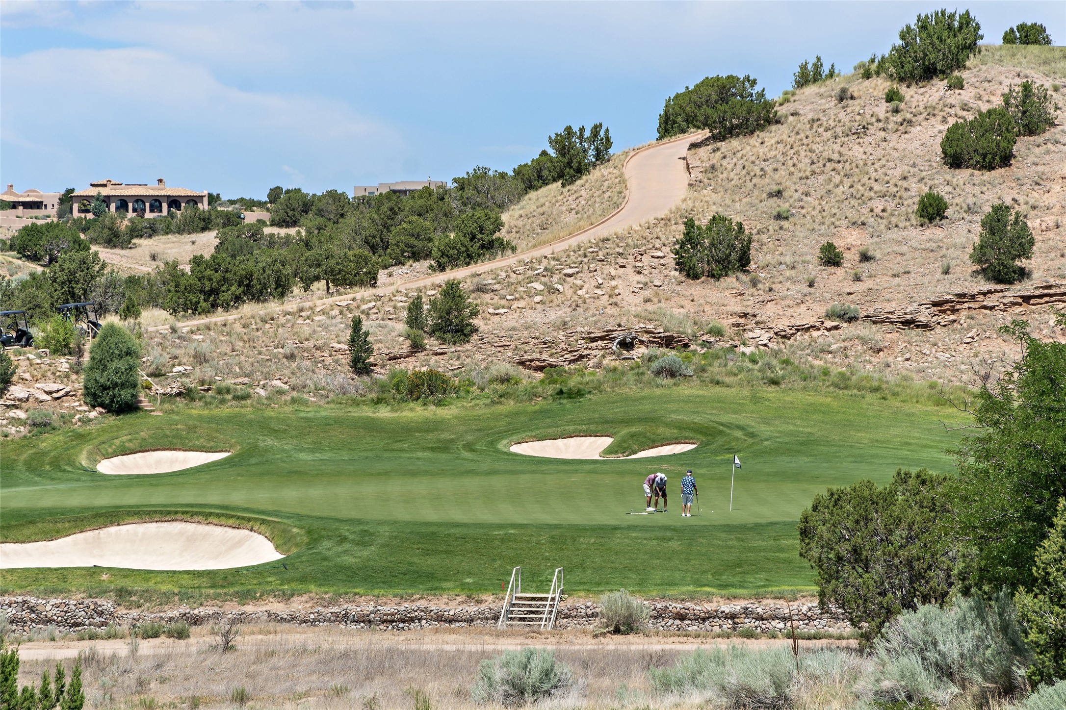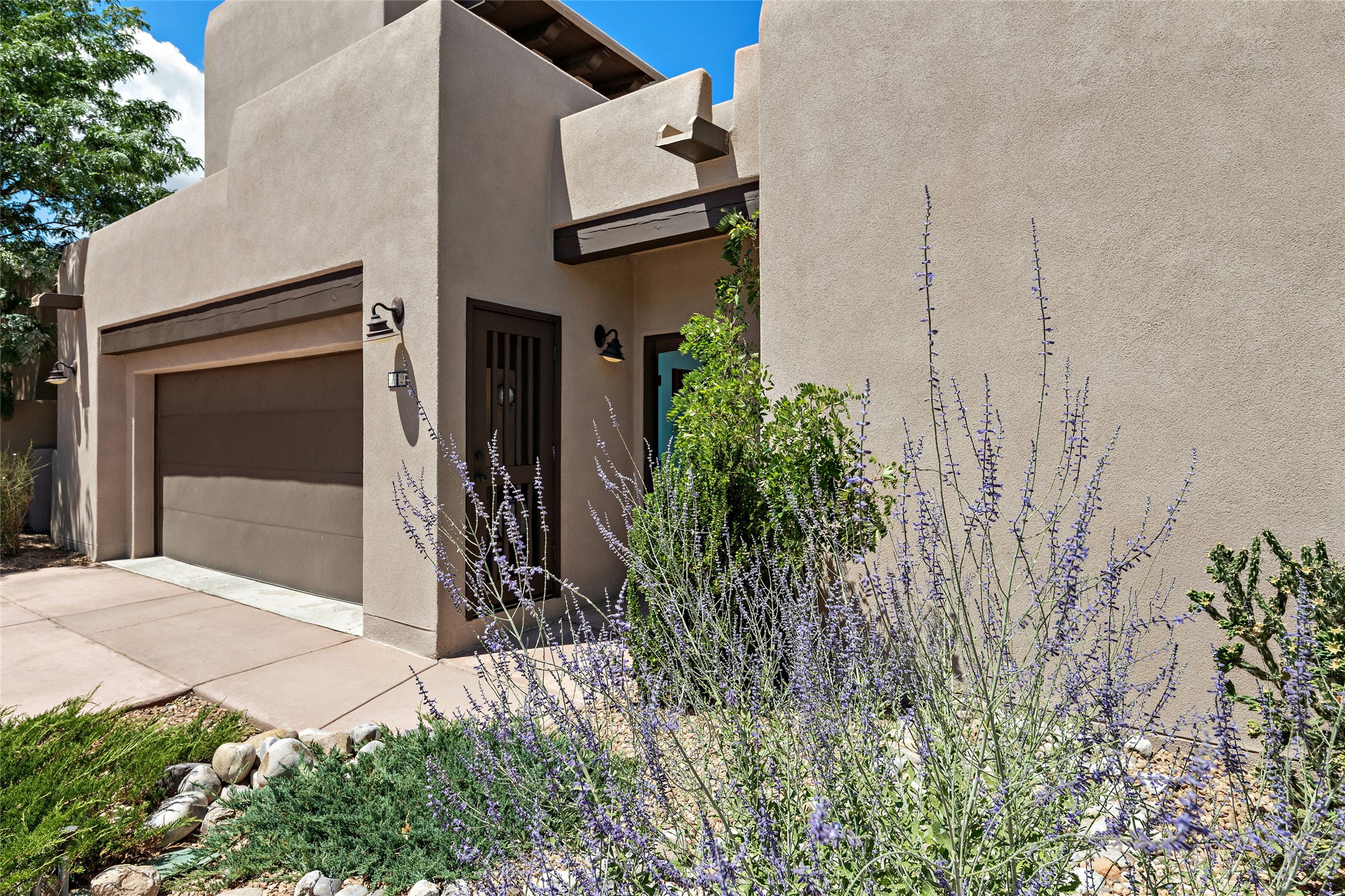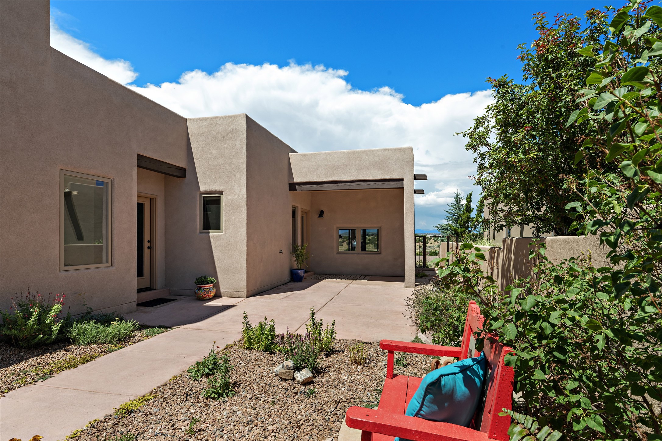 Fabulous Golf Course and Jemez Mountain Views await you from this Traditional Pueblo-style 3 Bedroom, 3 Bath home with an Office Plus private, detached space for Storage or Art & Crafts on a quiet, elevated location in the Los Santeros area of Gated Las Campanas. A Private entry gate leads you to a welcoming courtyard with space for entertaining friends & family. The home has 3 Bedrooms & 3 Baths, with one of them sequestered upstairs for the privacy of your guests. The Great Room is an Open Concept layout w/Golf Course and Jemez views plus a gas log fireplace in the Living area. The Kitchen offers quality Jenn-Air stainless steel appliances plus a large island for entertaining friend & family while you cook as well as a spot to enjoy a casual meal. The Back Portal enjoys the same great Golf Course & Jemez Western views as well as space for dining & entertaining. The Master Bedroom also has Golf Course & Jemez views with an en-suite bath including 2 separate sinks, walk-in closet, separate tub & shower plus compartmented water closet. Bedroom Two / Den / Media is sequestered from the Master and has two spacious closets plus an adjacent full bath. The Third bedroom with en-suite 3/4 bath is located upstairs and has a deck with a fabulous Sangre de Cristo View. The Laundry Room has room for a side-by-side Washer / Dryer set, as well a handy closet. The private, detached Storage Space / Arts & Crafts area is outfitted with lots of shelving for hobbies or additional storage, but is not heated or cooled. The 2-car garage has shelves on both sides for very generous storage. This home is a Great value, with Panoramic Golf Course and Jemez Mountain Views, a private Storage Space / Arts & Crafts area and a quiet, elevated location.