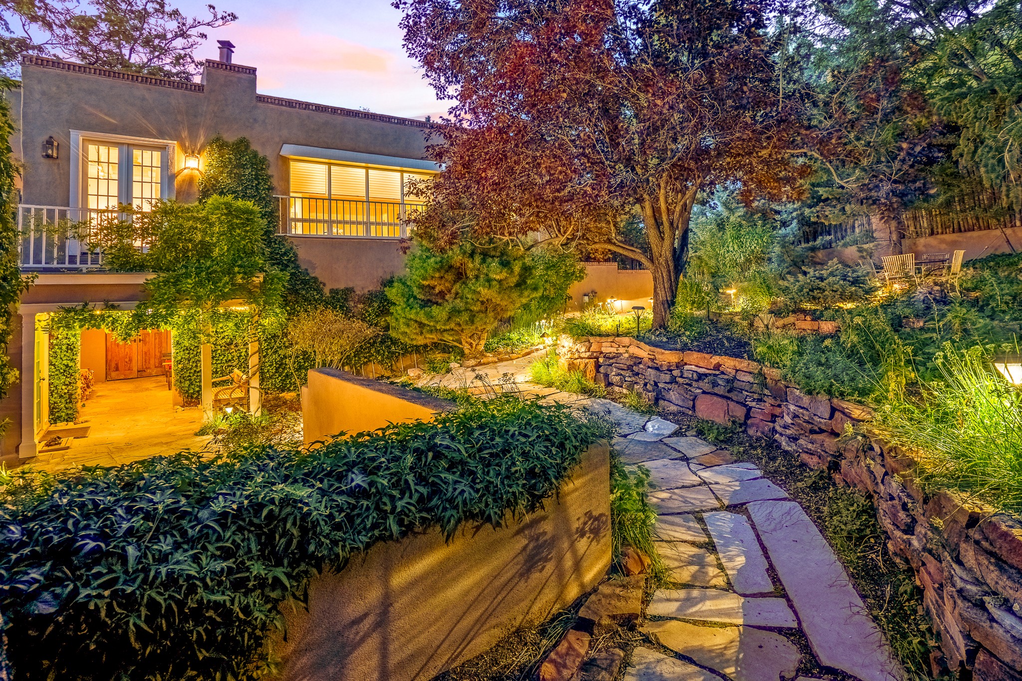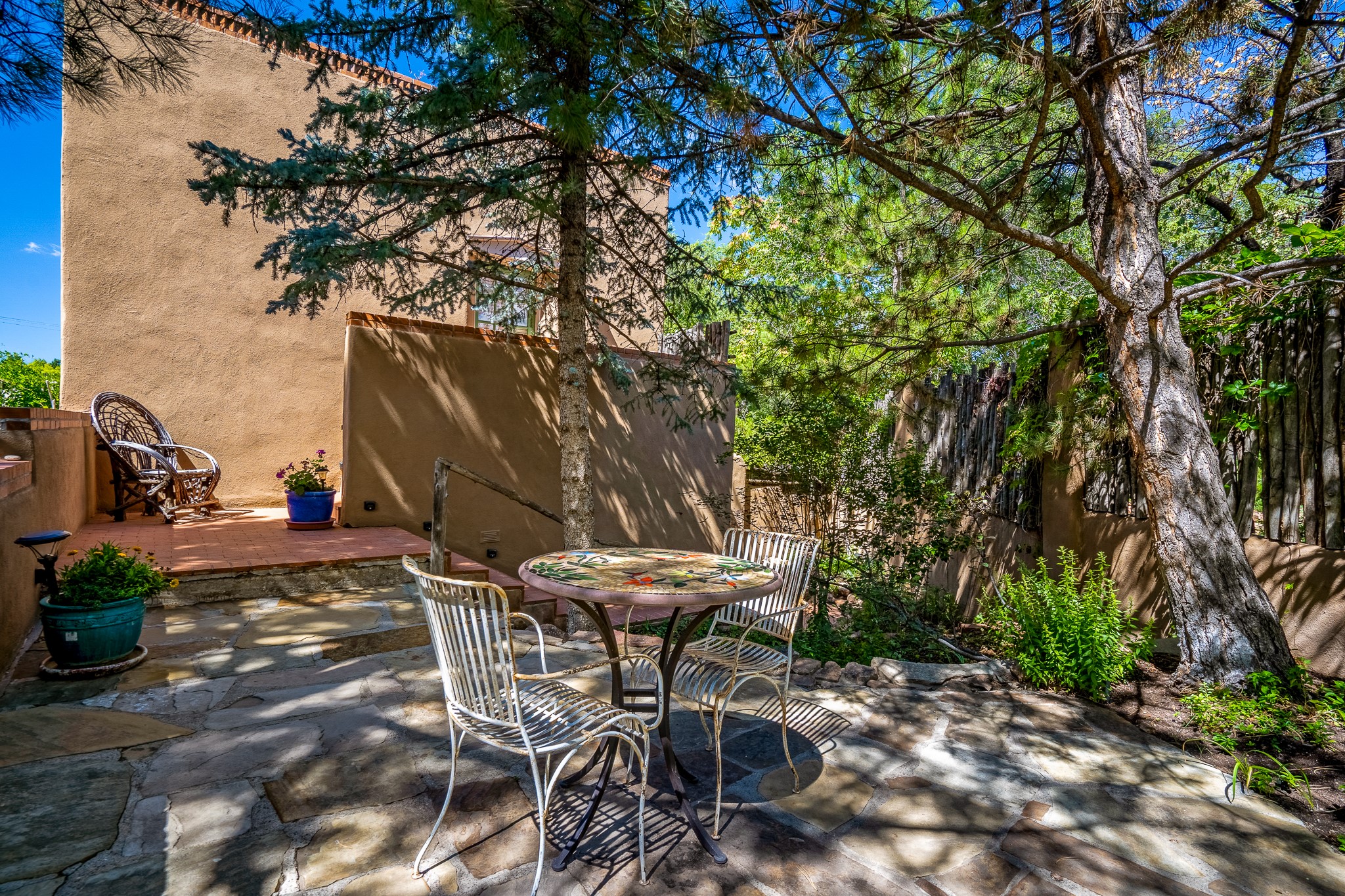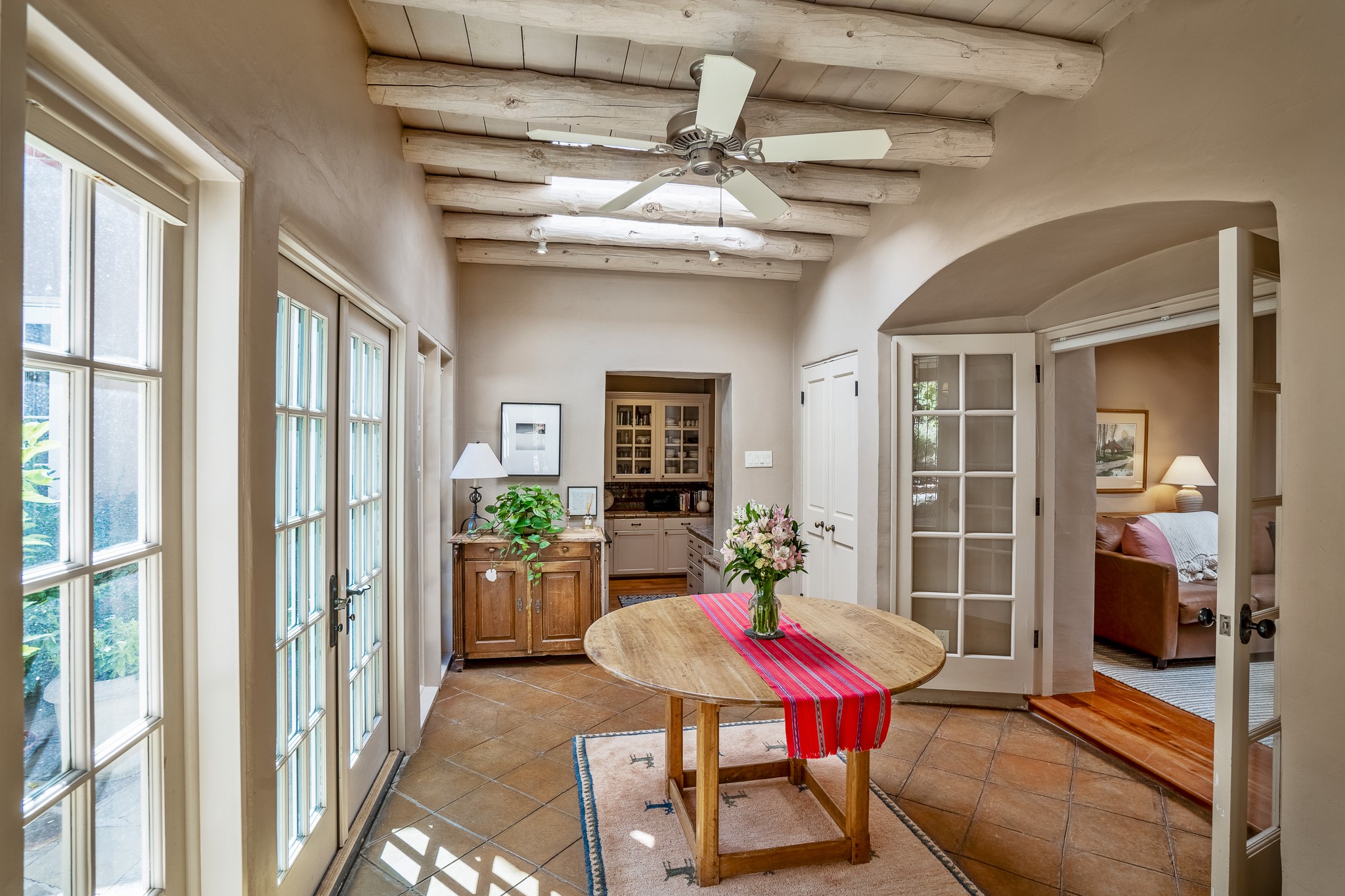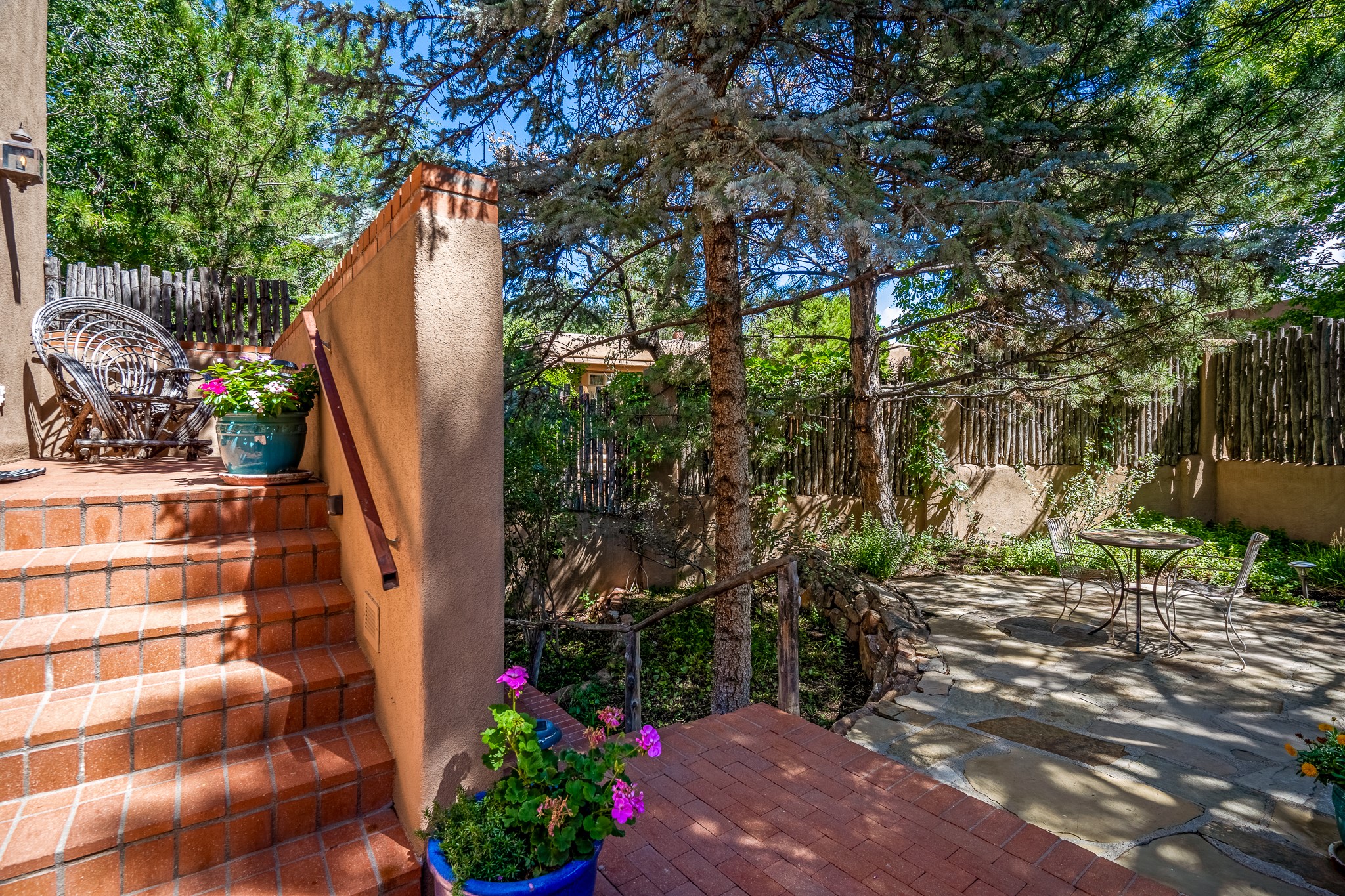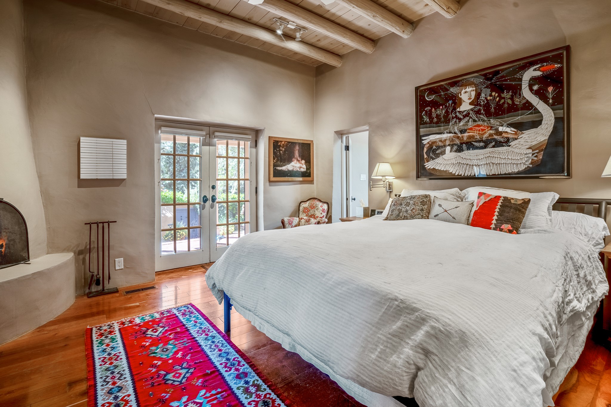 Welcome to the charming Eastside of Santa Fe, where history and beauty converge. Nestled within this enchanting neighborhood, we have an exquisite home that captures the essence of Santa Fe's rich heritage. This 4 bedroom, 4 bath residence boasts authentic Southwestern territorial architecture with traditional vigas and 5 fireplaces. With approximately 2,600 square feet of living space in the main home, there is ample room for comfortable living. The cozy living areas feature high, wood-beamed ceilings and skylights with french doors that open up onto private patios and courtyards, creating an open and airy feel. The kitchen has been tastefully updated with modern appliances while preserving its rustic charm. A private Casita with its own entrance has 1 bedroom and a 3 / 4 bathroom with a 2nd room that could serve as an office or studio. The kitchen opens up to a spacious living room with a large fireplace and grand windows that overlook the lush courtyard. There is a 2 car garage with two large walk-in closets for ample storage and a third room with laundry and a built-in dog wash tub. The outdoor spaces are a true private oasis, featuring multiple courtyards filled with vibrant landscaping and a serene fountain, perfect for relaxing or entertaining. You'll also find a covered portal, providing a shaded respite during sunny Santa Fe days. As you exit the private compound onto the quiet tree lined East Palace Avenue, walk a few blocks to the historic Santa Fe Plaza and immerse yourself in the city's vibrant culture, art galleries, and world-class dining. This is a rare opportunity to own a piece of Santa Fe's history in one of its most coveted neighborhoods. Don't miss your chance to experience the magic of this historic home. Contact us today for a private showing and step into the timeless beauty of Santa Fe's past.