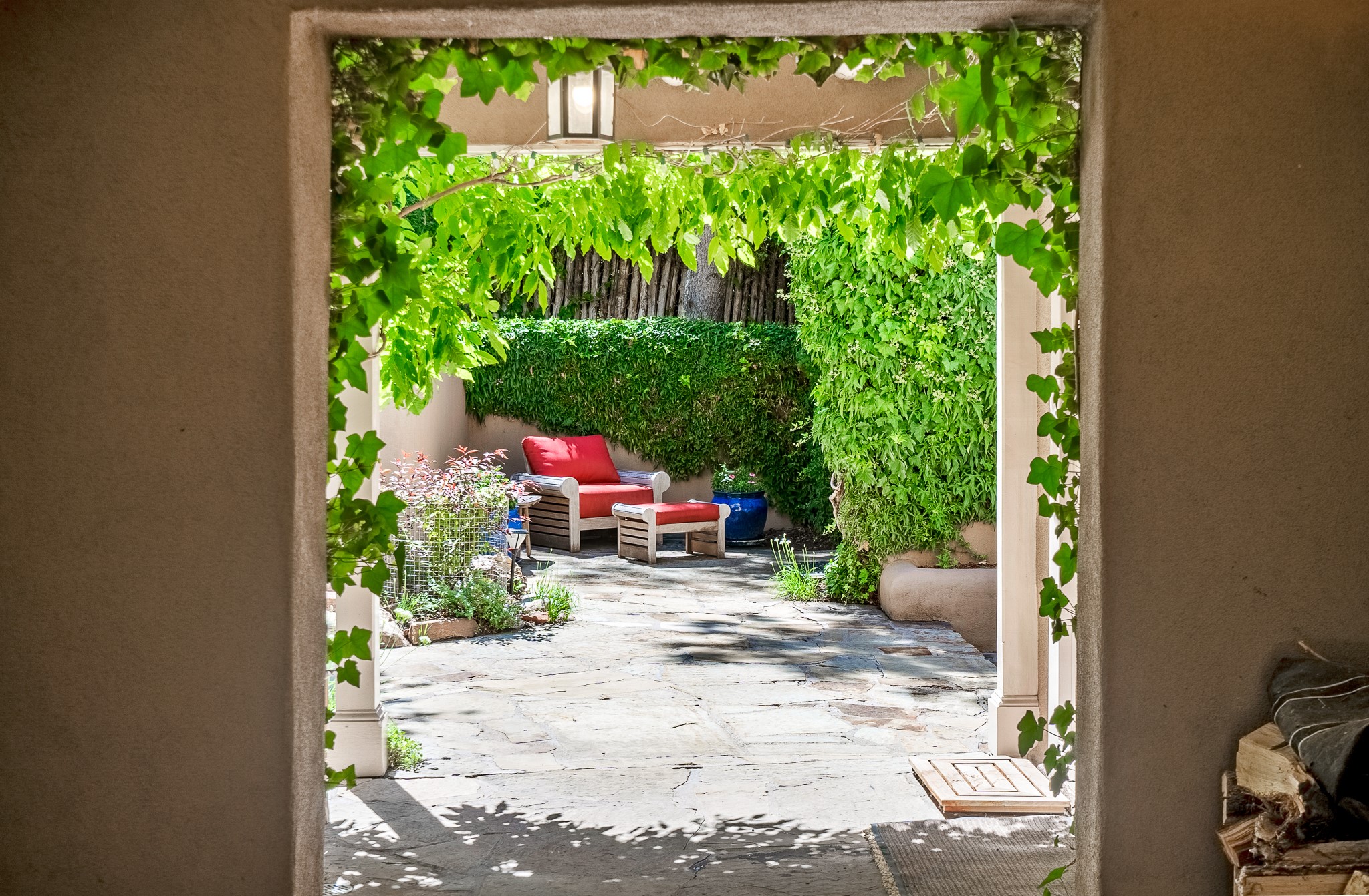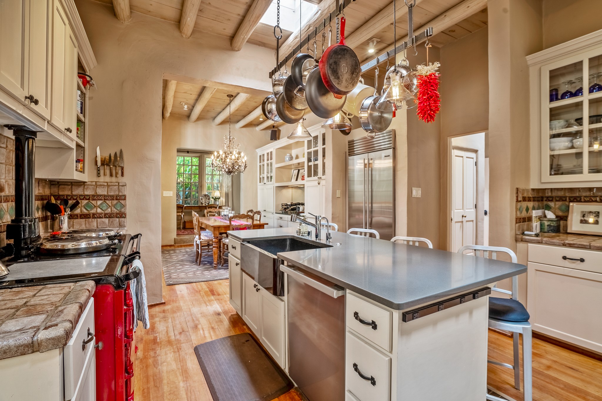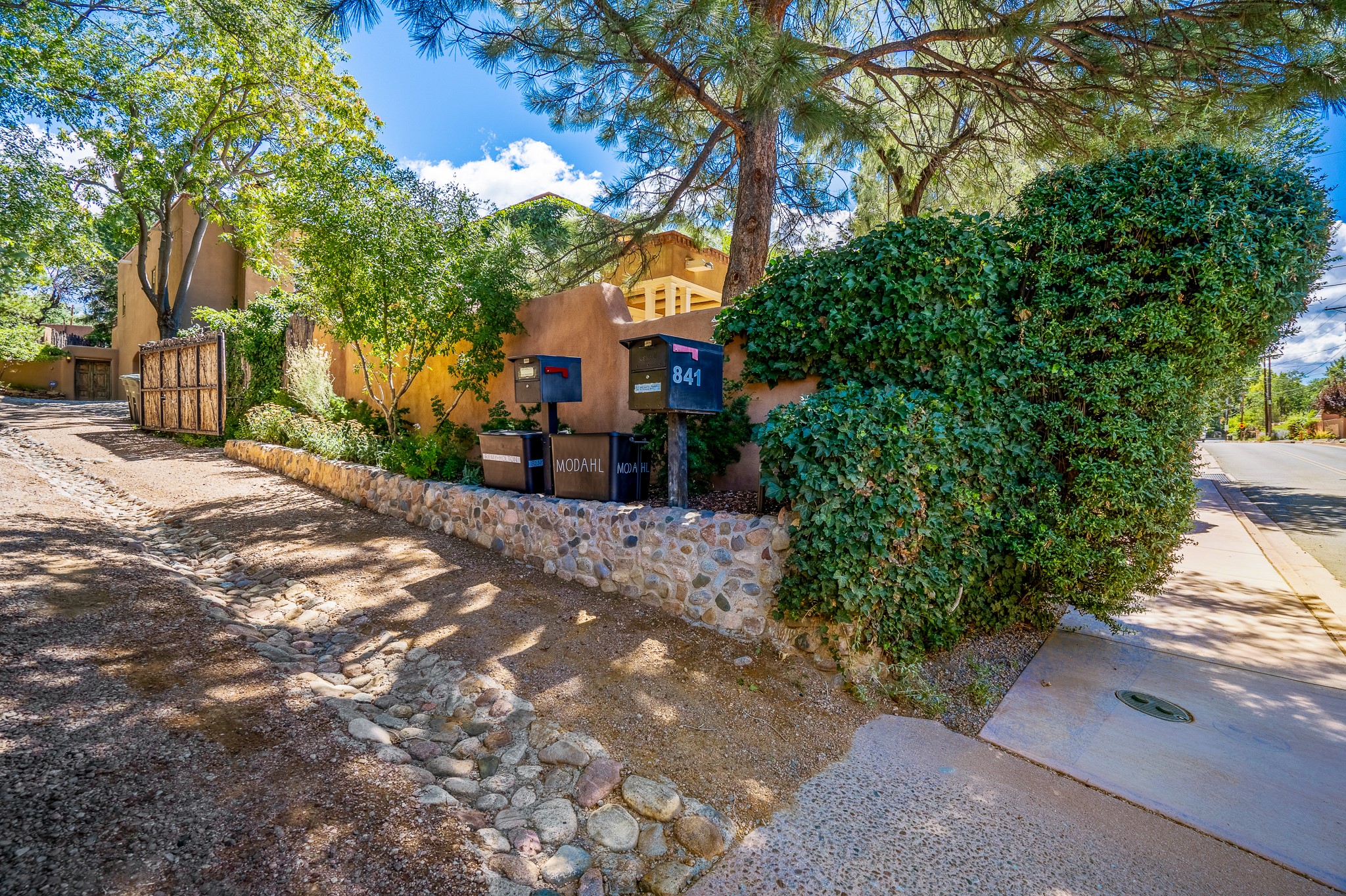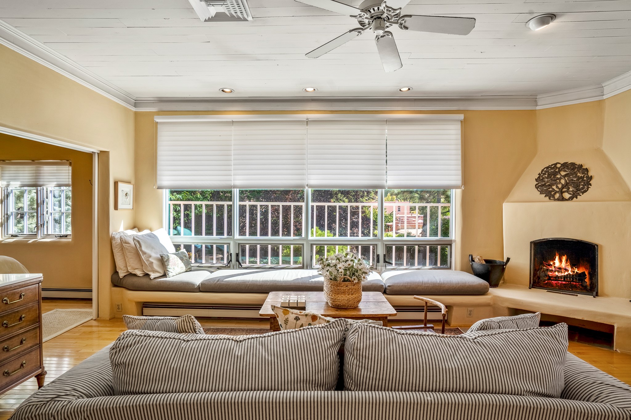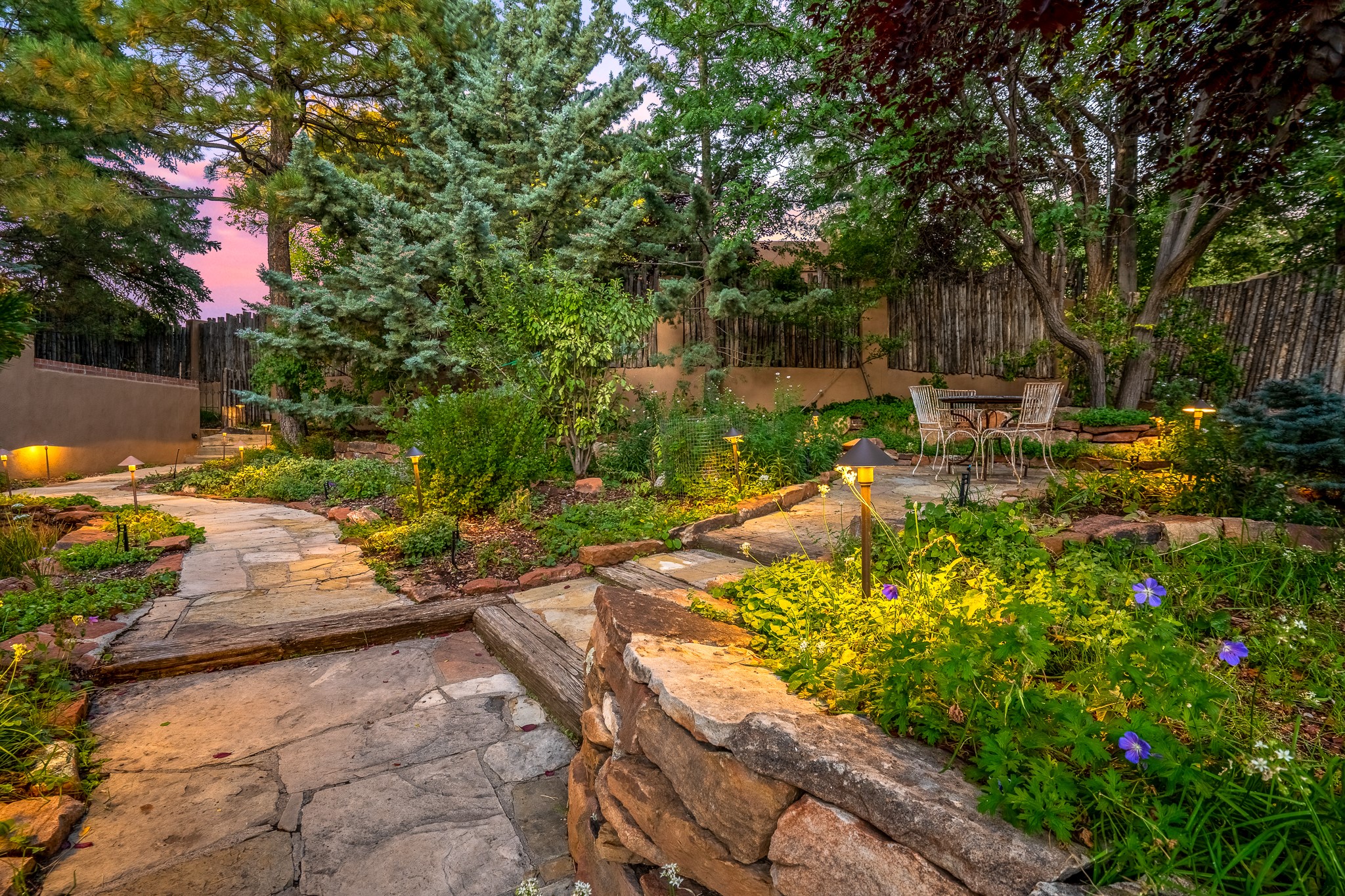 Welcome to the charming Eastside of Santa Fe, where history and beauty converge. Nestled within this enchanting neighborhood, we have an exquisite home that captures the essence of Santa Fe's rich heritage. This 4 bedroom, 4 bath residence boasts authentic Southwestern territorial architecture with traditional vigas and 5 fireplaces. With approximately 2,600 square feet of living space in the main home, there is ample room for comfortable living. The cozy living areas feature high, wood-beamed ceilings and skylights with french doors that open up onto private patios and courtyards, creating an open and airy feel. The kitchen has been tastefully updated with modern appliances while preserving its rustic charm. A private Casita with its own entrance has 1 bedroom and a 3 / 4 bathroom with a 2nd room that could serve as an office or studio. The kitchen opens up to a spacious living room with a large fireplace and grand windows that overlook the lush courtyard. There is a 2 car garage with two large walk-in closets for ample storage and a third room with laundry and a built-in dog wash tub. The outdoor spaces are a true private oasis, featuring multiple courtyards filled with vibrant landscaping and a serene fountain, perfect for relaxing or entertaining. You'll also find a covered portal, providing a shaded respite during sunny Santa Fe days. As you exit the private compound onto the quiet tree lined East Palace Avenue, walk a few blocks to the historic Santa Fe Plaza and immerse yourself in the city's vibrant culture, art galleries, and world-class dining. This is a rare opportunity to own a piece of Santa Fe's history in one of its most coveted neighborhoods. Don't miss your chance to experience the magic of this historic home. Contact us today for a private showing and step into the timeless beauty of Santa Fe's past.