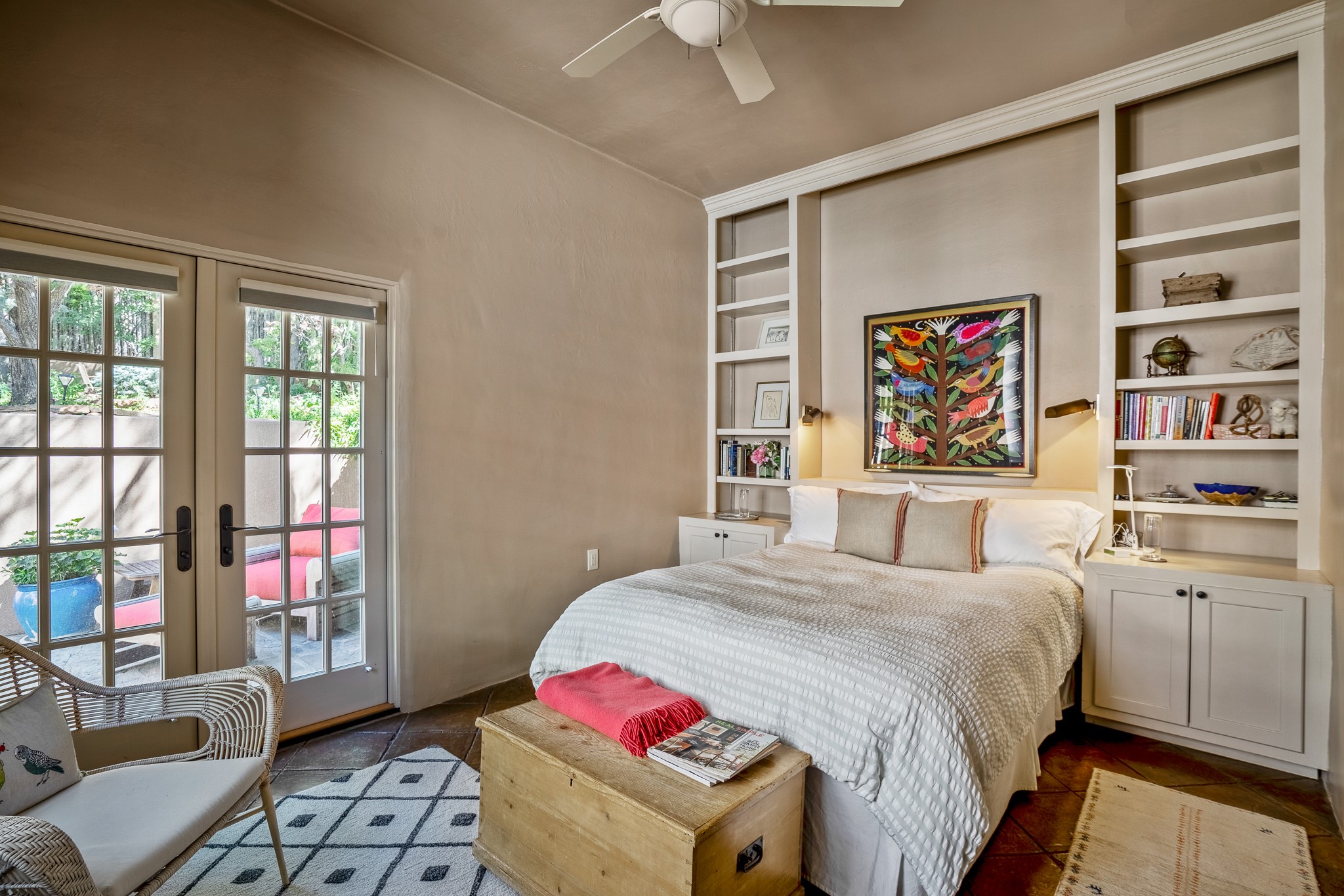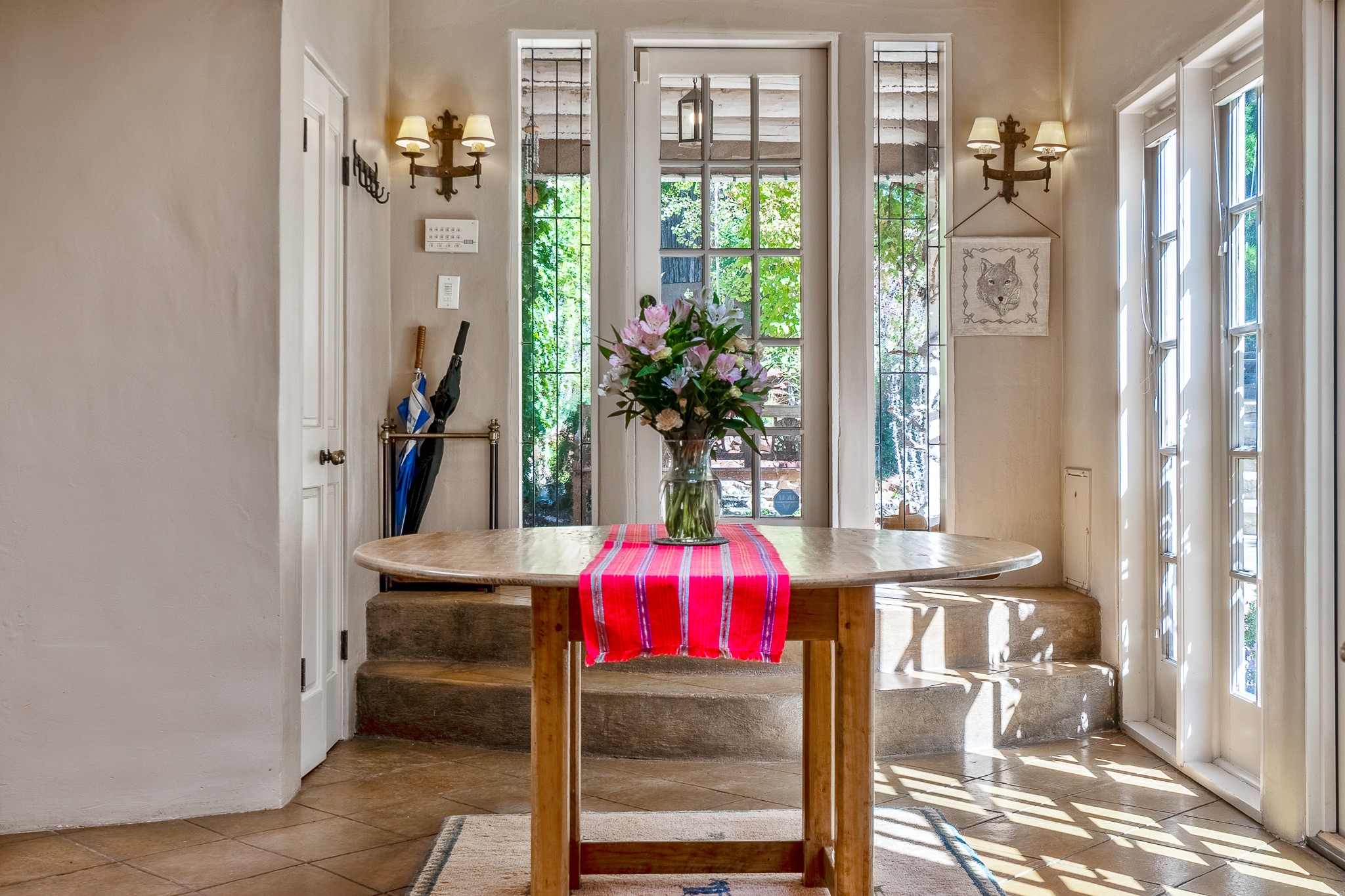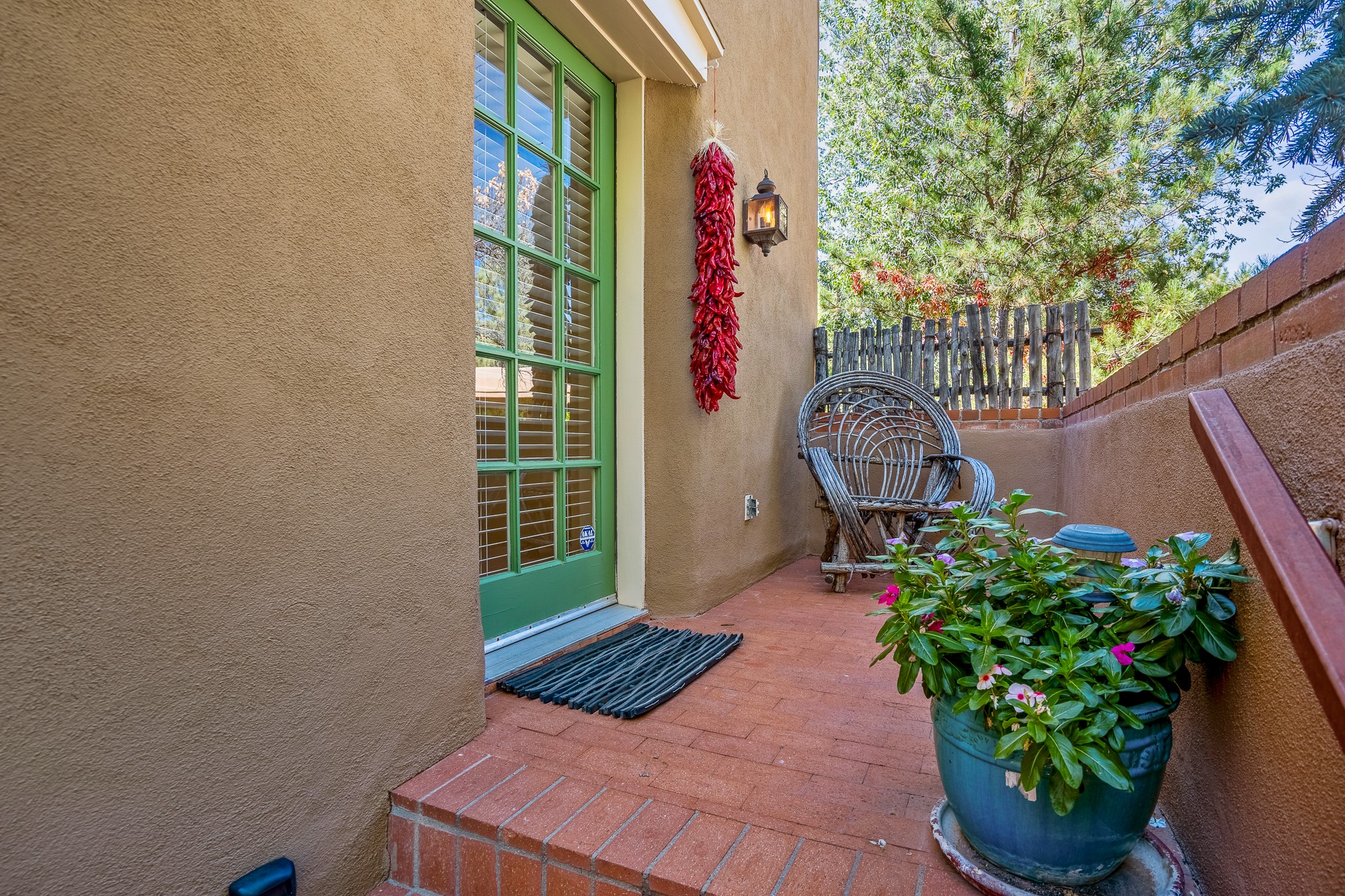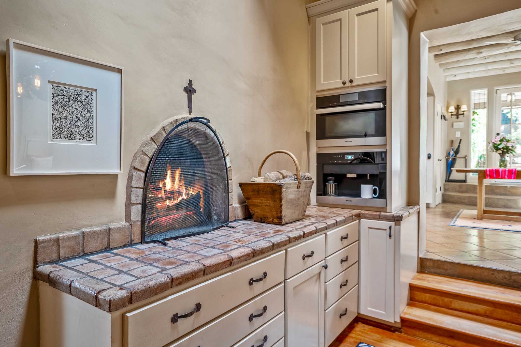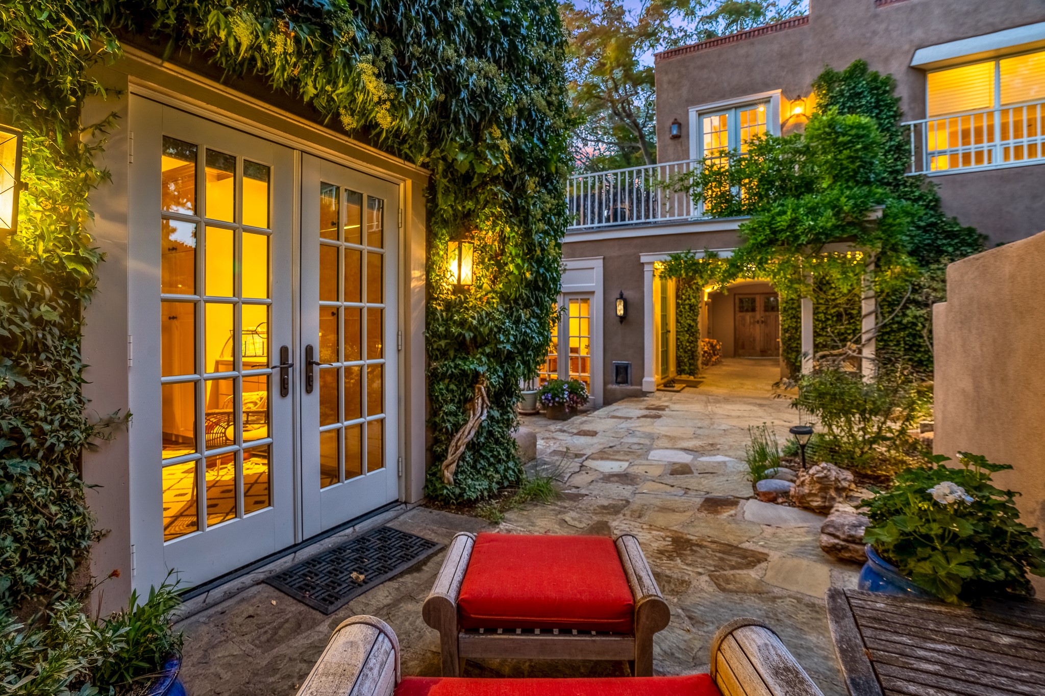 Welcome to the charming Eastside of Santa Fe, where history and beauty converge. Nestled within this enchanting neighborhood, we have an exquisite home that captures the essence of Santa Fe's rich heritage. This 4 bedroom, 4 bath residence boasts authentic Southwestern territorial architecture with traditional vigas and 5 fireplaces. With approximately 2,600 square feet of living space in the main home, there is ample room for comfortable living. The cozy living areas feature high, wood-beamed ceilings and skylights with french doors that open up onto private patios and courtyards, creating an open and airy feel. The kitchen has been tastefully updated with modern appliances while preserving its rustic charm. A private Casita with its own entrance has 1 bedroom and a 3 / 4 bathroom with a 2nd room that could serve as an office or studio. The kitchen opens up to a spacious living room with a large fireplace and grand windows that overlook the lush courtyard. There is a 2 car garage with two large walk-in closets for ample storage and a third room with laundry and a built-in dog wash tub. The outdoor spaces are a true private oasis, featuring multiple courtyards filled with vibrant landscaping and a serene fountain, perfect for relaxing or entertaining. You'll also find a covered portal, providing a shaded respite during sunny Santa Fe days. As you exit the private compound onto the quiet tree lined East Palace Avenue, walk a few blocks to the historic Santa Fe Plaza and immerse yourself in the city's vibrant culture, art galleries, and world-class dining. This is a rare opportunity to own a piece of Santa Fe's history in one of its most coveted neighborhoods. Don't miss your chance to experience the magic of this historic home. Contact us today for a private showing and step into the timeless beauty of Santa Fe's past.