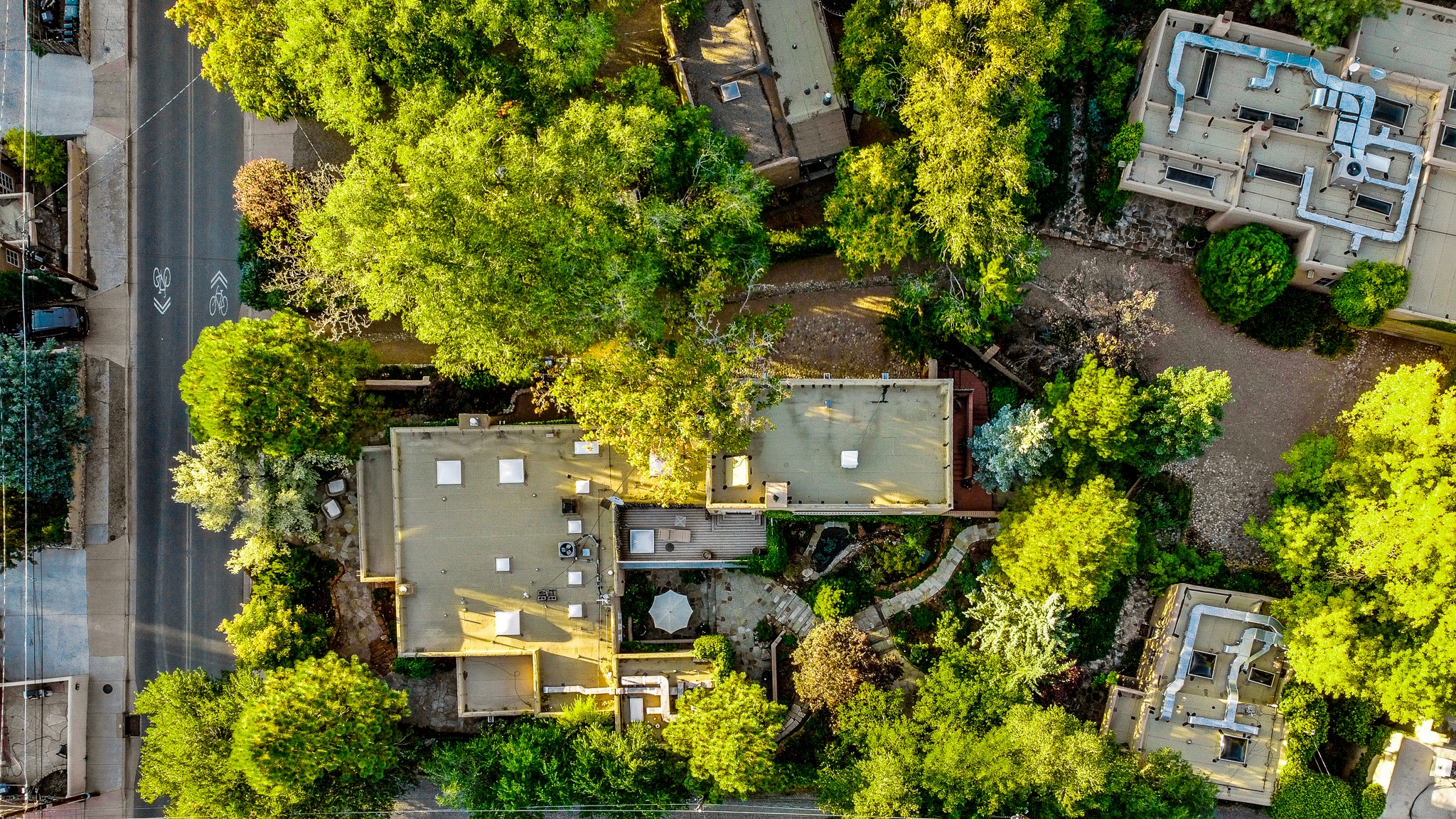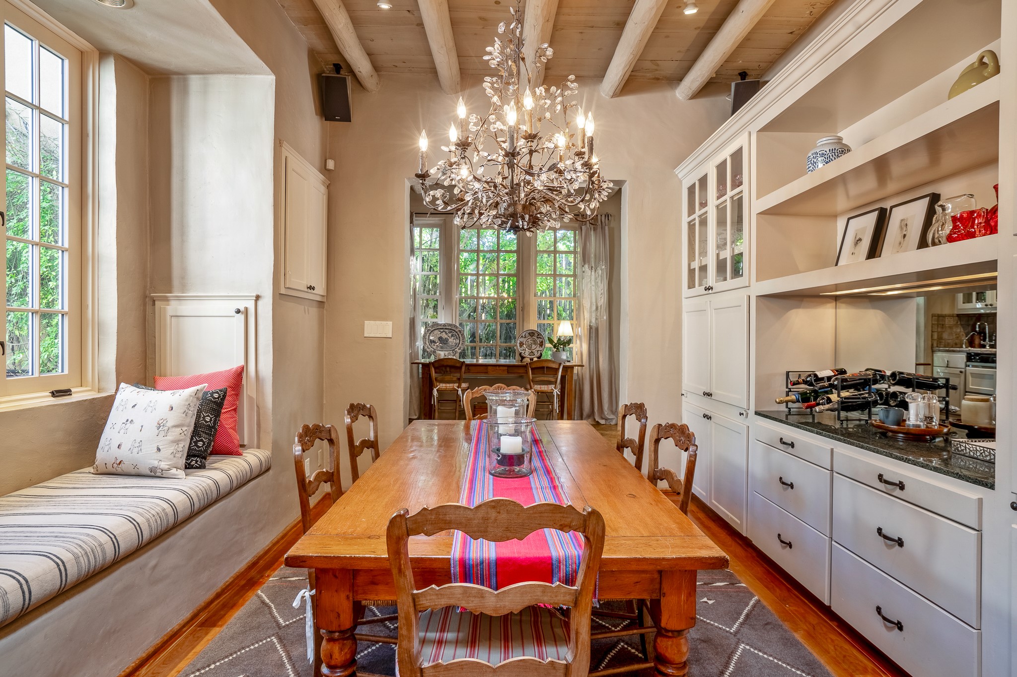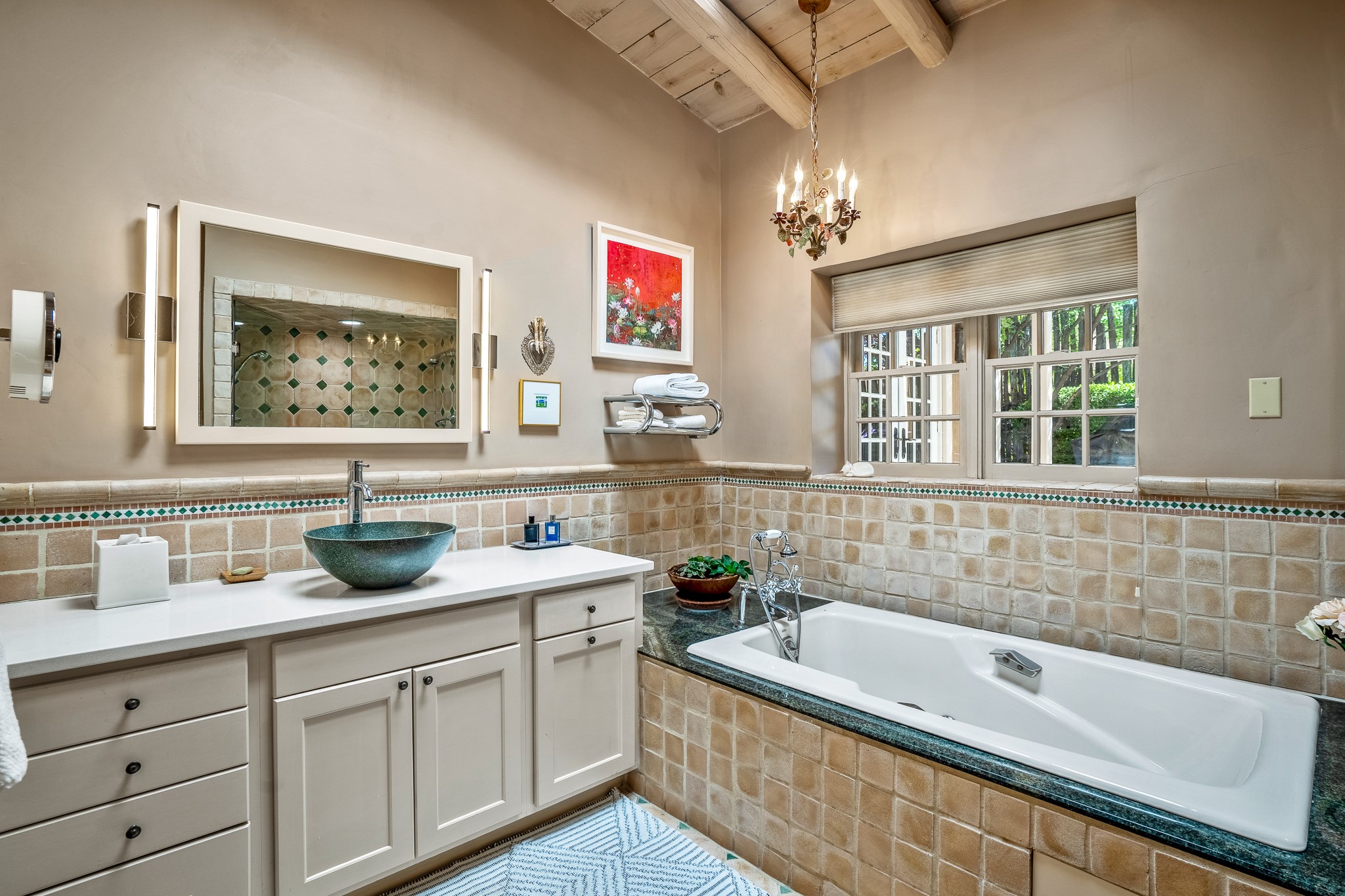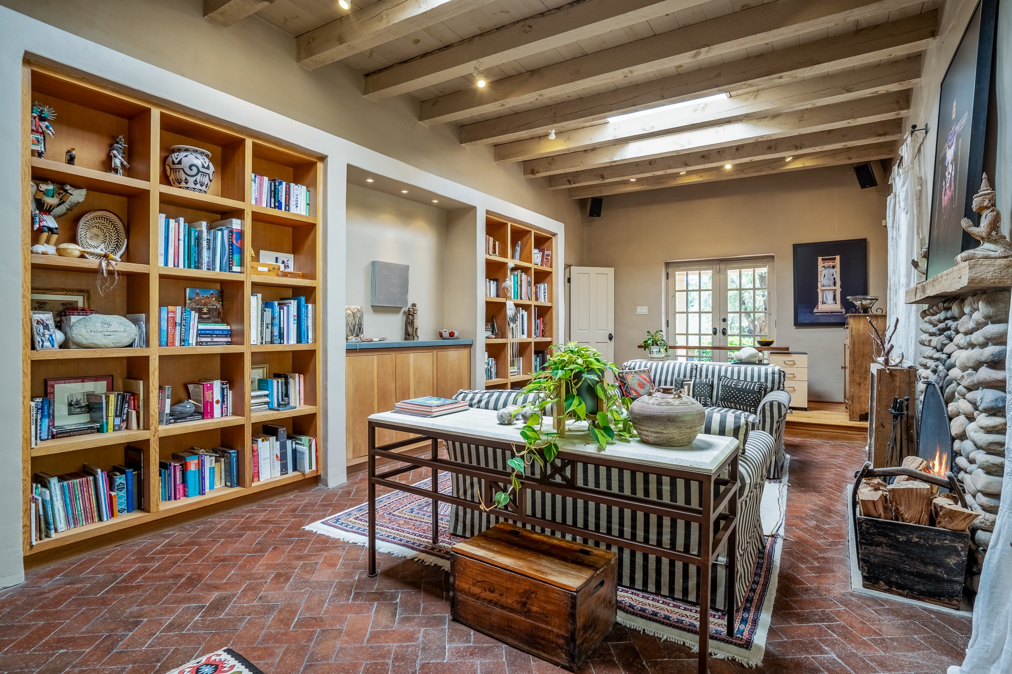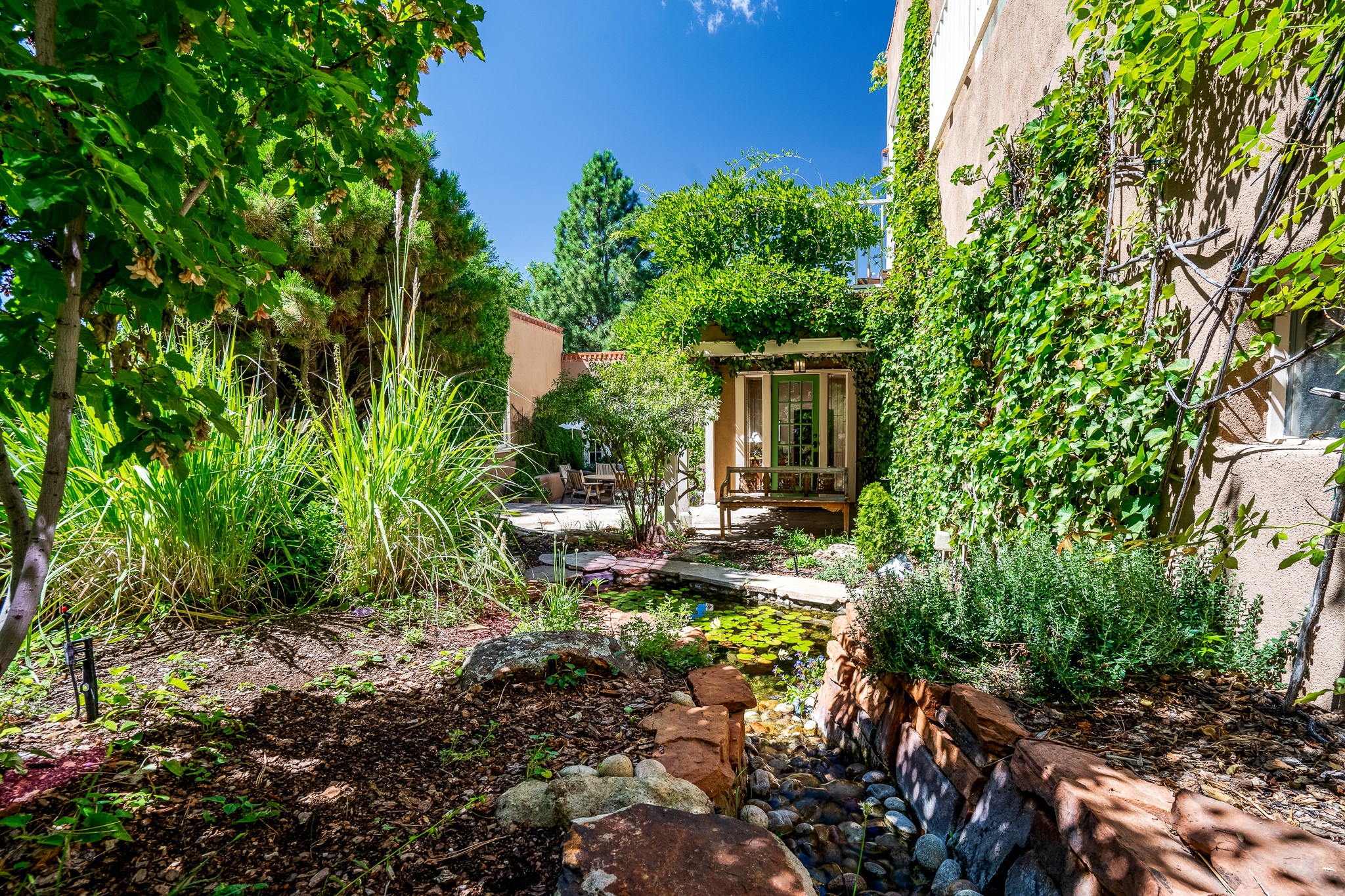 Welcome to the charming Eastside of Santa Fe, where history and beauty converge. Nestled within this enchanting neighborhood, we have an exquisite home that captures the essence of Santa Fe's rich heritage. This 4 bedroom, 4 bath residence boasts authentic Southwestern territorial architecture with traditional vigas and 5 fireplaces. With approximately 2,600 square feet of living space in the main home, there is ample room for comfortable living. The cozy living areas feature high, wood-beamed ceilings and skylights with french doors that open up onto private patios and courtyards, creating an open and airy feel. The kitchen has been tastefully updated with modern appliances while preserving its rustic charm. A private Casita with its own entrance has 1 bedroom and a 3 / 4 bathroom with a 2nd room that could serve as an office or studio. The kitchen opens up to a spacious living room with a large fireplace and grand windows that overlook the lush courtyard. There is a 2 car garage with two large walk-in closets for ample storage and a third room with laundry and a built-in dog wash tub. The outdoor spaces are a true private oasis, featuring multiple courtyards filled with vibrant landscaping and a serene fountain, perfect for relaxing or entertaining. You'll also find a covered portal, providing a shaded respite during sunny Santa Fe days. As you exit the private compound onto the quiet tree lined East Palace Avenue, walk a few blocks to the historic Santa Fe Plaza and immerse yourself in the city's vibrant culture, art galleries, and world-class dining. This is a rare opportunity to own a piece of Santa Fe's history in one of its most coveted neighborhoods. Don't miss your chance to experience the magic of this historic home. Contact us today for a private showing and step into the timeless beauty of Santa Fe's past.