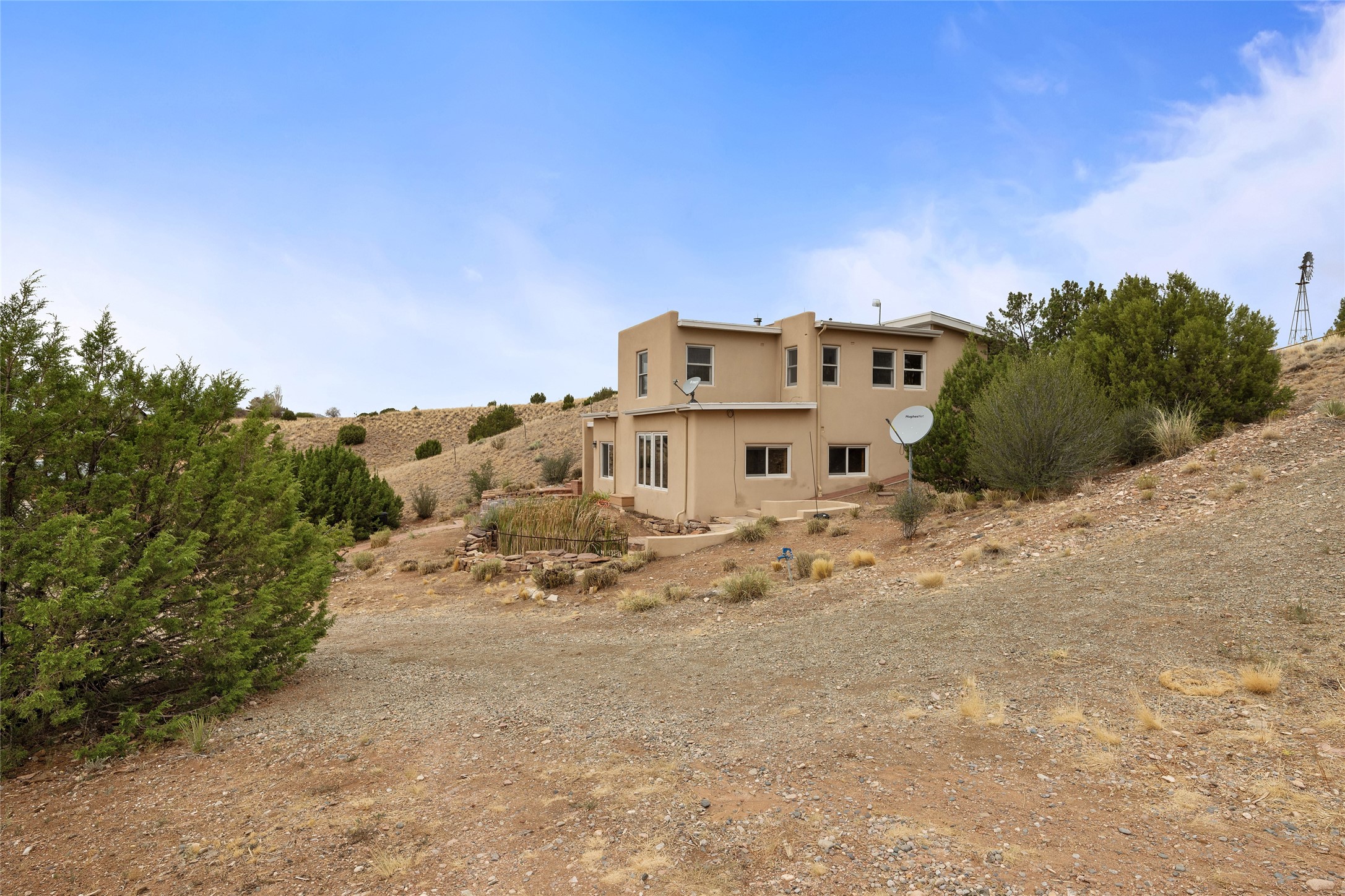 Live the Good Life with views of the Ortiz Mountains plus an instant revenue from the two sweet rentals, the present owners have been growing their own food and also installed a Universal Advanced Water System on the property, using the abundant well on site.The spacious 3 bedroom two bathroom house sits atop the hill, viewing the land around. It is 2,165 sq ft built in 2009. There are two additional guest houses, each with their own bathroom and bedroom. We think the first dwelling was built in 1979, that is 580sq ft. The other guest house/casita is 675sq ft, it is ADA compliant with a ramp, which can easily be removed if desired. The sellers have been using this as a family compound but any of the units could be a wonderful source of revenue for the buyer. This is just a 20 minute drive from town, 25 minutes to downtown.