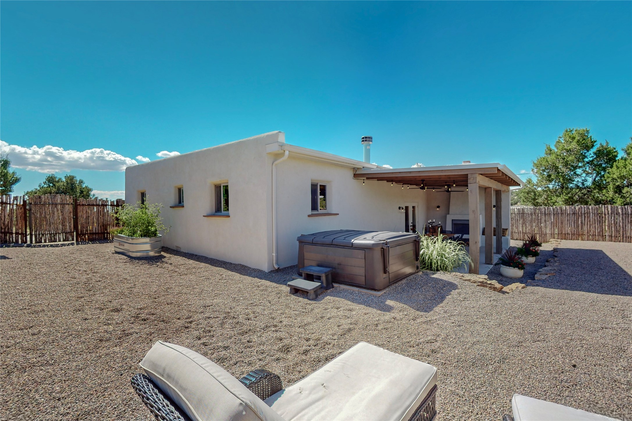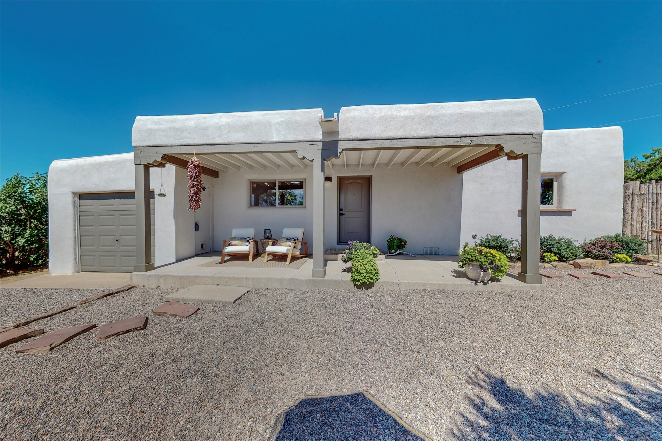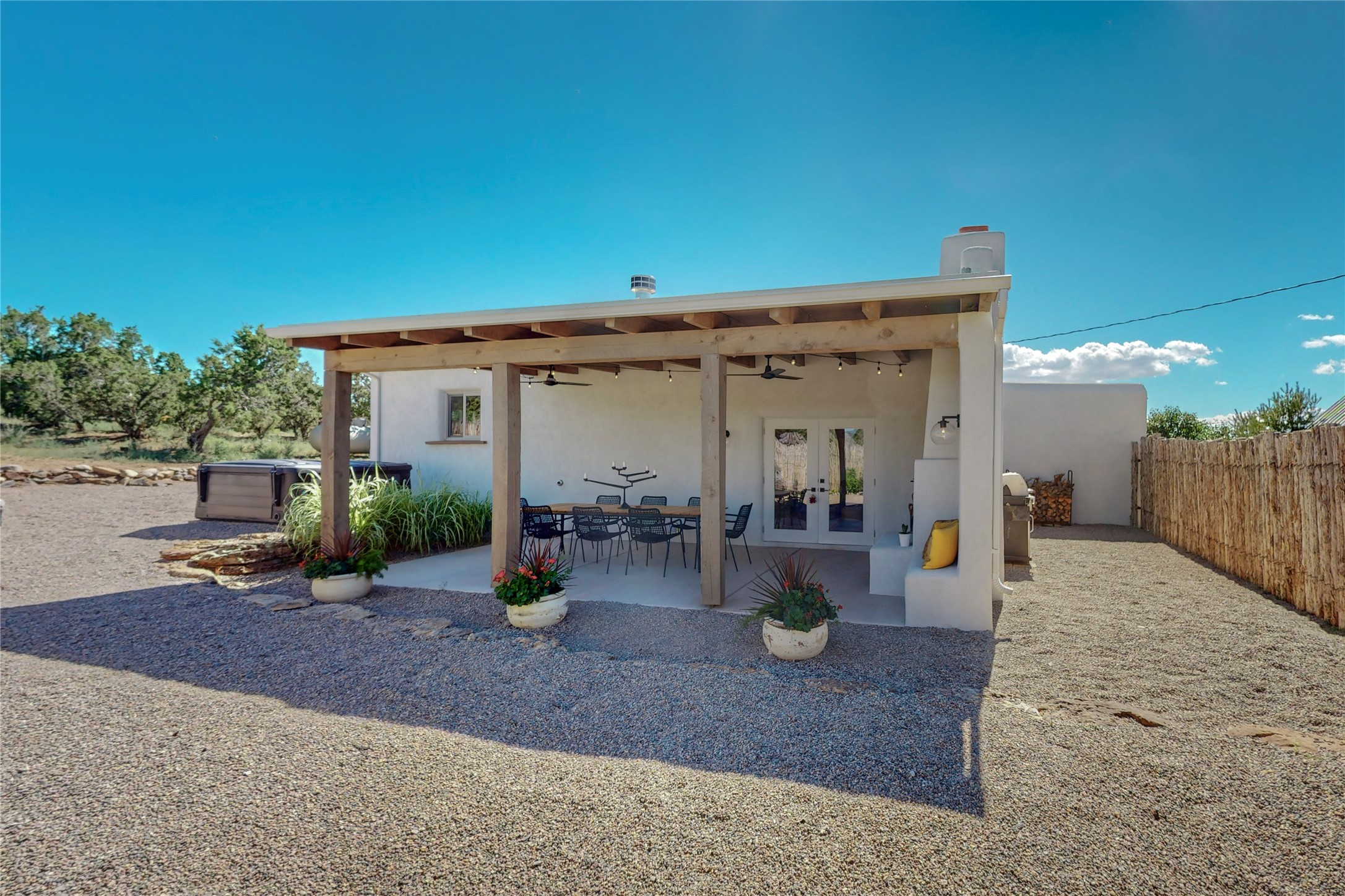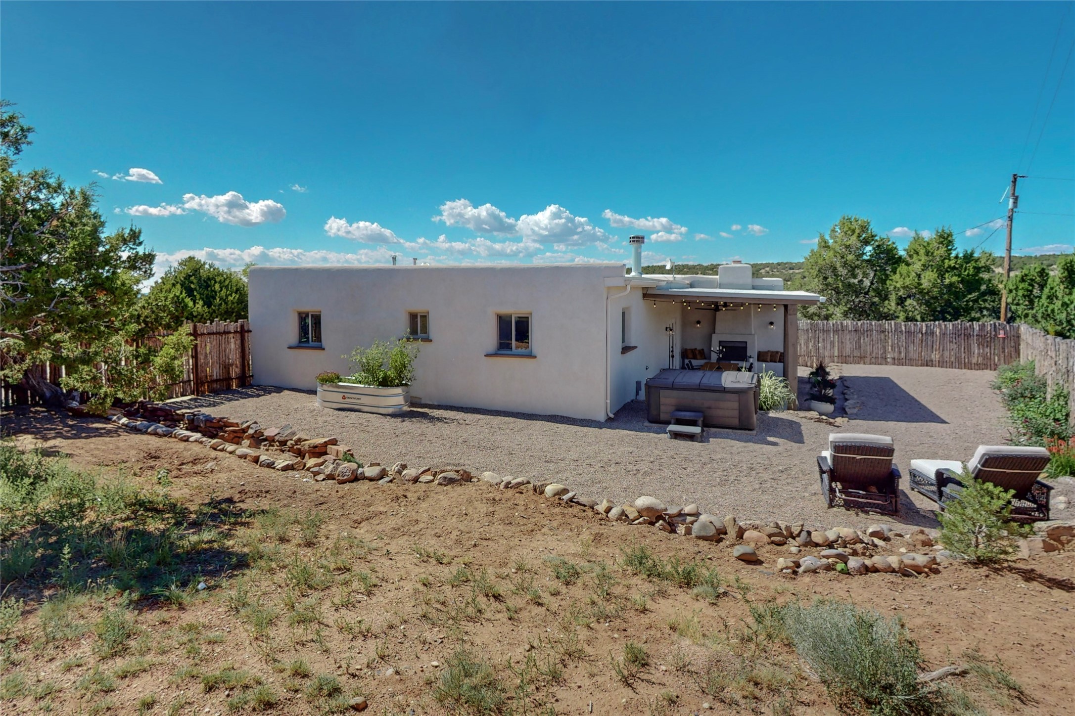 Charming Adobe home on 1.4 acres, just 2.5 miles to the Plaza. Some mountain views. Only a 3-minute drive to Frank Ortiz Dog Park and walk/ride out the back of the property and through the tunnel and you are on the La Tierra Trails. This authentic Adobe construction stays warm in the winter and cool in the summer. Upon entering this lovely home, you will be greeted by a completely remodeled kitchen (2022) with all-new stainless appliances, maple cabinets, and white quartz countertops. In 2021, Seller added a wood-burning Kiva that is currently using gas logs with a remote start. Also added in 2021 is a 300 sf Portal with another wood-burning fireplace. Enjoy a fire while relaxing in the 5-person Tuff Spas hot tub. No HOA. The seller will share architectural plans for an ensuite bath approved by the City in 2021. Add a roof-top deck, and you will have 360-degree mountain views. You could even add a Casita or shop (with City approval.) This home is convenient to everything, including grocery stores, restaurants, DeVargas Mall and 599 for those commuting to Los Alamos. 50 mil membrane Roof installed in 2018. Transferrable warranty with 10 years remaining.