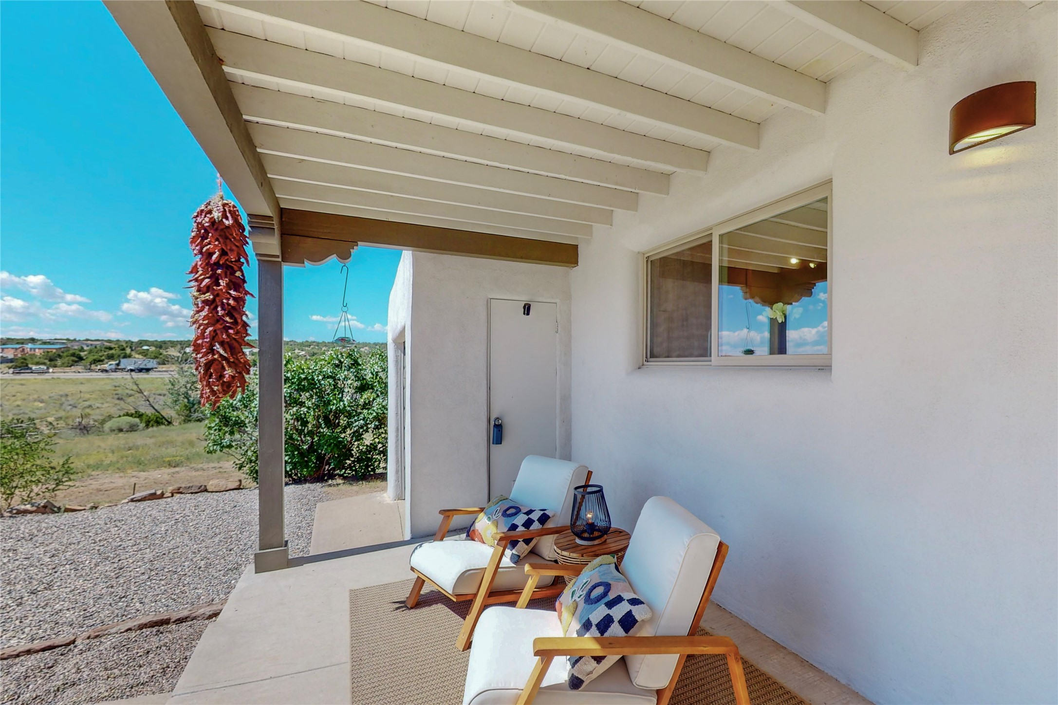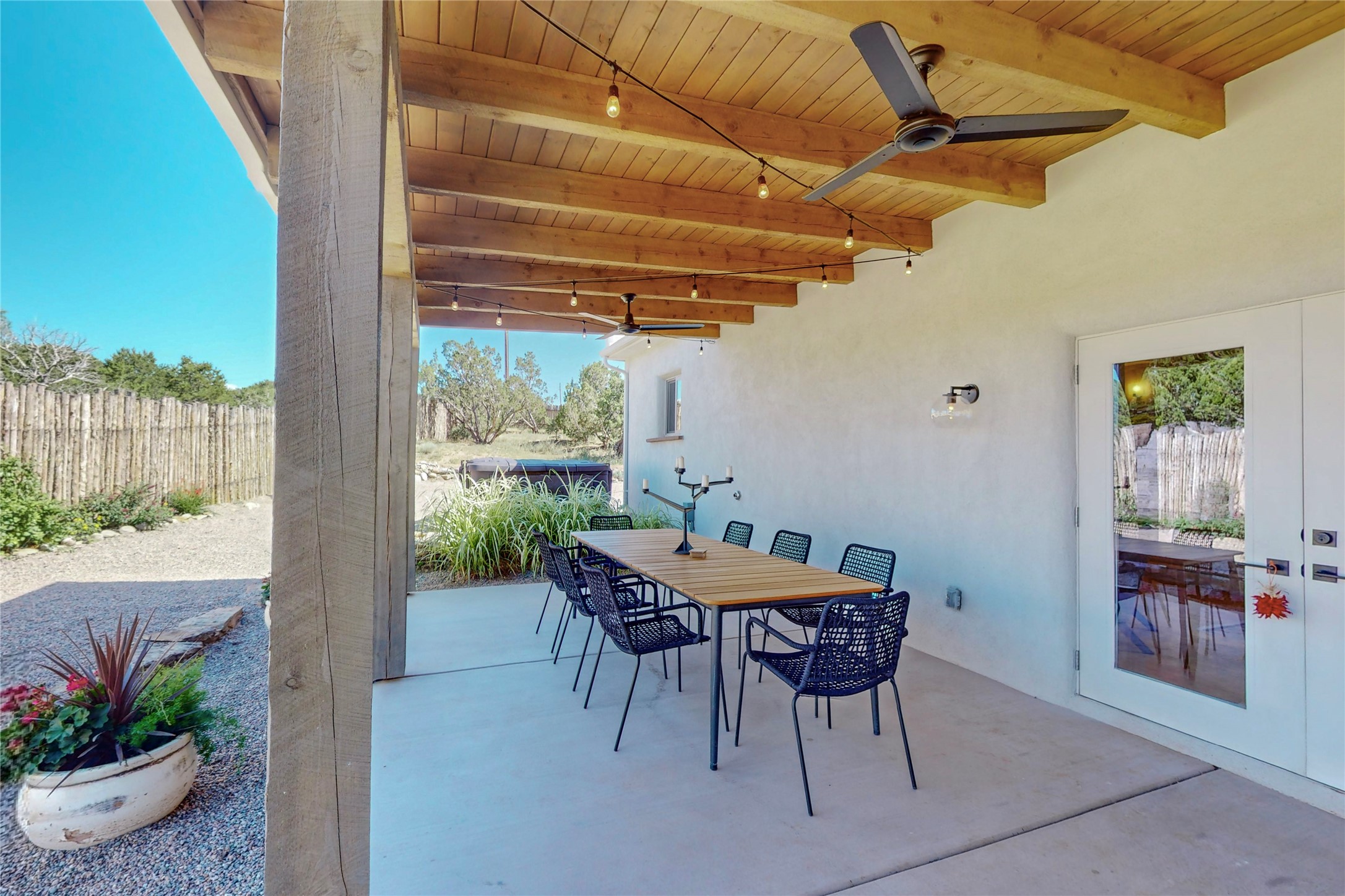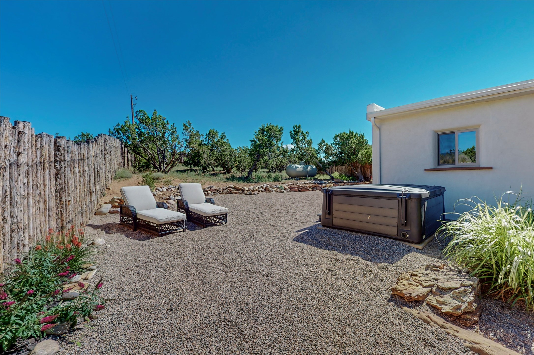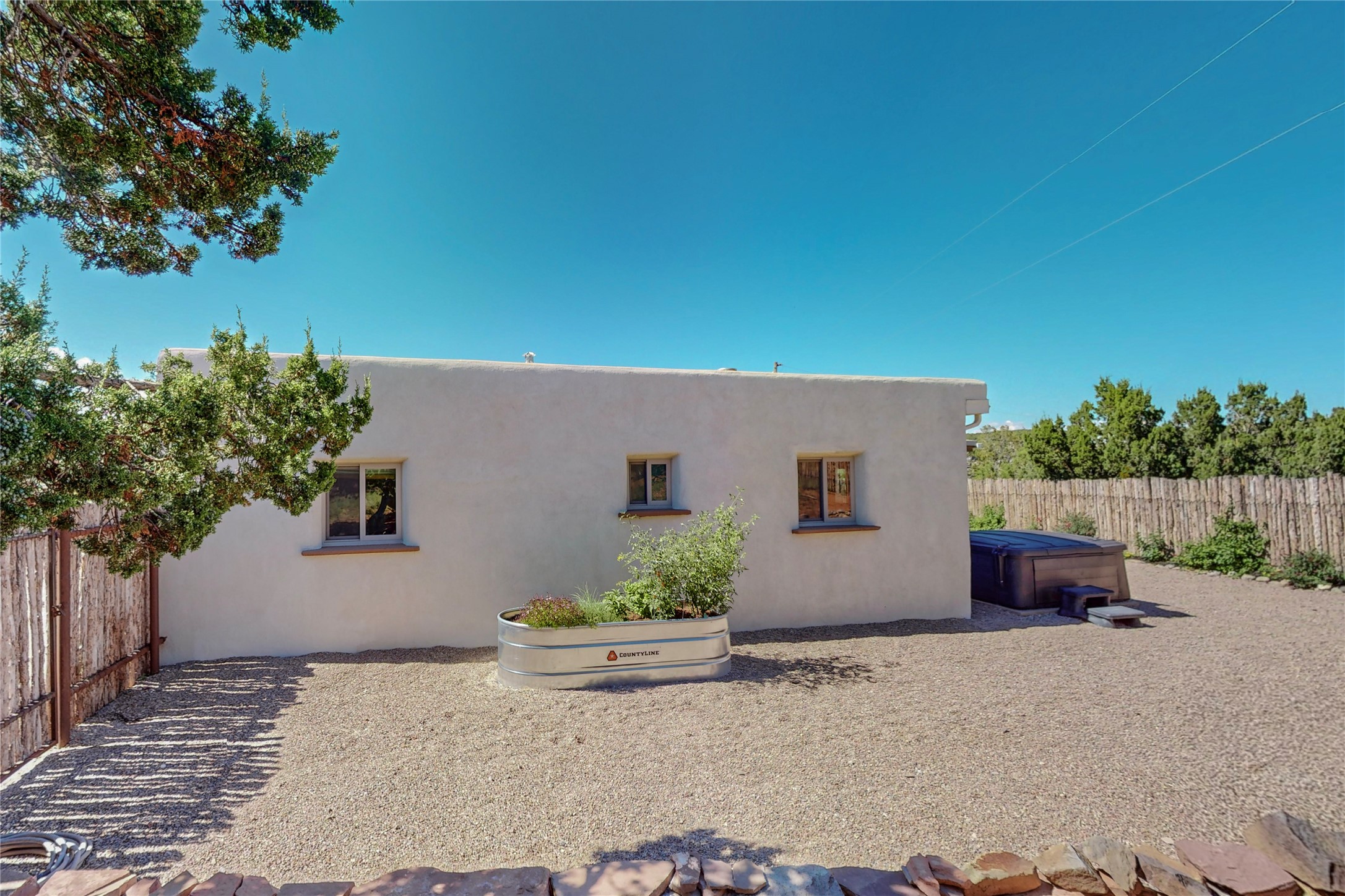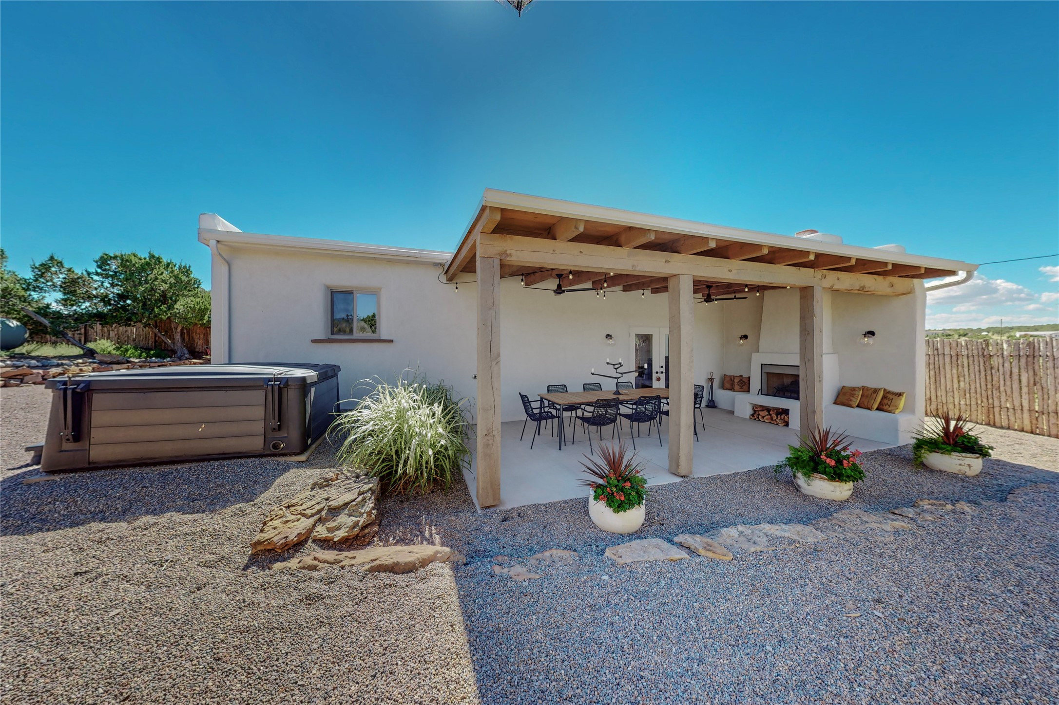 Charming Adobe home on 1.4 acres, just 2.5 miles to the Plaza. Some mountain views. Only a 3-minute drive to Frank Ortiz Dog Park and walk/ride out the back of the property and through the tunnel and you are on the La Tierra Trails. This authentic Adobe construction stays warm in the winter and cool in the summer. Upon entering this lovely home, you will be greeted by a completely remodeled kitchen (2022) with all-new stainless appliances, maple cabinets, and white quartz countertops. In 2021, Seller added a wood-burning Kiva that is currently using gas logs with a remote start. Also added in 2021 is a 300 sf Portal with another wood-burning fireplace. Enjoy a fire while relaxing in the 5-person Tuff Spas hot tub. No HOA. The seller will share architectural plans for an ensuite bath approved by the City in 2021. Add a roof-top deck, and you will have 360-degree mountain views. You could even add a Casita or shop (with City approval.) This home is convenient to everything, including grocery stores, restaurants, DeVargas Mall and 599 for those commuting to Los Alamos. 50 mil membrane Roof installed in 2018. Transferrable warranty with 10 years remaining.