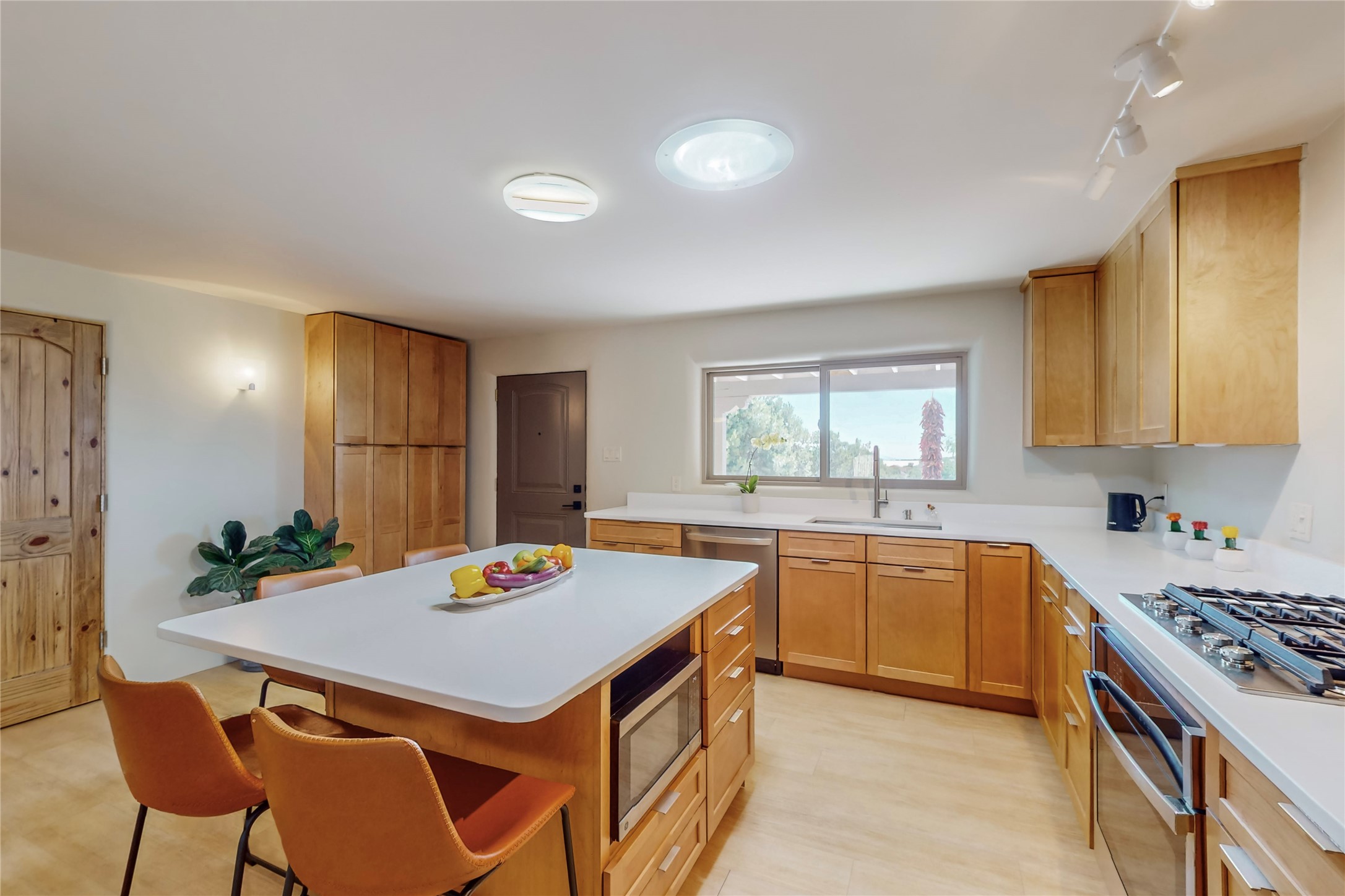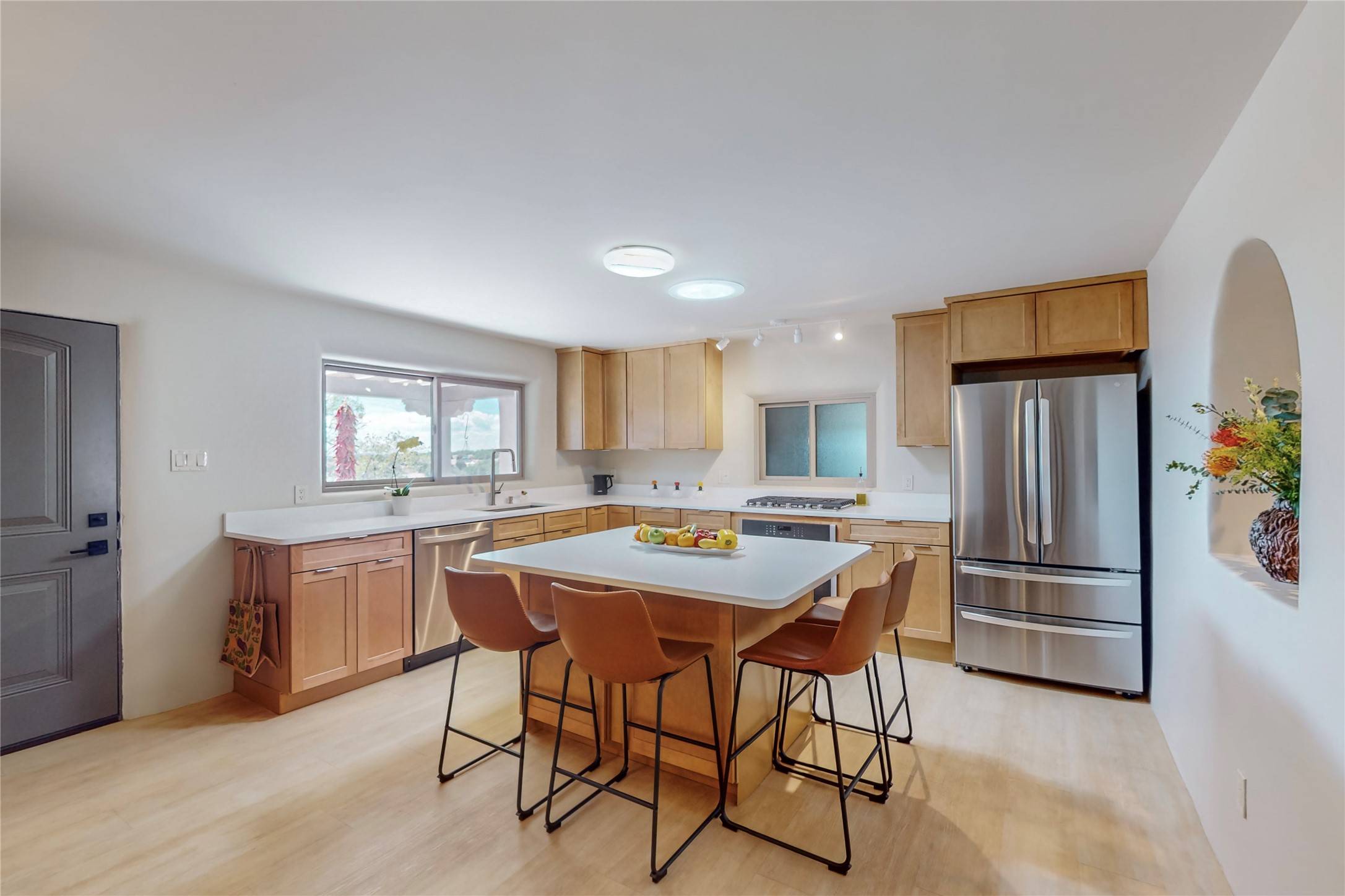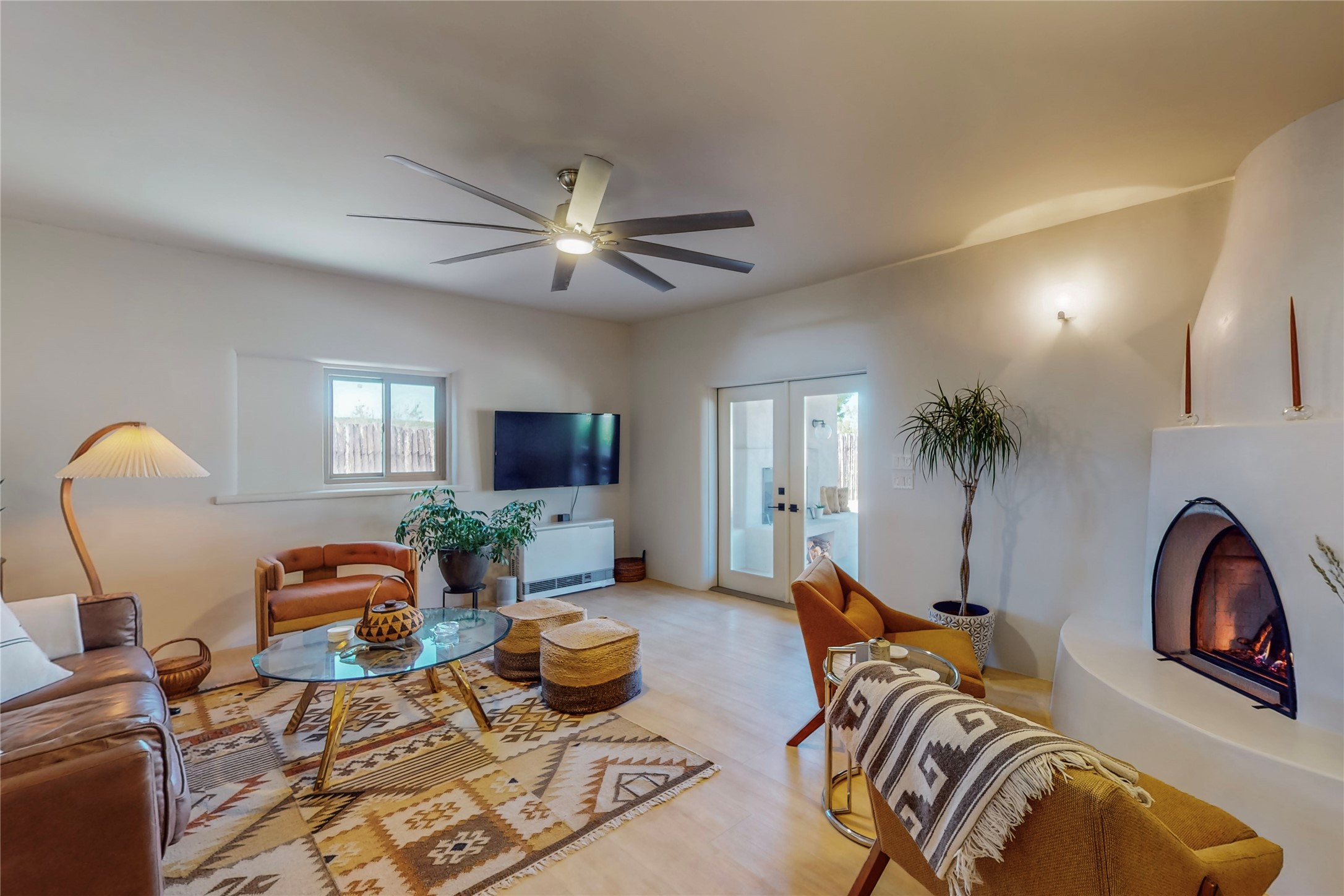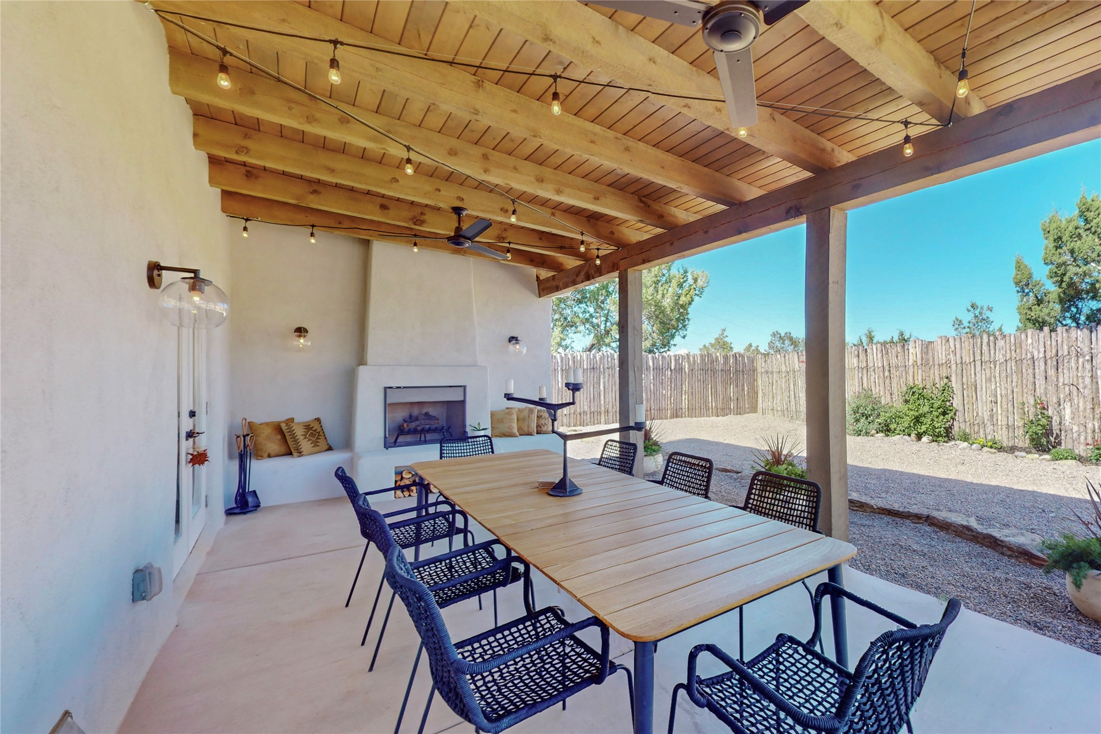 Charming Adobe home on 1.4 acres, just 2.5 miles to the Plaza. Some mountain views. Only a 3-minute drive to Frank Ortiz Dog Park and walk/ride out the back of the property and through the tunnel and you are on the La Tierra Trails. This authentic Adobe construction stays warm in the winter and cool in the summer. Upon entering this lovely home, you will be greeted by a completely remodeled kitchen (2022) with all-new stainless appliances, maple cabinets, and white quartz countertops. In 2021, Seller added a wood-burning Kiva that is currently using gas logs with a remote start. Also added in 2021 is a 300 sf Portal with another wood-burning fireplace. Enjoy a fire while relaxing in the 5-person Tuff Spas hot tub. No HOA. The seller will share architectural plans for an ensuite bath approved by the City in 2021. Add a roof-top deck, and you will have 360-degree mountain views. You could even add a Casita or shop (with City approval.) This home is convenient to everything, including grocery stores, restaurants, DeVargas Mall and 599 for those commuting to Los Alamos. 50 mil membrane Roof installed in 2018. Transferrable warranty with 10 years remaining.