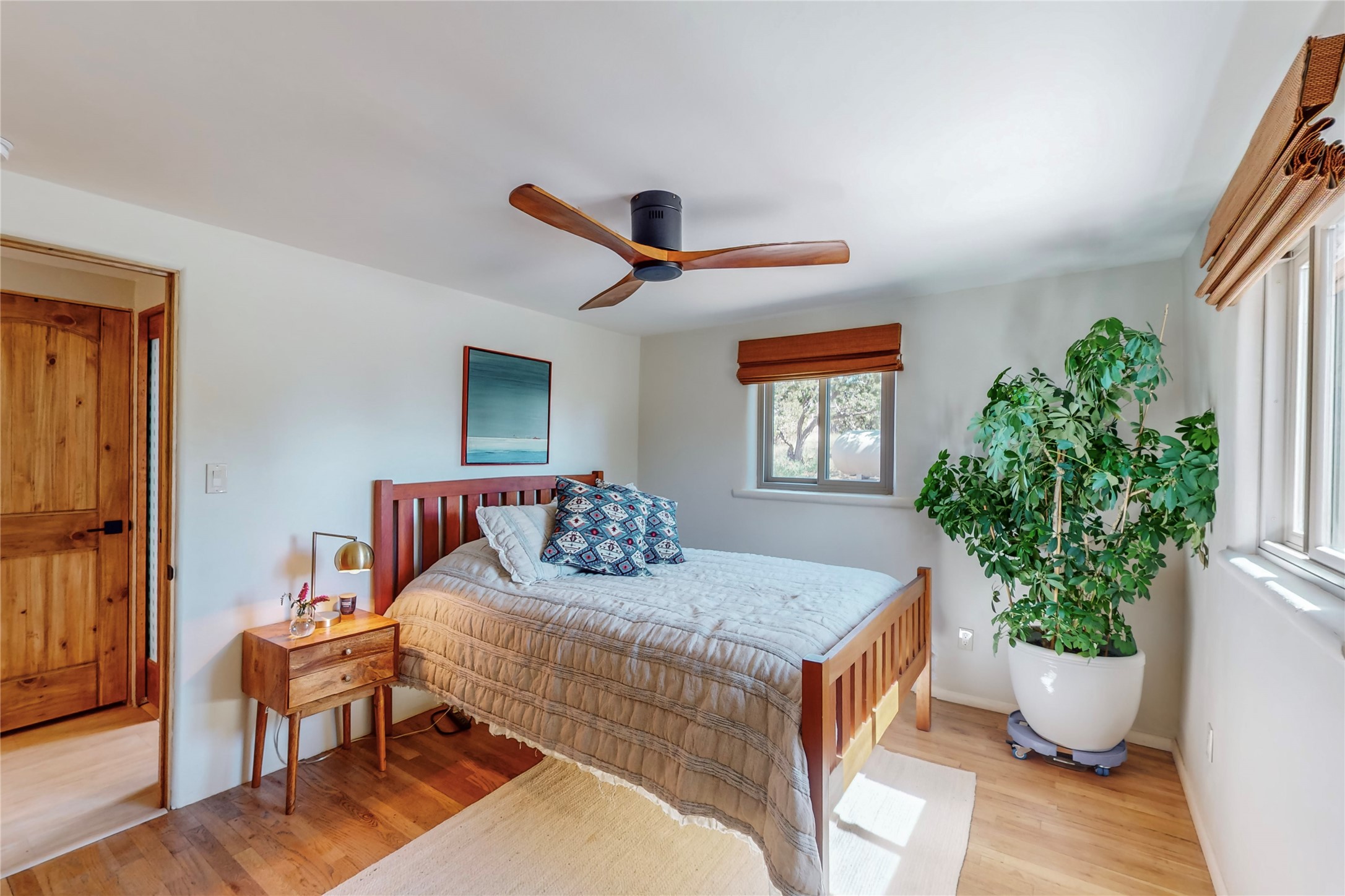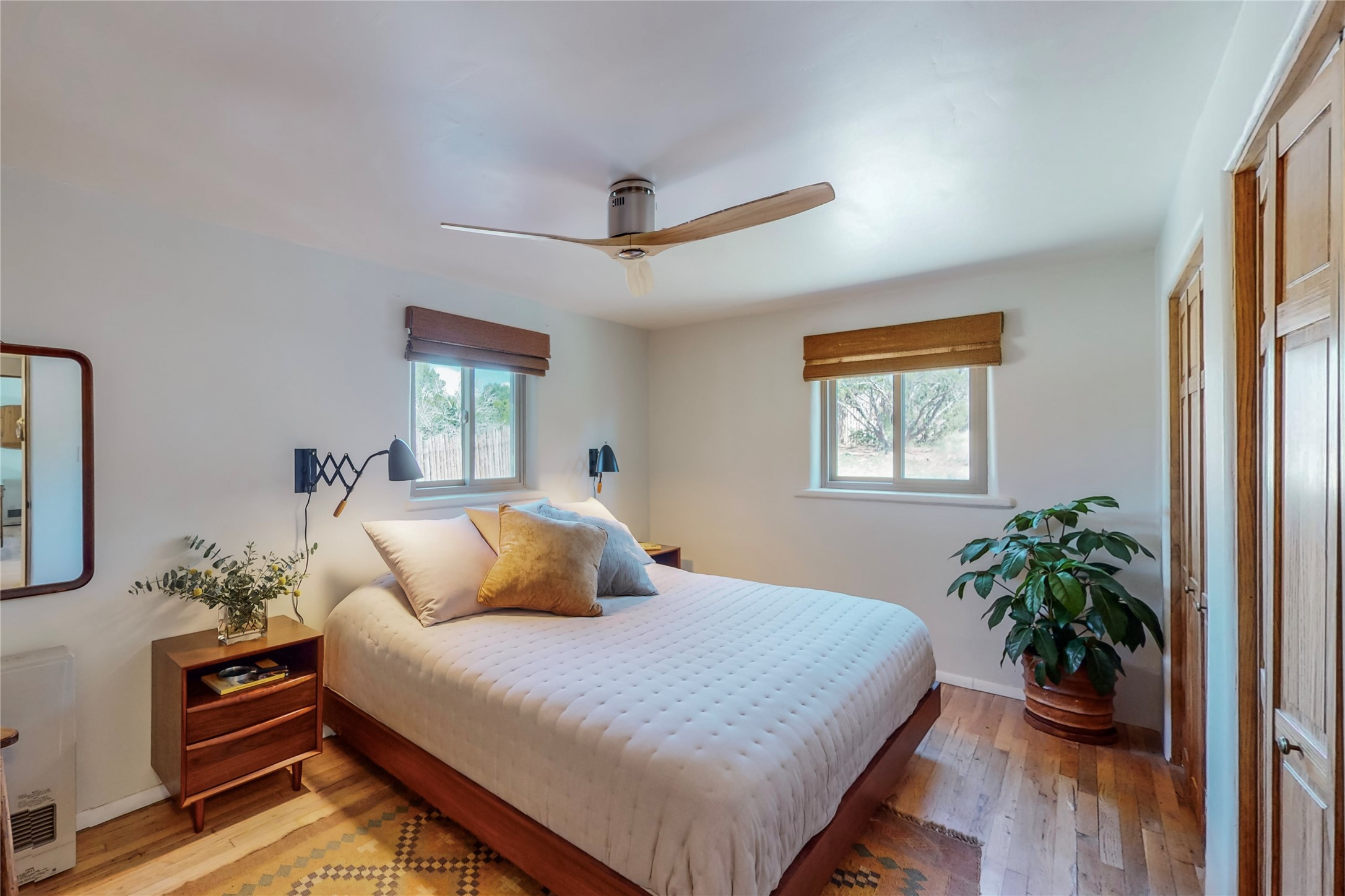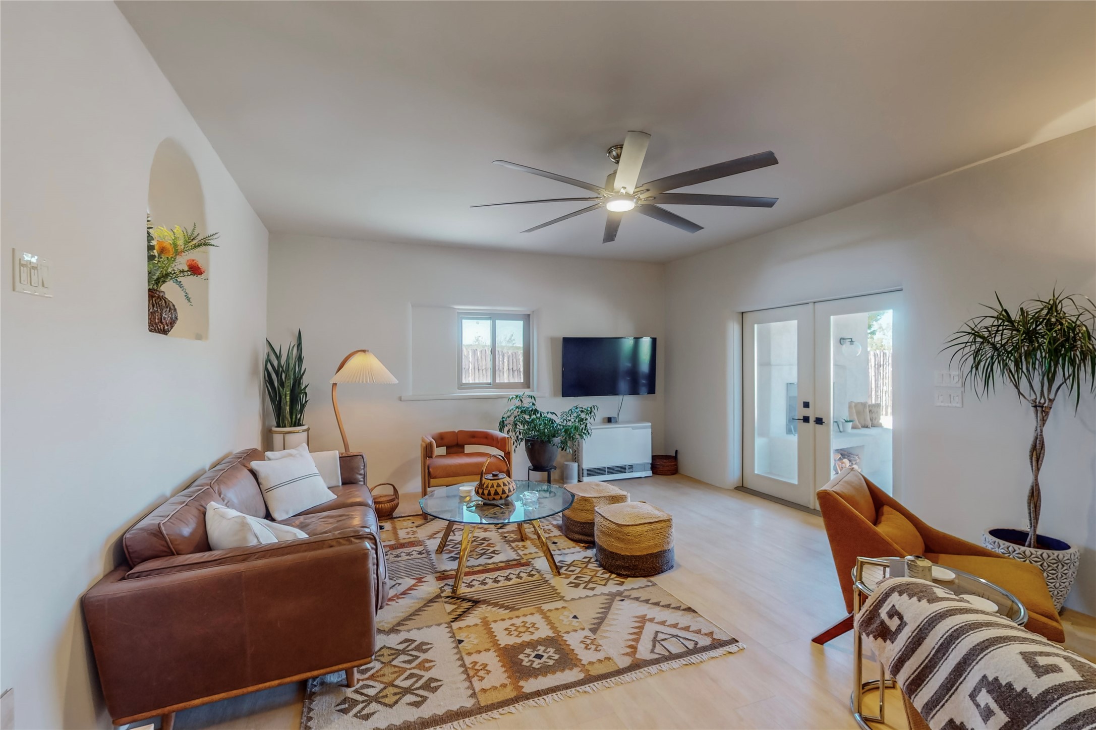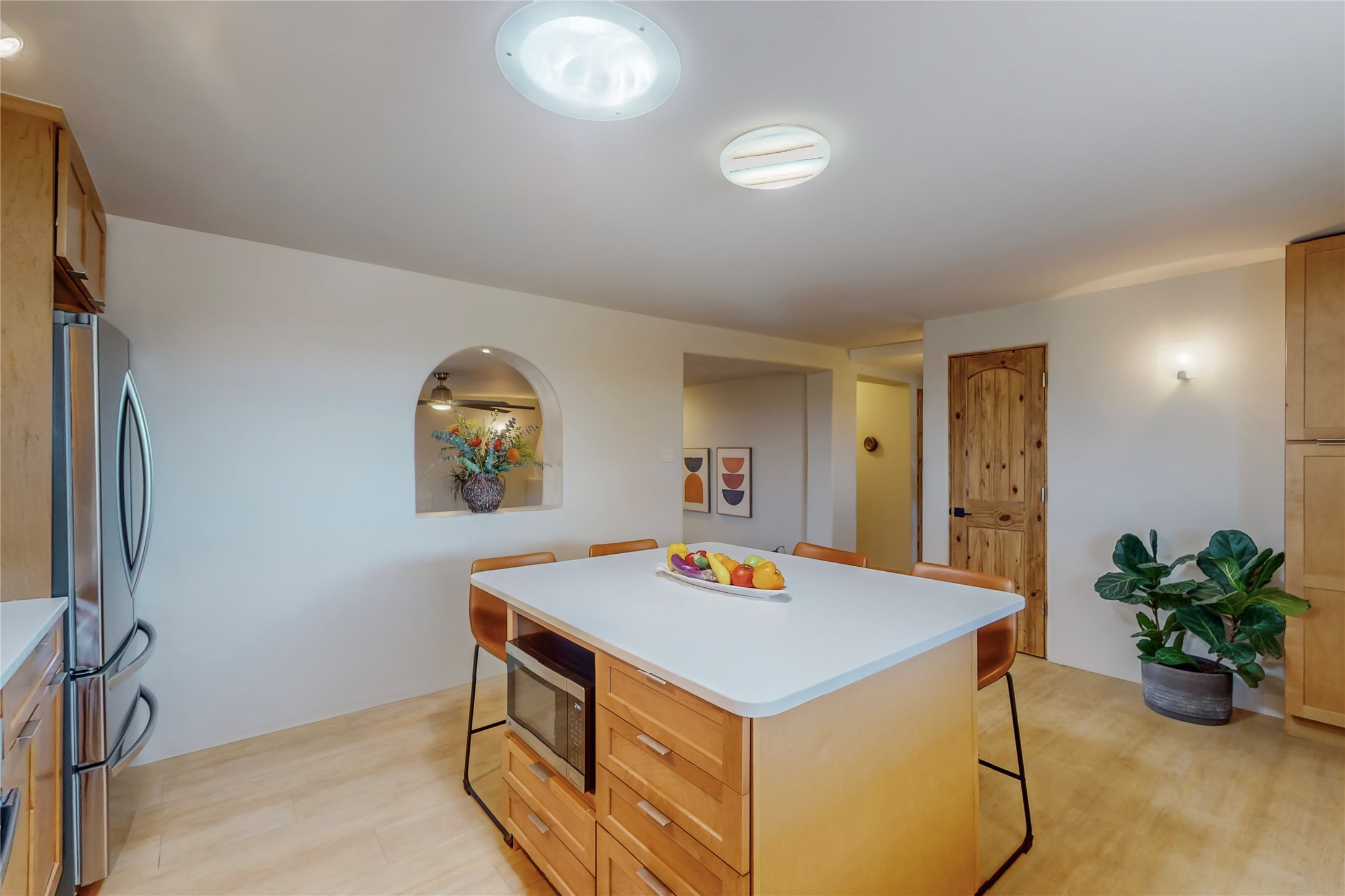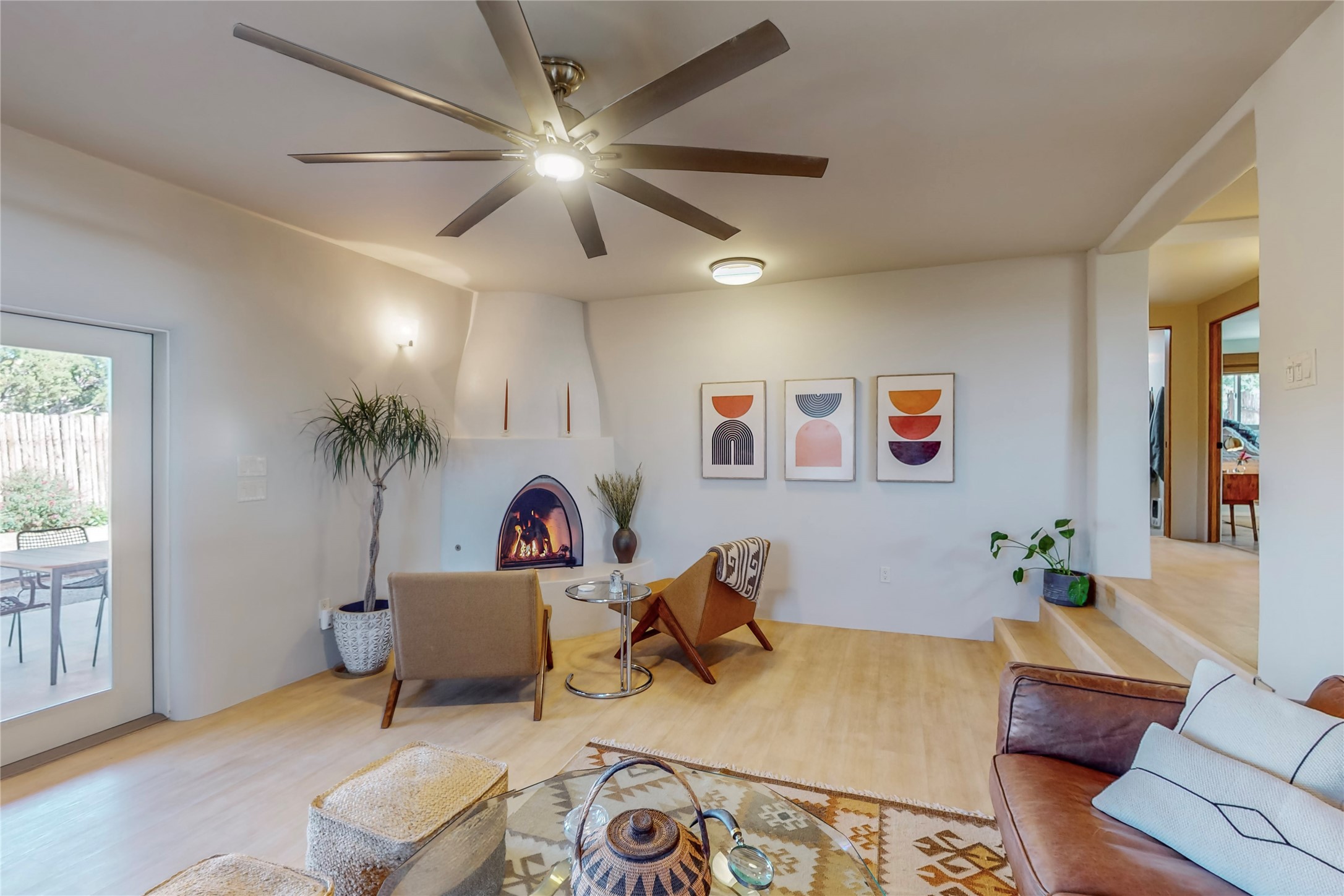 Charming Adobe home on 1.4 acres, just 2.5 miles to the Plaza. Some mountain views. Only a 3-minute drive to Frank Ortiz Dog Park and walk/ride out the back of the property and through the tunnel and you are on the La Tierra Trails. This authentic Adobe construction stays warm in the winter and cool in the summer. Upon entering this lovely home, you will be greeted by a completely remodeled kitchen (2022) with all-new stainless appliances, maple cabinets, and white quartz countertops. In 2021, Seller added a wood-burning Kiva that is currently using gas logs with a remote start. Also added in 2021 is a 300 sf Portal with another wood-burning fireplace. Enjoy a fire while relaxing in the 5-person Tuff Spas hot tub. No HOA. The seller will share architectural plans for an ensuite bath approved by the City in 2021. Add a roof-top deck, and you will have 360-degree mountain views. You could even add a Casita or shop (with City approval.) This home is convenient to everything, including grocery stores, restaurants, DeVargas Mall and 599 for those commuting to Los Alamos. 50 mil membrane Roof installed in 2018. Transferrable warranty with 10 years remaining.