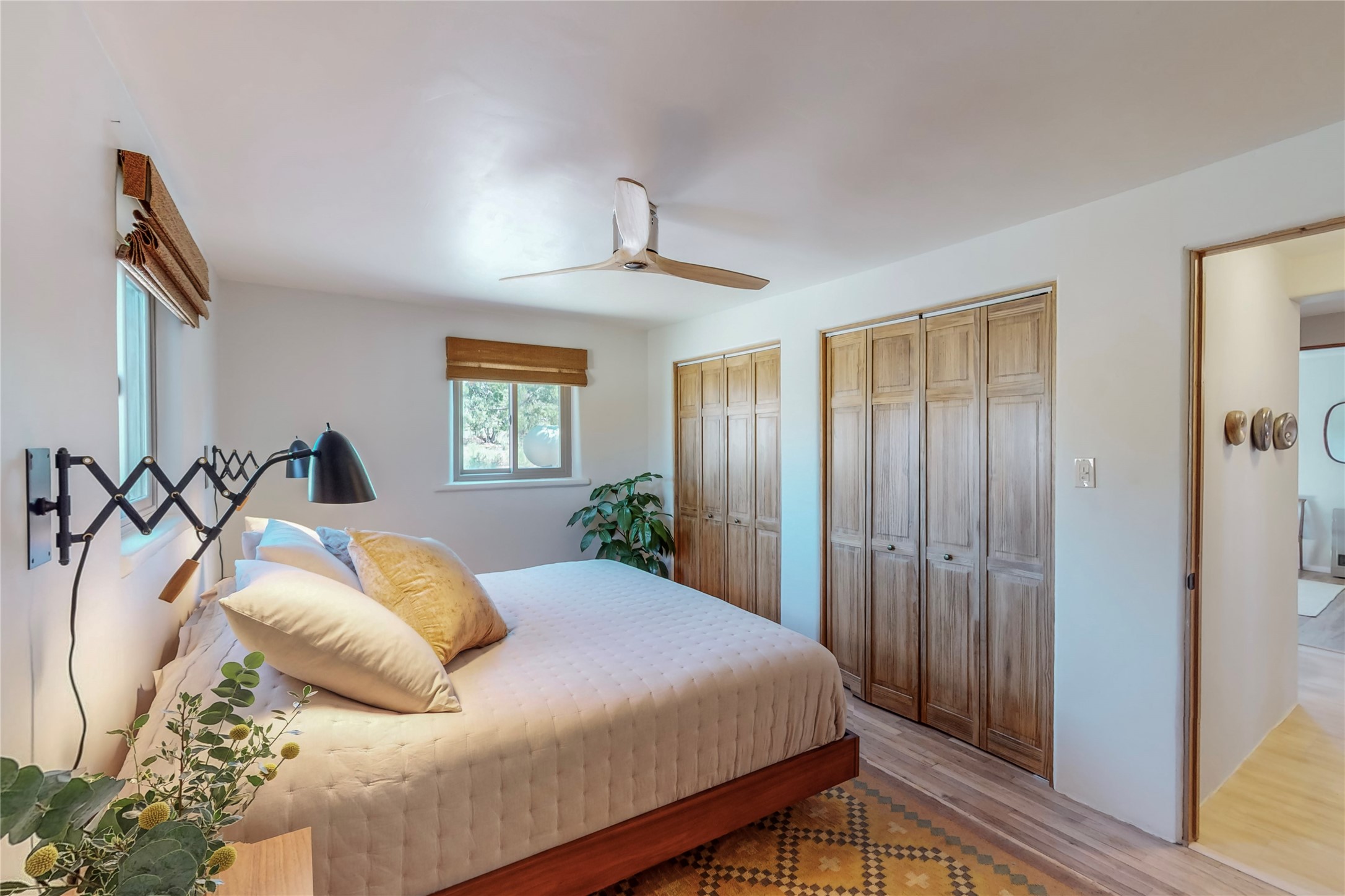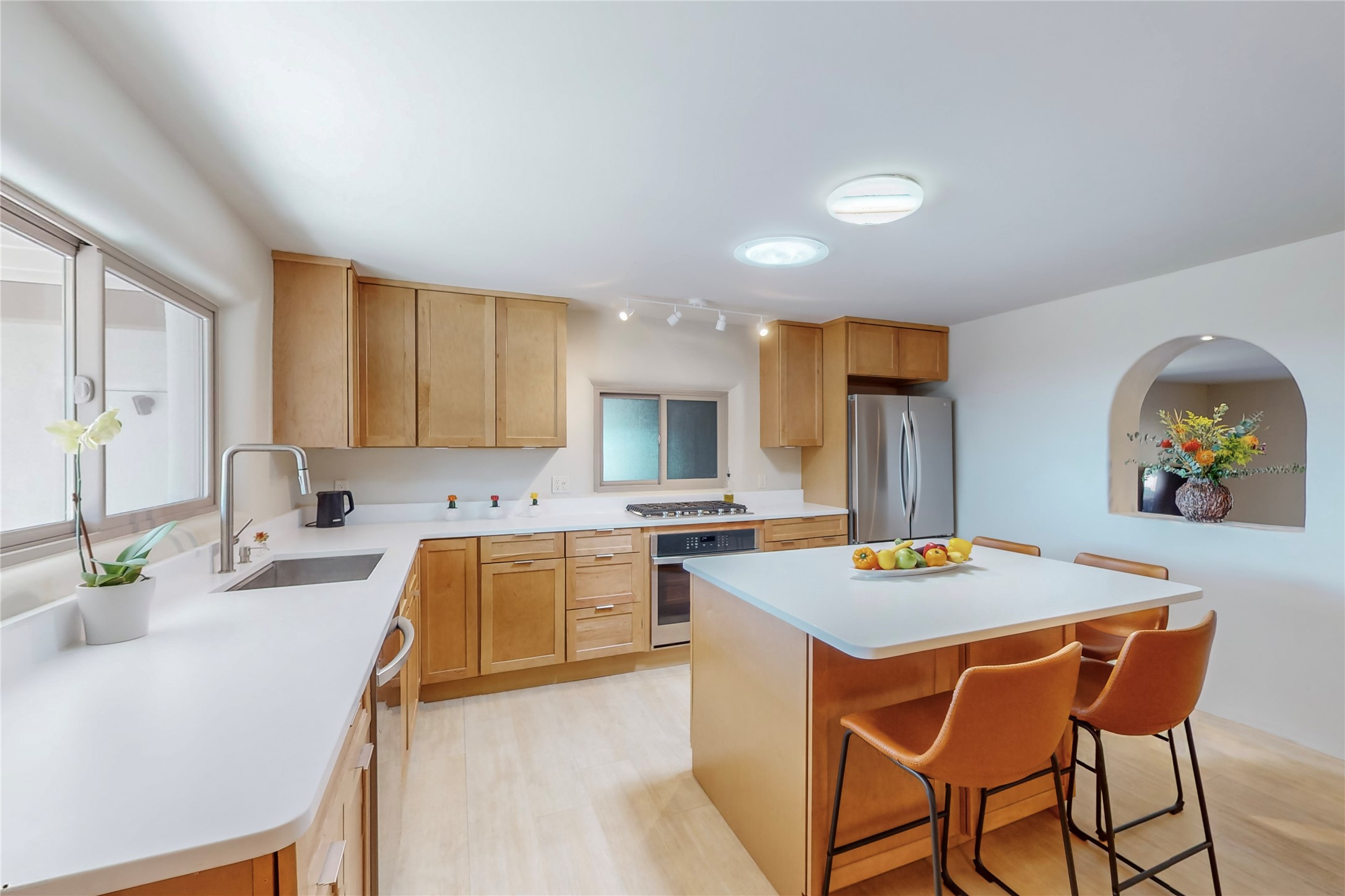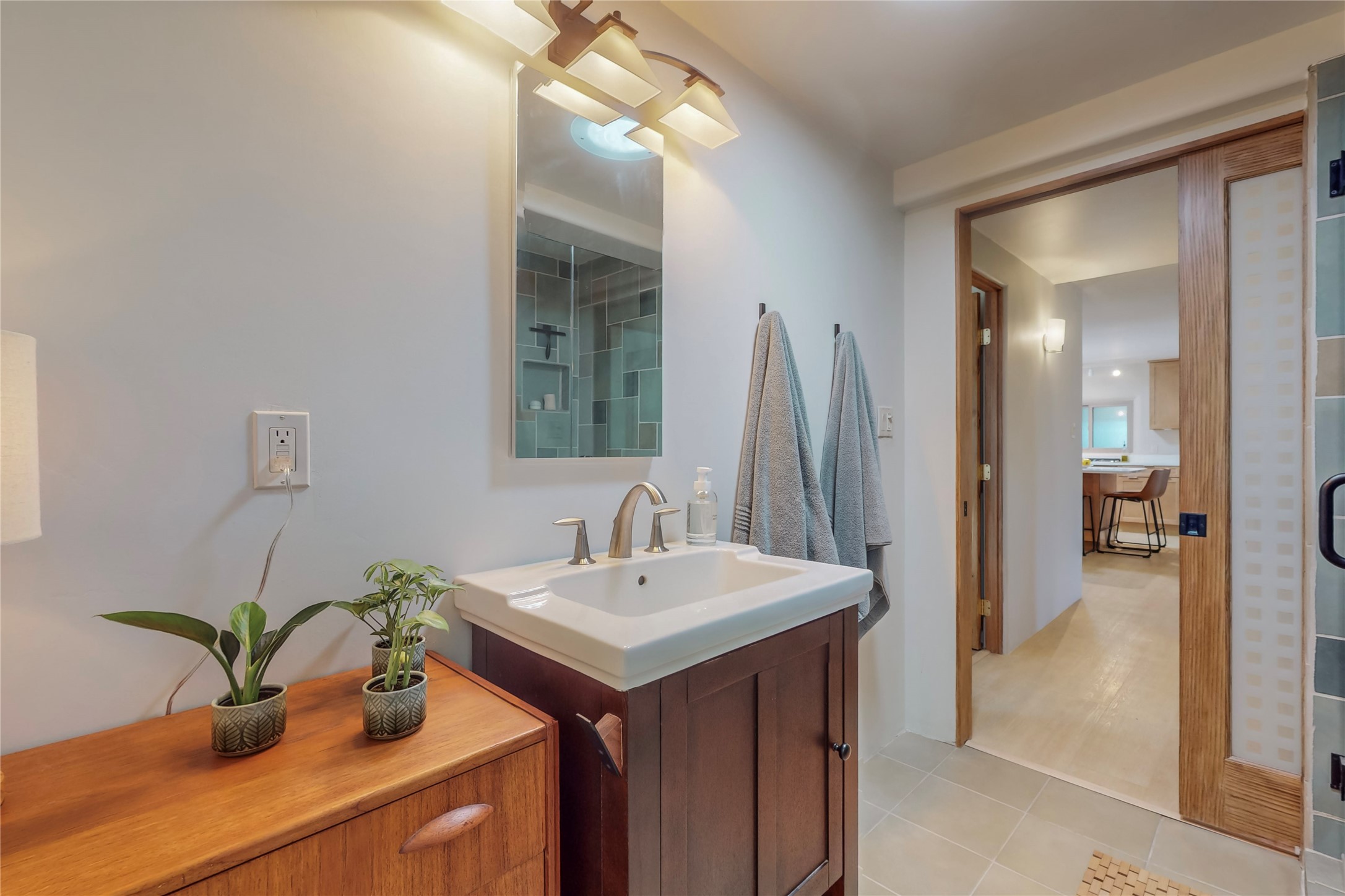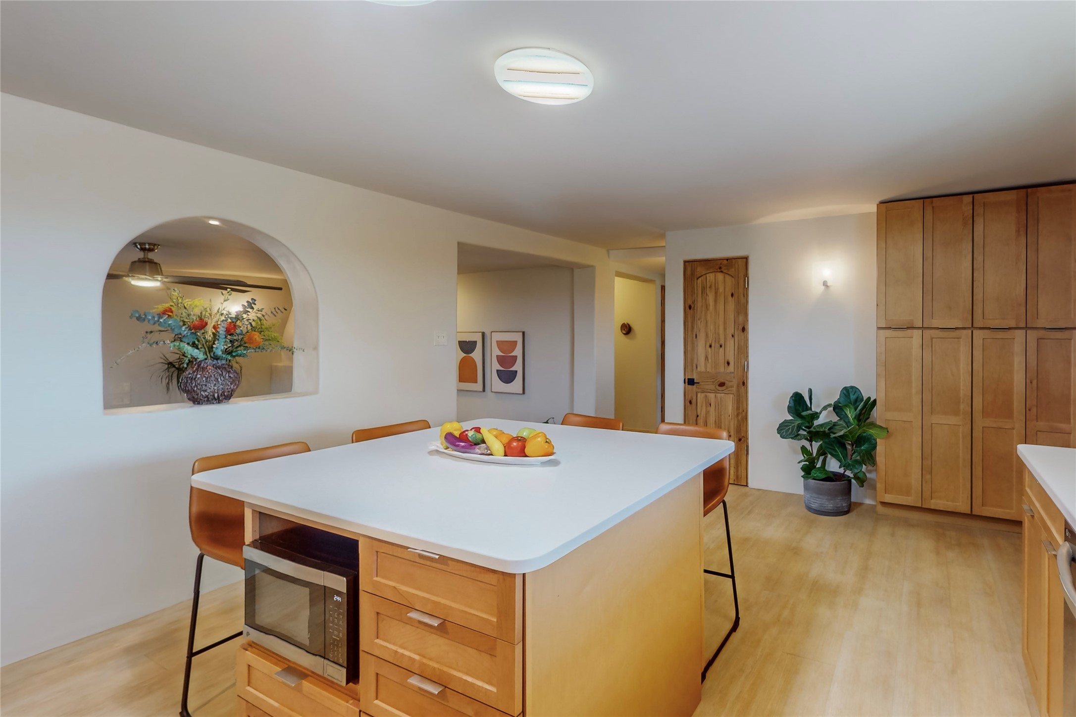 Charming Adobe home on 1.4 acres, just 2.5 miles to the Plaza. Some mountain views. Only a 3-minute drive to Frank Ortiz Dog Park and walk/ride out the back of the property and through the tunnel and you are on the La Tierra Trails. This authentic Adobe construction stays warm in the winter and cool in the summer. Upon entering this lovely home, you will be greeted by a completely remodeled kitchen (2022) with all-new stainless appliances, maple cabinets, and white quartz countertops. In 2021, Seller added a wood-burning Kiva that is currently using gas logs with a remote start. Also added in 2021 is a 300 sf Portal with another wood-burning fireplace. Enjoy a fire while relaxing in the 5-person Tuff Spas hot tub. No HOA. The seller will share architectural plans for an ensuite bath approved by the City in 2021. Add a roof-top deck, and you will have 360-degree mountain views. You could even add a Casita or shop (with City approval.) This home is convenient to everything, including grocery stores, restaurants, DeVargas Mall and 599 for those commuting to Los Alamos. 50 mil membrane Roof installed in 2018. Transferrable warranty with 10 years remaining.