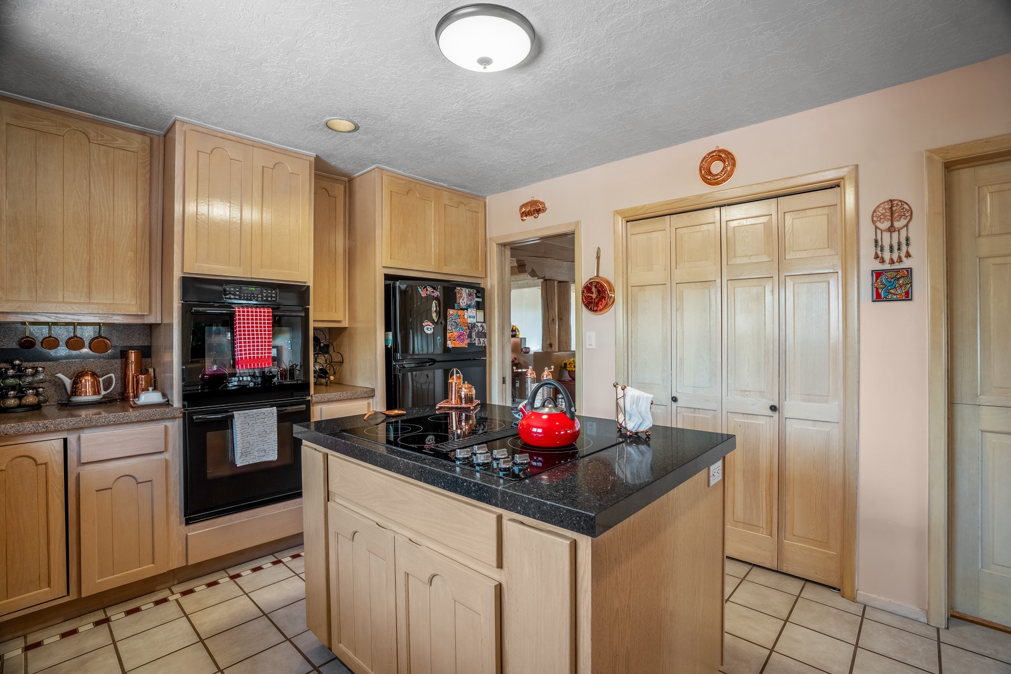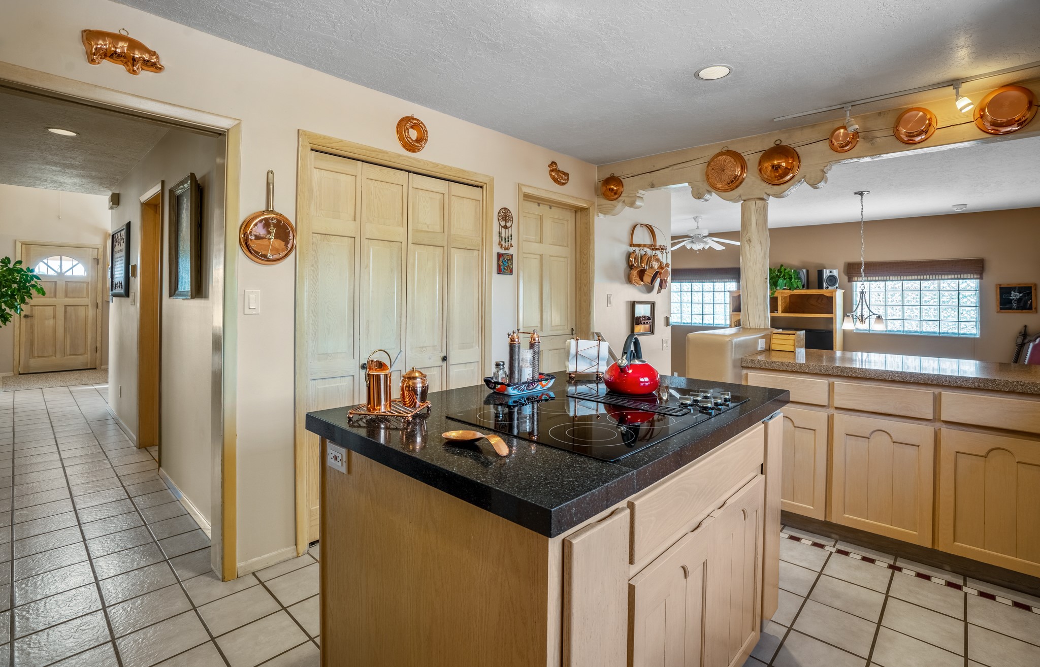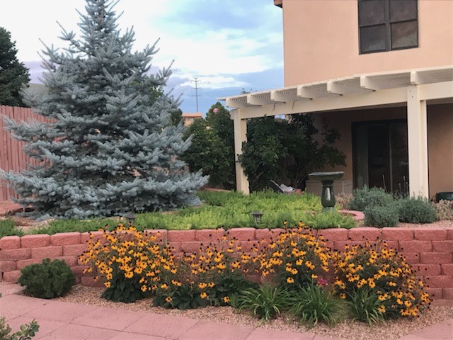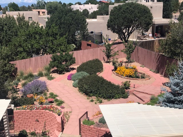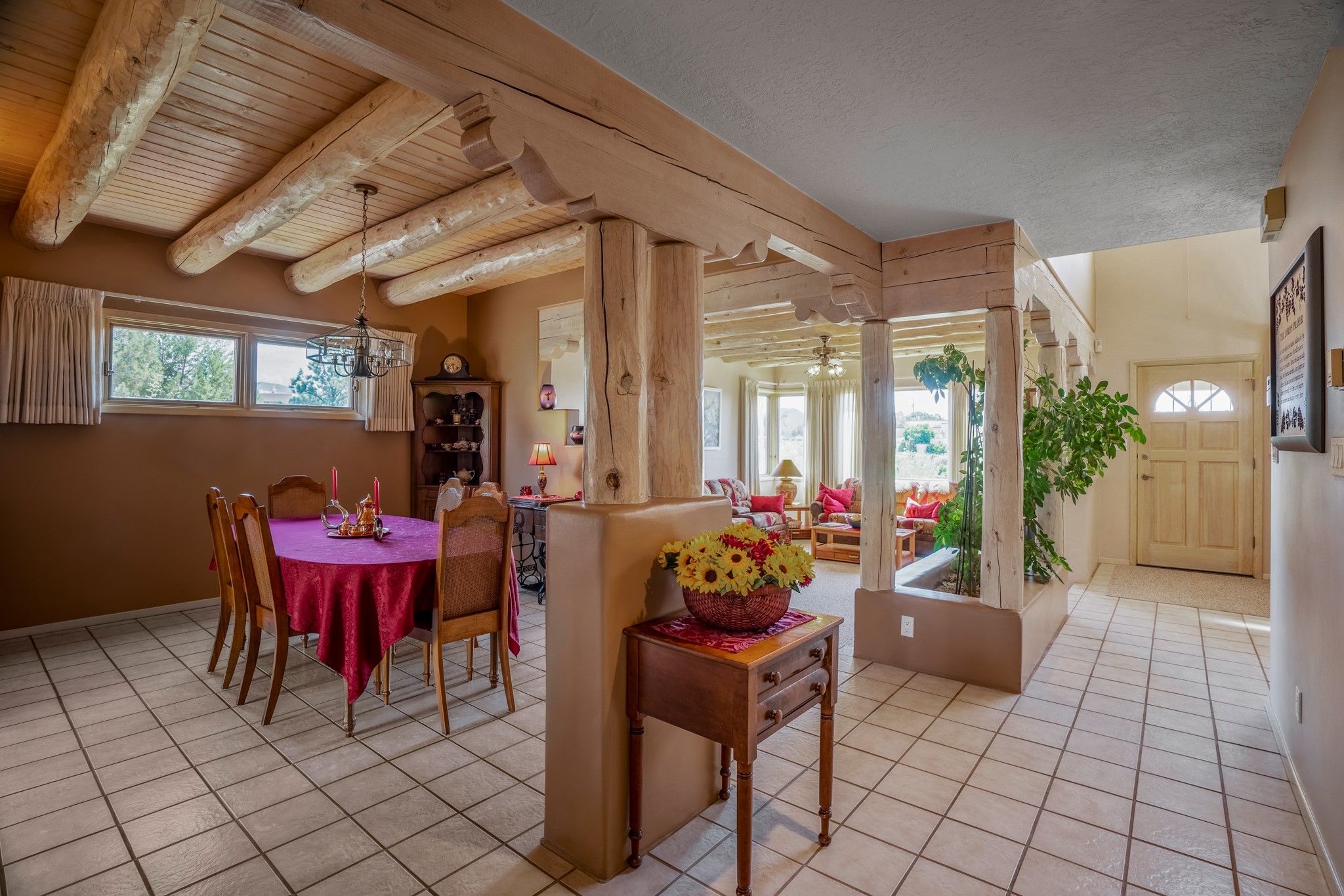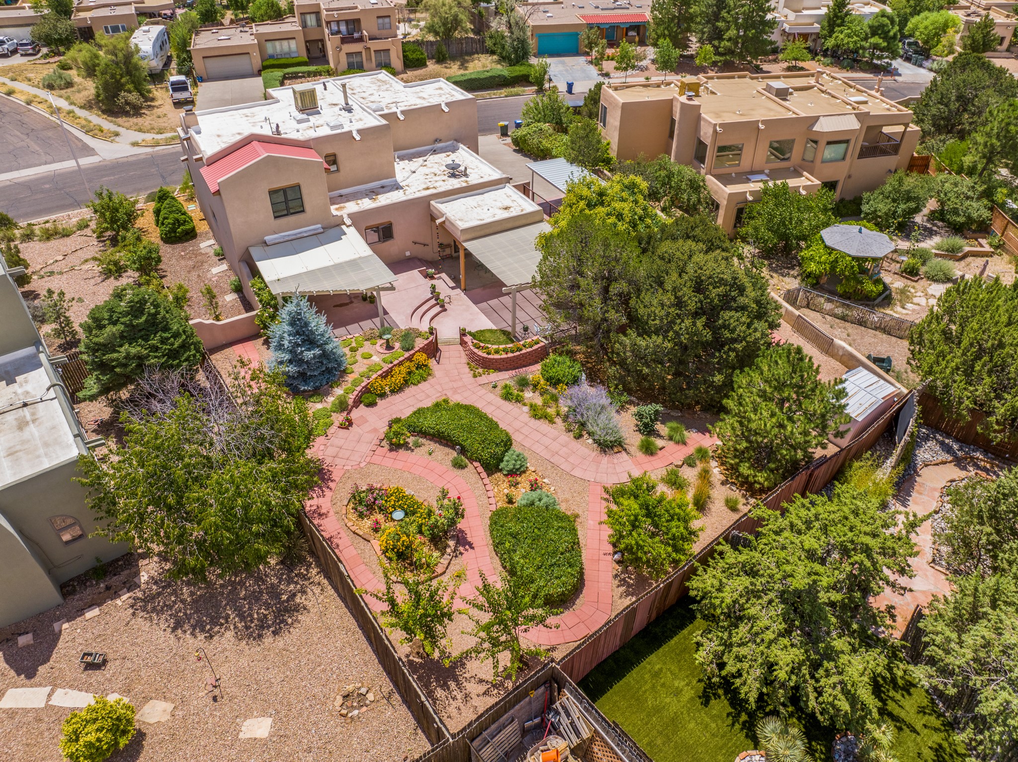 Experience Villa Caballero, a highly sought-after neighborhood known for quiet living, great location, and oversize lots. The area is particularly admired for its marvelous blend of natural beauty and charming residential spaces. One sweet gem is this multi-level home with a flexible floor plan featuring three bedrooms upstairs plus an office/den off the Primary Suite. An optional fourth bedroom is on the main level with access to the backyard pergola offering flexibility in living spaces. All bedrooms are spacious and feature stunning views. This Santa Fe style home is complete with beautiful vigas, nichos, and kiva fireplace on the main floor with plenty of space to entertain. The spacious primary bedroom suite offers a comfortable retreat, including a large bath with jetted tub and a separate office/sitting space and a view deck to enjoy sunsets and mountain views. The separated bedroom plan ensures privacy for everyone in the household and includes an additional view deck. The kitchen is spacious including an island and access to a huge utility/laundry room. A flexible family/dining/tv room with access to the back pergola is just off the kitchen in one direction and the formal dining and living room are off the other direction. This is truly a fabulous home for ease of entertaining. In addition, the views out virtually every window allow enjoyment of the breathtaking scenery and views, and invite you to soak in the surrounding beauty.Speaking of beauty, the lush and mature landscaping of this home boasts wonderful pathways meandering through multiple fruit trees, flowering beds, and shrubs. The thoughtful design creates a serene and inviting atmosphere. To add to the tranquility, there's even a large backyard pergola, perfect for peaceful entertaining and relaxation with wonderful architectural plays of shadow and light.Not only will you feel at peace in this home, but the lush landscaping will also attract birds and bees, creating a haven for wildlife enthusiasts and nature lovers alike. It truly is a wonderful environment to appreciate the harmony of nature and a great place to call home.