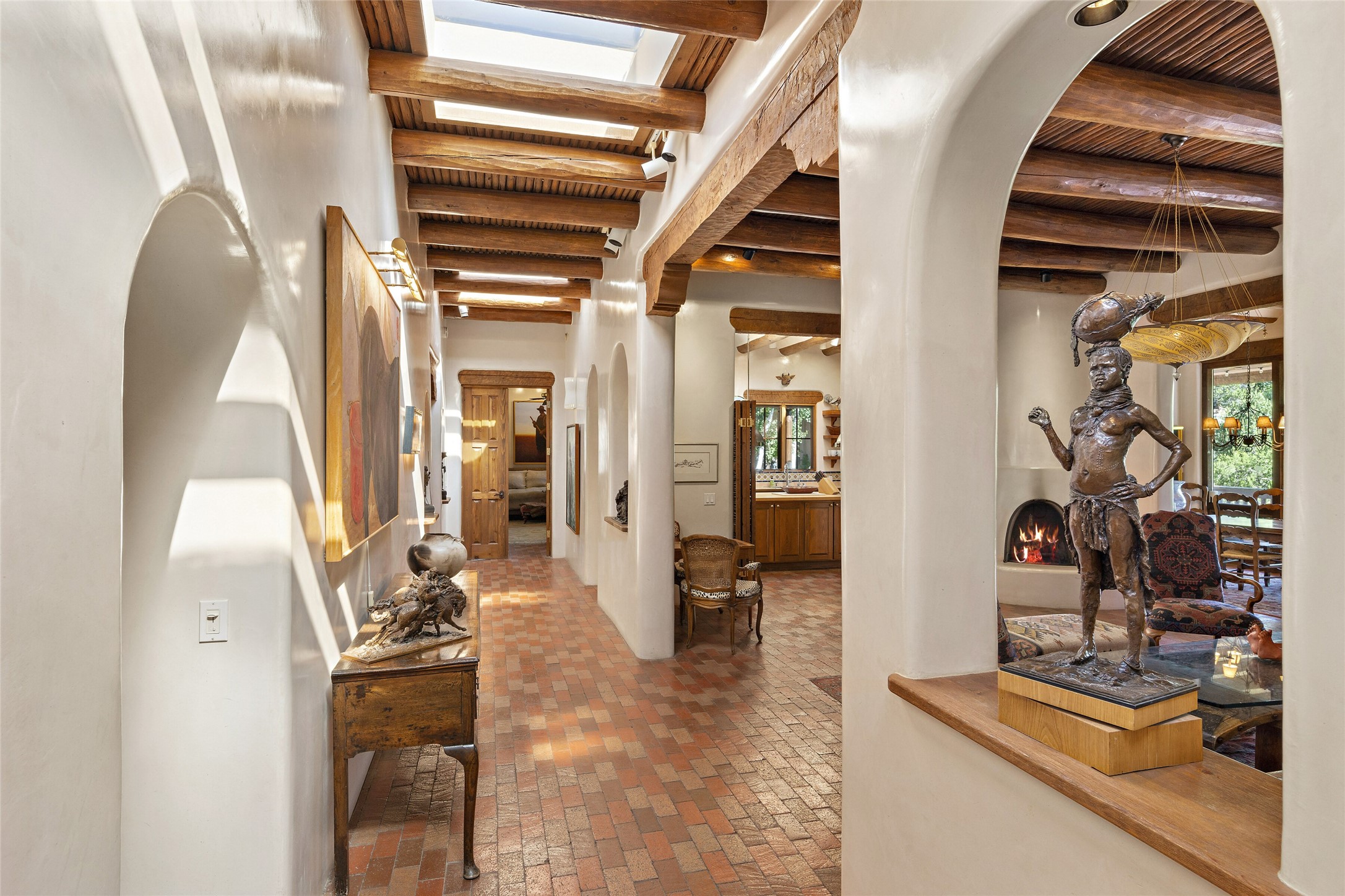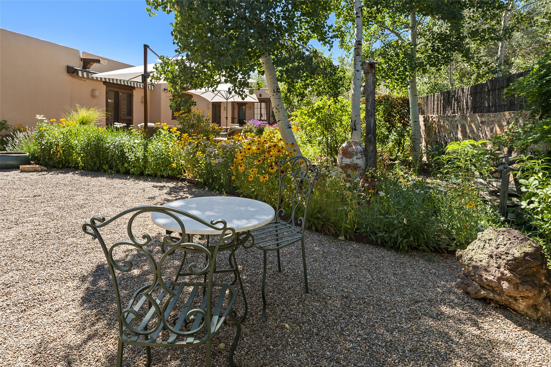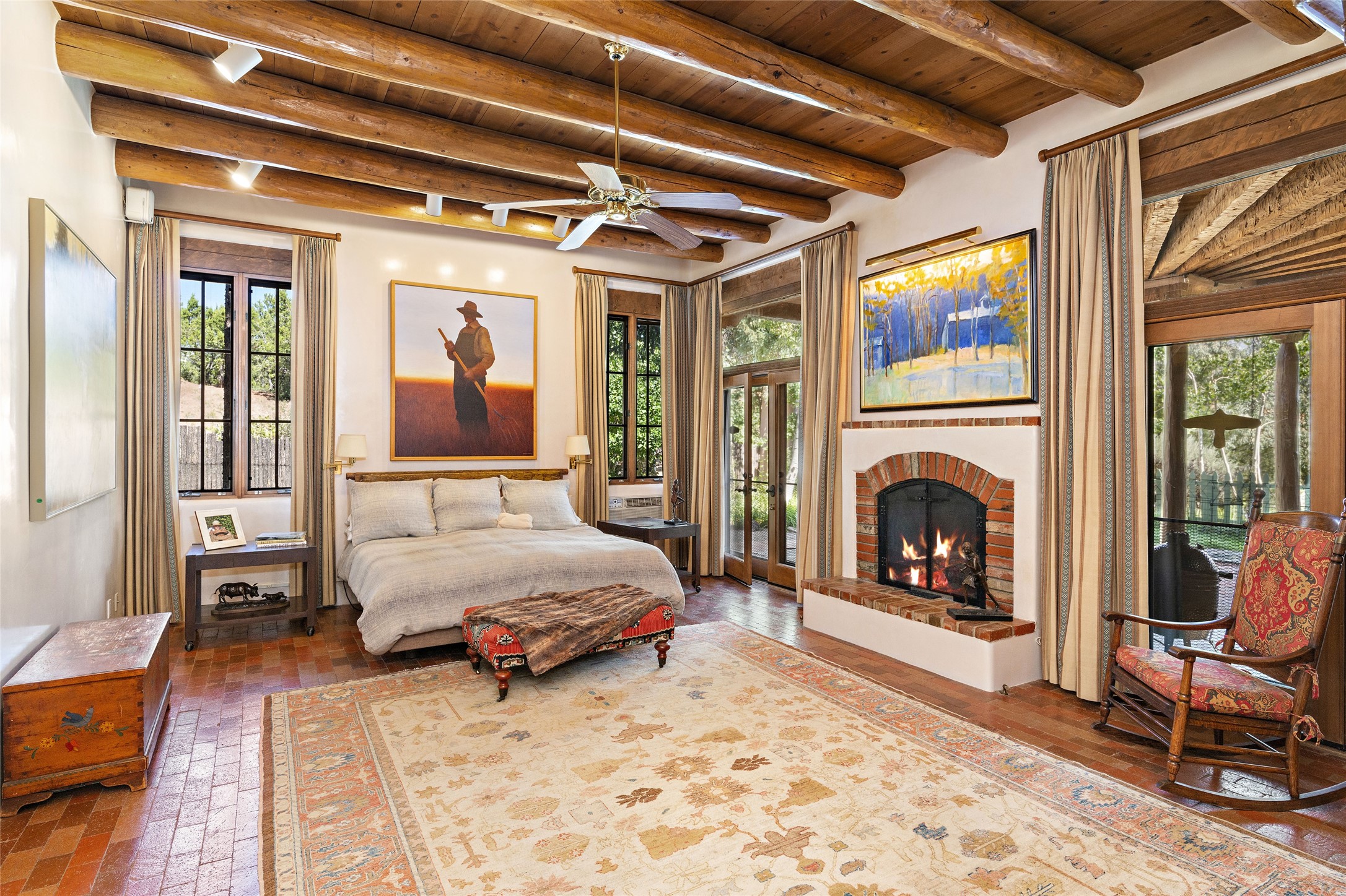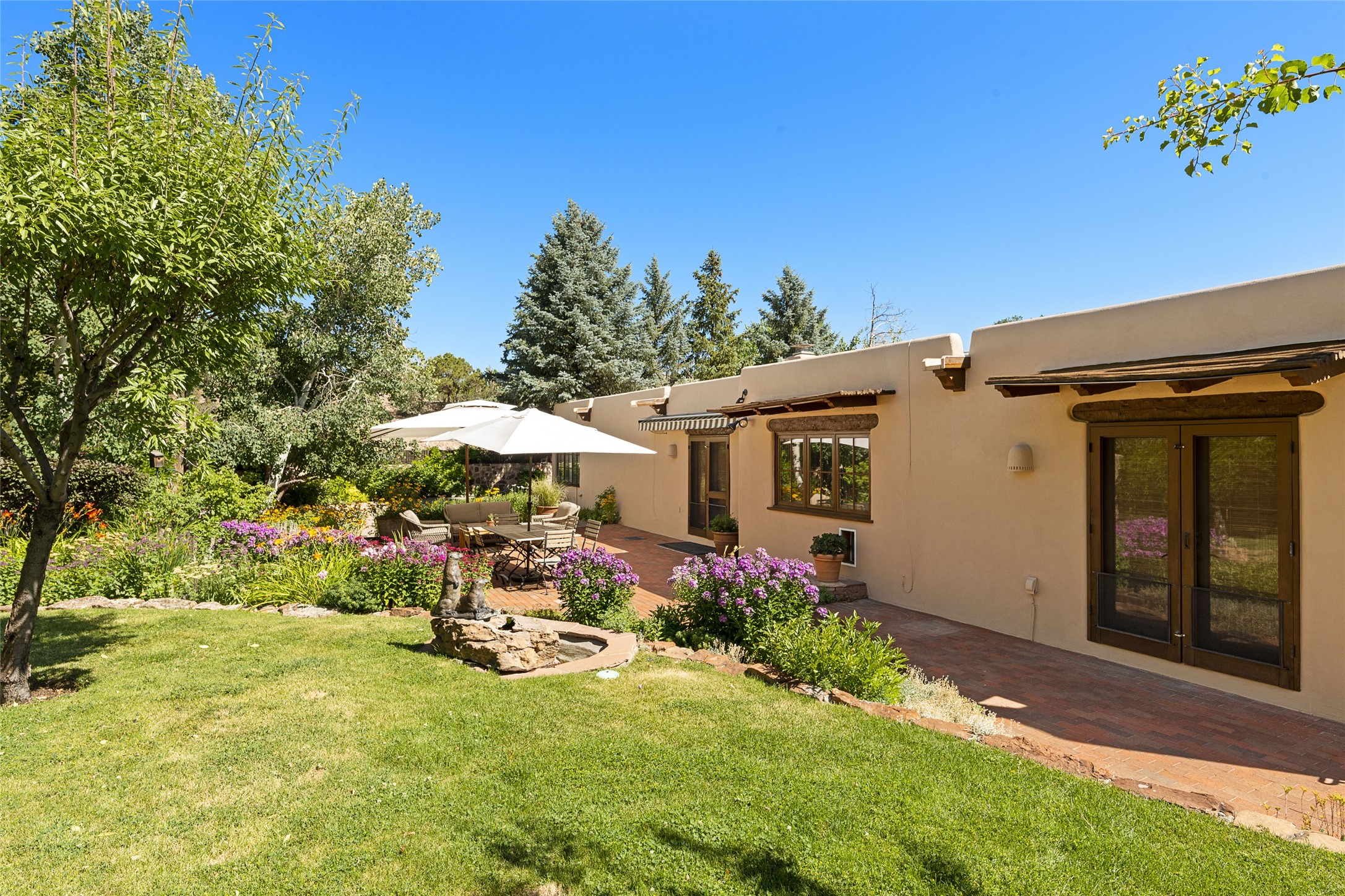 This beautiful 3 acre compound, set back off Bishops Lodge Rd, with views of the Sangre de Cristos features a 3 bedroom, 2.5 bathroom main house, a detached casita and a studio. Gorgeous gardens and gracious portals allow for multiple outdoor living areas. Privacy and serenity, just 3 miles from the plaza, this home is an entertainers dream.