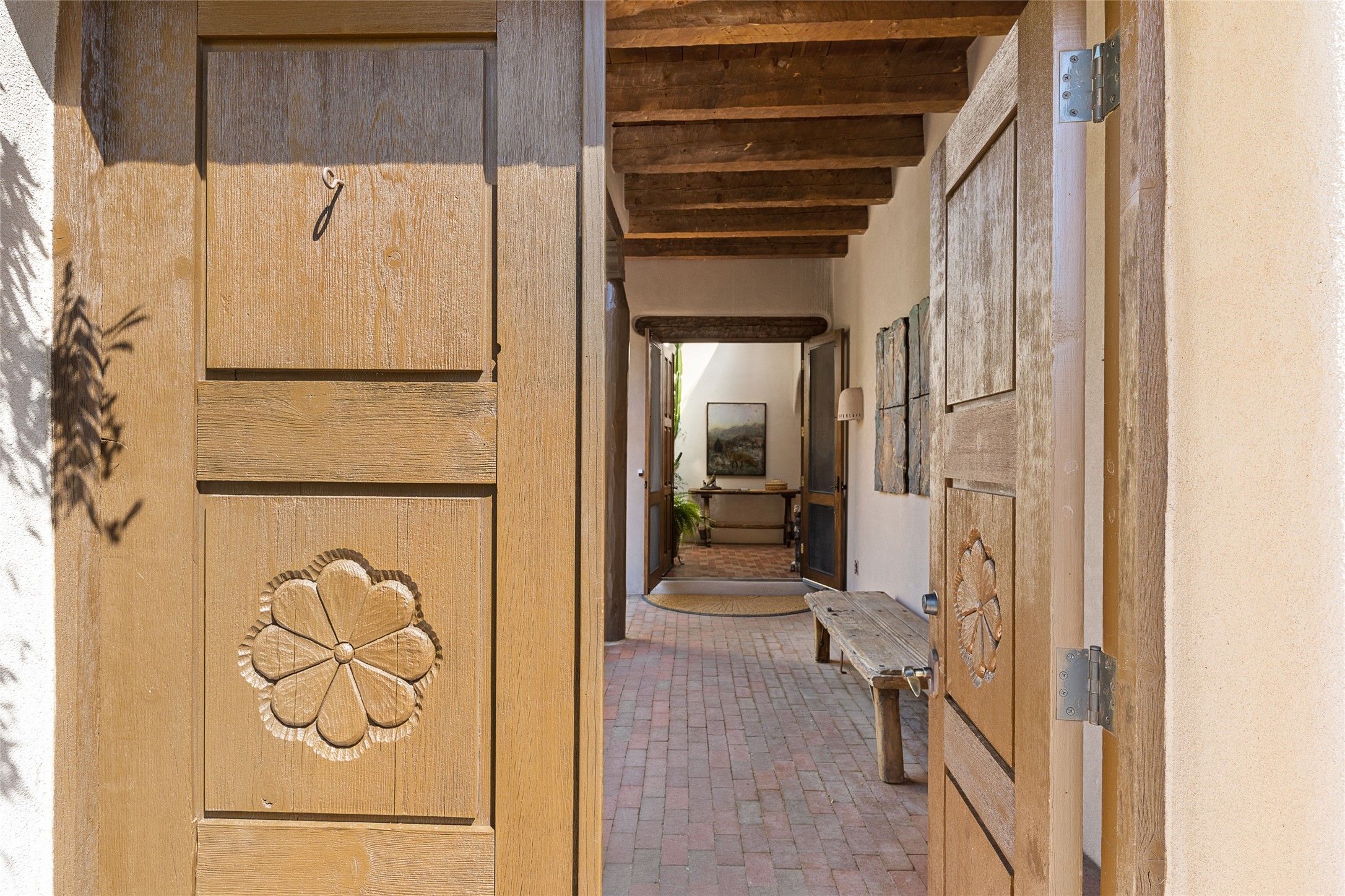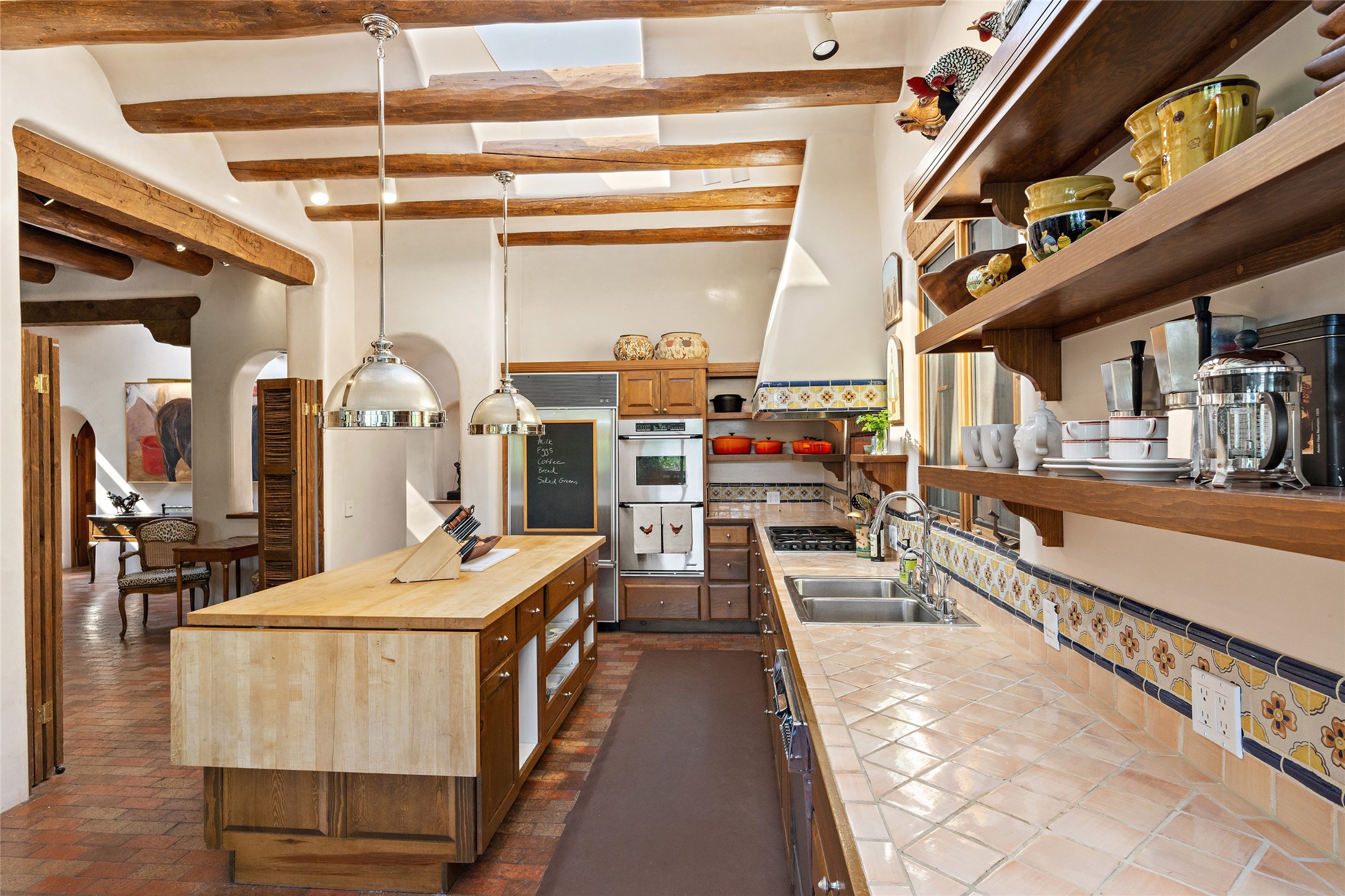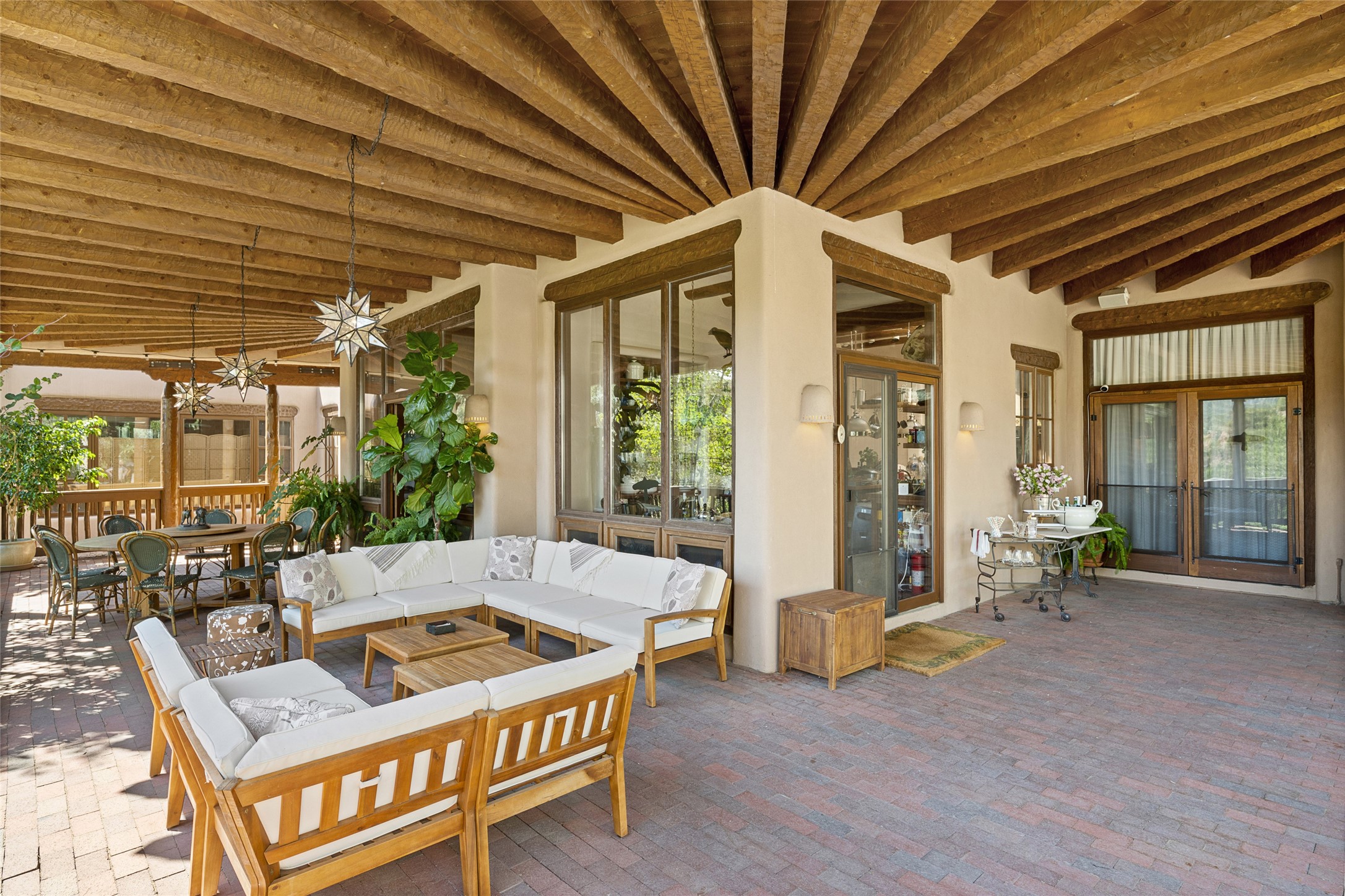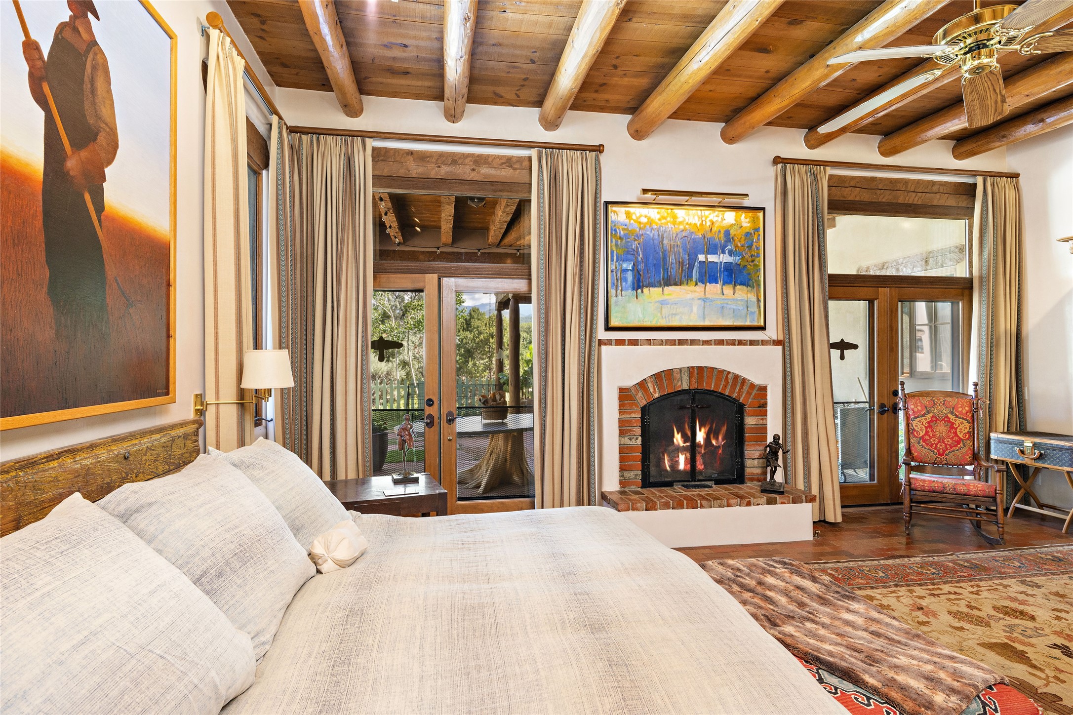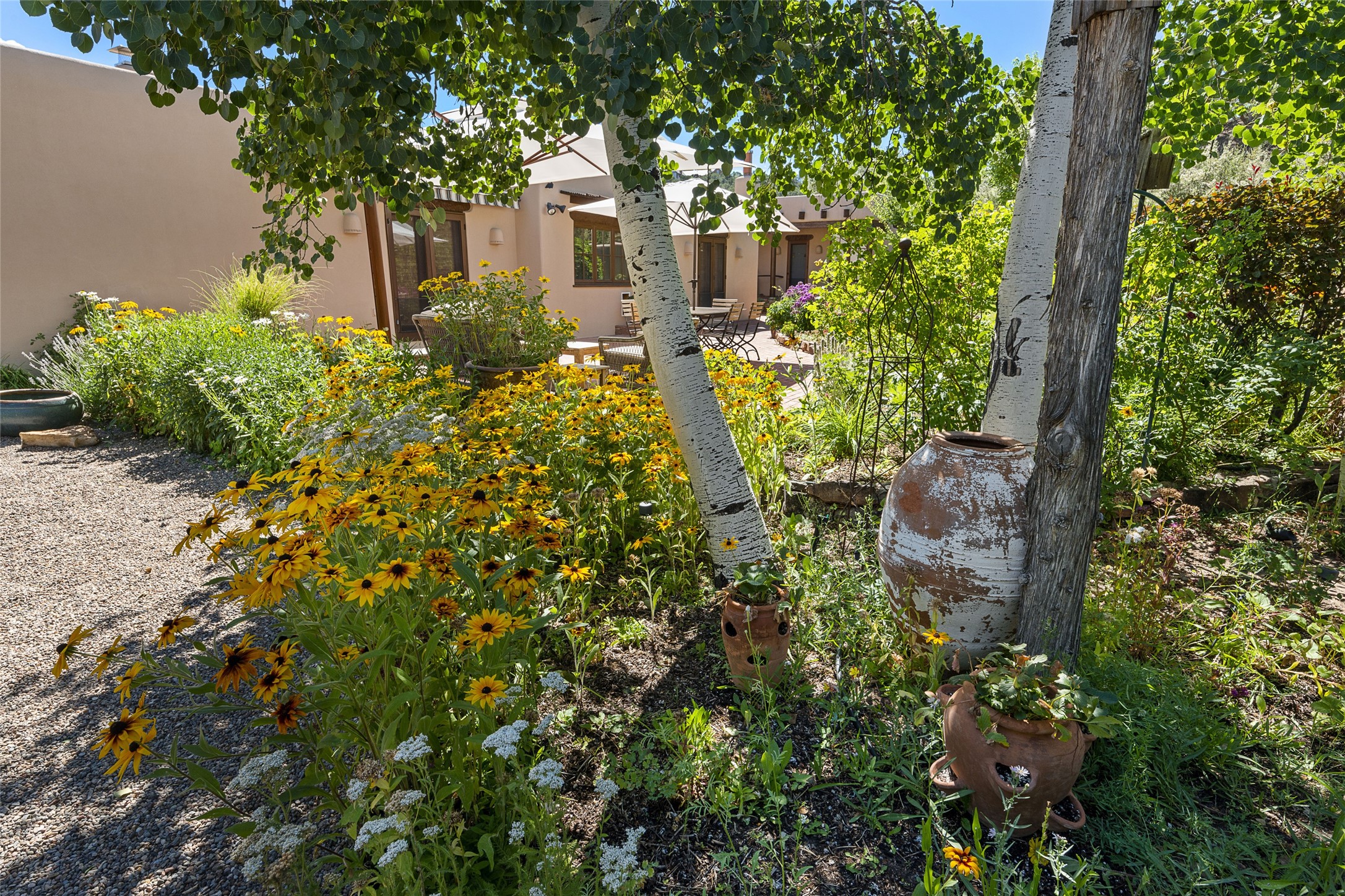 This beautiful 3 acre compound, set back off Bishops Lodge Rd, with views of the Sangre de Cristos features a 3 bedroom, 2.5 bathroom main house, a detached casita and a studio. Gorgeous gardens and gracious portals allow for multiple outdoor living areas. Privacy and serenity, just 3 miles from the plaza, this home is an entertainers dream.