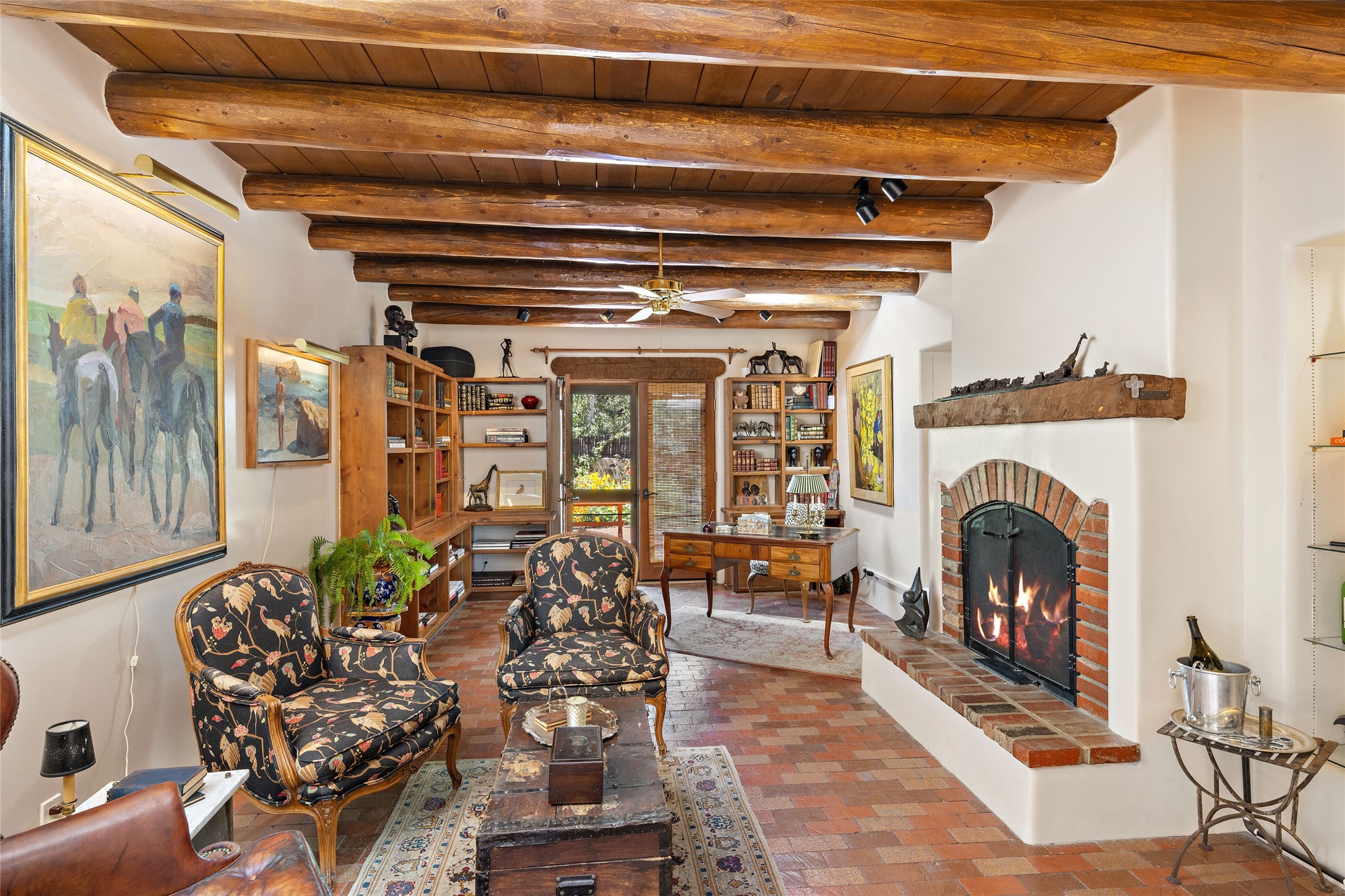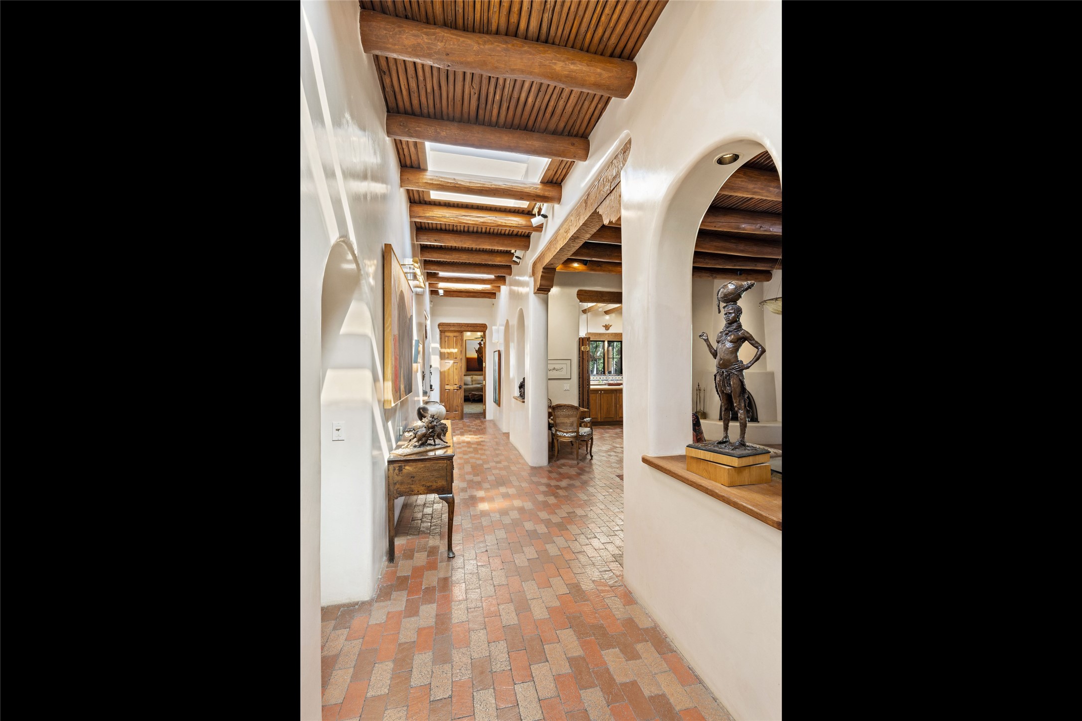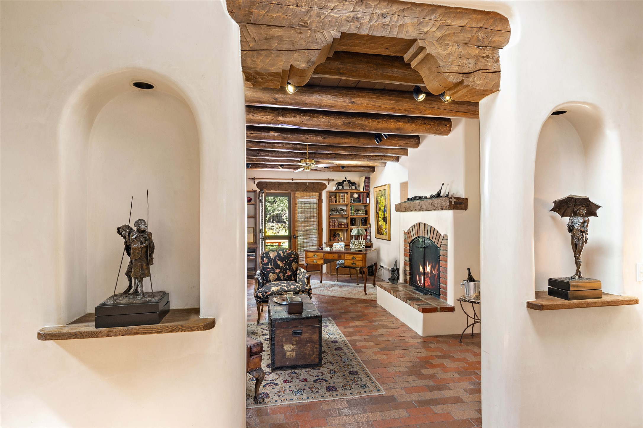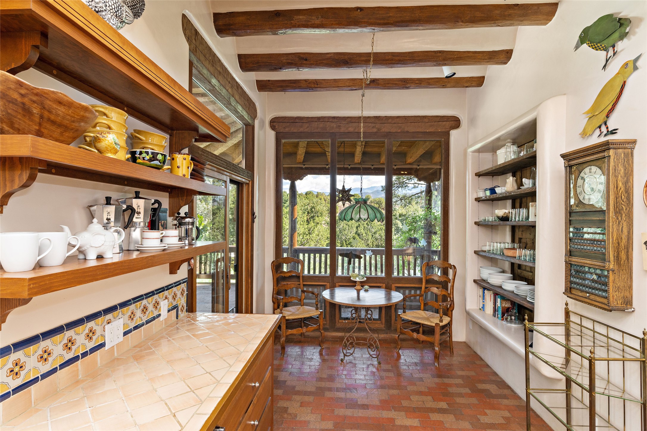 This beautiful 3 acre compound, set back off Bishops Lodge Rd, with views of the Sangre de Cristos features a 3 bedroom, 2.5 bathroom main house, a detached casita and a studio. Gorgeous gardens and gracious portals allow for multiple outdoor living areas. Privacy and serenity, just 3 miles from the plaza, this home is an entertainers dream.