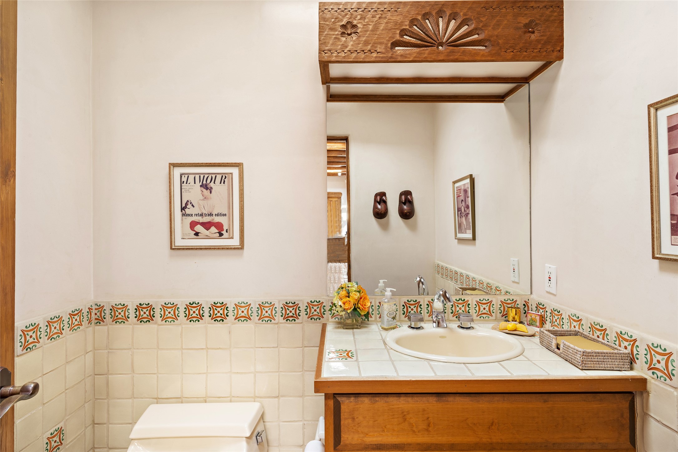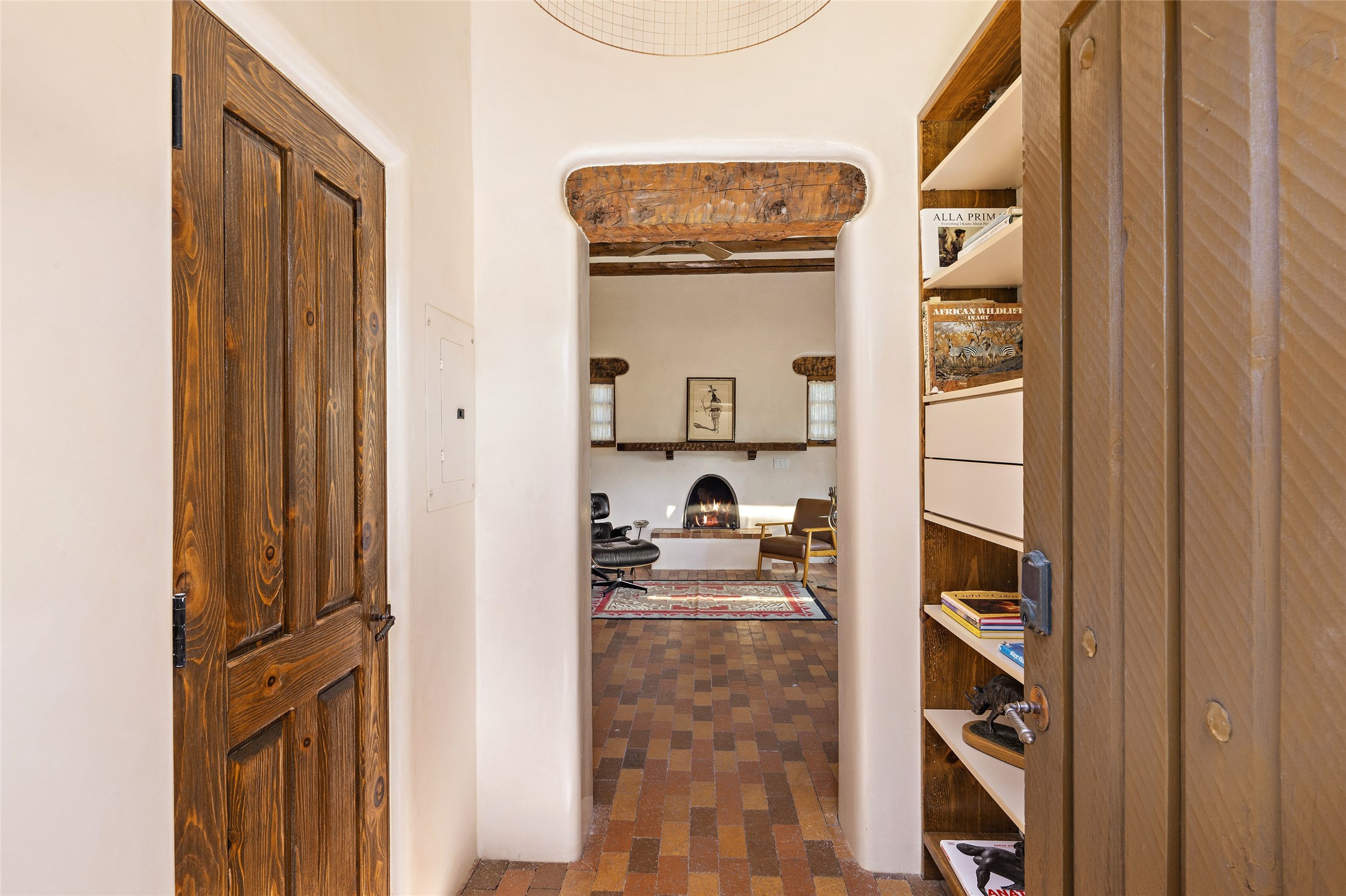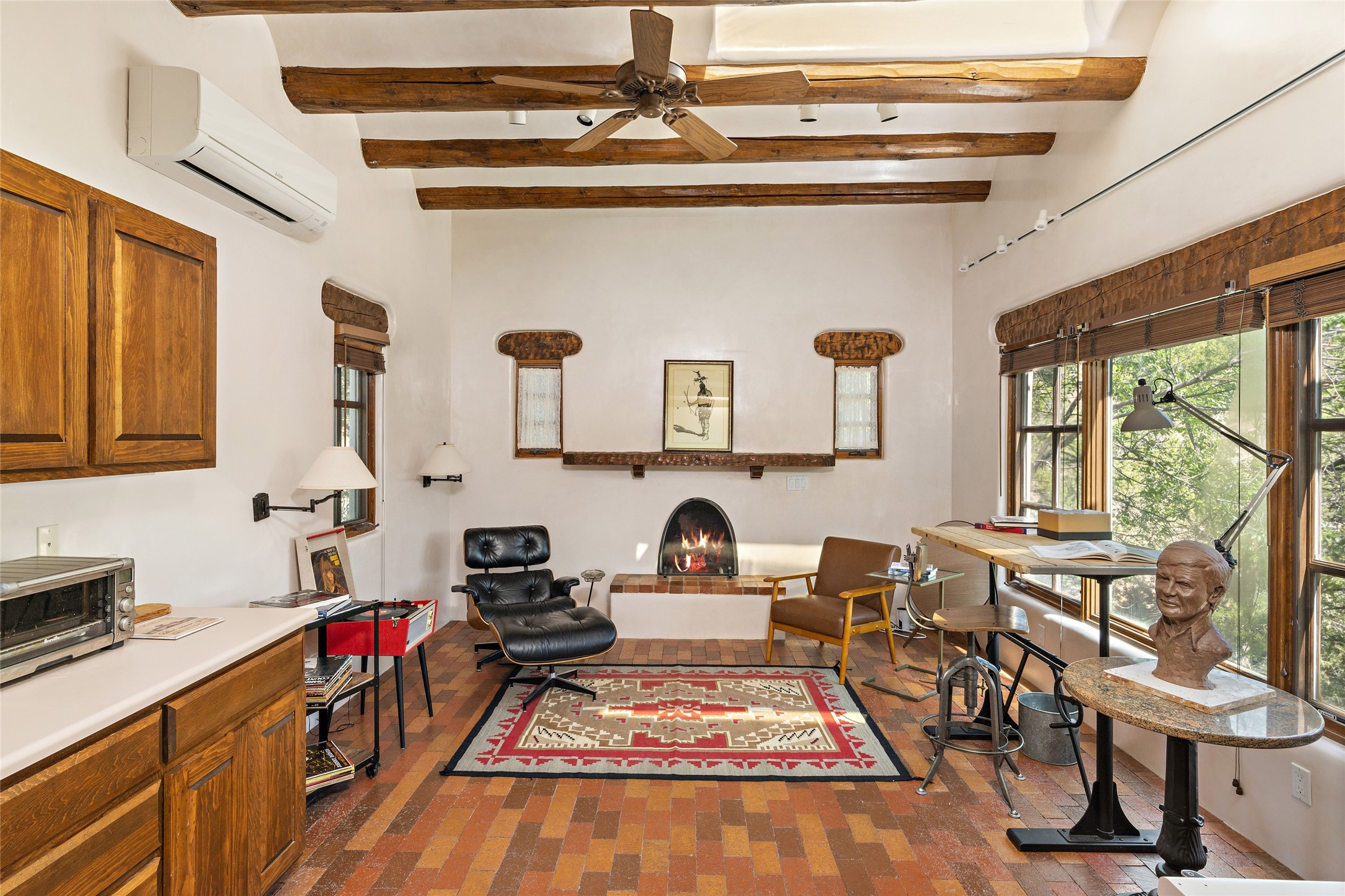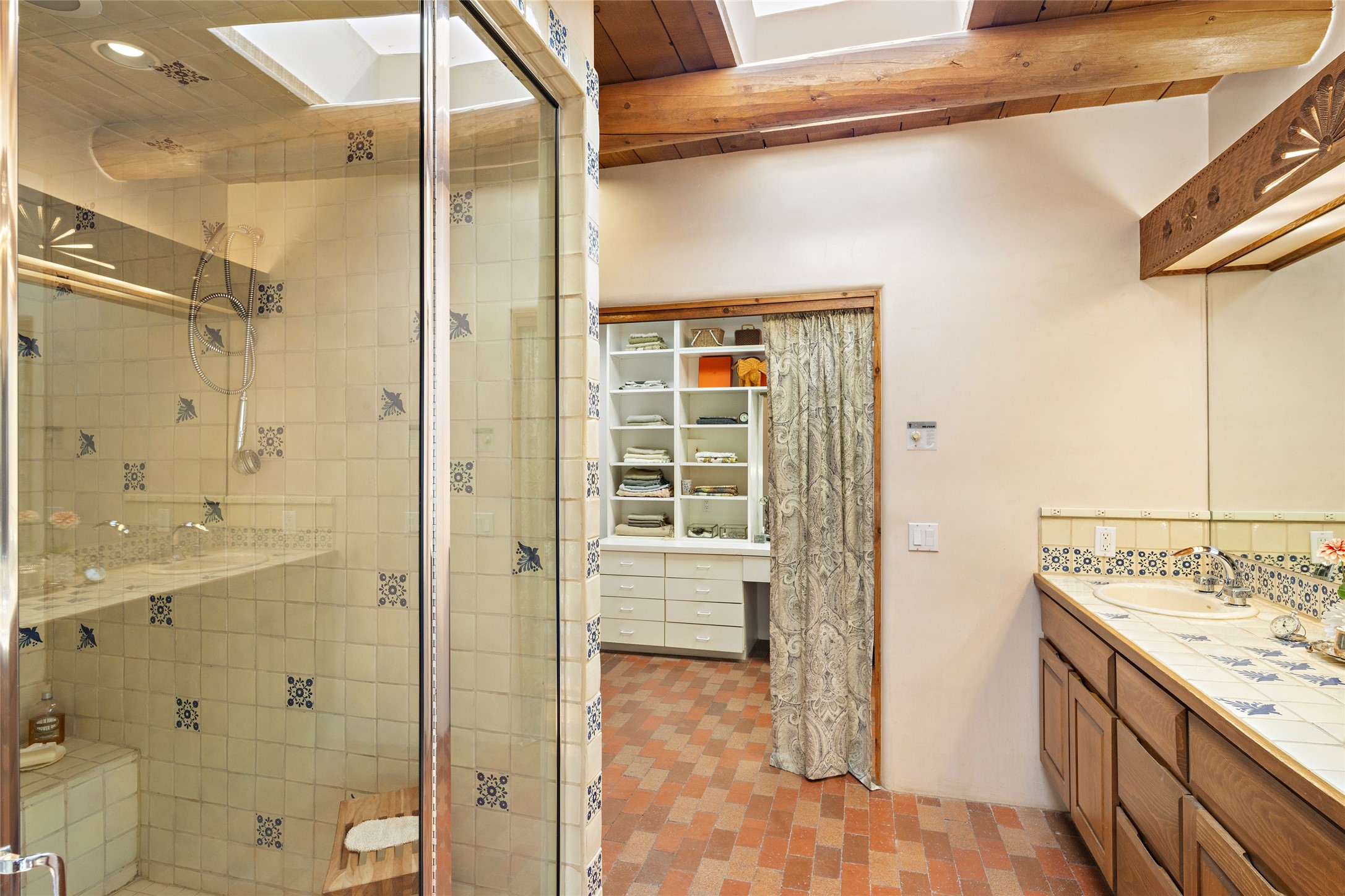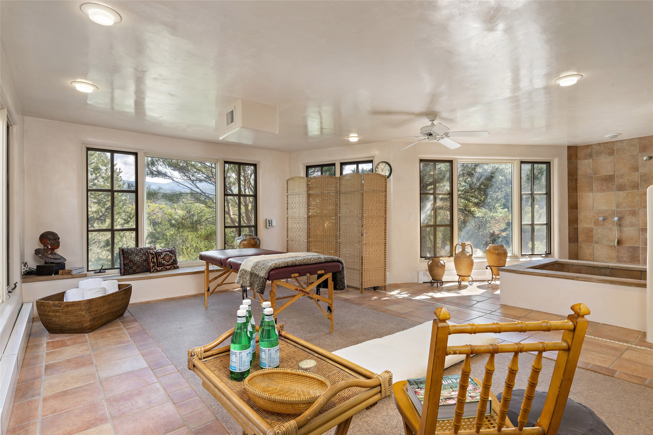 This beautiful 3 acre compound, set back off Bishops Lodge Rd, with views of the Sangre de Cristos features a 3 bedroom, 2.5 bathroom main house, a detached casita and a studio. Gorgeous gardens and gracious portals allow for multiple outdoor living areas. Privacy and serenity, just 3 miles from the plaza, this home is an entertainers dream.