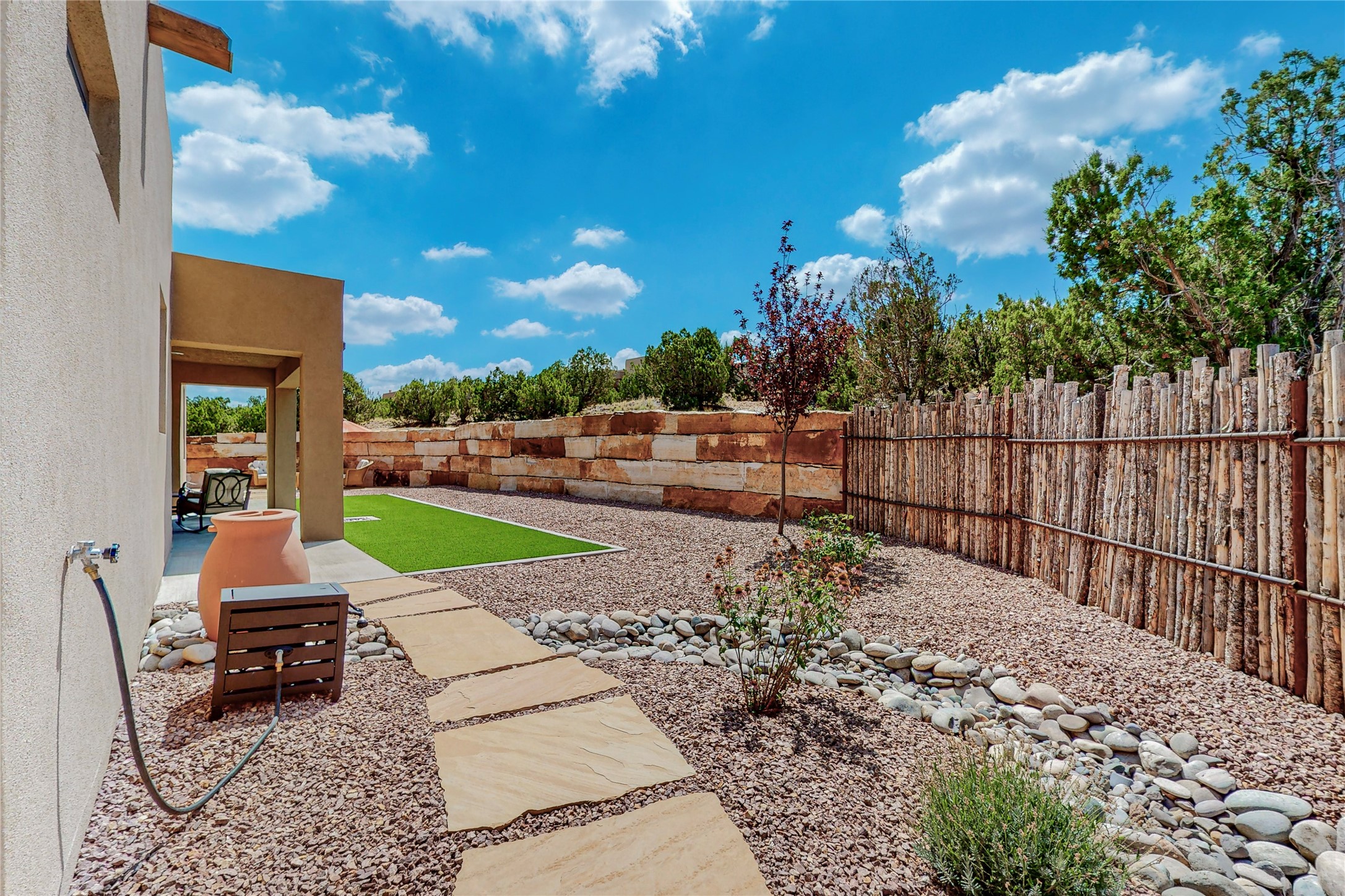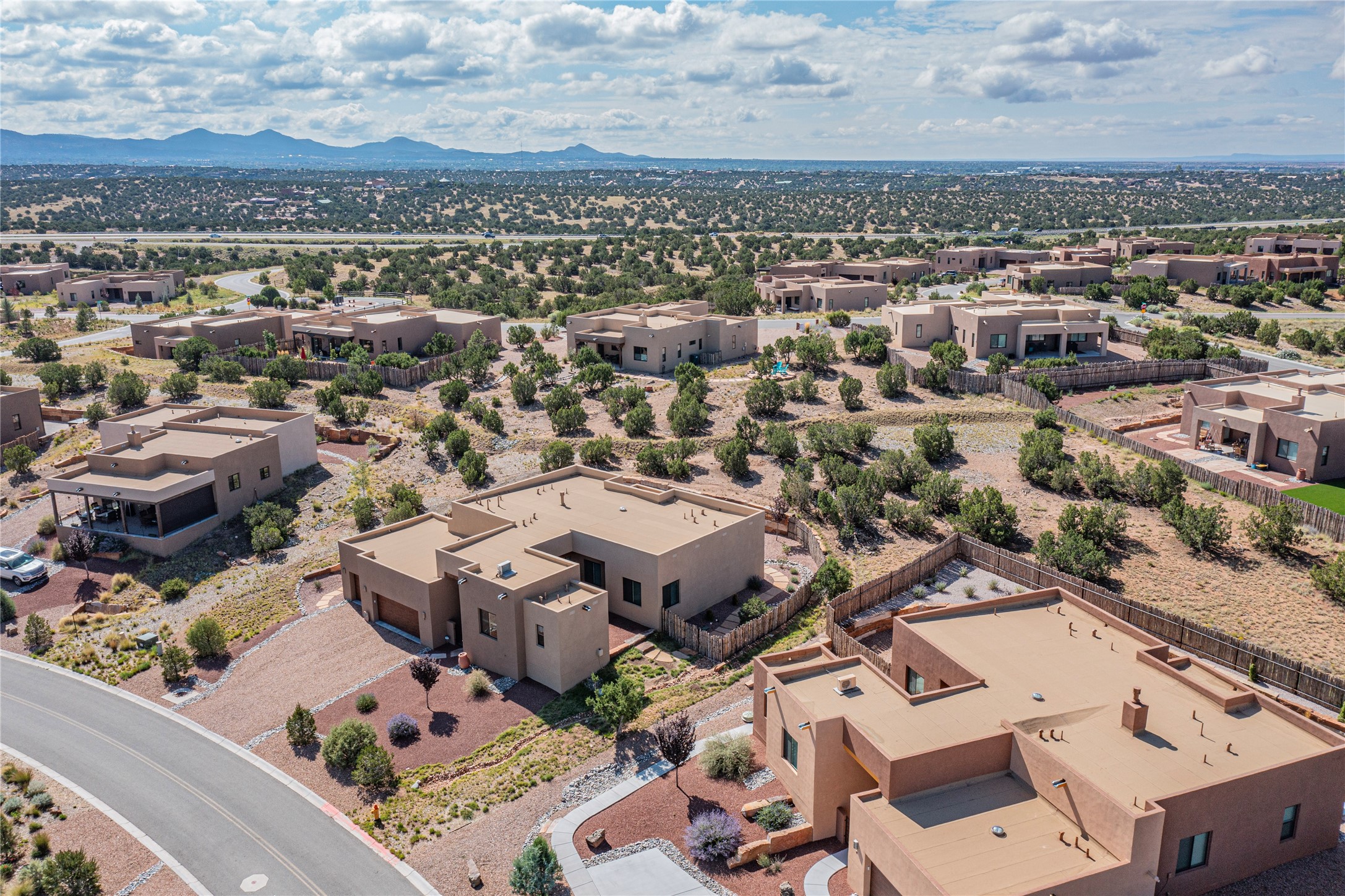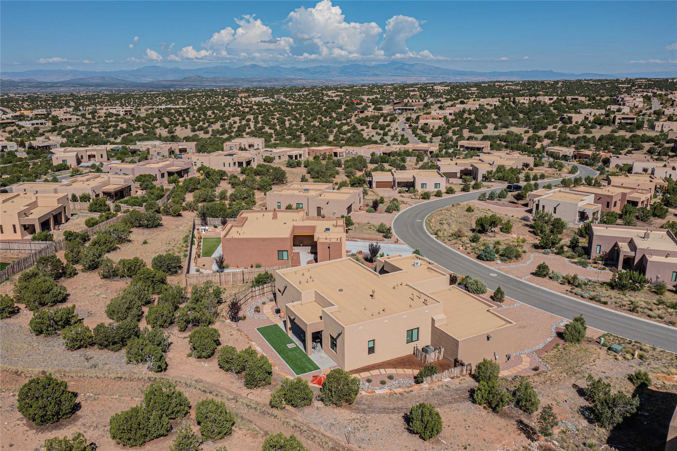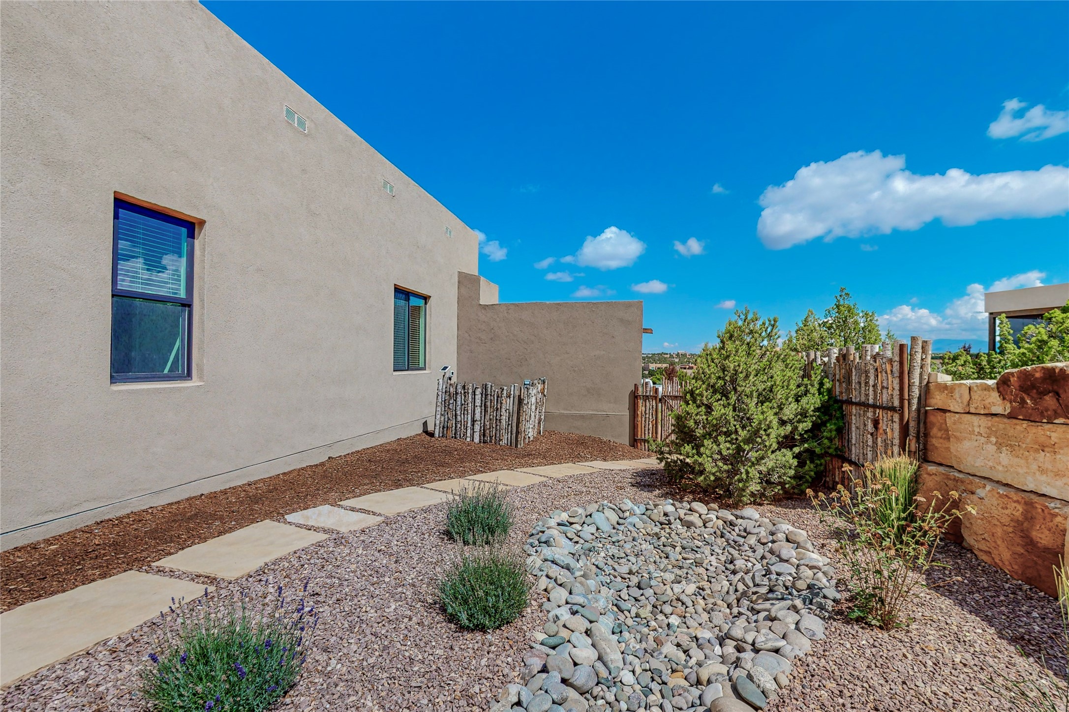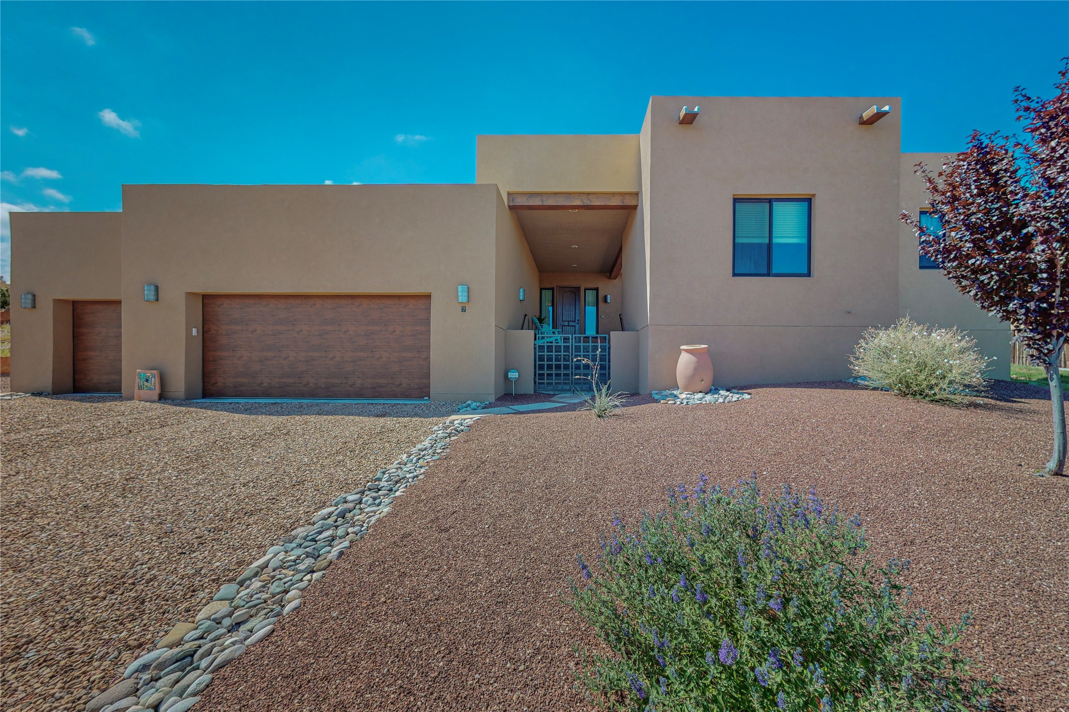 Looking for a newer single level home with a guest house and views? Welcome home to this meticulously maintained, immaculate, and warmly inviting home that was built in 2021 within the Tessera community. 7 Via Harena tastefully blends modern architecture with Santa Fe ambiance in a beautifully balanced way. The open concept floor plan permeates the Living Room, dining area and kitchen with light enhanced by high ceilings, showcasing comfortable seating areas, upgraded appliances and plenty of counter space. The two guest rooms and full bath are welcoming and nicely separated from the luxurious primary suite. Meticulousness doesn't end there as you transition to outside spaces which are aesthetically pleasing with precise landscaping, mountain views in the front and peaceful privacy in the back. Private yet easily accessible, the one-bedroom guest house with three-quarter bath is perfect for guests, a private office space or yoga studio. Added bonus features include a three-car garage, tankless hot water and a level two electric vehicle charger. Welcome home.