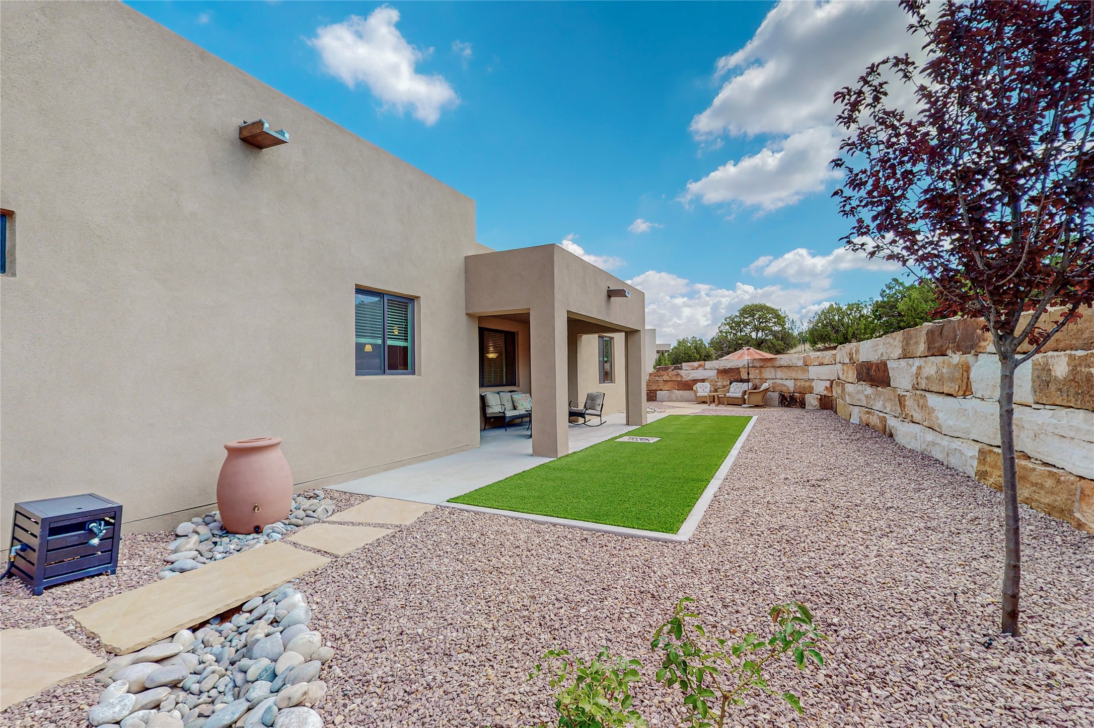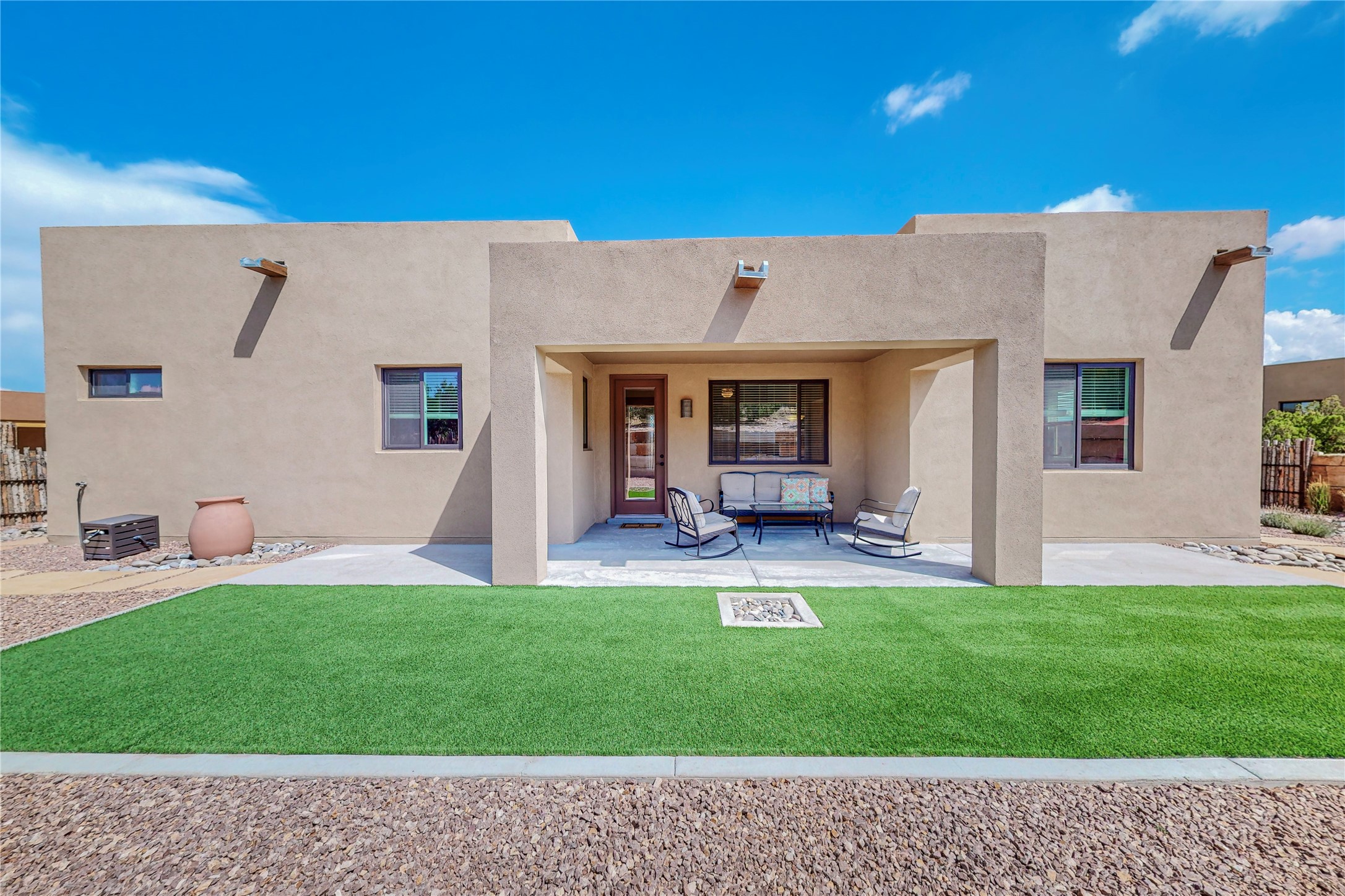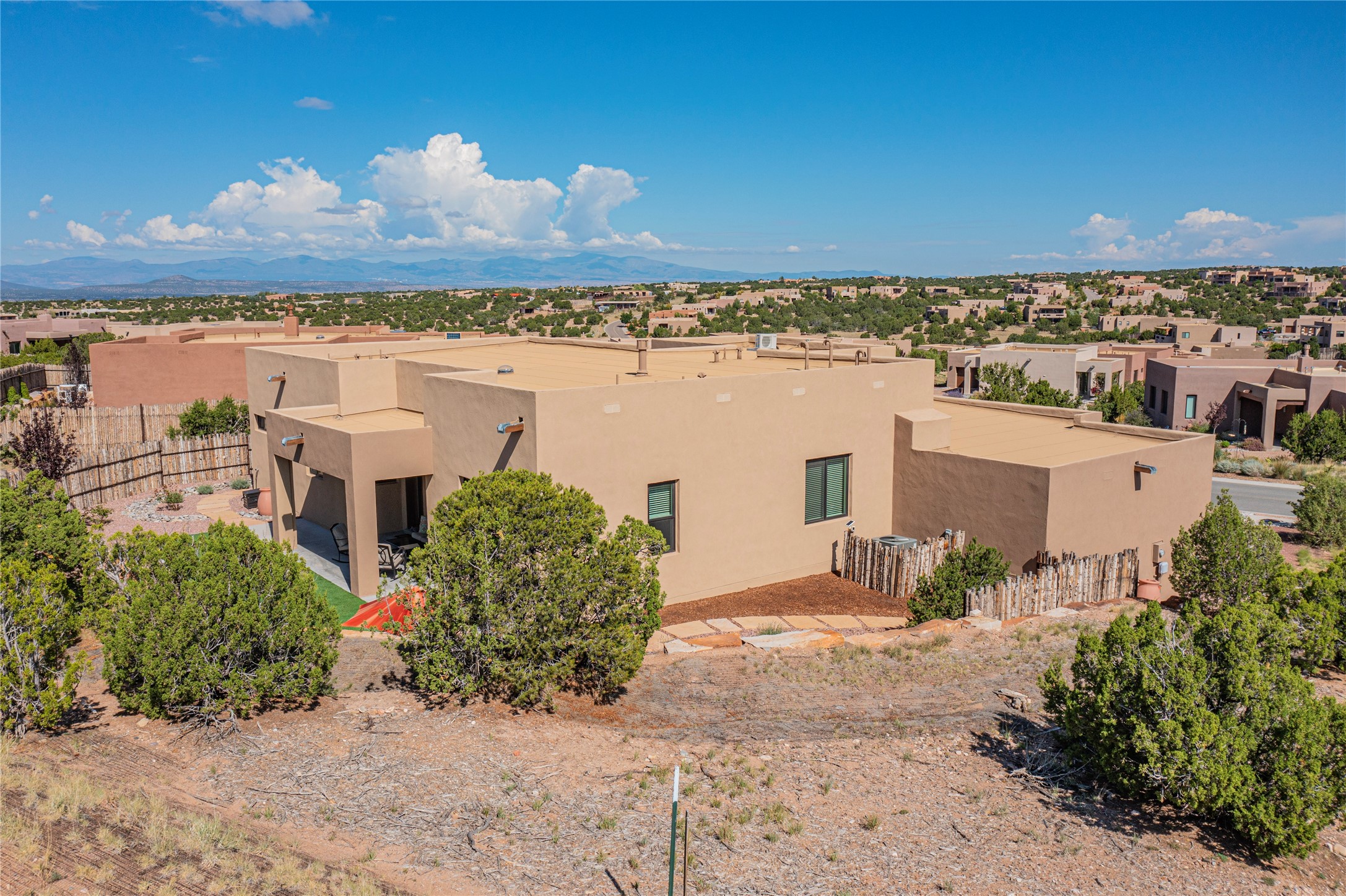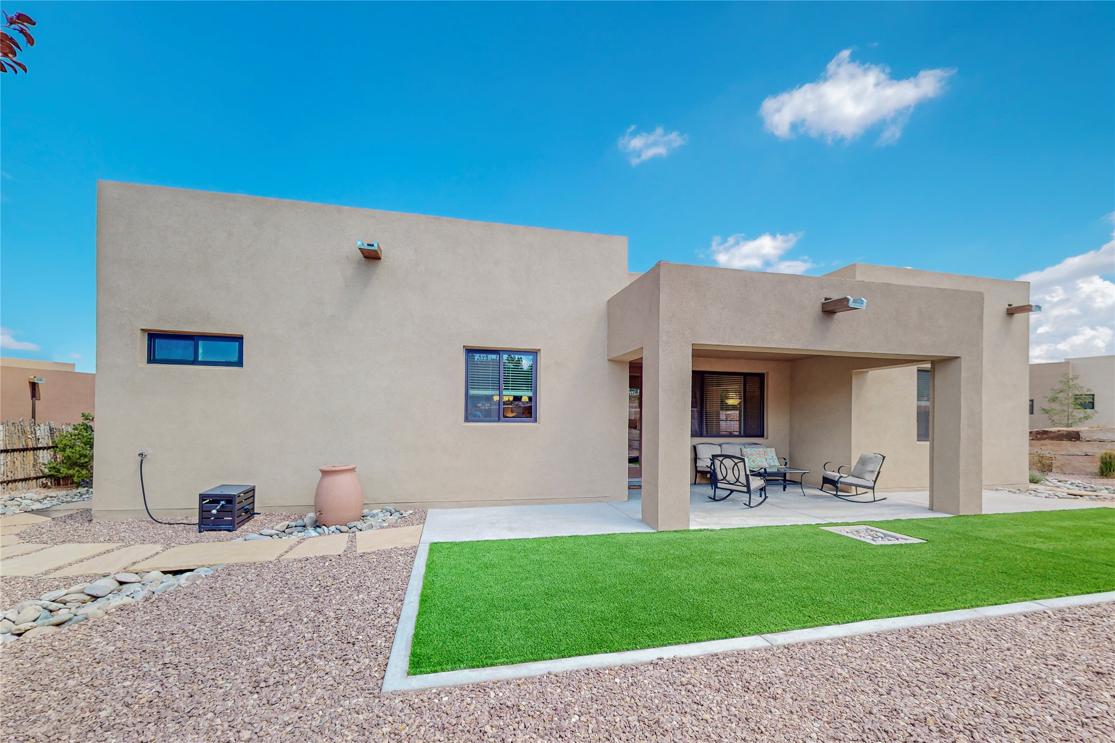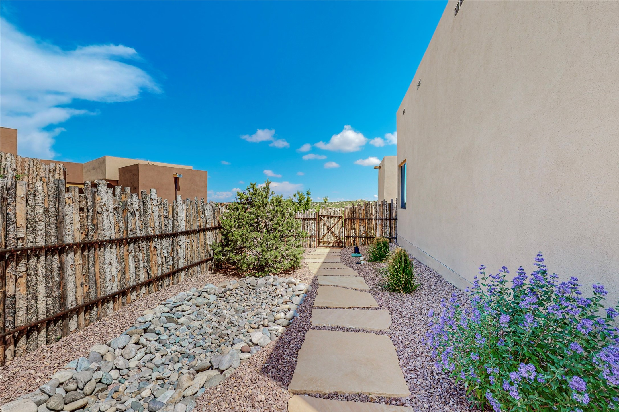 Looking for a newer single level home with a guest house and views? Welcome home to this meticulously maintained, immaculate, and warmly inviting home that was built in 2021 within the Tessera community. 7 Via Harena tastefully blends modern architecture with Santa Fe ambiance in a beautifully balanced way. The open concept floor plan permeates the Living Room, dining area and kitchen with light enhanced by high ceilings, showcasing comfortable seating areas, upgraded appliances and plenty of counter space. The two guest rooms and full bath are welcoming and nicely separated from the luxurious primary suite. Meticulousness doesn't end there as you transition to outside spaces which are aesthetically pleasing with precise landscaping, mountain views in the front and peaceful privacy in the back. Private yet easily accessible, the one-bedroom guest house with three-quarter bath is perfect for guests, a private office space or yoga studio. Added bonus features include a three-car garage, tankless hot water and a level two electric vehicle charger. Welcome home.