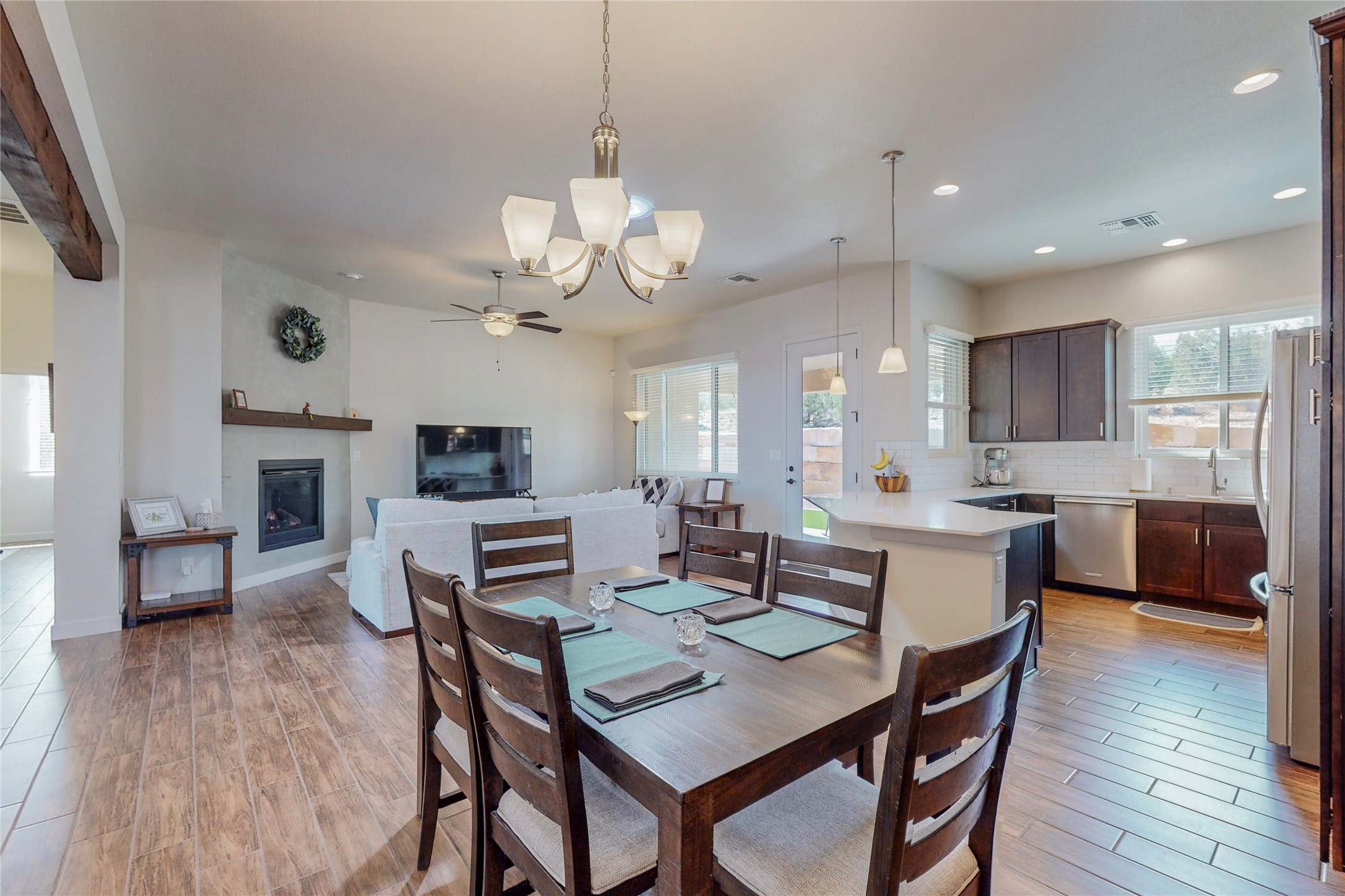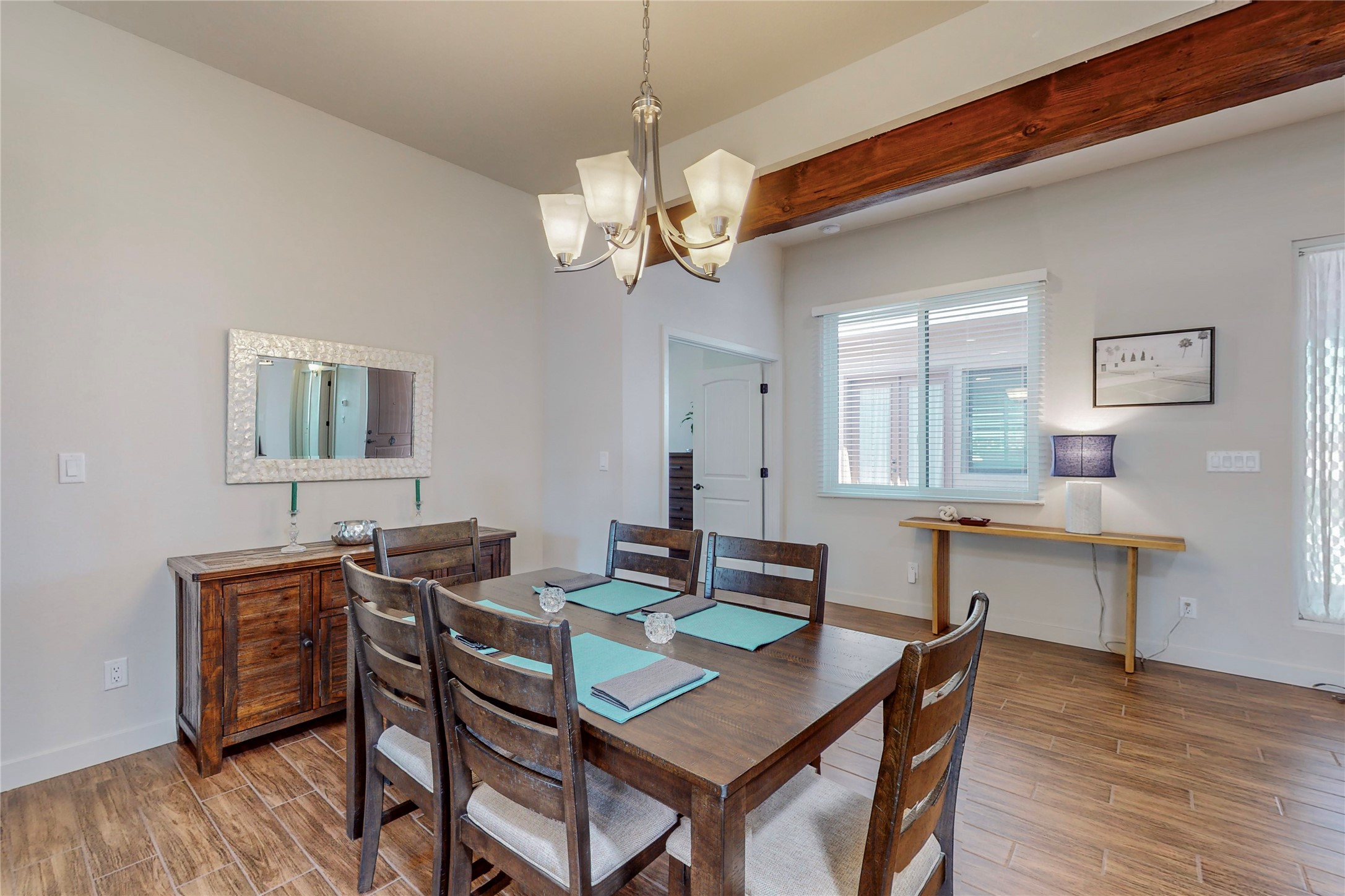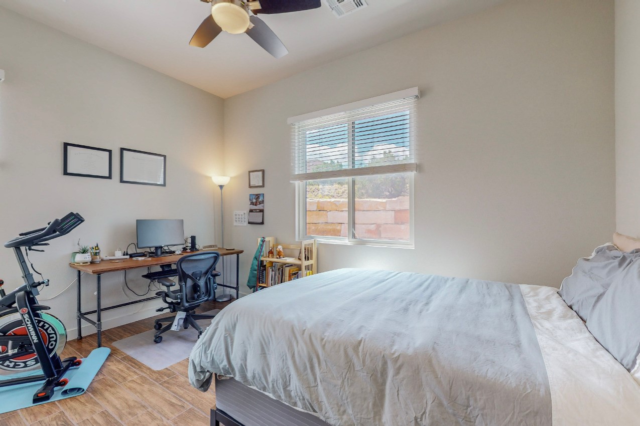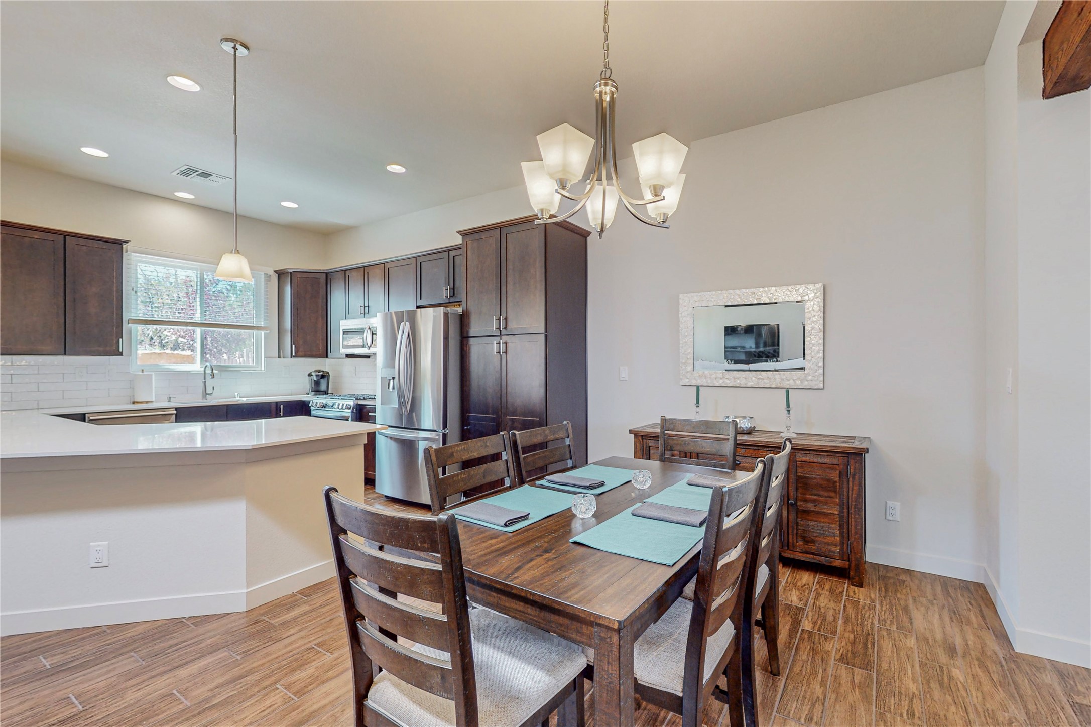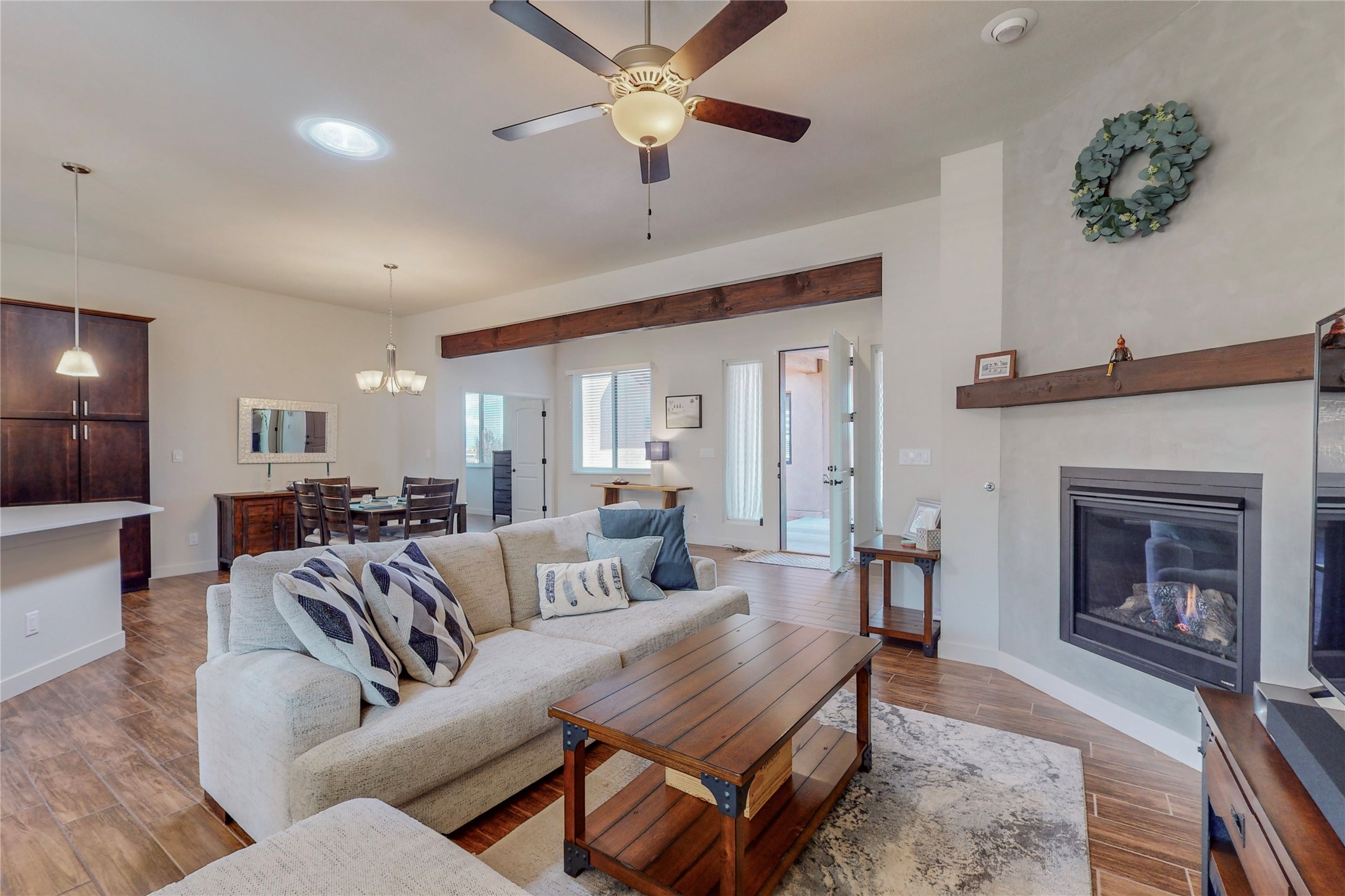 Looking for a newer single level home with a guest house and views? Welcome home to this meticulously maintained, immaculate, and warmly inviting home that was built in 2021 within the Tessera community. 7 Via Harena tastefully blends modern architecture with Santa Fe ambiance in a beautifully balanced way. The open concept floor plan permeates the Living Room, dining area and kitchen with light enhanced by high ceilings, showcasing comfortable seating areas, upgraded appliances and plenty of counter space. The two guest rooms and full bath are welcoming and nicely separated from the luxurious primary suite. Meticulousness doesn't end there as you transition to outside spaces which are aesthetically pleasing with precise landscaping, mountain views in the front and peaceful privacy in the back. Private yet easily accessible, the one-bedroom guest house with three-quarter bath is perfect for guests, a private office space or yoga studio. Added bonus features include a three-car garage, tankless hot water and a level two electric vehicle charger. Welcome home.
