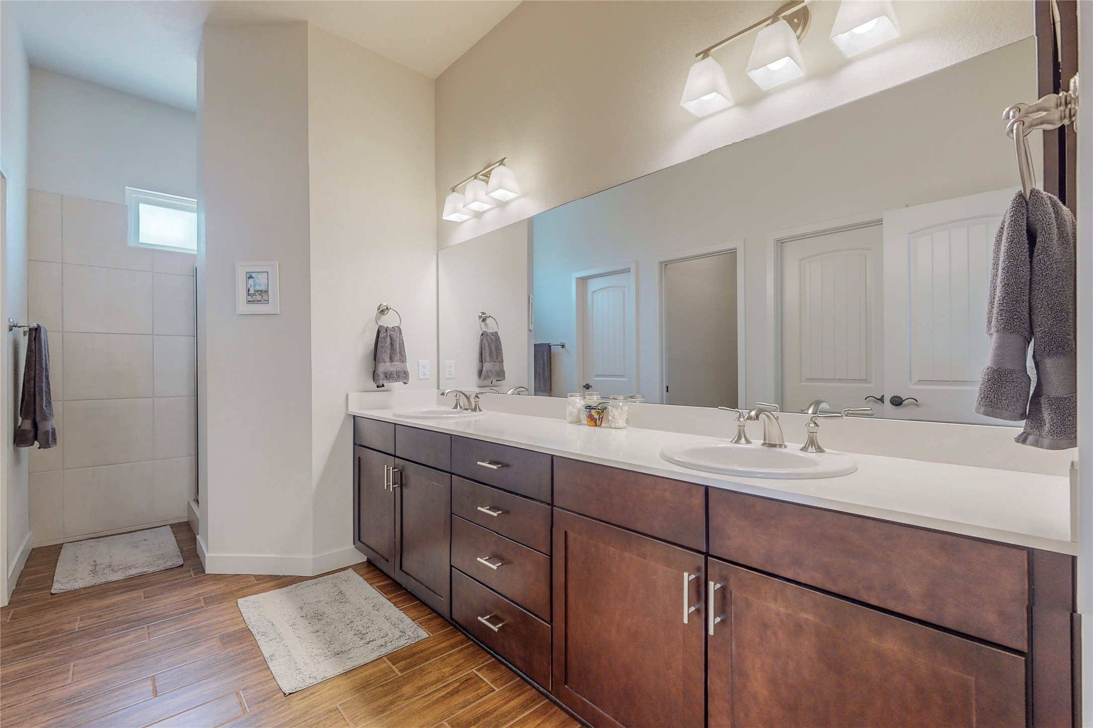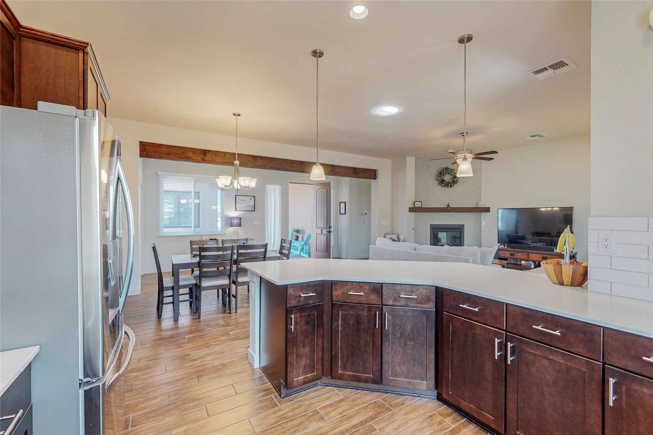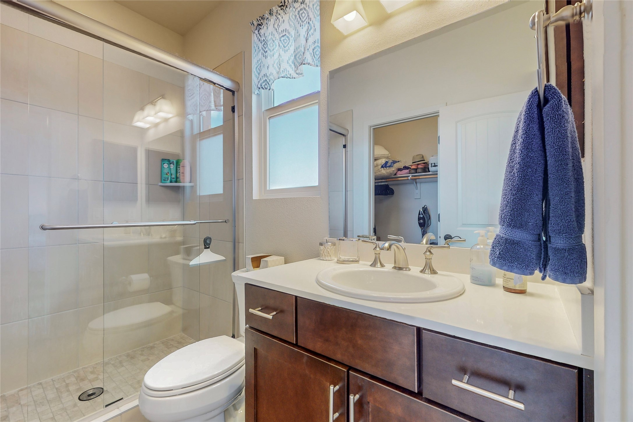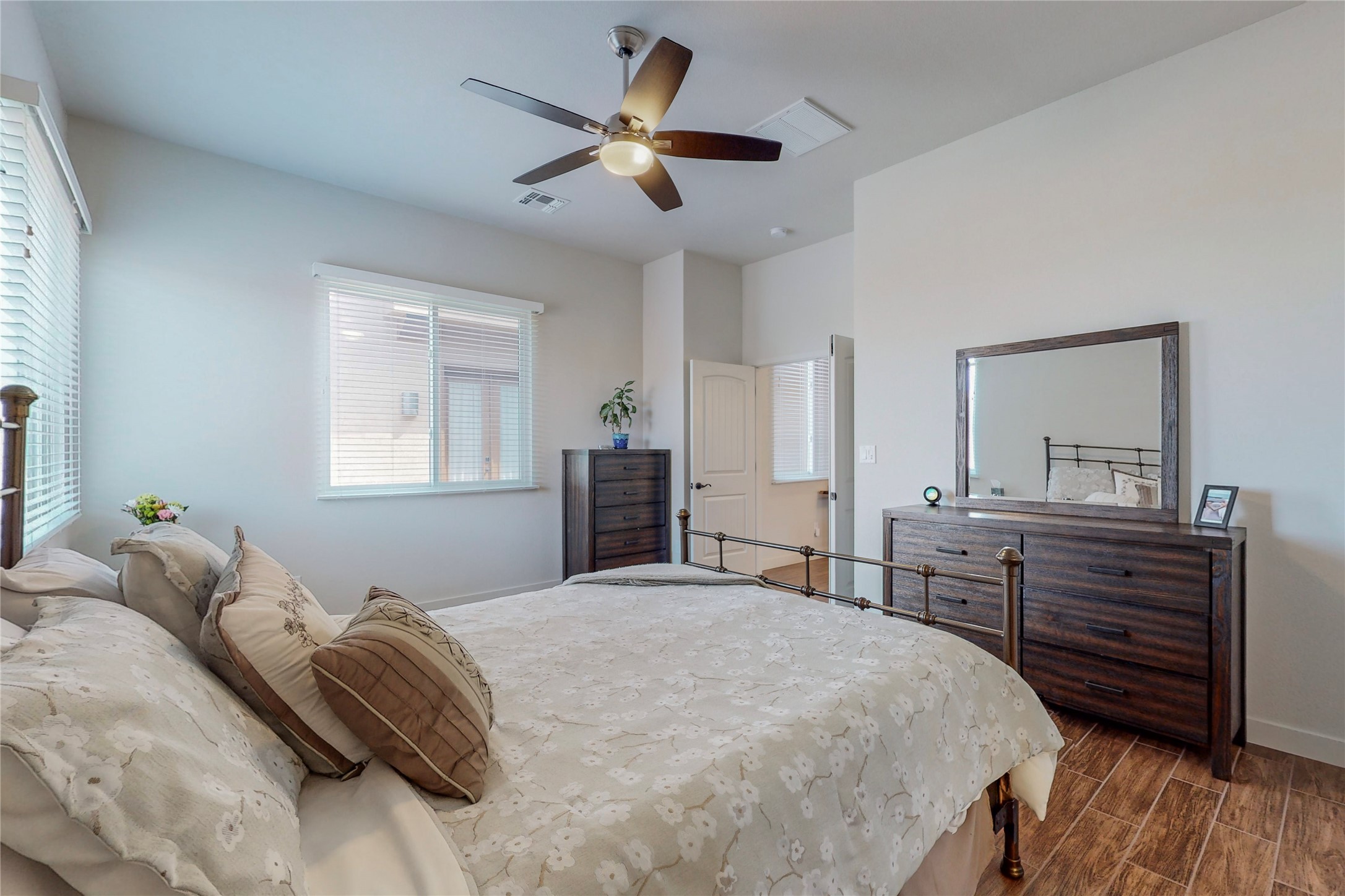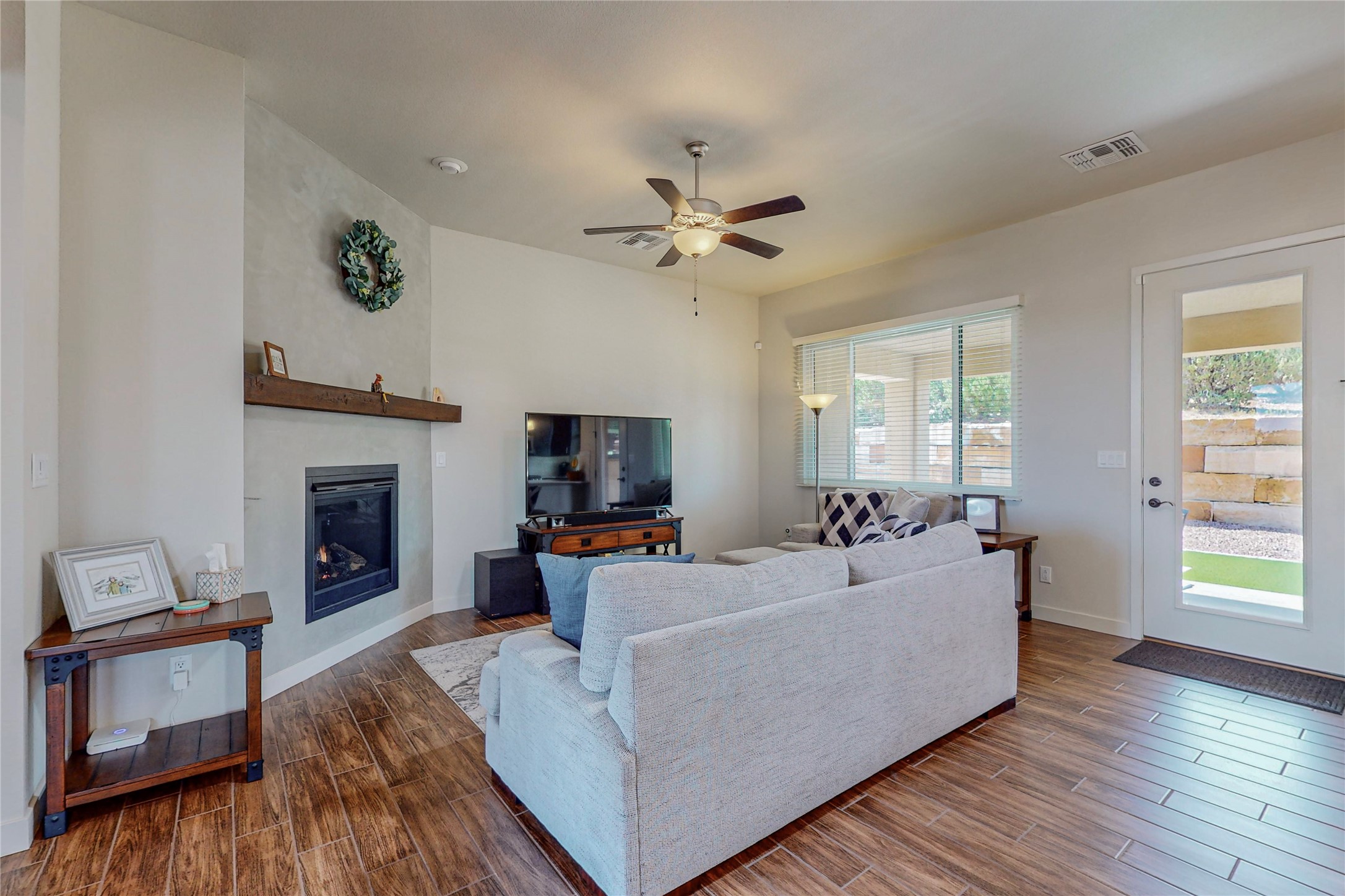 Looking for a newer single level home with a guest house and views? Welcome home to this meticulously maintained, immaculate, and warmly inviting home that was built in 2021 within the Tessera community. 7 Via Harena tastefully blends modern architecture with Santa Fe ambiance in a beautifully balanced way. The open concept floor plan permeates the Living Room, dining area and kitchen with light enhanced by high ceilings, showcasing comfortable seating areas, upgraded appliances and plenty of counter space. The two guest rooms and full bath are welcoming and nicely separated from the luxurious primary suite. Meticulousness doesn't end there as you transition to outside spaces which are aesthetically pleasing with precise landscaping, mountain views in the front and peaceful privacy in the back. Private yet easily accessible, the one-bedroom guest house with three-quarter bath is perfect for guests, a private office space or yoga studio. Added bonus features include a three-car garage, tankless hot water and a level two electric vehicle charger. Welcome home.