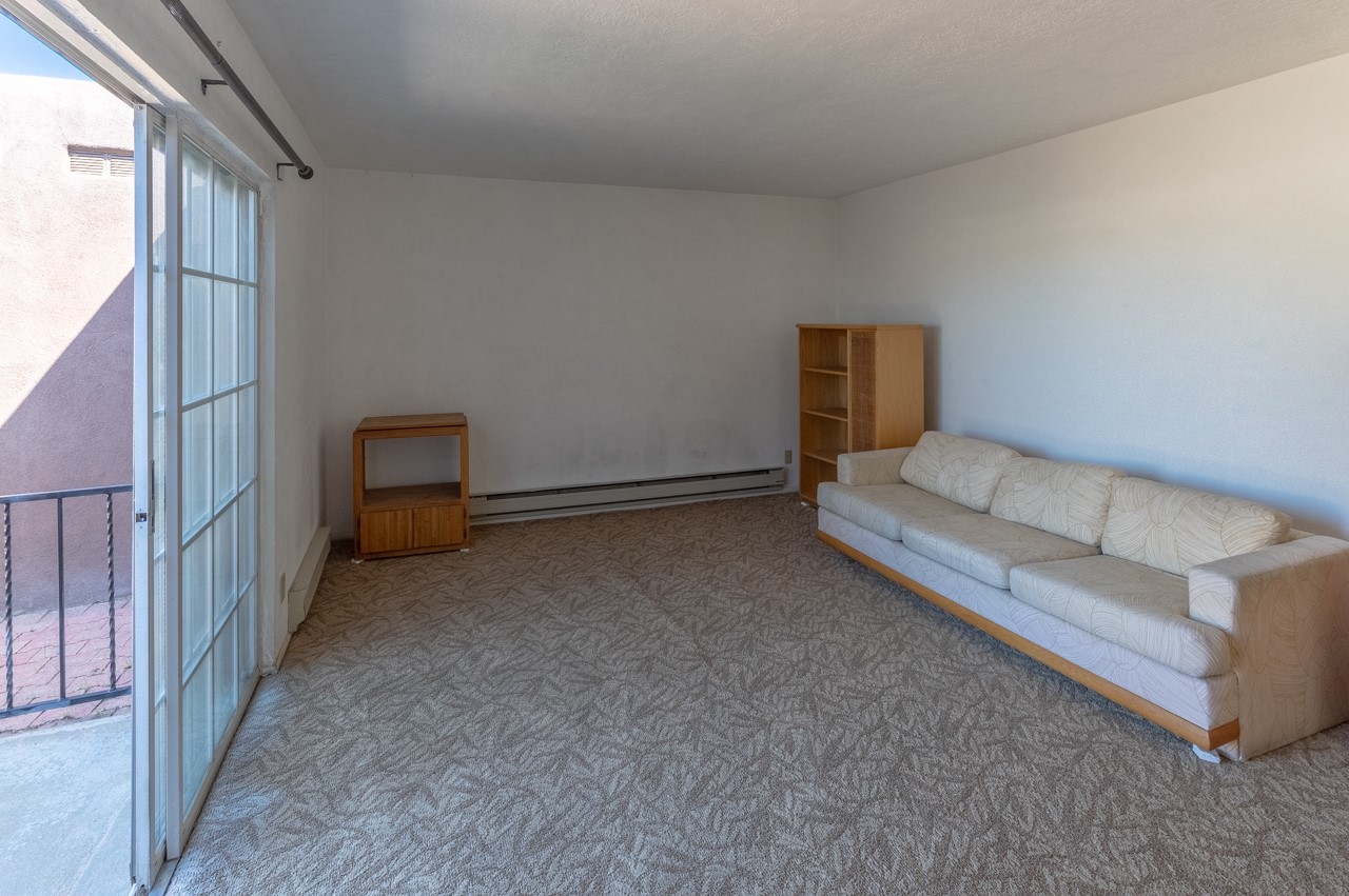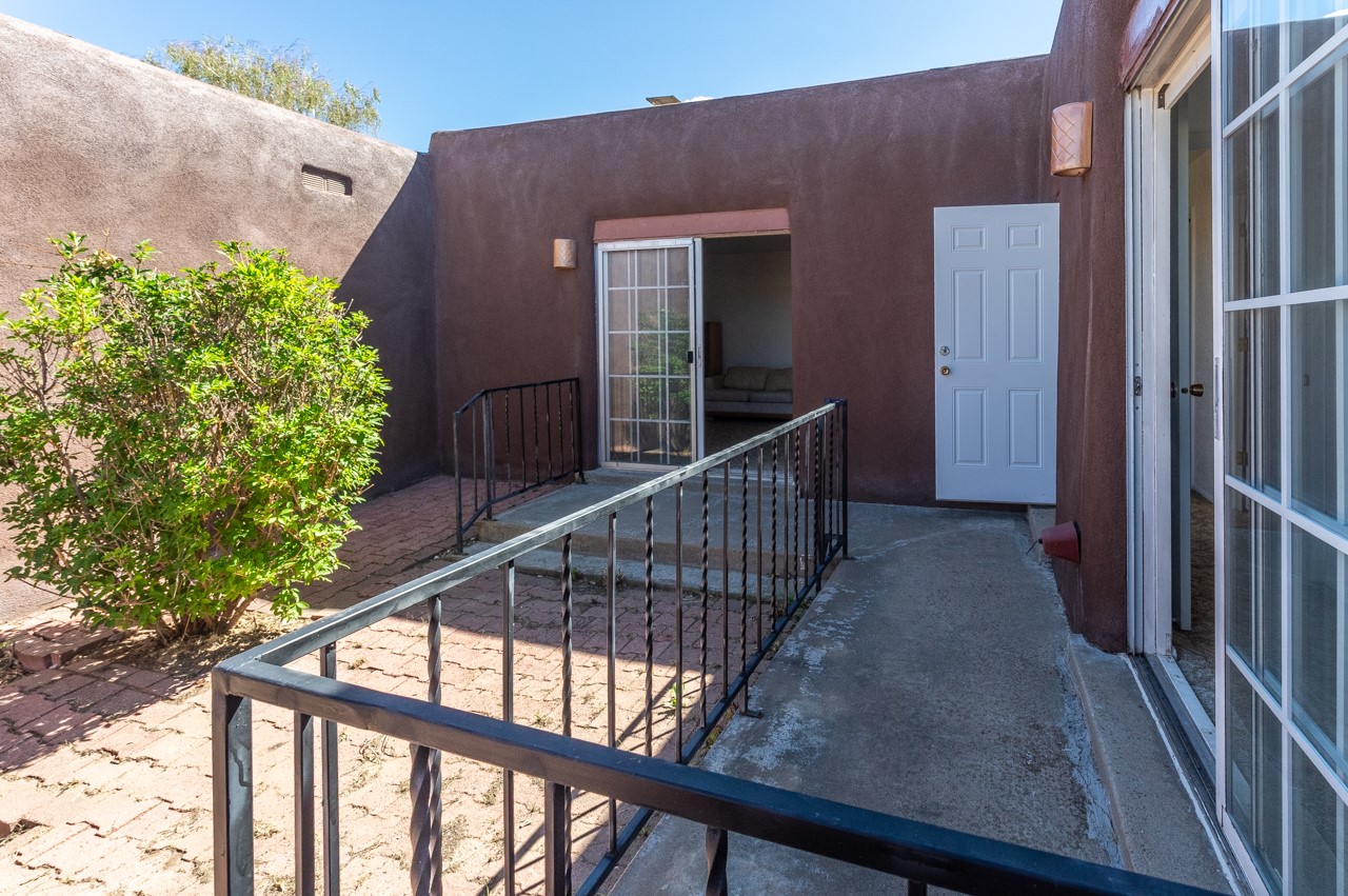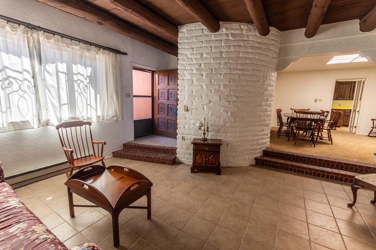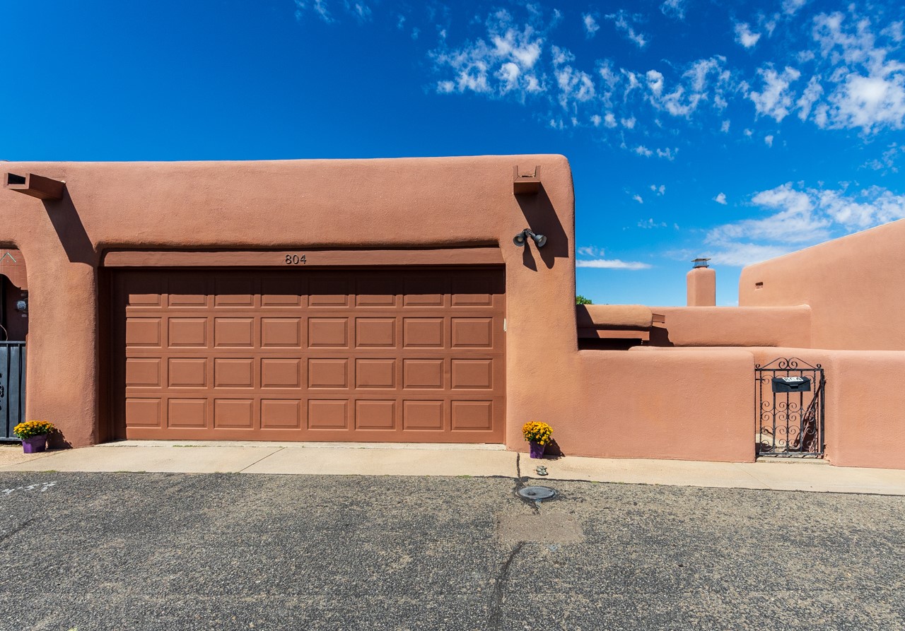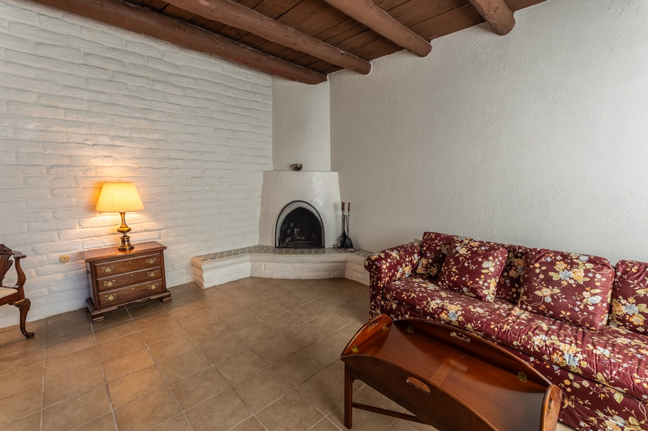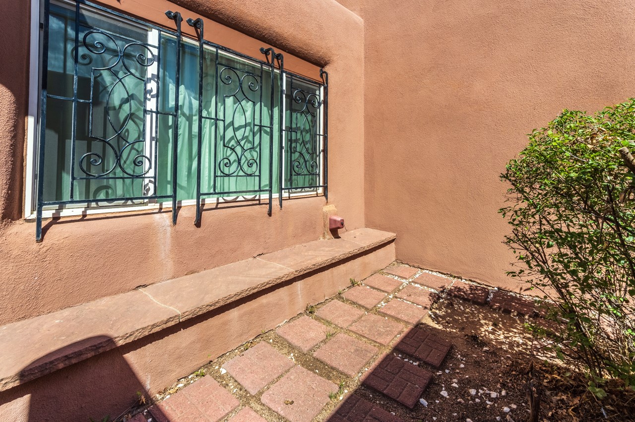 Valle del Sol townhome close to where you want to be in Santa Fe. Great walkability to downtown hot spots. The property has a private front courtyard and an enclosed back courtyard for lots of privacy while sitting out watching the sunsets.The home is ready for a fresh look but the tall ceiling in the living room has beautiful vigas and brick walls plus a kiva fireplace. The primary bedroom is oversized also with a kiva fireplace, lots of natural lighting, and a sliding door to the backyard. The secondary 3/4 bath in the hall has charming tilework and a skylight. There is also a formal dining room off the kitchen and open to the living room with one step down. The second bedroom also has a slider to the back courtyard.The kitchen has a small eating area and the laundry room is just off the kitchen with additional pantry space. It is one level in the main living space with steps down from the garage and the front entry.