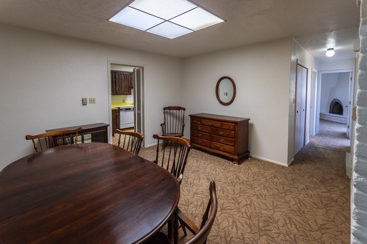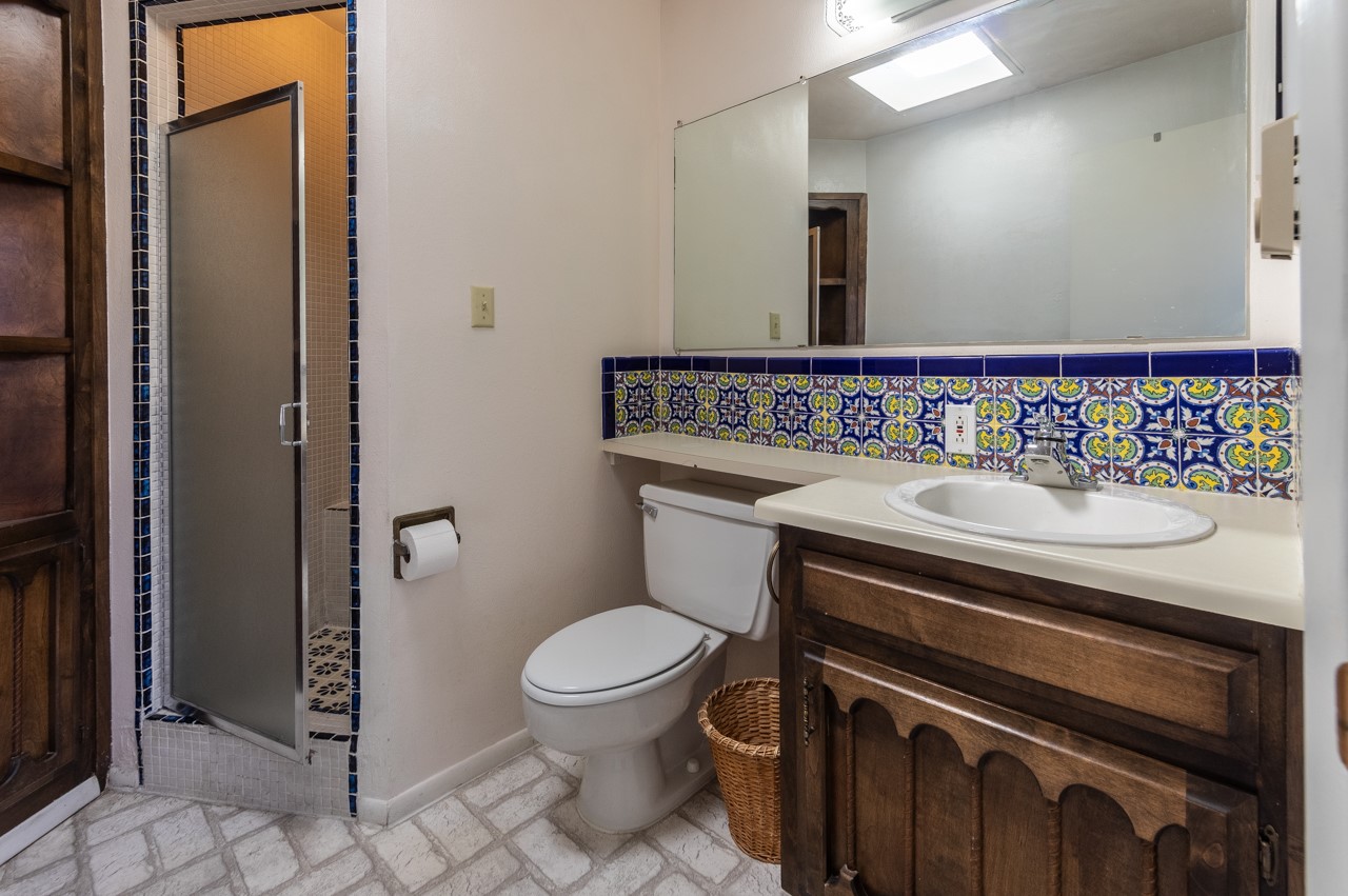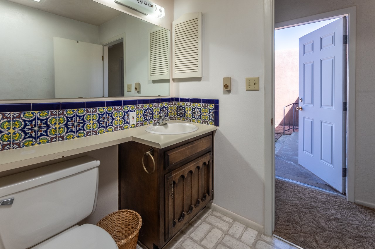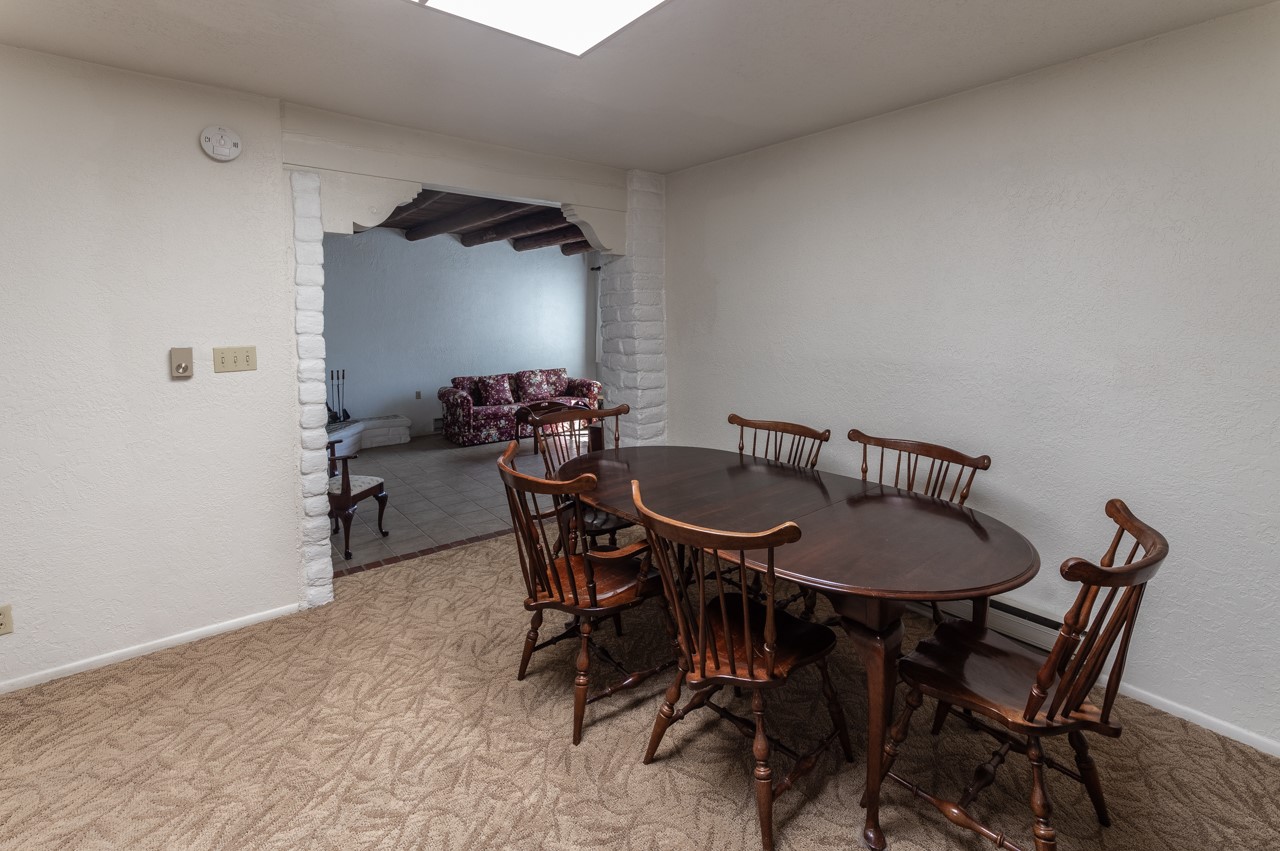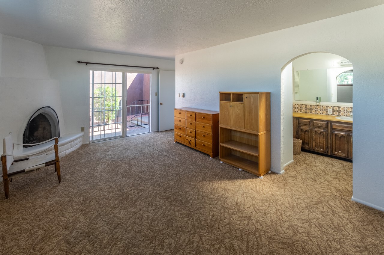Valle del Sol townhome close to where you want to be in Santa Fe. Great walkability to downtown hot spots. The property has a private front courtyard and an enclosed back courtyard for lots of privacy while sitting out watching the sunsets.The home is ready for a fresh look but the tall ceiling in the living room has beautiful vigas and brick walls plus a kiva fireplace. The primary bedroom is oversized also with a kiva fireplace, lots of natural lighting, and a sliding door to the backyard. The secondary 3/4 bath in the hall has charming tilework and a skylight. There is also a formal dining room off the kitchen and open to the living room with one step down. The second bedroom also has a slider to the back courtyard.The kitchen has a small eating area and the laundry room is just off the kitchen with additional pantry space. It is one level in the main living space with steps down from the garage and the front entry.