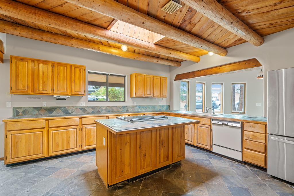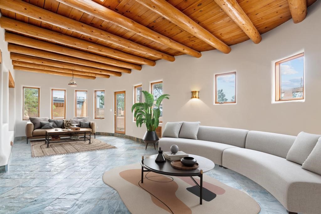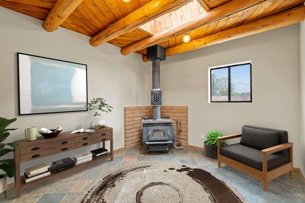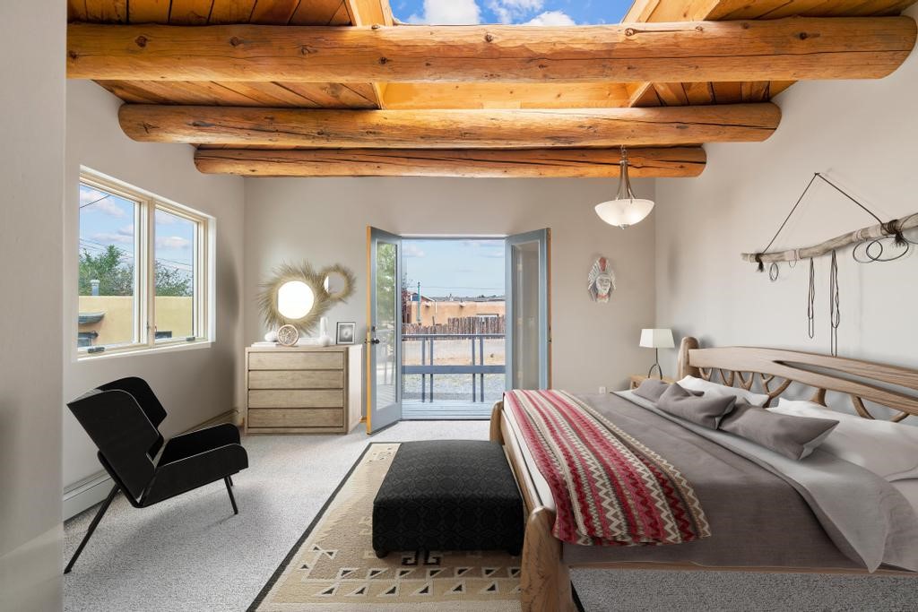 Introducing 2259 Rumbo Al Sur: An amazing property in Santa Fe that includes two adjacent lots and features multiple units. Located in the Historic Village of Agua Fria and just 20 minutes to downtown Santa Fe, this special property is just what you are looking for! The main two-story home has 3,236 sqft, 4 bedrooms, 3 baths, gorgeous wood planked ceilings with vigas, custom installed slate tiled flooring, brand new carpets and a newly remodeled and designed master bathroom. Unit A is a 1 bedroom, 1 bath with 416+/- sqft and Saltillo tiled flooring. Unit B is also a 1 bedroom, 1 bath with 420 +/- sqft and an attached 2-car garage. Unit C is a sweet 1 bedroom 1 bath studio with 437+/- sqft and Saltillo tiled flooring. Also included is a stylish 2 bedroom, 1 bath, 900+/- square foot casita with great interior natural light! Also included is a nice carport to keep your vehicles protected from the sun and weather. Come and see this amazing property today.