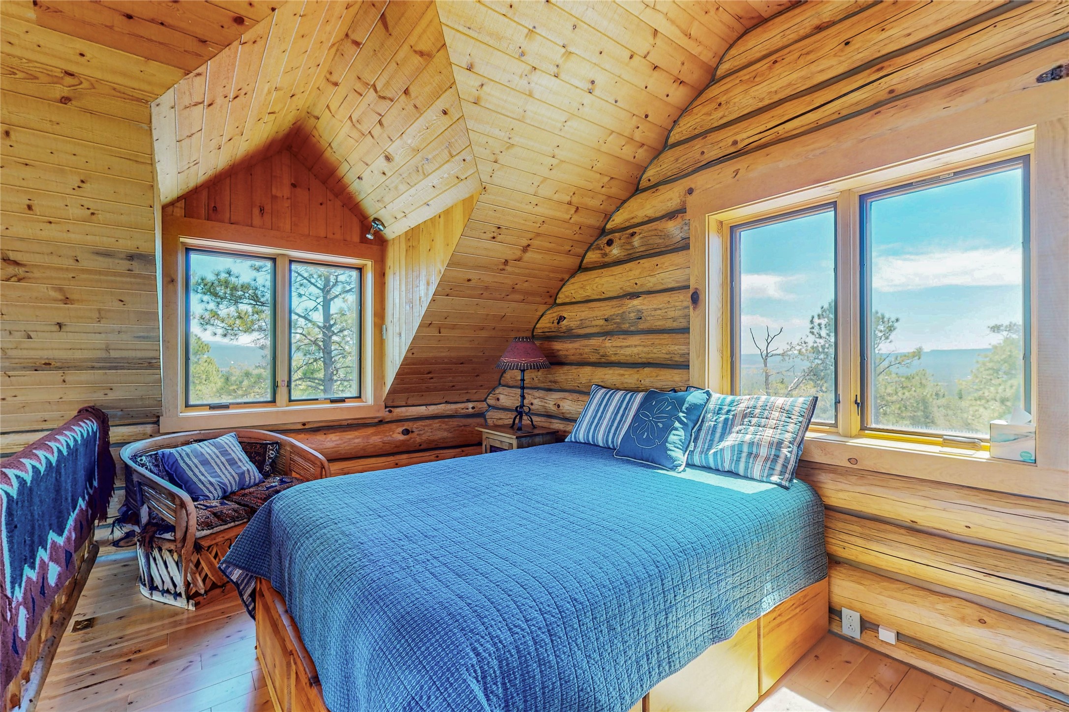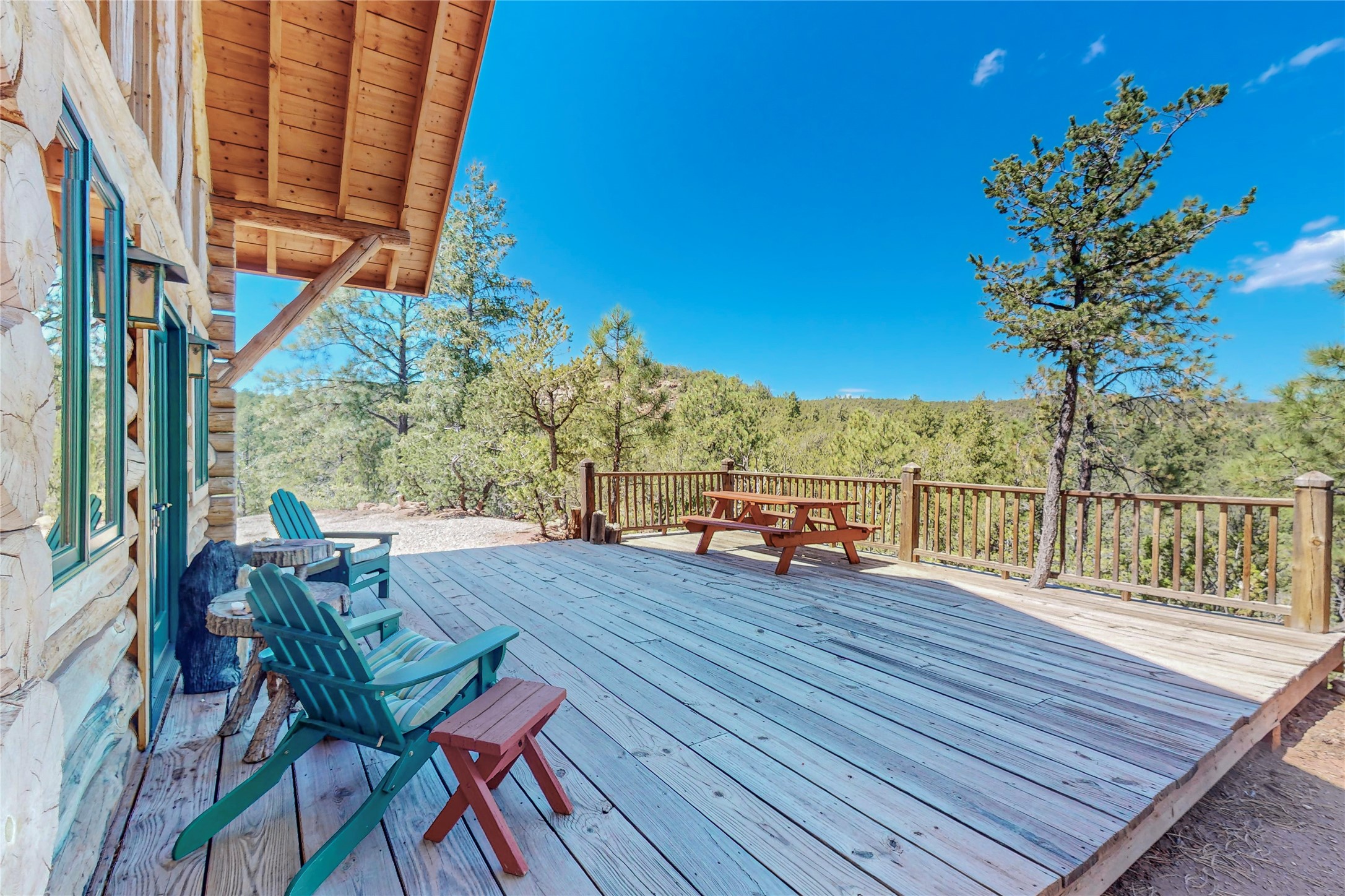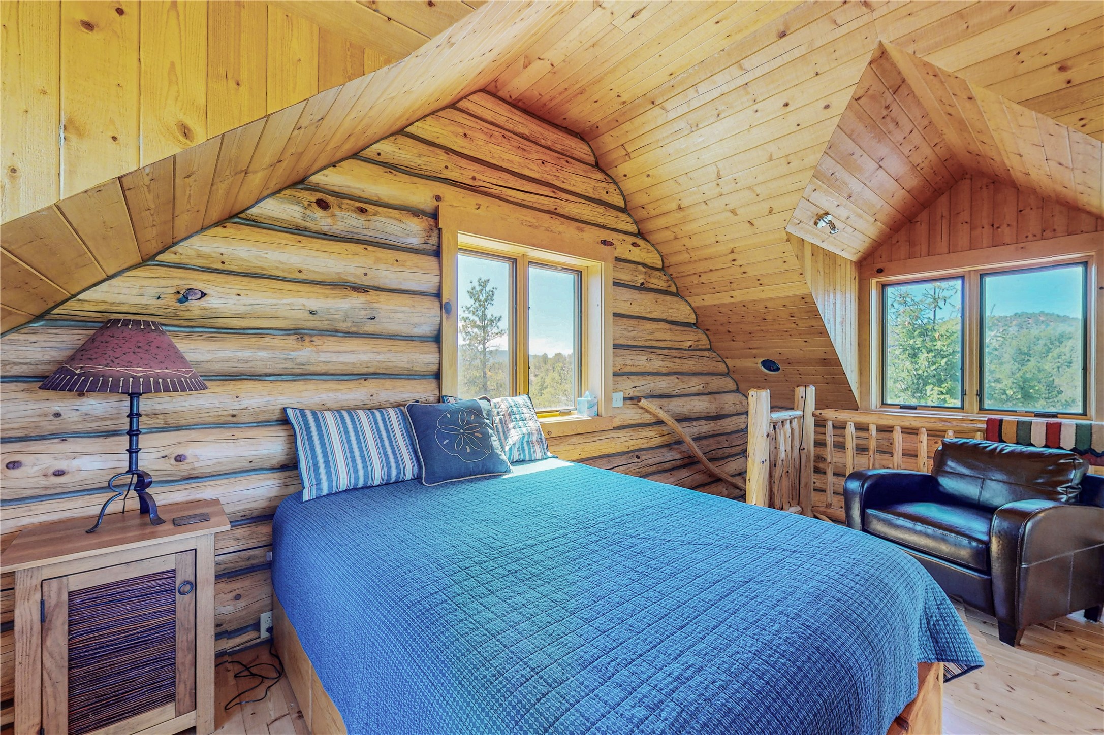 VERY RARE, amazing custom built log cabin with stunning 360 views offered to sale for the first time. Located at the top of Los Altos de Cicuye a portion of the property we have been told was the sacred Medicine hill for the Pecos Pueblo and the remains of a Kiva are present. The home was built by Pecos Trail Contractors, the premier builder in the area and the details of the construction are significant. Properties such as this one are rarely available For folks seeking a quality, log cabin please consider Los Altos de Cicuye.