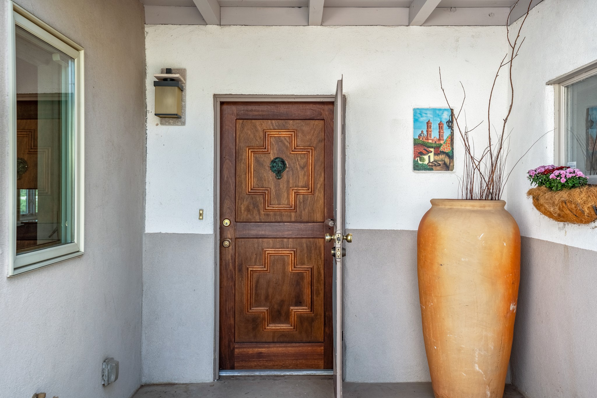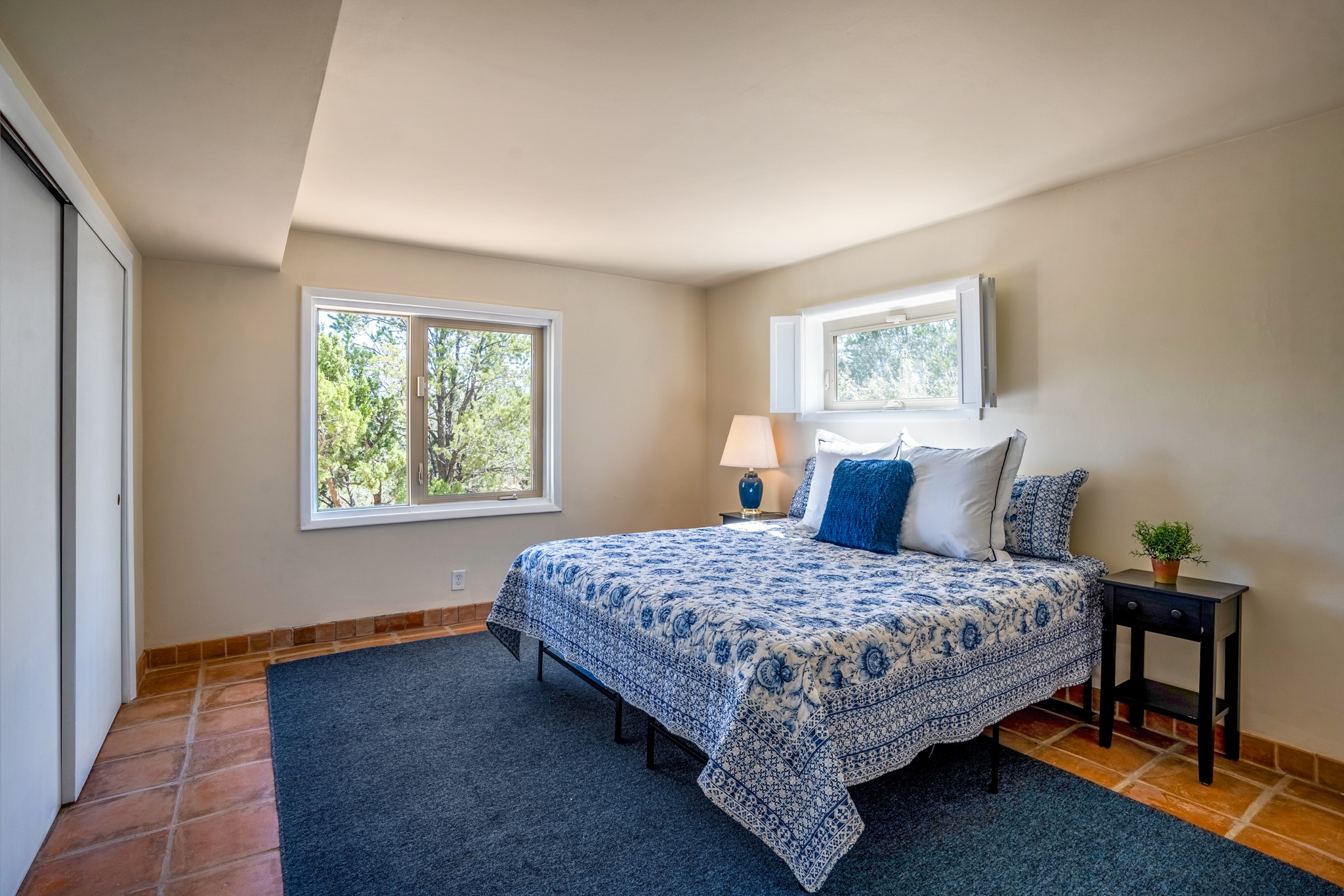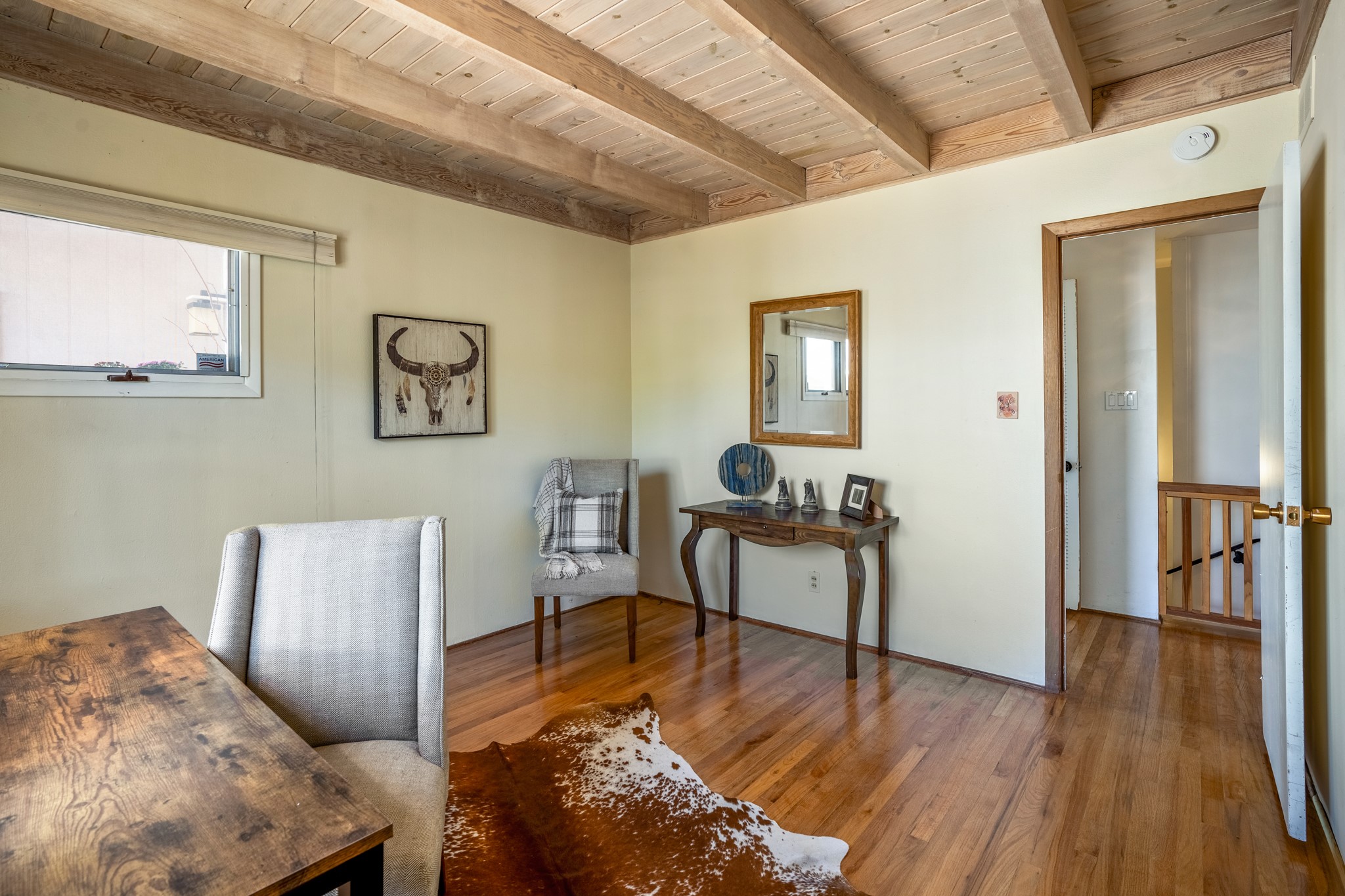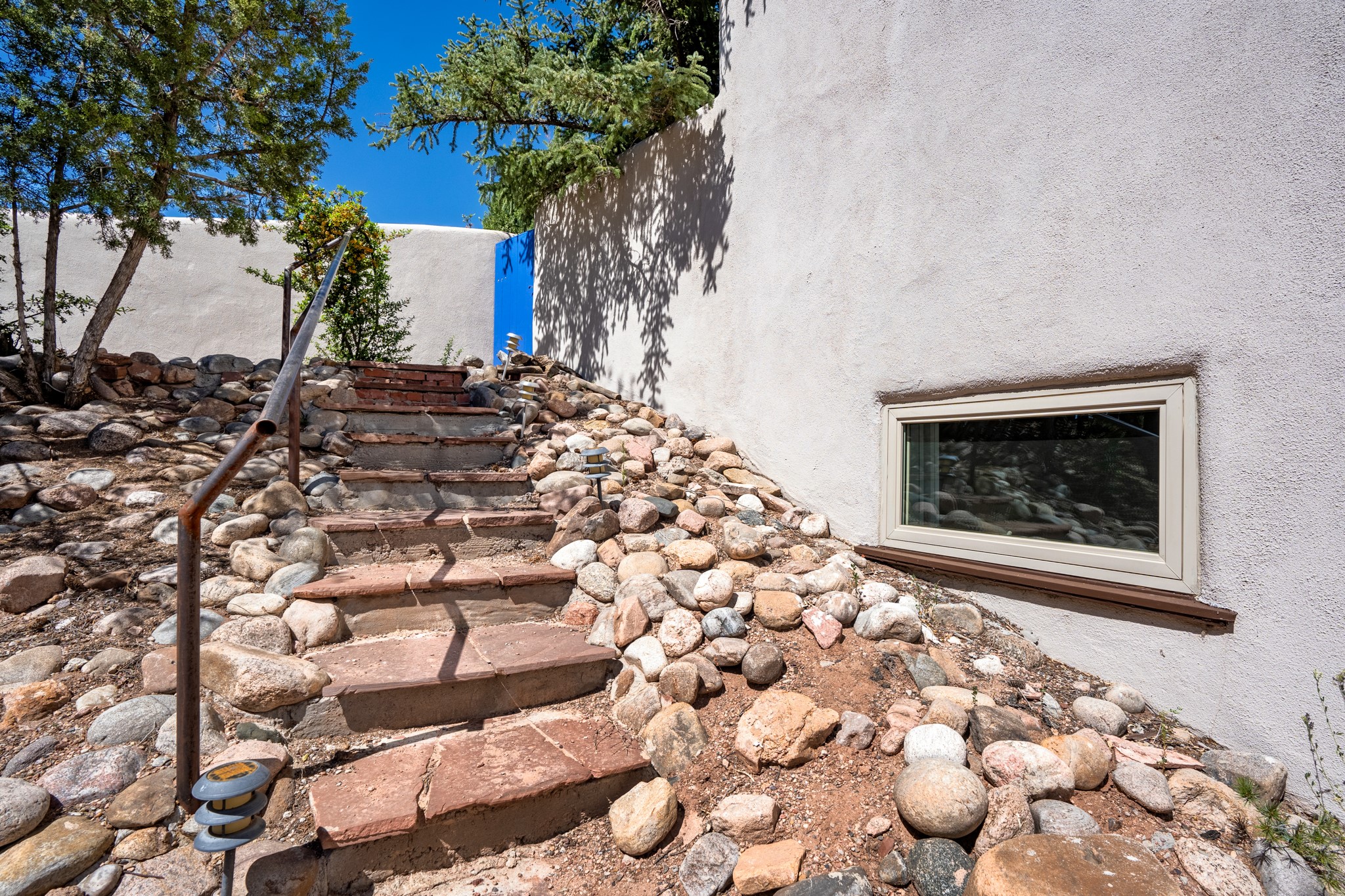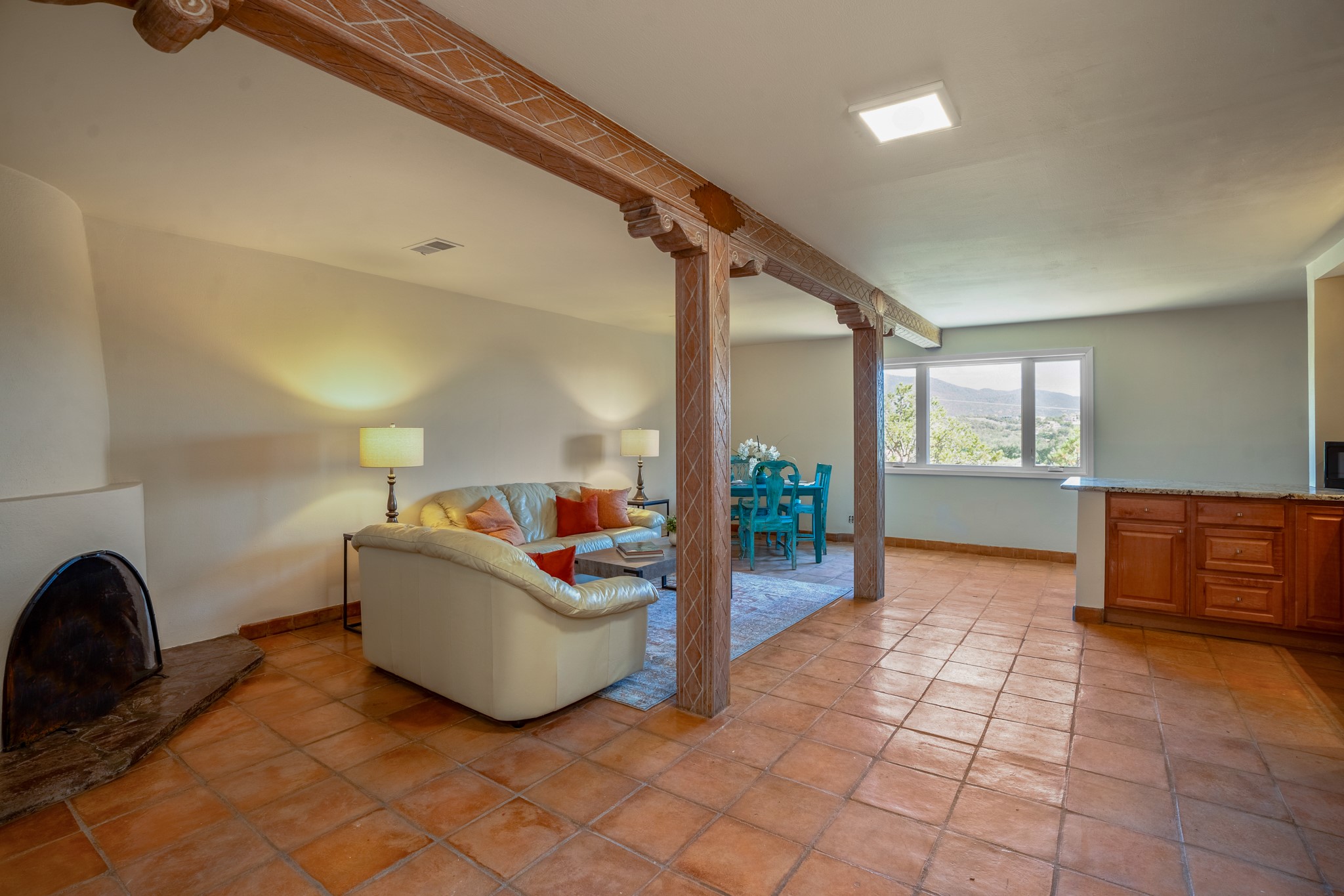 For Outstanding City and Mountain Views, discover the appeal of 783 Paseo de la Cuma, perched gracefully above the Santa Fe Plaza. From the moment you step inside, breathtaking vistas greet you in all directions. Gorgeous sunrises paint the sky every morning. Equally beautiful sunsets can be seen from the front entry. As you pass through the front gate, you'll find a private, spacious, walled courtyard and a lovely garden to enjoy Santa Fe's splendid climate. This charming mid-century home, built in 1960, features wood floors throughout the main level with three bedrooms, two updated bathrooms (including Smart toilet outlets), in just over 2,311 square feet. An open living and dining space blends seamlessly into the elegantly remodeled kitchen with custom Cherry and Maple cabinets and built-ins. The appliance package includes top-tier Sub-Zero Freezer and Refrigerator, Wolf gas range, convection oven, microwave and warming drawer, a Bosch dishwasher along with a two zone Sub-Zero wine refrigerator. A deck just off the dining/living area offers a great space to take in the city lights. A cozy banco adjacent to the kitchen welcomes you for morning coffee and surrounds you with views. In addition, a generous butlers pantry leads you into a sunlit studio/workshop/office, complete with a mini-split, providing comfort and versatility for both work and leisure. On the lower level, a separate guesthouse has its own private path and entry from the main-level parking area. This 1,475 square foot abode provides one bedroom and office, a tastefully updated 3/4 bath, a comfortable living and dining area with a well-appointed kitchenette. Additionally, there is a stackable washer and dryer, and tankless water heater. A workout/yoga room completes the package. The views from the picture windows are sure to delight your guests or tenants. This unit provides an excellent investment opportunity or a very appealing destination for friends and family, located just a short walk from the Plaza. Impeccable maintenance and thoughtful updates include a well-maintained roof, new Marvin casement and picture windows, and fresh stucco updates in 2023. Completing the picture is a two-car garage with mudroom and ample additional parking spaces... ideal for hosting gatherings with family and friends. This beautiful property is a short walk to Fort Marcy park with its community center, pickleball courts and the many festivals Santa Fe has to offer. Come and experience 783 Paseo de la Cuma...you won't want to miss it.