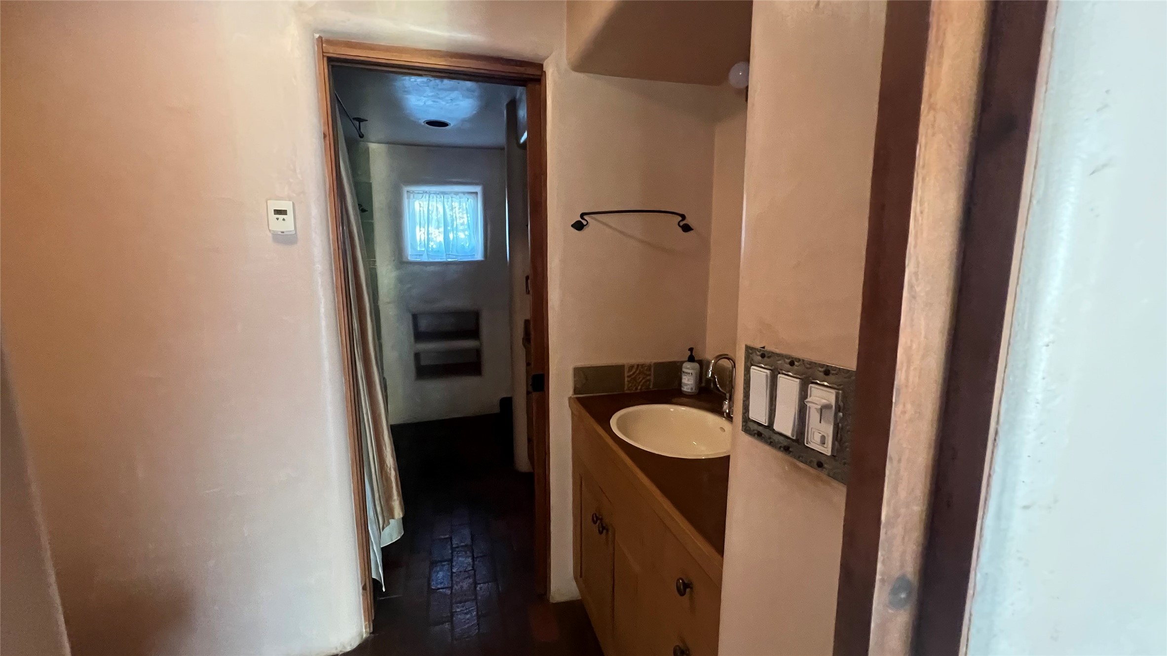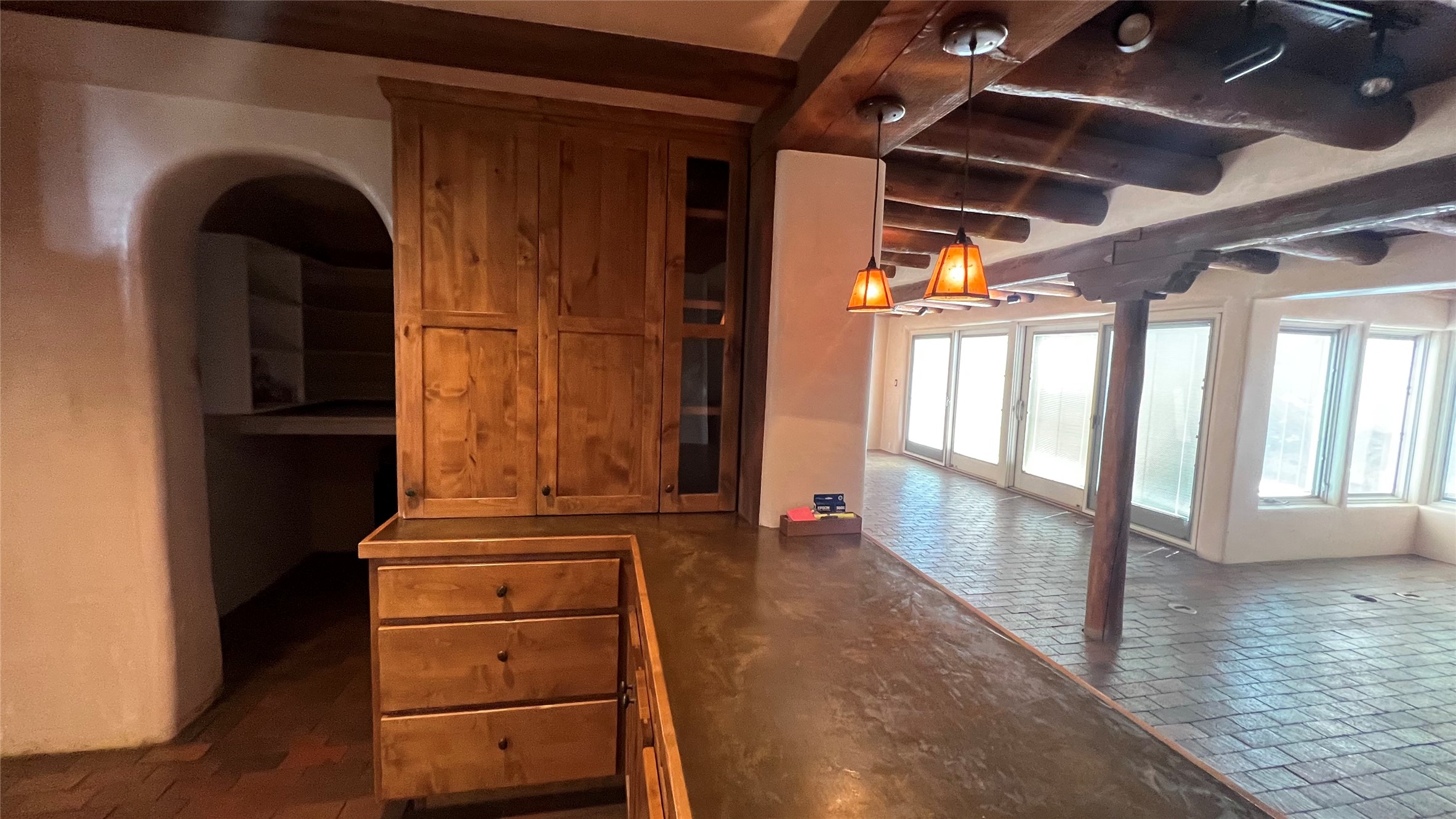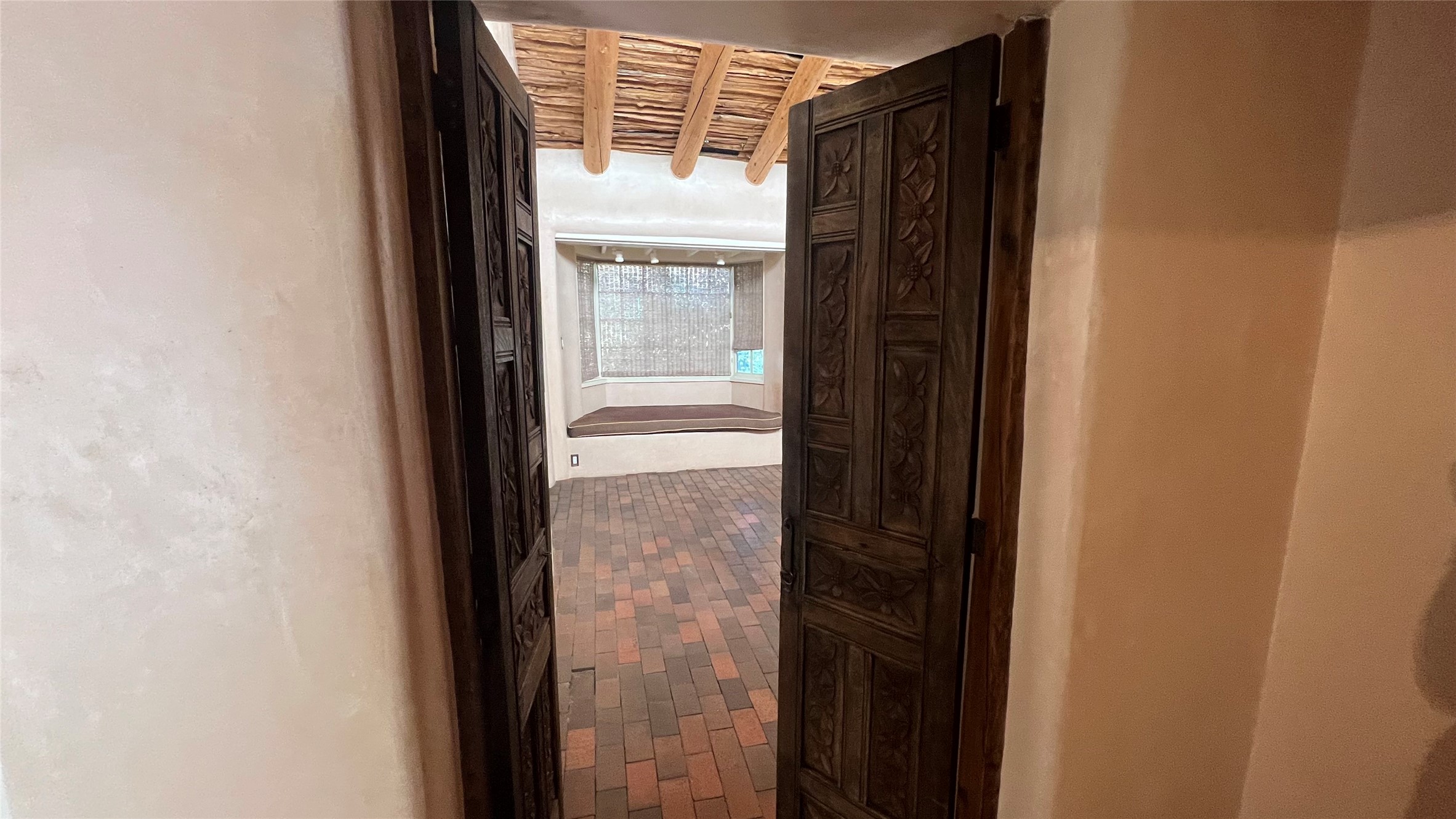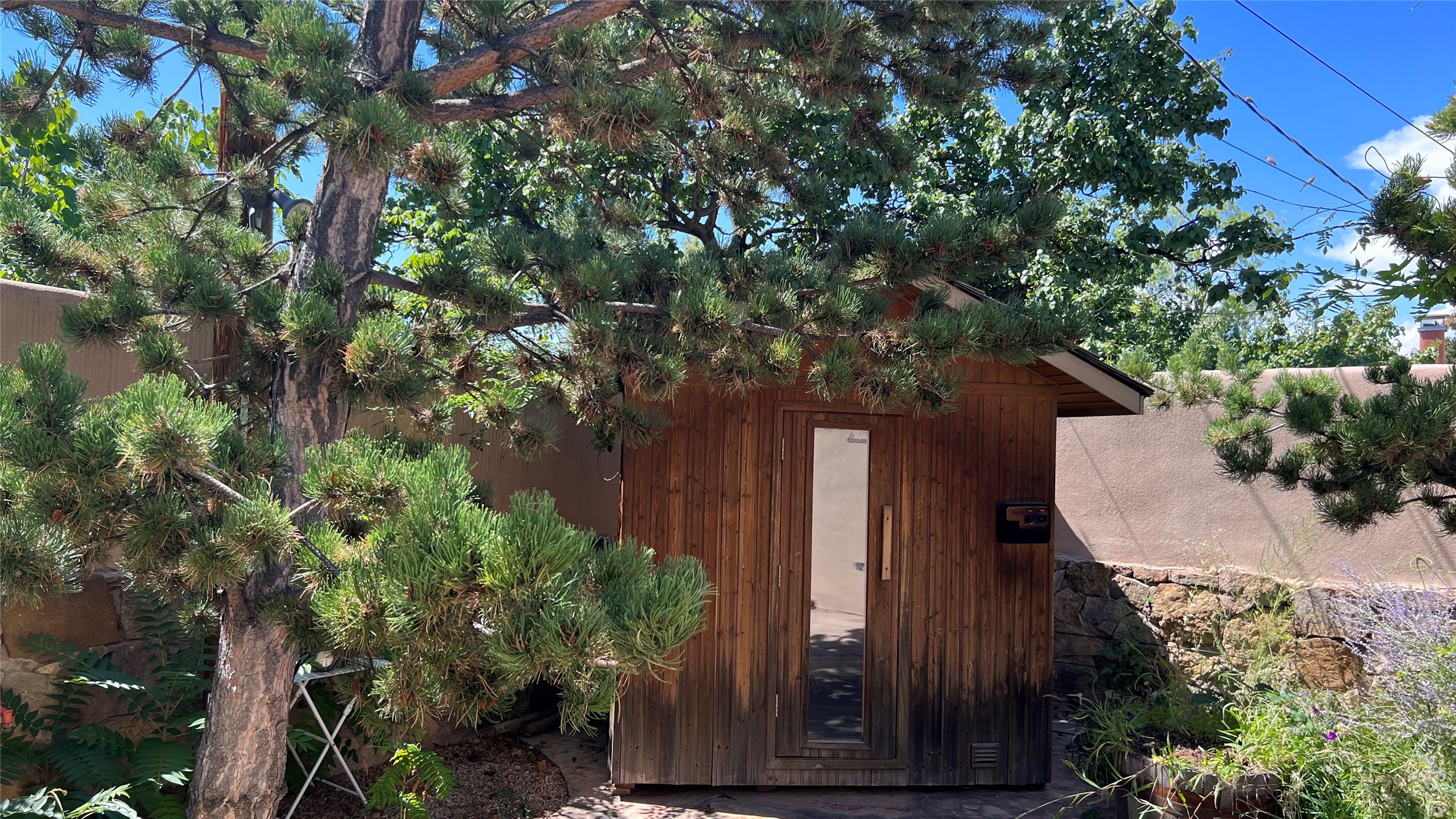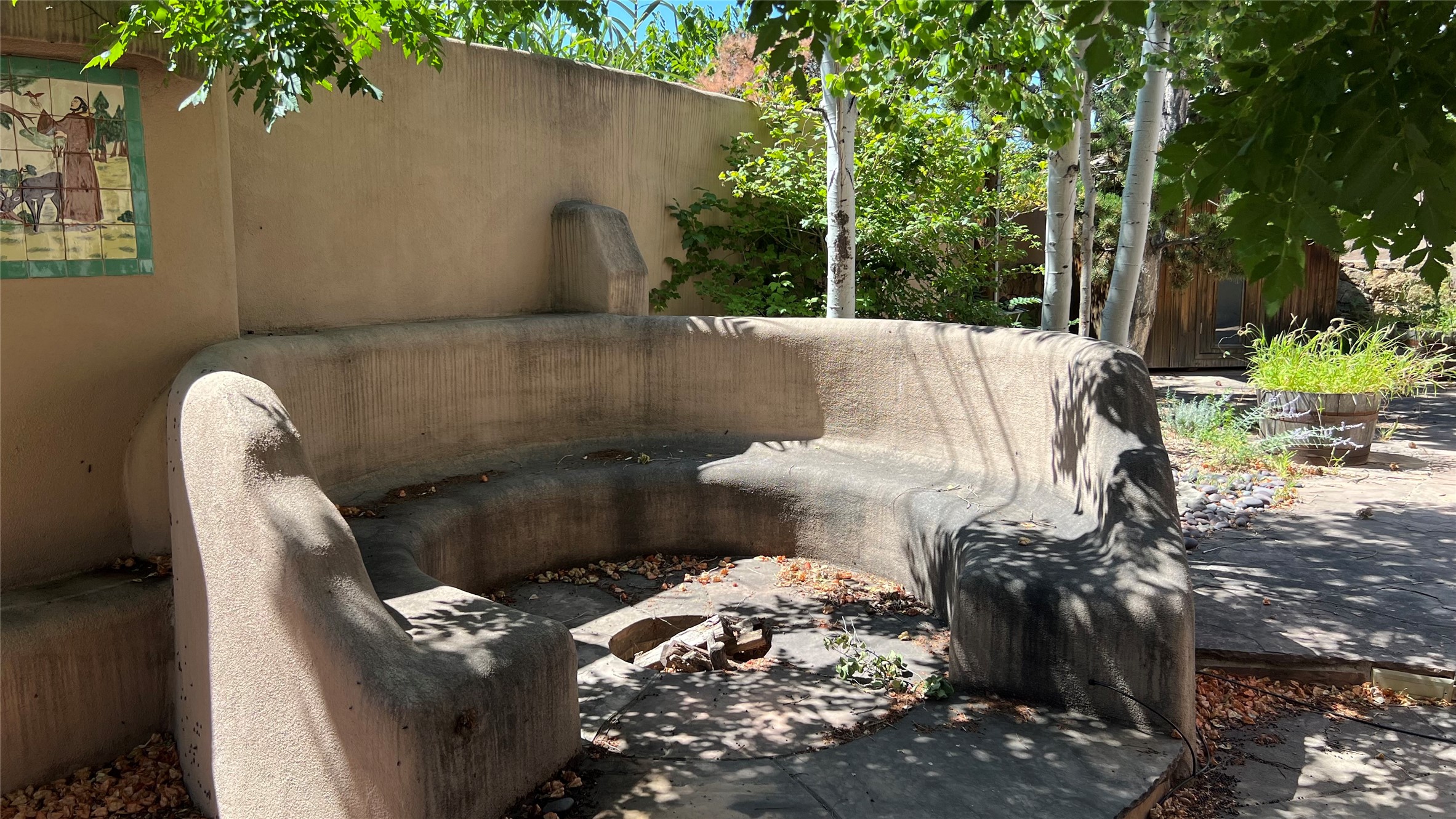 Located in the prestigious South Capital area, within Wood Gormley School District and minutes from the plaza, this spacious 2280 sq foot pueblo style 3 bedroom 2 bath home boosts a beautiful open concept with updated kitchen cabinets and appliances. It offers plenty of space for a family and friends to enjoy both inside and out. There are four kiva fireplaces three inside and one outdoors. The interior features a large living and dining area, a very large kitchen with updated cabinets and appliances, two very large bedrooms and a third bedroom that can be a bedroom or an office as well. The exterior of the home includes a private courtyard with a stone firepit and wood sauna. The yard is perfect for outdoor entertaining or just relaxing in the Santa Fe sunshine. The home has two outdoor parking spaces. With some creativity and a little TLC you can transform this property into your dream home. This home is held in an estate and is sold in its current condition. There is deferred maintenance. Appraisal attached and Inspection report available