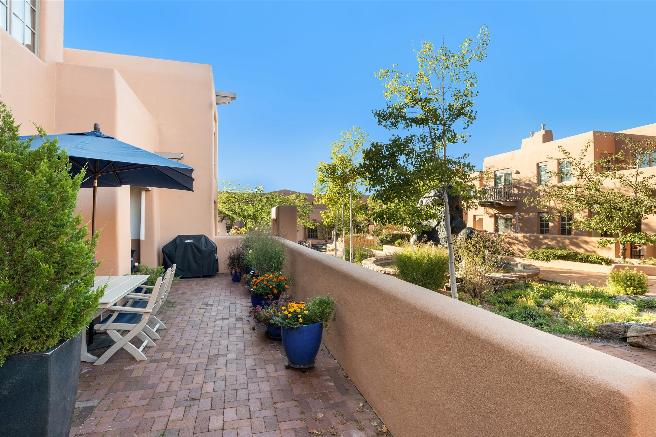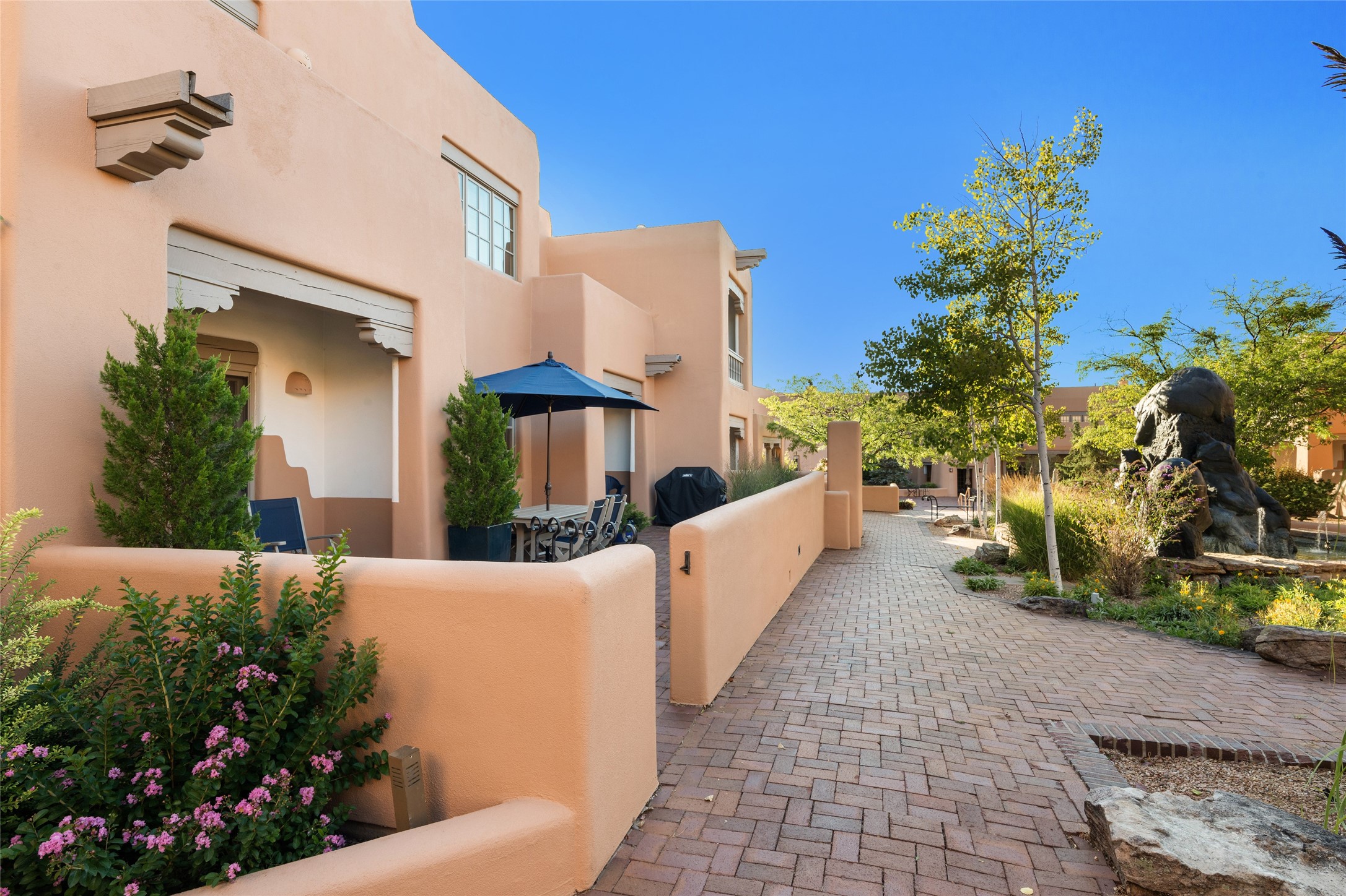 Highly sought after Ground Floor condo in a premier location at Quail Run. Patio is oriented to face the middle of the sunny courtyard with lovely fountain views and ample space to enjoy the outdoors. Largest of the Plaza Units, it is the ideal amount of indoor space with 2 bedrooms, large storage closet, smart separation of bedrooms and an effortless transition to the back portal providing plenty of quiet and space to enjoy al fresco dining. Home ownership includes all of Quail Run's amenities including golf, pickleball, an array of fitness classes, accommodating gym facility, fabulous indoor reverse osmosis pool and 24 hour hosted security. Come and take a look!
