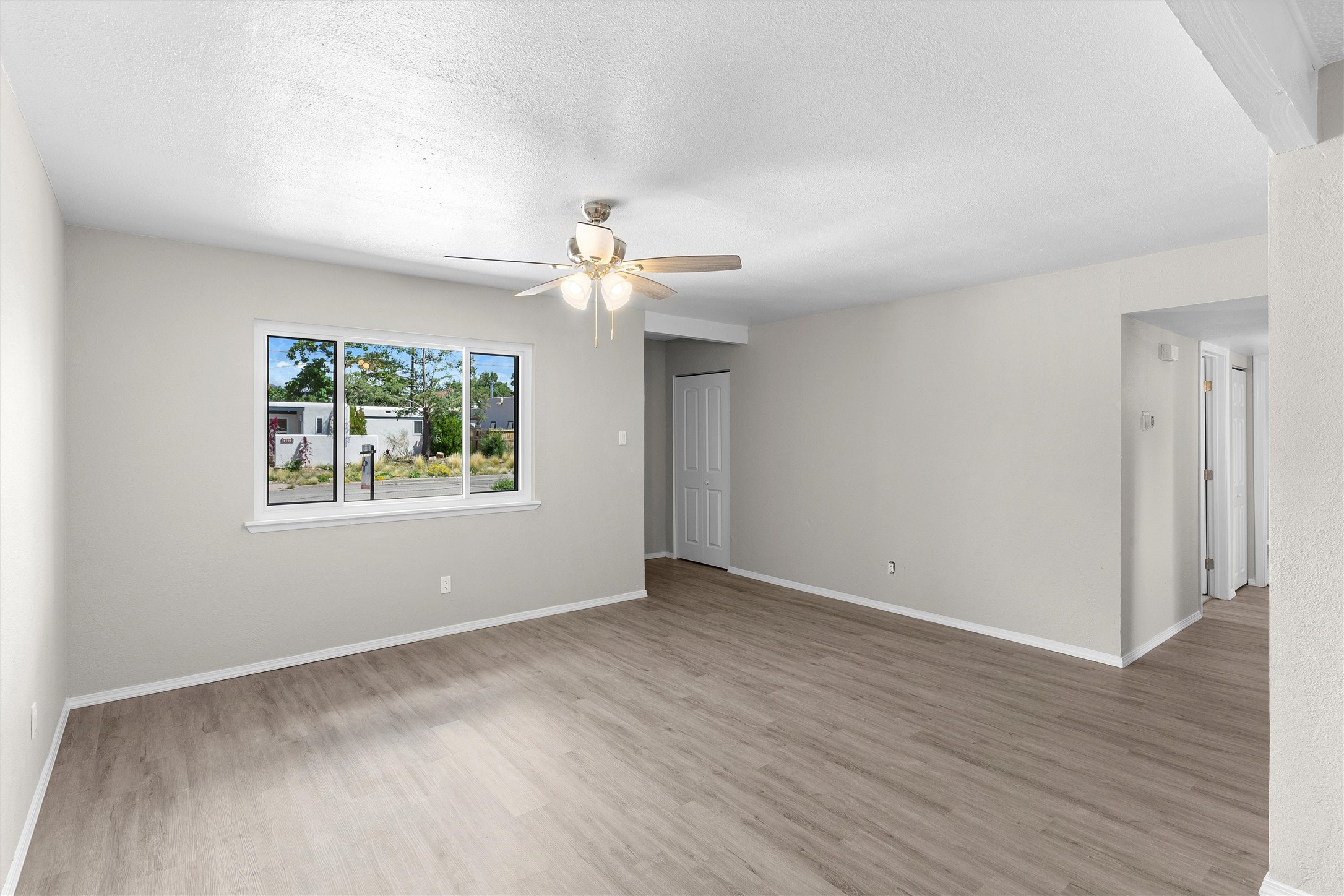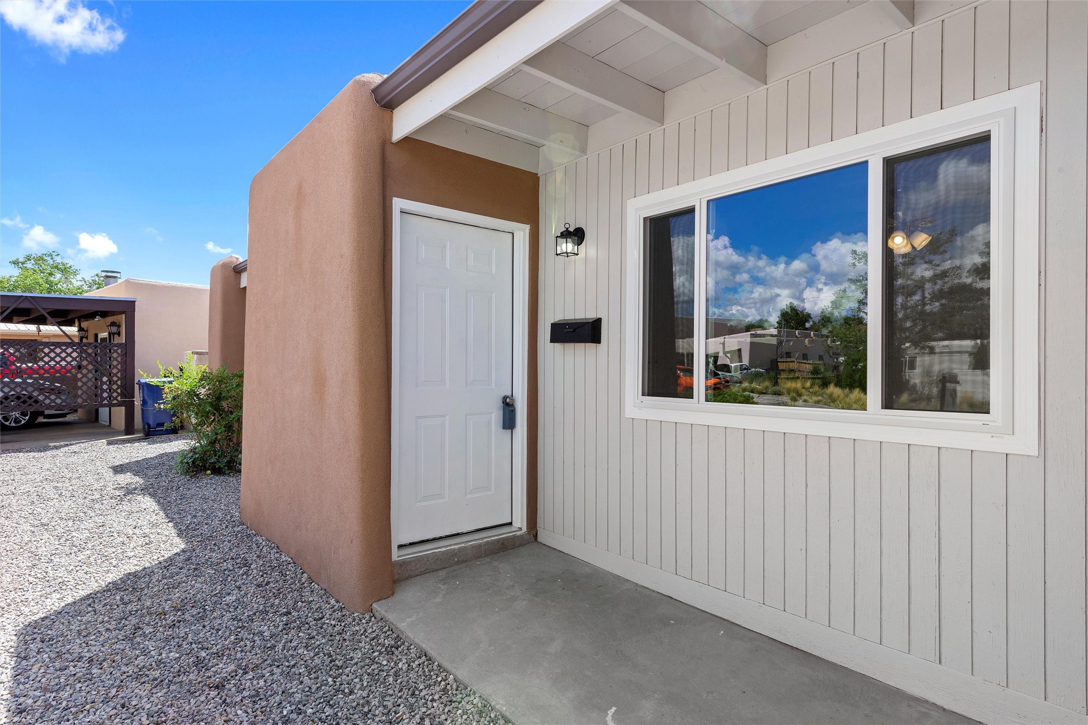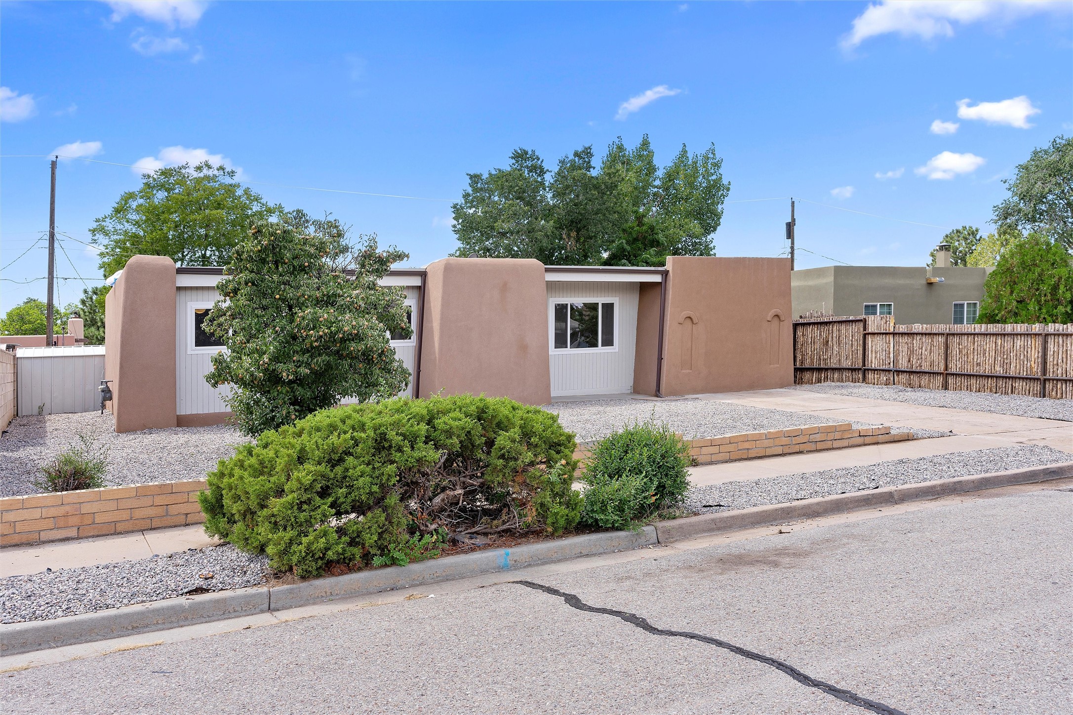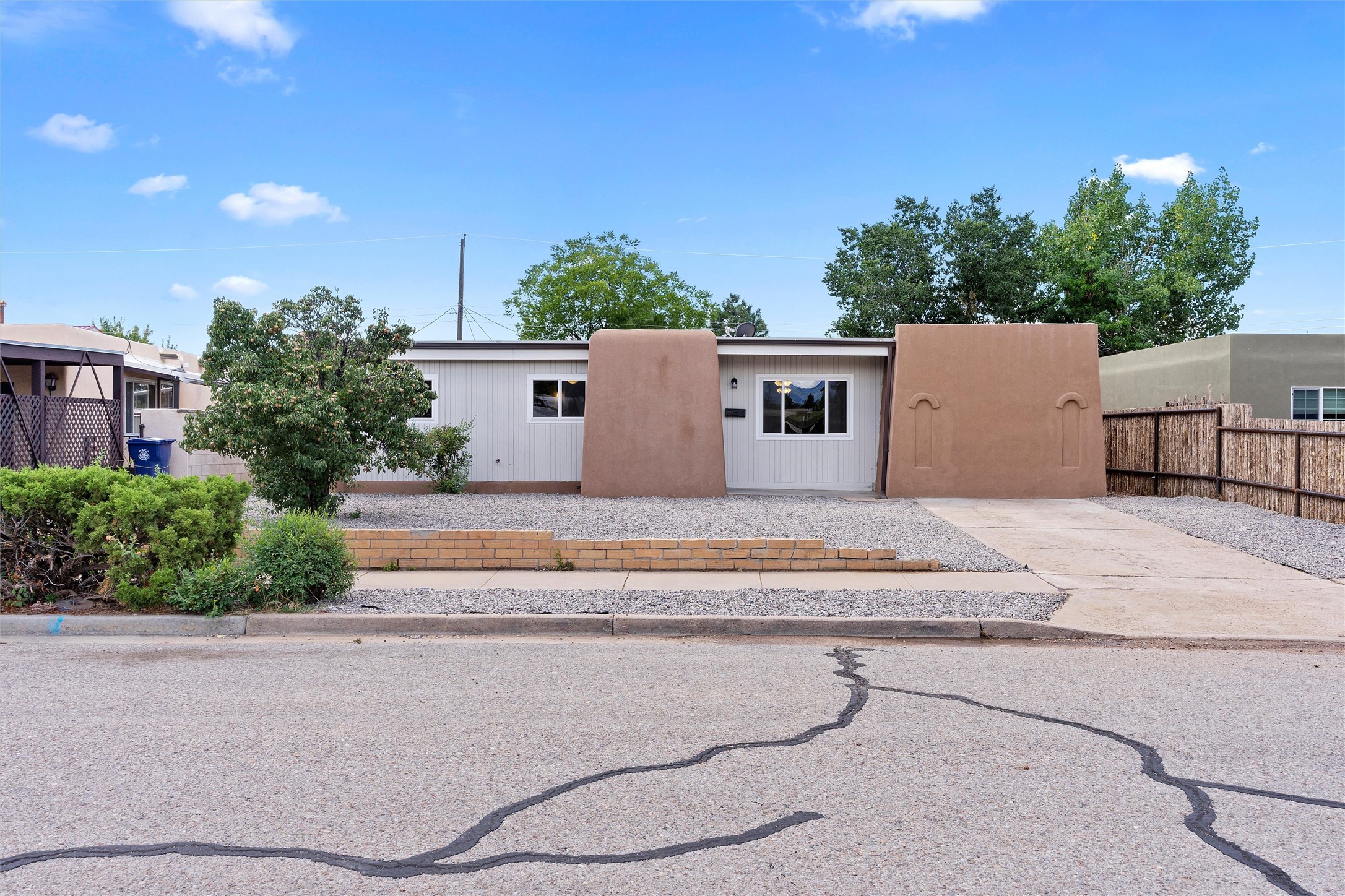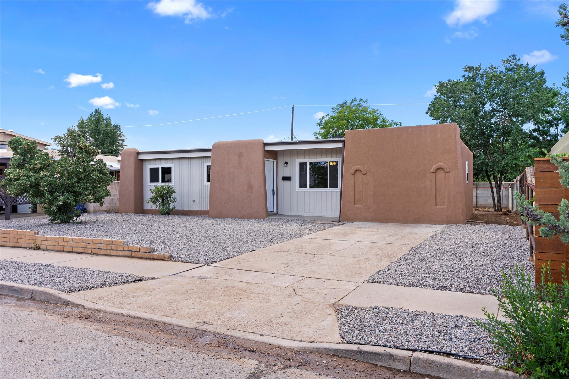 Offering 6K credit to buyers! Welcome to 1706 Callejon, a Northern New Mexico-style home blending Southwestern charm and modern flair. With 3 bedrooms and a tastefully styled modern bathroom, this residence offers both comfort and function. Inside, the soft tan and white color scheme is accented by wood laminate flooring, creating an inviting space that straddles both classic and contemporary styles. Though compact, the kitchen is thoughtfully designed, and a separate laundry room adds extra convenience. Outdoors, a large walled-in backyard offers privacy and endless possibilities for leisure or landscaping. A small covered porch and a mature fruit tree in the front yard complete the idyllic setting. Located just two miles from Santa Fe Plaza, you're never far from shops, galleries, or fine dining. New windows and water heater installed in Sept 2023. Nearby River Park and easy access to State Road 599 make both nature and commuting easily accessible. Don't miss the chance to call this move-in-ready gem your home.