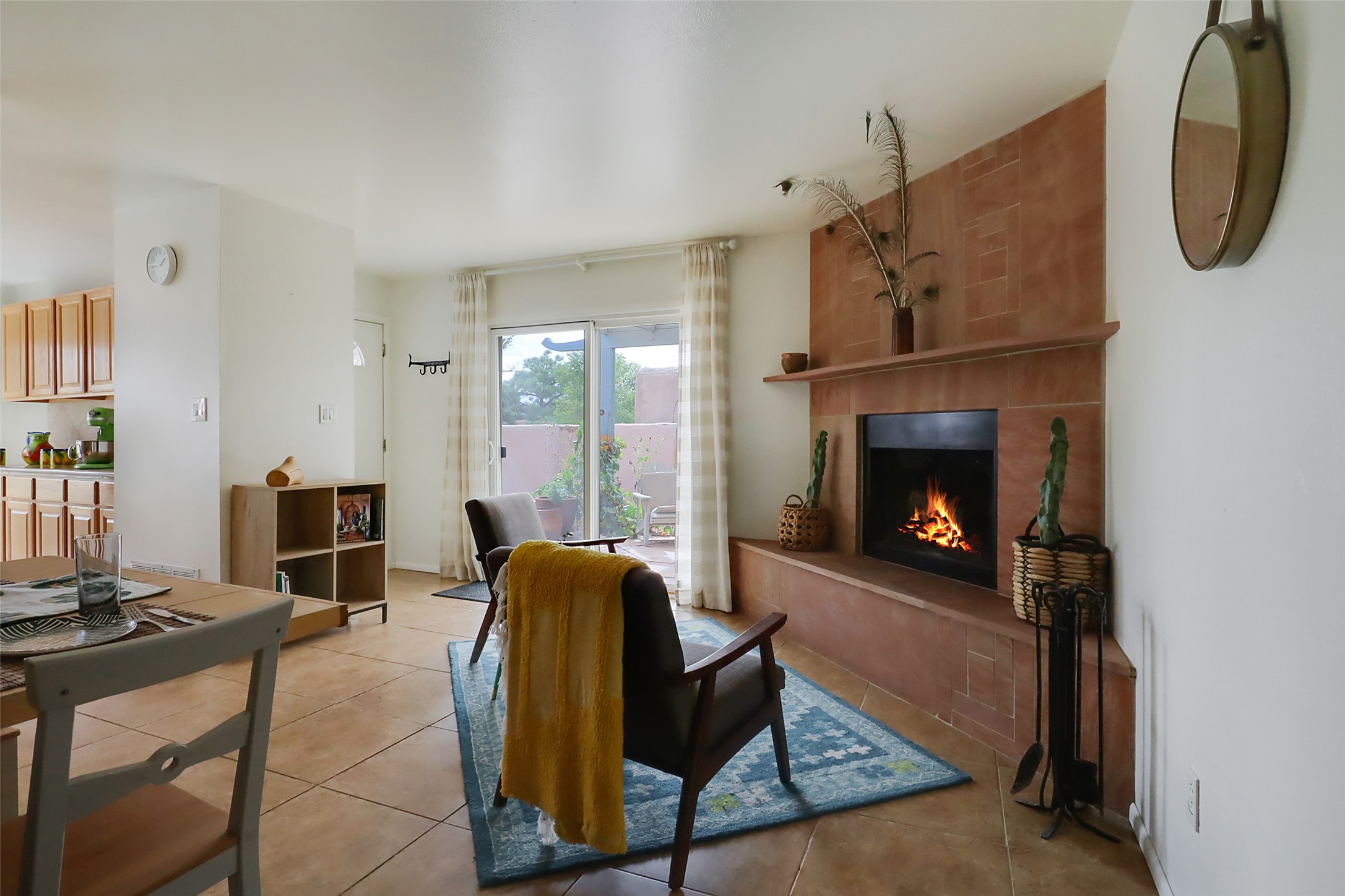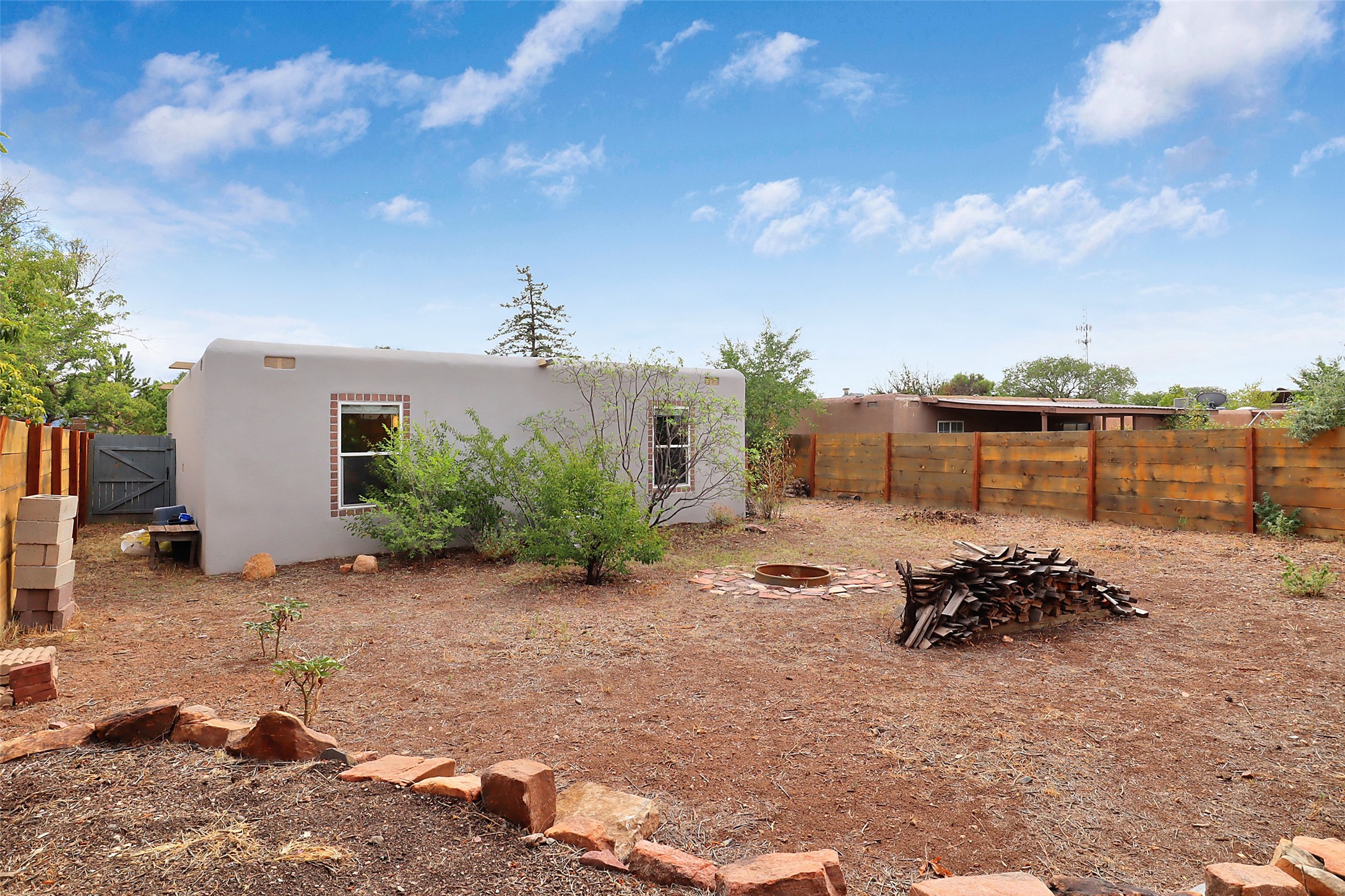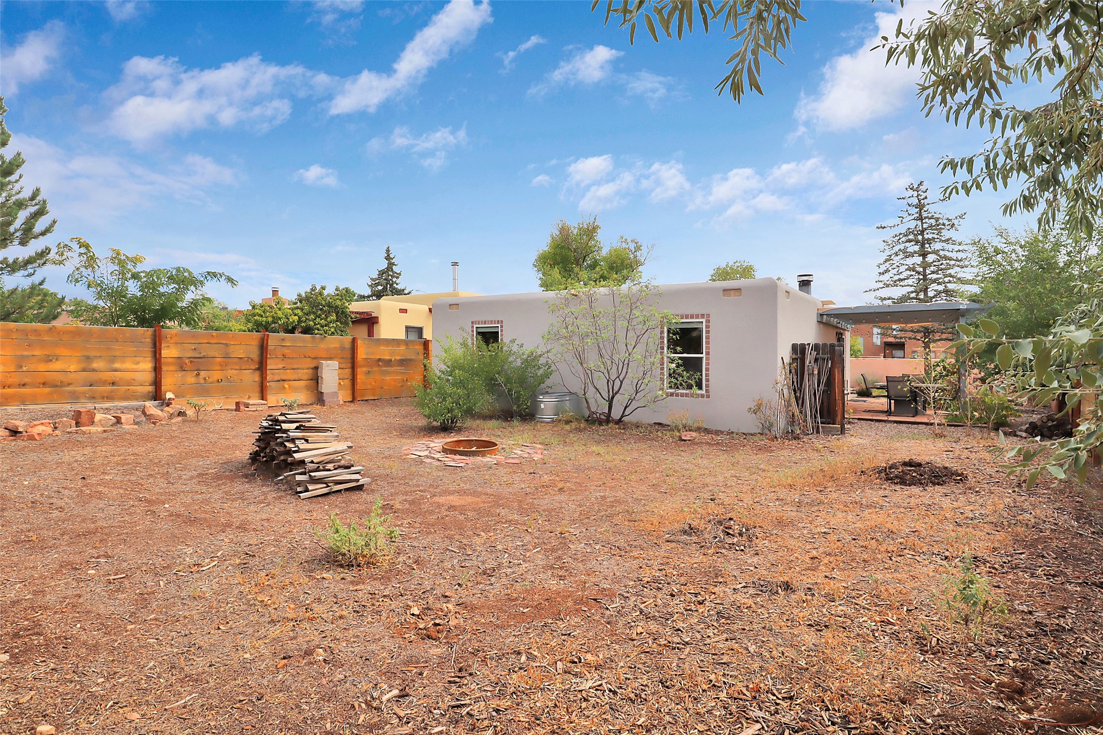 Calling all outdoor gardening enthusiasts! So much character abounds in this centrally-located bungalow. From the fully walled front yard to the freshly stucco'd calming sage green of the home, this place will quickly become your everyday oasis or home away from home. You'll love the tile accents embedded into the home's outside walls, the picture window from the spacious kitchen to the courtyard, and the mature grapevines and landscaping. A paved patio with pergola provides perfect indoor-outdoor living just off the living room - perfect for your morning coffee time. The back yard fire pit is ready for the chilly Fall evenings, and there's so much room for future gardening possibilities.Immediately upon entering the living room, you'll appreciate the wood-burning fireplace as the centerpiece to the home. The built-in wooden shelving and sturdy wooden table provide a high quality utilitarian space, while remaining easily removable if someone desires a larger living space and smaller dining area. The open floor plan allows versatility in the way you'd like to set it up! What a kitchen! Ample counter space, and plenty of room to make this a dining-in kitchen. The two bedrooms are adorned with warm wood-plank flooring, with one of the two having a door directly to the bathroom. The primary bedroom can easily host a king-sized bed along with a sitting area and other furniture. The second bedroom is also adequately-sized.A half-mile to tons of shopping and dining, and a quick 10 minute drive to the Plaza, Railyards, and Canyon Road - this home's location is truly ideal for ease of reaching the best of Santa Fe and beyond.