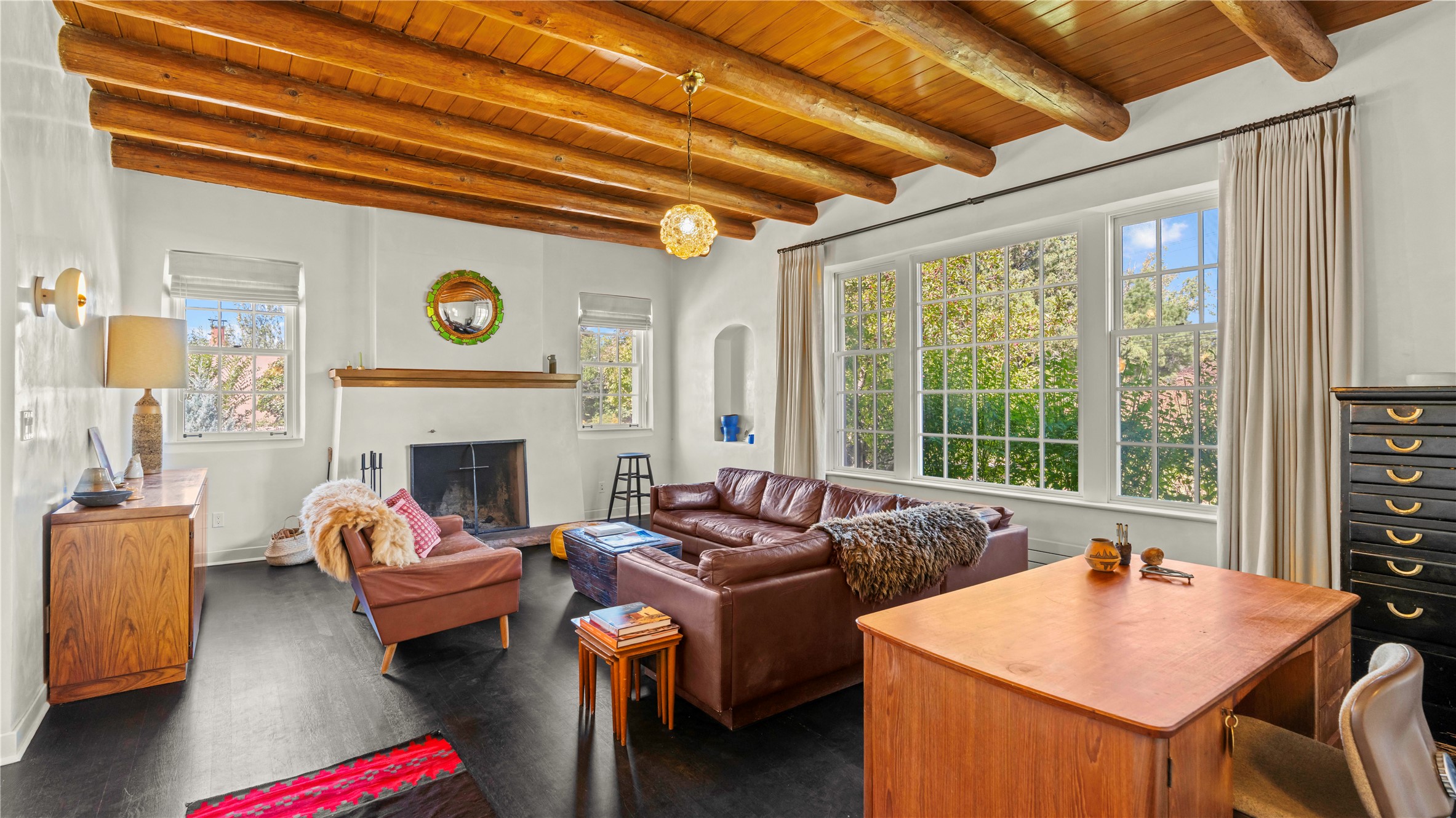 A rare historic offering in the sought-after South Capitol neighborhood, this 1929 home, designed by renowned Santa Fe architect John Gaw Meem, envelops you in traditional elegance with many modern upgrades. The large lot (.83 acre +/-) can likely be split, and the property has a water well in addition to city water. Recent improvements include updated heating and water systems and kitchen and bath renovations. This property has been designated as historically "contributing" and has a perfect central location, minutes from all the things and places Santa Fe is famous for. The original carriage house can be utilized for cars or storage. Meem's vision remains intact for the discriminating buyer. Features include hardwood floors, diamond finish plaster, steam shower in master bath, 2 fireplaces, 2 mini-splits, apricot and cherry trees as well as ample off-street parking. Basement of 292 sq ft has plastered walls and a half-bath and is in ADDITION to the stated sq ft. Property is historically "contributing".