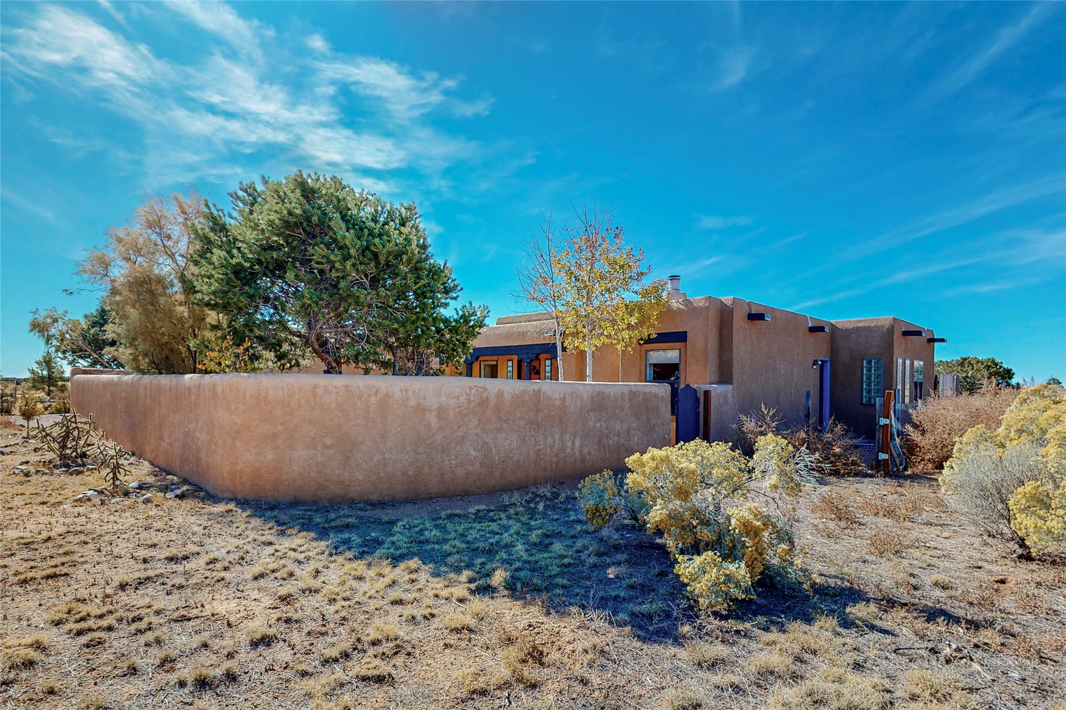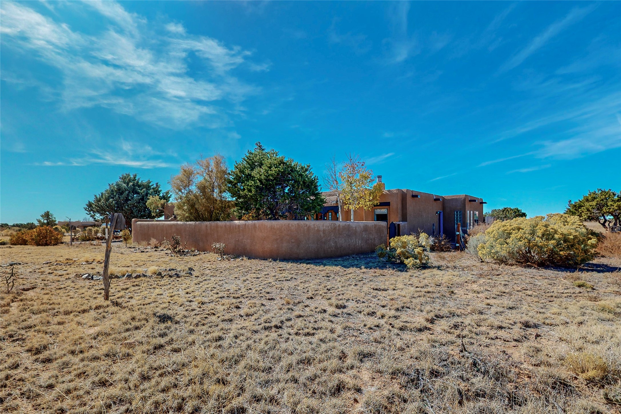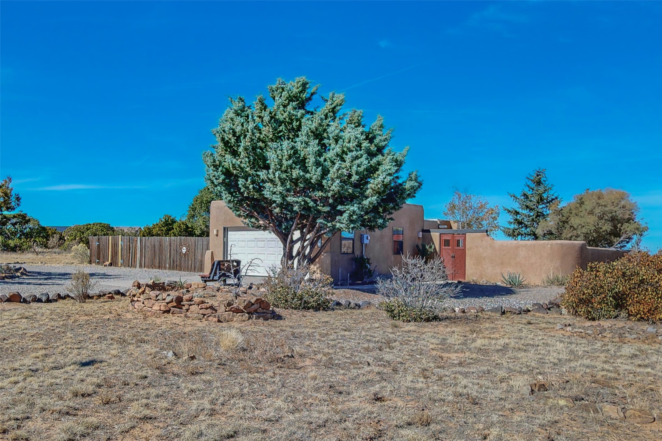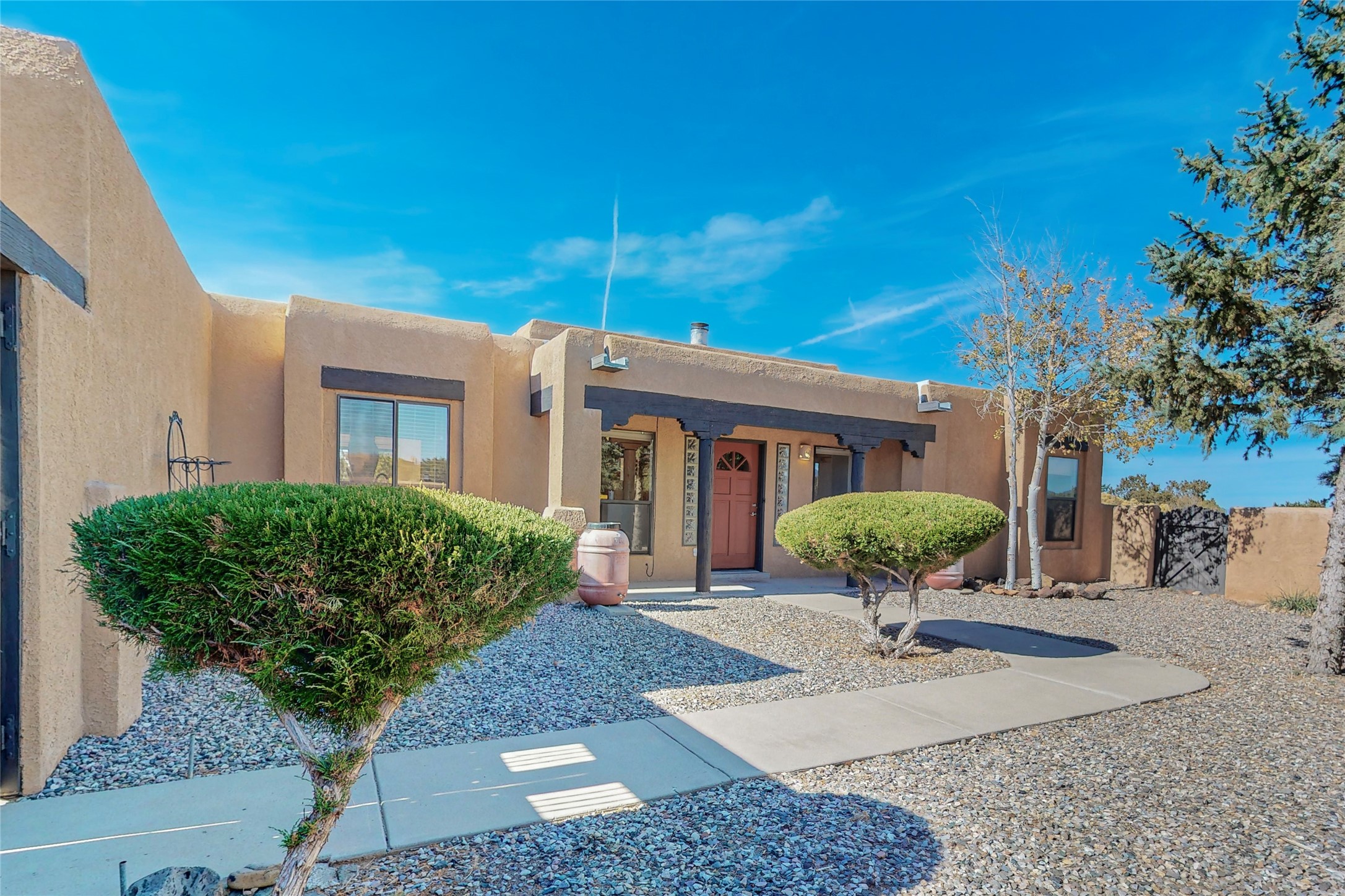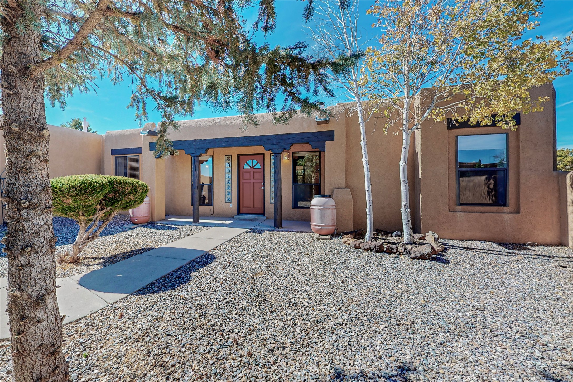 COME TO OUR OPEN HOUSE TODAY,SUNDAY NOVEMBER 12TH BETWEEN 1-4 P.M.Embrace the Santa Fe lifestyle in this beautiful two-bedroom, two-bathroom home designed in the classic pueblo style, situated on a 1.59-acre lot. At the heart of this home, a wood-burning fireplace has played a central role in countless family game nights and festive Christmases. The interior has a New Mexican ambiance, with features such as Saltillo tile, viga ceilings, and tasteful turquoise accents. Additionally, the family room is graced with elegant wooden pillars that pay homage to the rich traditions of Southwestern design. The kitchen has newer stove and refrigerator, offering ample pantry space and a window overlooking a charming enclosed front yard. From the kitchen next area is the house dining area, and through a sliding glass door, you'll find another enclosed yard space. The house has a sunroom with full glass windows that welcome natural light into every corner of this home. Nestled within the community of Eldorado, you'll have access to the exclusive amenities offered by this neighborhood including swimming pool, basketball & tennis courts, community center, dog park, and more. Eldorado has well-maintained paved walking trails that provide a picturesque environment for residents. Be sure to explore the El Dorado Farmer's market, where you can discover fresh, locally sourced produce. This property is just minutes away from restaurants, shopping center, pet store, Library and bank in the Algora Shopping center. Join the vibrant community of Eldorado, which was recognized as the #1 Best Place to Live in Santa Fe County by Niche in 2022.