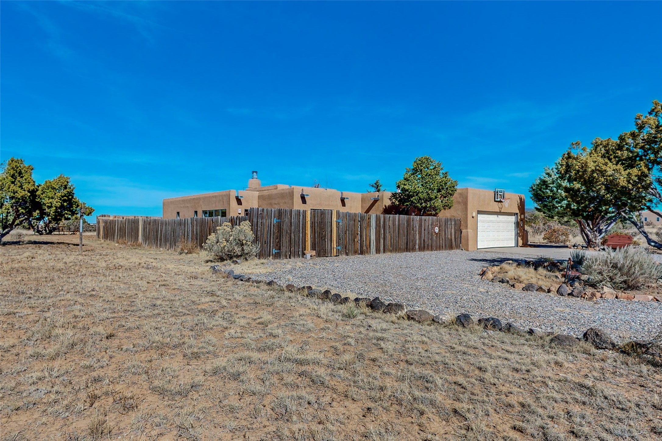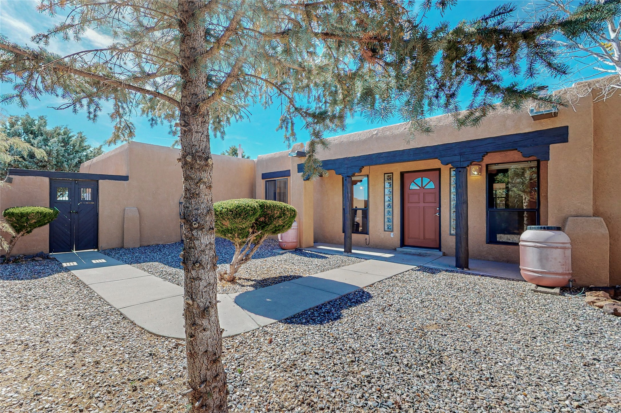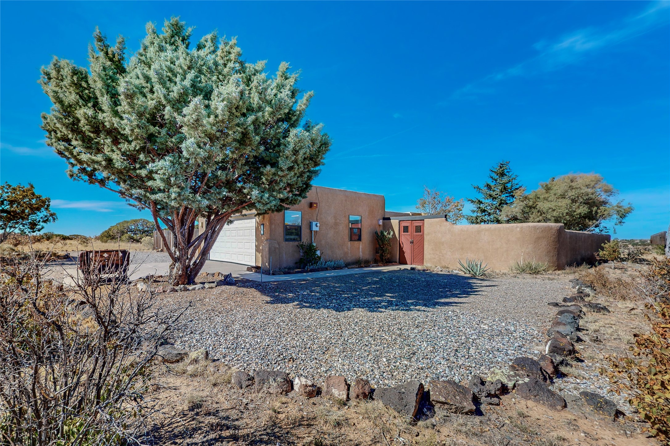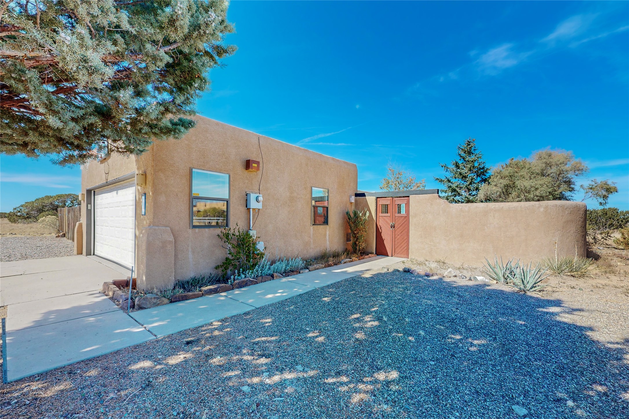 COME TO OUR OPEN HOUSE TODAY,SUNDAY NOVEMBER 12TH BETWEEN 1-4 P.M.Embrace the Santa Fe lifestyle in this beautiful two-bedroom, two-bathroom home designed in the classic pueblo style, situated on a 1.59-acre lot. At the heart of this home, a wood-burning fireplace has played a central role in countless family game nights and festive Christmases. The interior has a New Mexican ambiance, with features such as Saltillo tile, viga ceilings, and tasteful turquoise accents. Additionally, the family room is graced with elegant wooden pillars that pay homage to the rich traditions of Southwestern design. The kitchen has newer stove and refrigerator, offering ample pantry space and a window overlooking a charming enclosed front yard. From the kitchen next area is the house dining area, and through a sliding glass door, you'll find another enclosed yard space. The house has a sunroom with full glass windows that welcome natural light into every corner of this home. Nestled within the community of Eldorado, you'll have access to the exclusive amenities offered by this neighborhood including swimming pool, basketball & tennis courts, community center, dog park, and more. Eldorado has well-maintained paved walking trails that provide a picturesque environment for residents. Be sure to explore the El Dorado Farmer's market, where you can discover fresh, locally sourced produce. This property is just minutes away from restaurants, shopping center, pet store, Library and bank in the Algora Shopping center. Join the vibrant community of Eldorado, which was recognized as the #1 Best Place to Live in Santa Fe County by Niche in 2022.