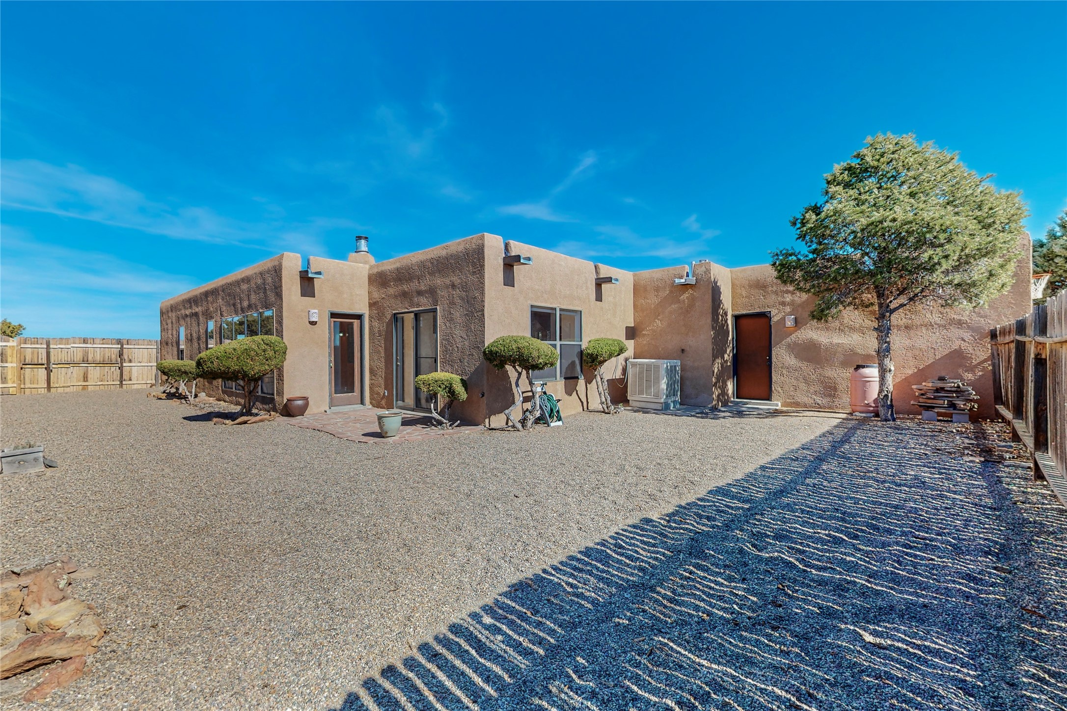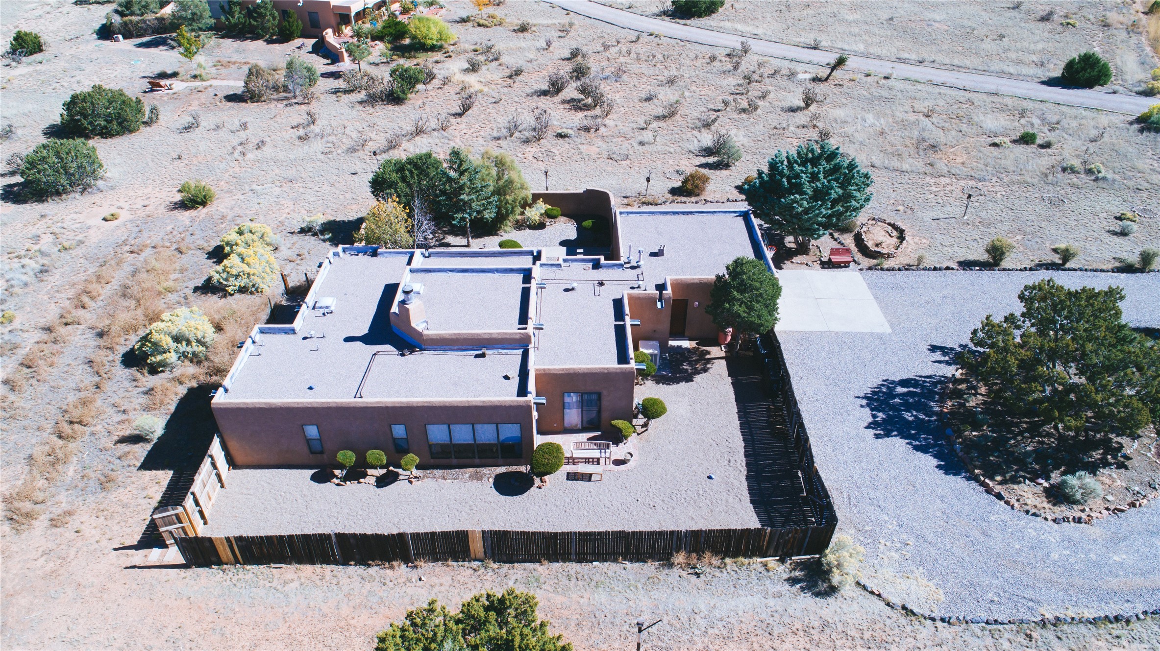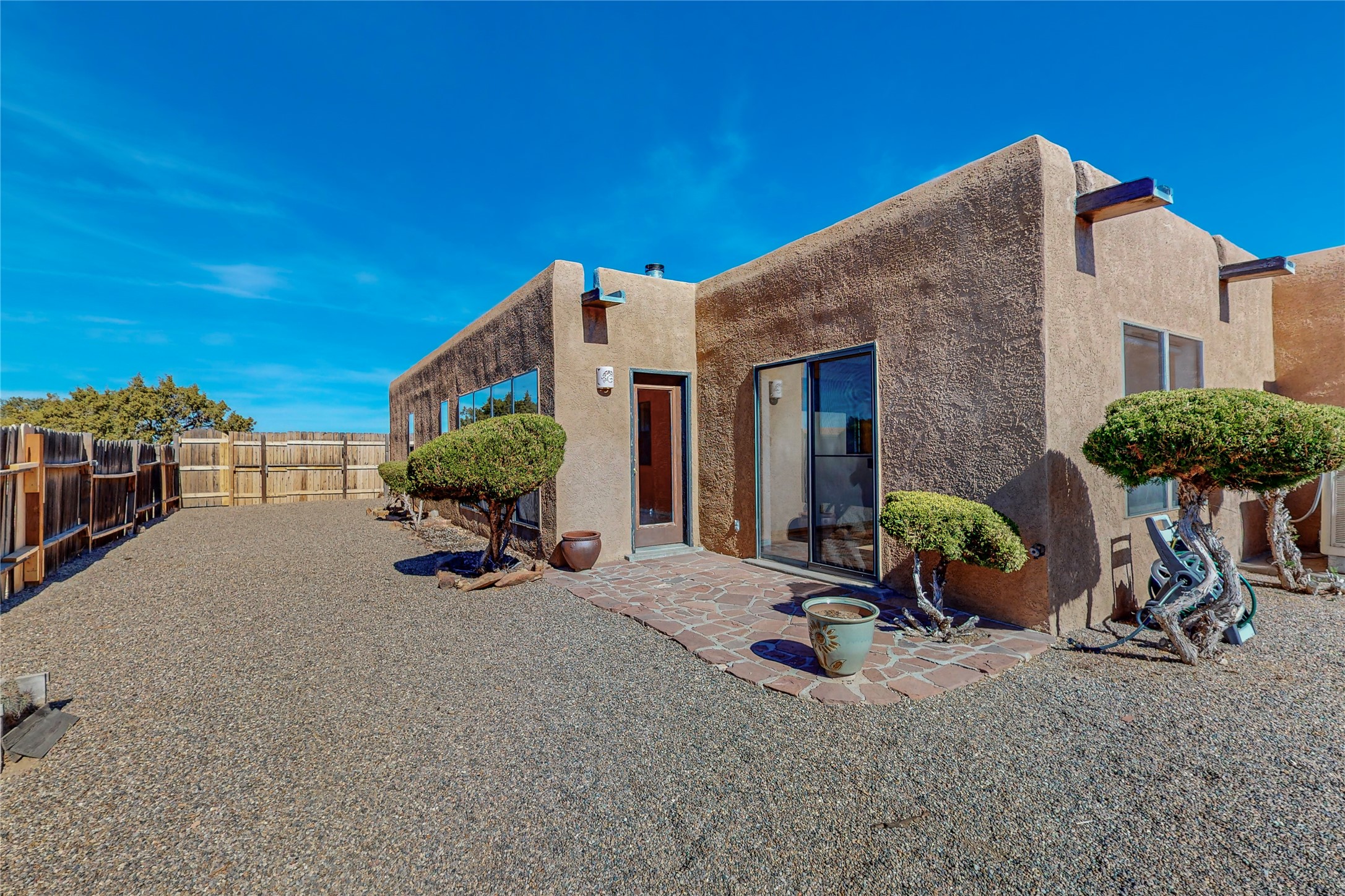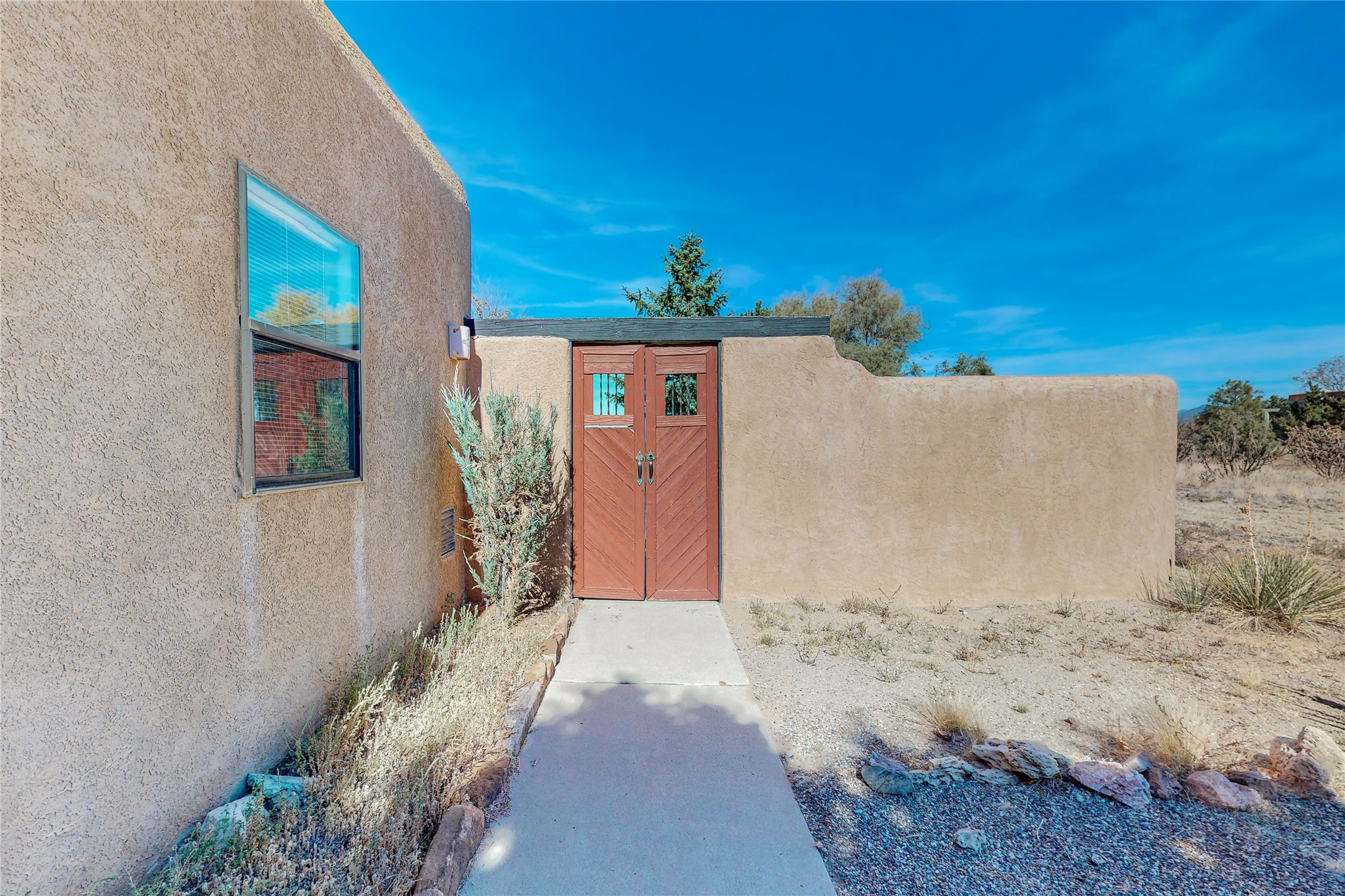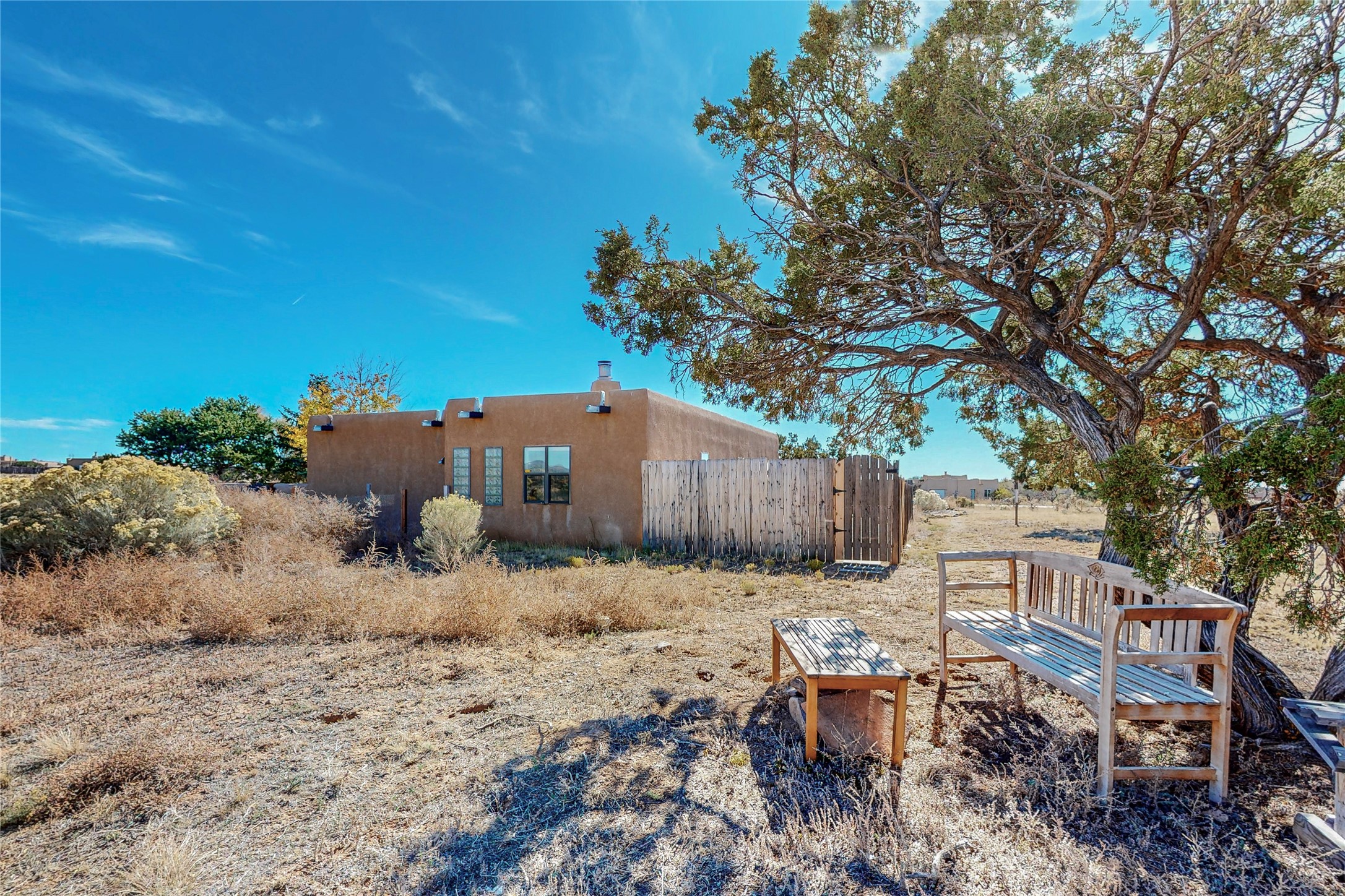 COME TO OUR OPEN HOUSE TODAY,SUNDAY NOVEMBER 12TH BETWEEN 1-4 P.M.Embrace the Santa Fe lifestyle in this beautiful two-bedroom, two-bathroom home designed in the classic pueblo style, situated on a 1.59-acre lot. At the heart of this home, a wood-burning fireplace has played a central role in countless family game nights and festive Christmases. The interior has a New Mexican ambiance, with features such as Saltillo tile, viga ceilings, and tasteful turquoise accents. Additionally, the family room is graced with elegant wooden pillars that pay homage to the rich traditions of Southwestern design. The kitchen has newer stove and refrigerator, offering ample pantry space and a window overlooking a charming enclosed front yard. From the kitchen next area is the house dining area, and through a sliding glass door, you'll find another enclosed yard space. The house has a sunroom with full glass windows that welcome natural light into every corner of this home. Nestled within the community of Eldorado, you'll have access to the exclusive amenities offered by this neighborhood including swimming pool, basketball & tennis courts, community center, dog park, and more. Eldorado has well-maintained paved walking trails that provide a picturesque environment for residents. Be sure to explore the El Dorado Farmer's market, where you can discover fresh, locally sourced produce. This property is just minutes away from restaurants, shopping center, pet store, Library and bank in the Algora Shopping center. Join the vibrant community of Eldorado, which was recognized as the #1 Best Place to Live in Santa Fe County by Niche in 2022.