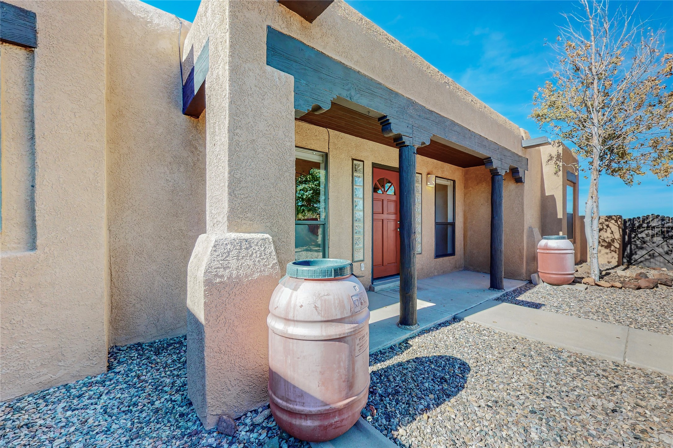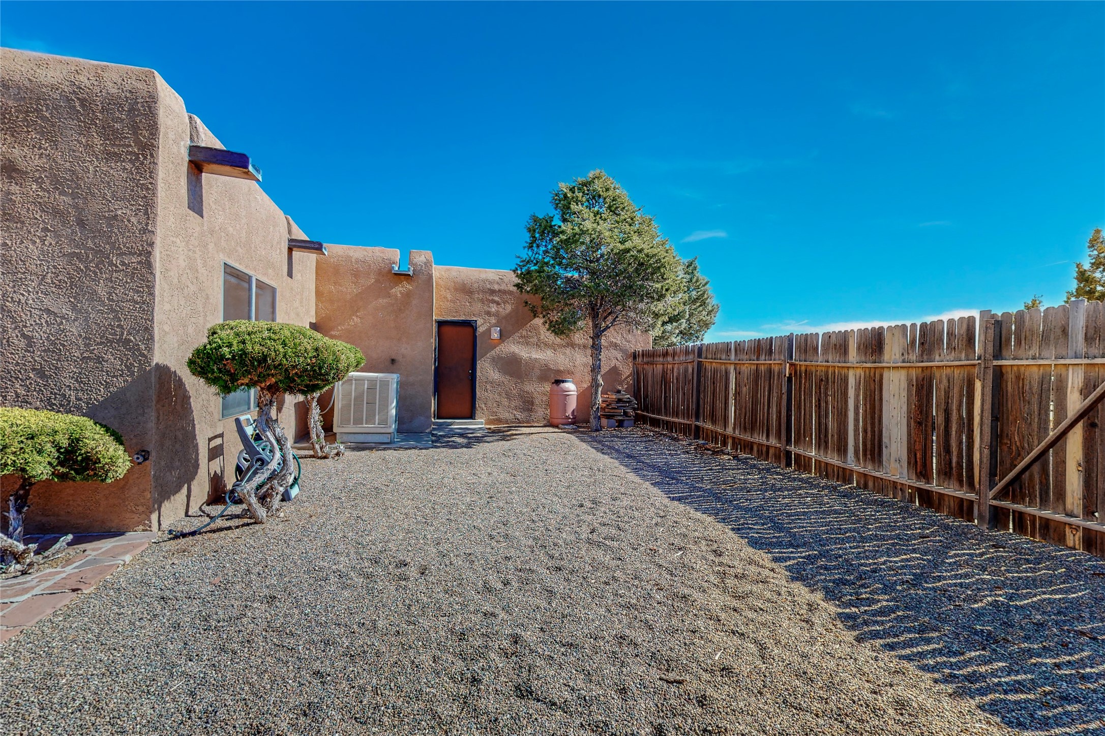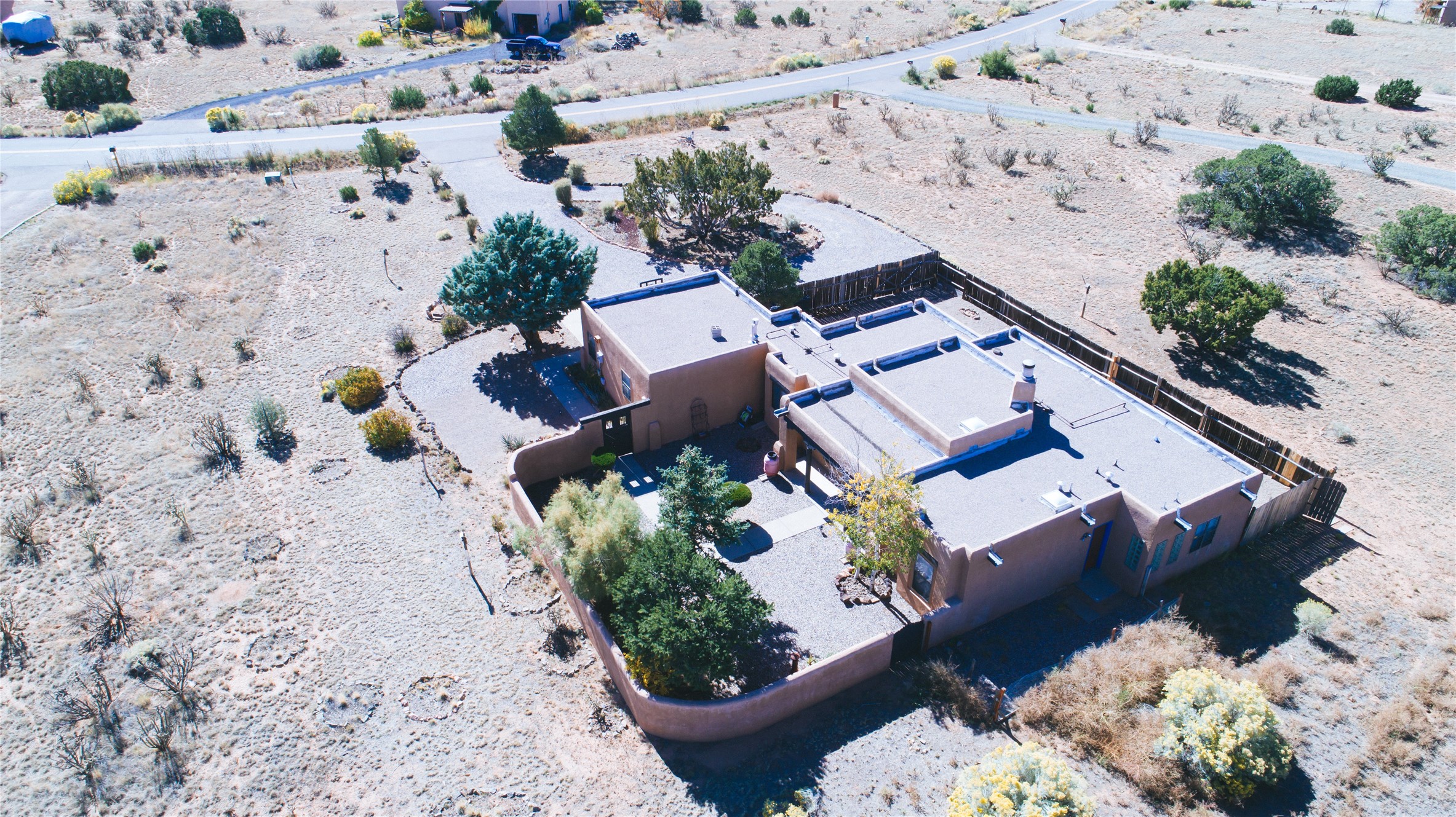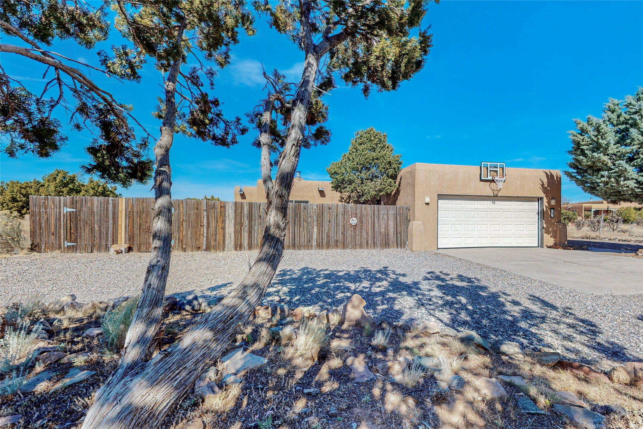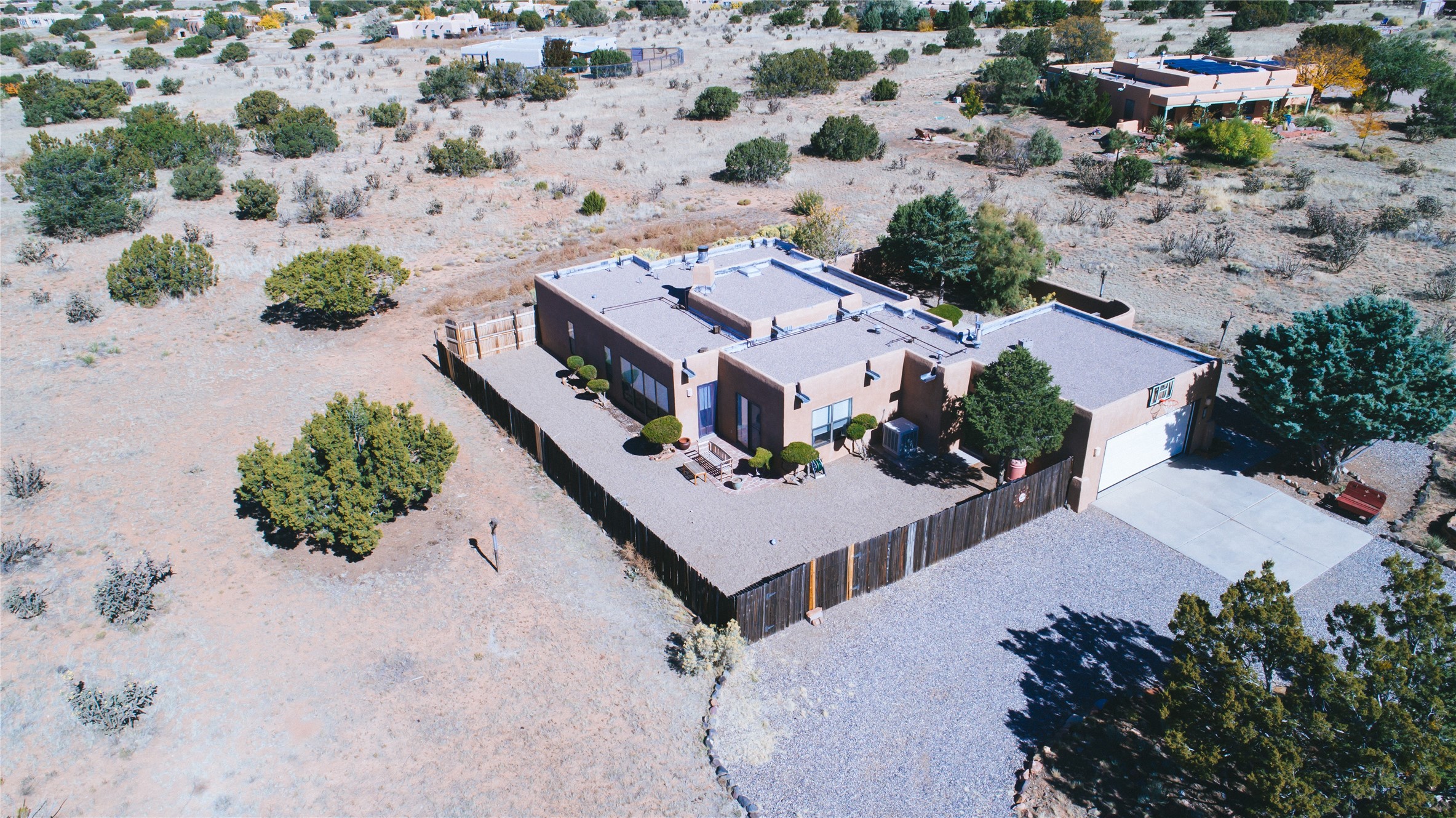 COME TO OUR OPEN HOUSE TODAY,SUNDAY NOVEMBER 12TH BETWEEN 1-4 P.M.Embrace the Santa Fe lifestyle in this beautiful two-bedroom, two-bathroom home designed in the classic pueblo style, situated on a 1.59-acre lot. At the heart of this home, a wood-burning fireplace has played a central role in countless family game nights and festive Christmases. The interior has a New Mexican ambiance, with features such as Saltillo tile, viga ceilings, and tasteful turquoise accents. Additionally, the family room is graced with elegant wooden pillars that pay homage to the rich traditions of Southwestern design. The kitchen has newer stove and refrigerator, offering ample pantry space and a window overlooking a charming enclosed front yard. From the kitchen next area is the house dining area, and through a sliding glass door, you'll find another enclosed yard space. The house has a sunroom with full glass windows that welcome natural light into every corner of this home. Nestled within the community of Eldorado, you'll have access to the exclusive amenities offered by this neighborhood including swimming pool, basketball & tennis courts, community center, dog park, and more. Eldorado has well-maintained paved walking trails that provide a picturesque environment for residents. Be sure to explore the El Dorado Farmer's market, where you can discover fresh, locally sourced produce. This property is just minutes away from restaurants, shopping center, pet store, Library and bank in the Algora Shopping center. Join the vibrant community of Eldorado, which was recognized as the #1 Best Place to Live in Santa Fe County by Niche in 2022.