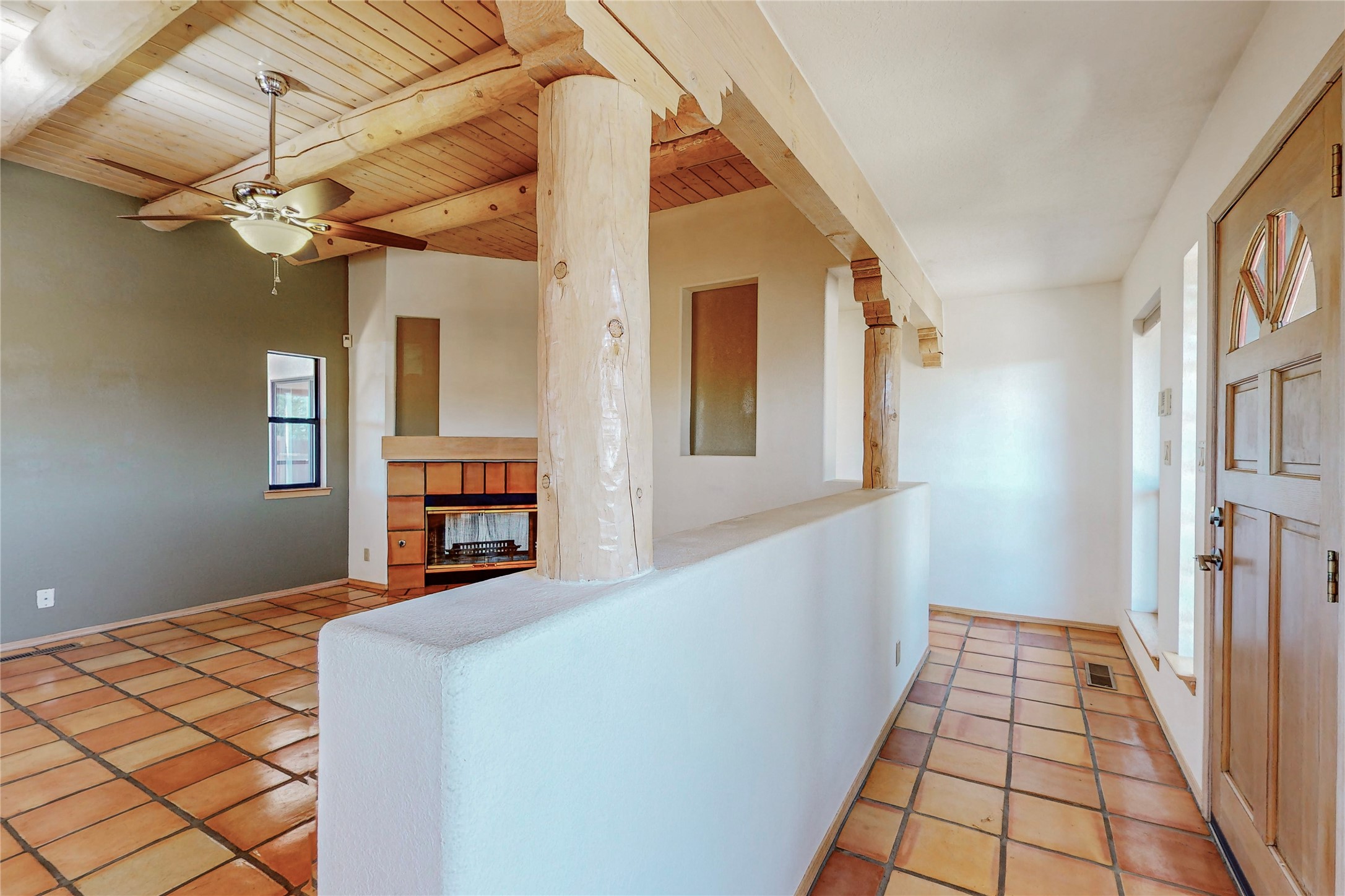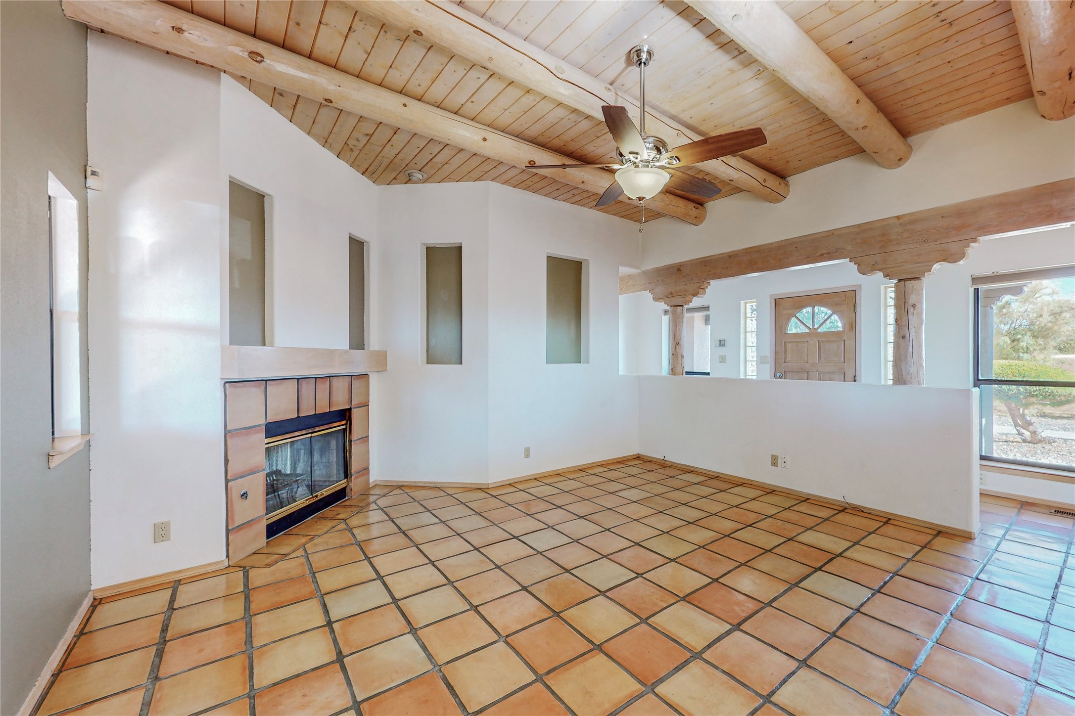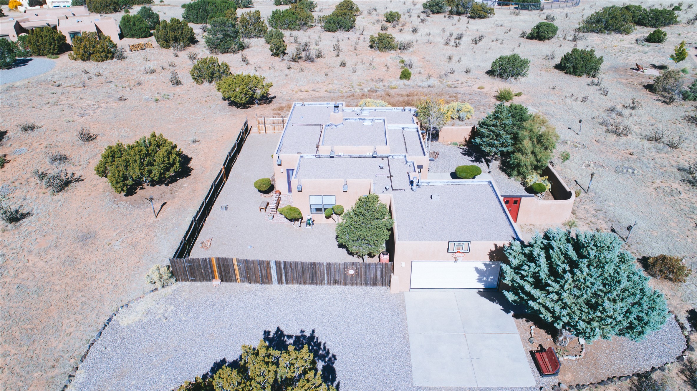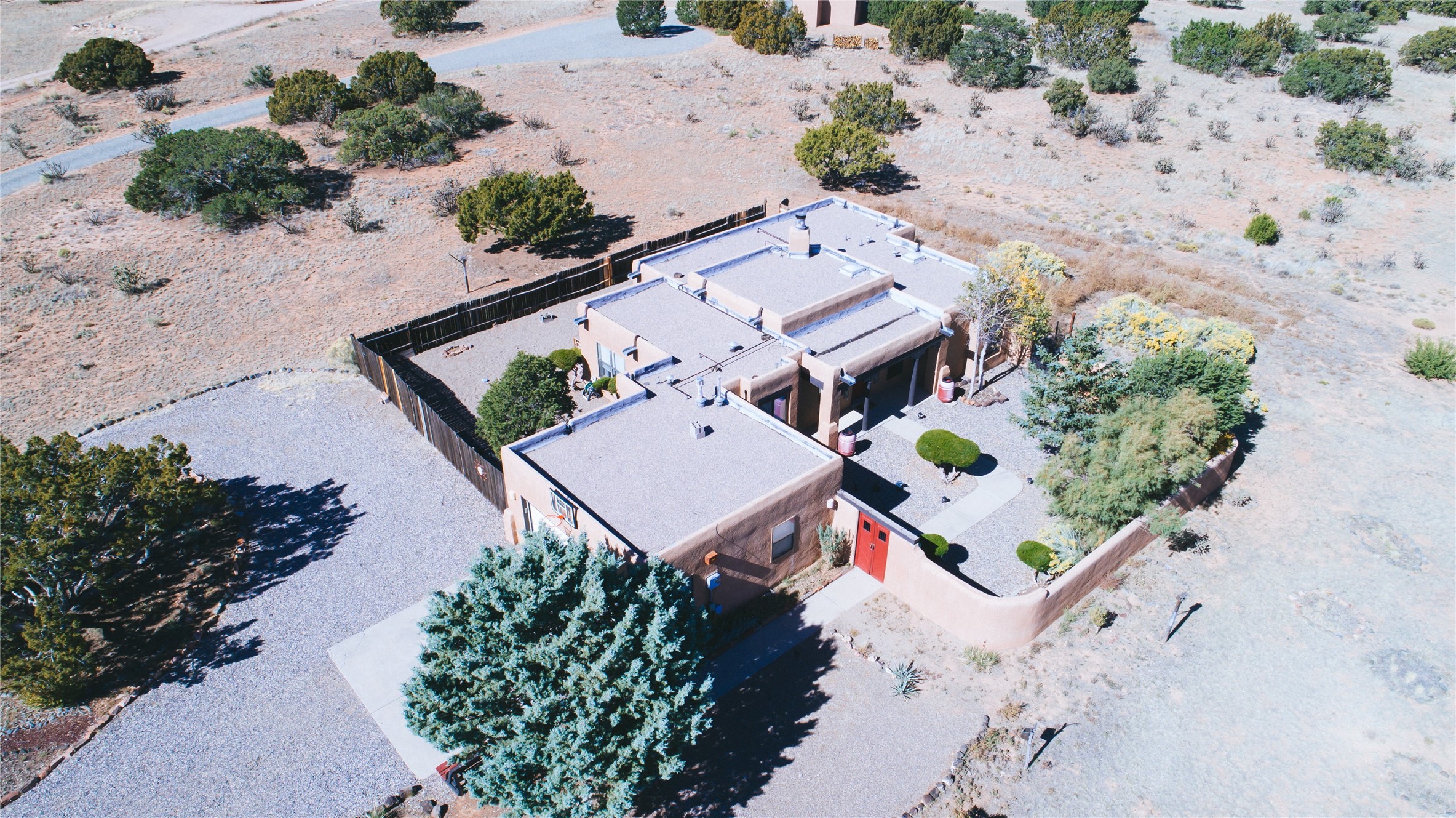 COME TO OUR OPEN HOUSE TODAY,SUNDAY NOVEMBER 12TH BETWEEN 1-4 P.M.Embrace the Santa Fe lifestyle in this beautiful two-bedroom, two-bathroom home designed in the classic pueblo style, situated on a 1.59-acre lot. At the heart of this home, a wood-burning fireplace has played a central role in countless family game nights and festive Christmases. The interior has a New Mexican ambiance, with features such as Saltillo tile, viga ceilings, and tasteful turquoise accents. Additionally, the family room is graced with elegant wooden pillars that pay homage to the rich traditions of Southwestern design. The kitchen has newer stove and refrigerator, offering ample pantry space and a window overlooking a charming enclosed front yard. From the kitchen next area is the house dining area, and through a sliding glass door, you'll find another enclosed yard space. The house has a sunroom with full glass windows that welcome natural light into every corner of this home. Nestled within the community of Eldorado, you'll have access to the exclusive amenities offered by this neighborhood including swimming pool, basketball & tennis courts, community center, dog park, and more. Eldorado has well-maintained paved walking trails that provide a picturesque environment for residents. Be sure to explore the El Dorado Farmer's market, where you can discover fresh, locally sourced produce. This property is just minutes away from restaurants, shopping center, pet store, Library and bank in the Algora Shopping center. Join the vibrant community of Eldorado, which was recognized as the #1 Best Place to Live in Santa Fe County by Niche in 2022.