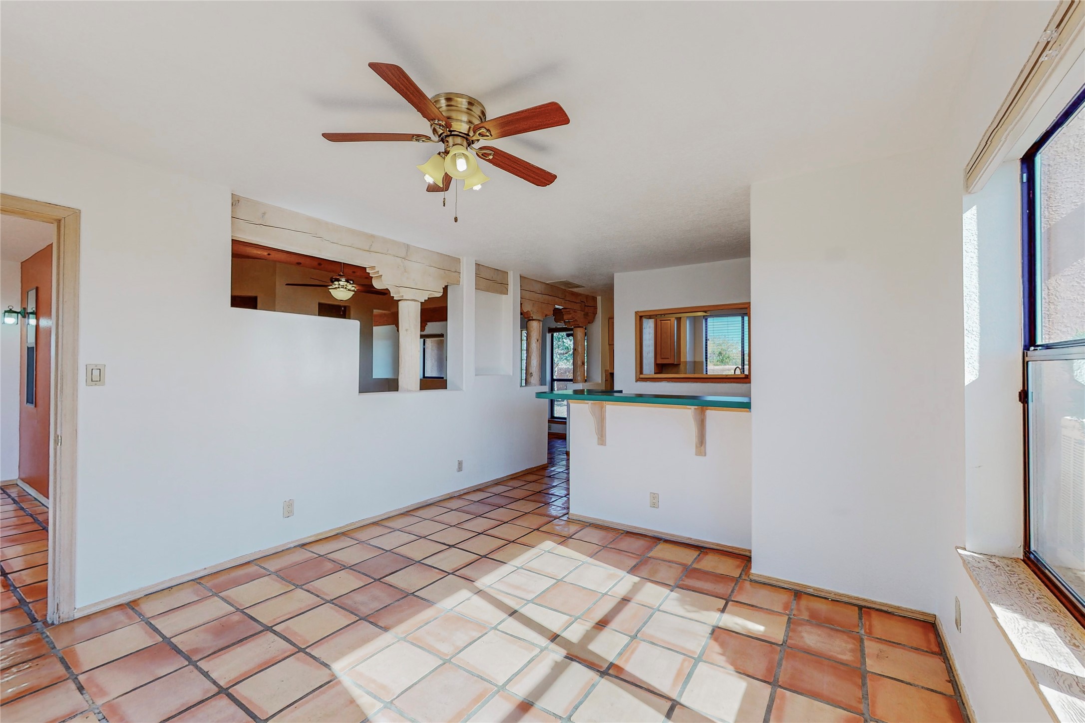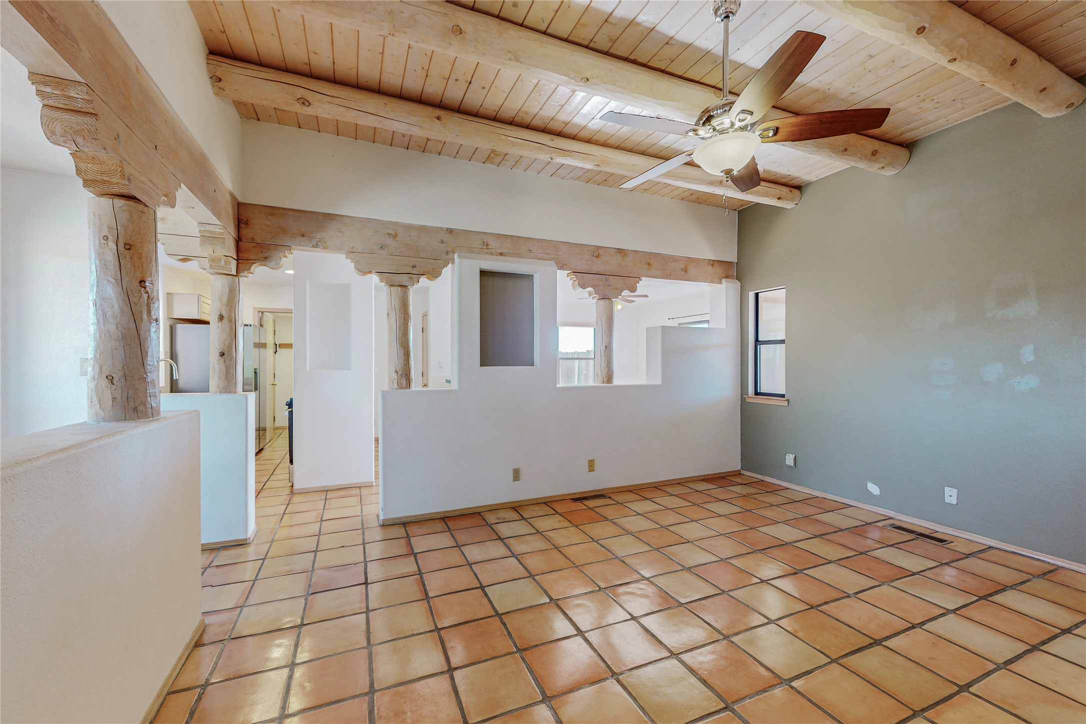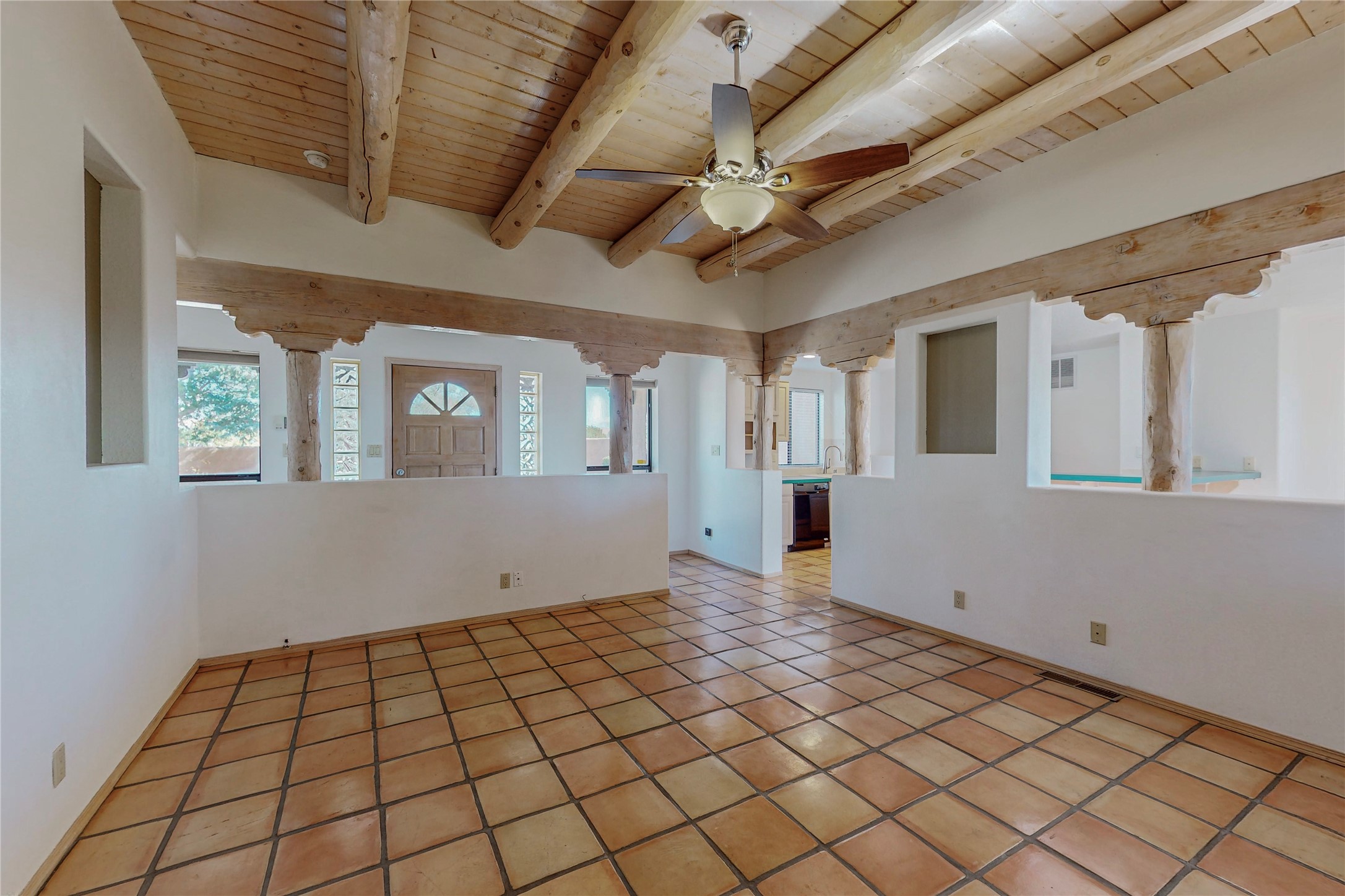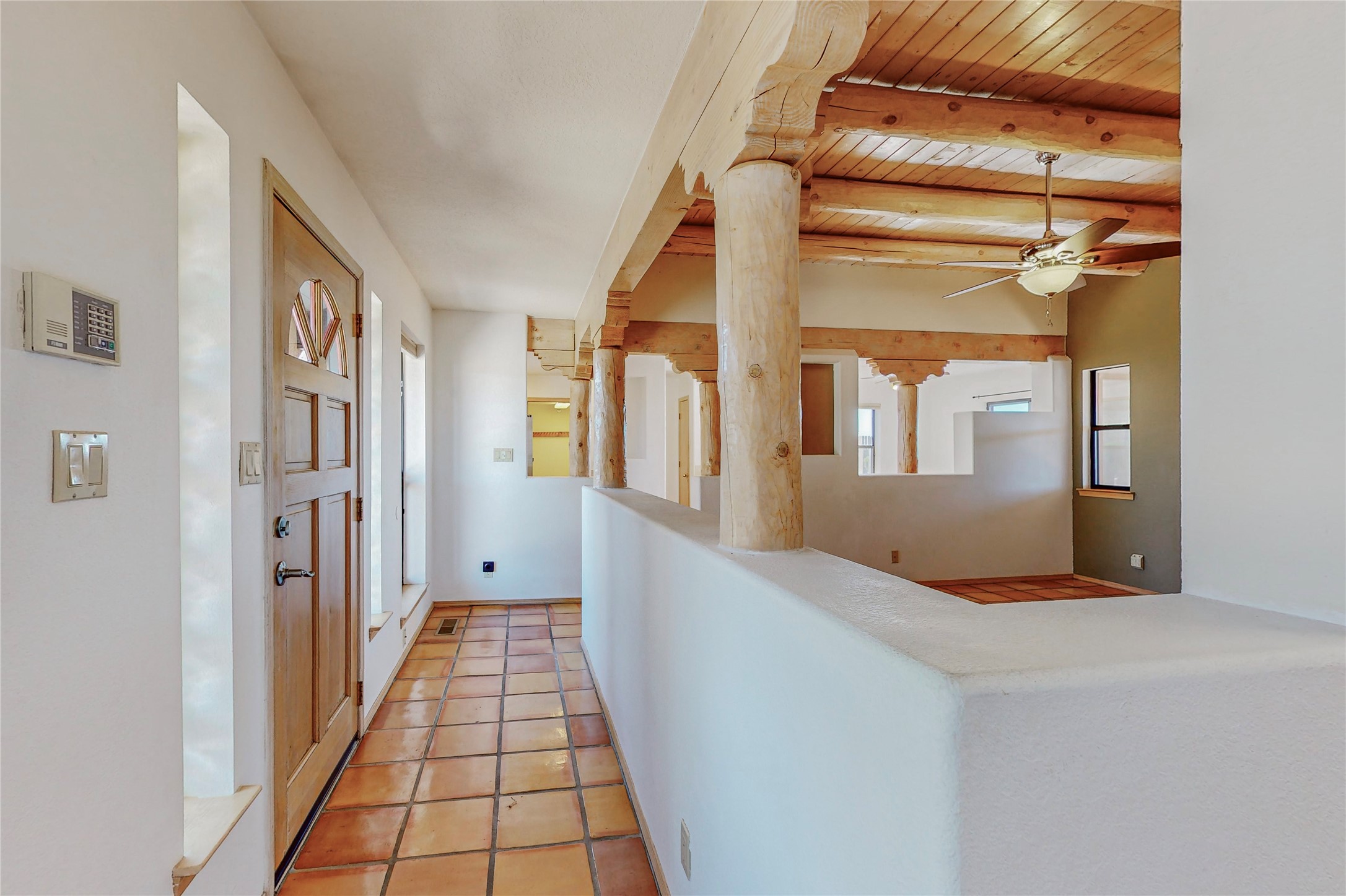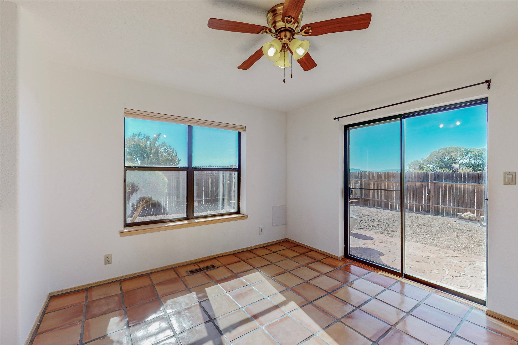COME TO OUR OPEN HOUSE TODAY,SUNDAY NOVEMBER 12TH BETWEEN 1-4 P.M.Embrace the Santa Fe lifestyle in this beautiful two-bedroom, two-bathroom home designed in the classic pueblo style, situated on a 1.59-acre lot. At the heart of this home, a wood-burning fireplace has played a central role in countless family game nights and festive Christmases. The interior has a New Mexican ambiance, with features such as Saltillo tile, viga ceilings, and tasteful turquoise accents. Additionally, the family room is graced with elegant wooden pillars that pay homage to the rich traditions of Southwestern design. The kitchen has newer stove and refrigerator, offering ample pantry space and a window overlooking a charming enclosed front yard. From the kitchen next area is the house dining area, and through a sliding glass door, you'll find another enclosed yard space. The house has a sunroom with full glass windows that welcome natural light into every corner of this home. Nestled within the community of Eldorado, you'll have access to the exclusive amenities offered by this neighborhood including swimming pool, basketball & tennis courts, community center, dog park, and more. Eldorado has well-maintained paved walking trails that provide a picturesque environment for residents. Be sure to explore the El Dorado Farmer's market, where you can discover fresh, locally sourced produce. This property is just minutes away from restaurants, shopping center, pet store, Library and bank in the Algora Shopping center. Join the vibrant community of Eldorado, which was recognized as the #1 Best Place to Live in Santa Fe County by Niche in 2022.