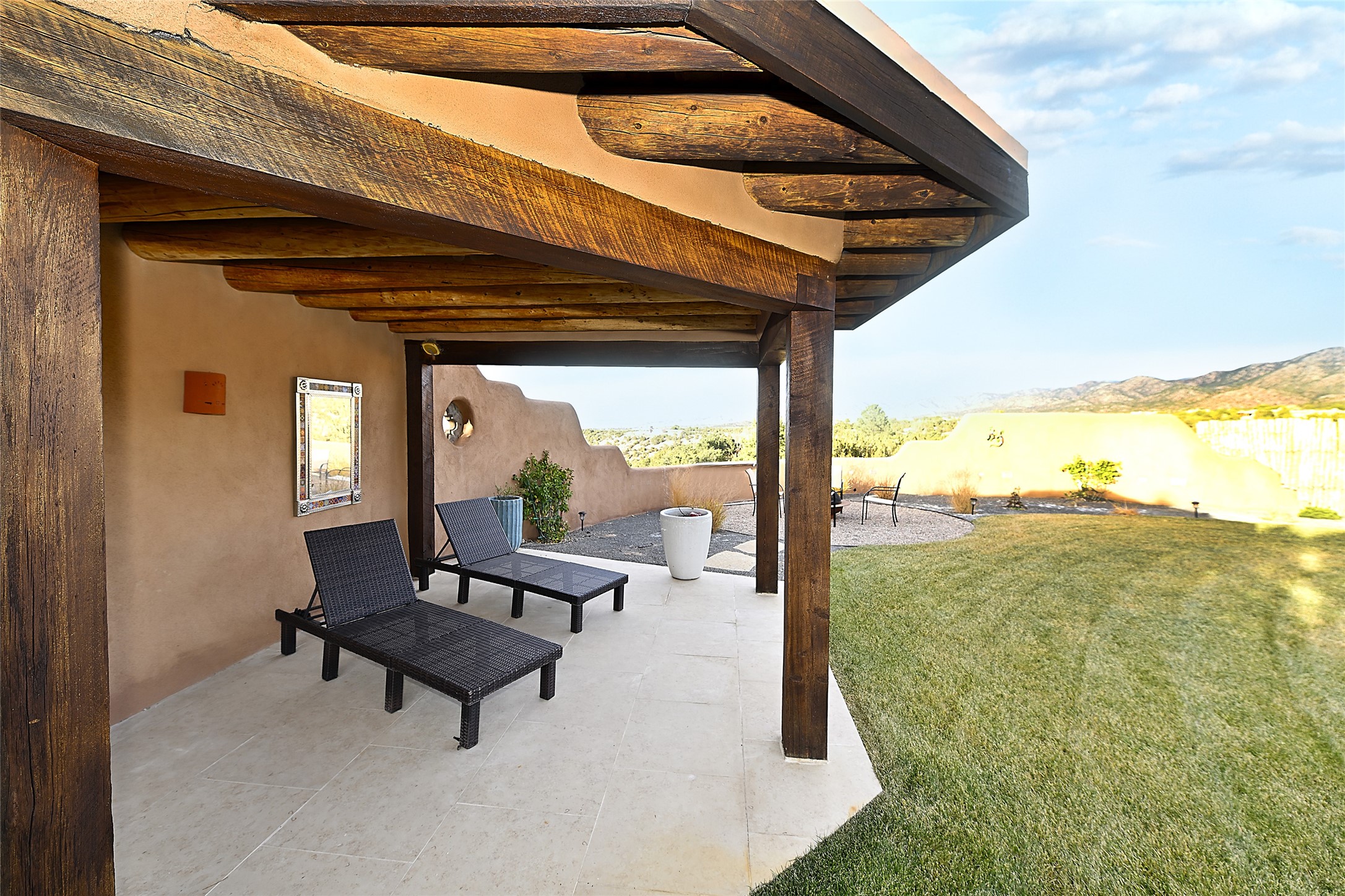 House and adjacent lot being sold together. Stunning Tesuque property...this beautiful 6 acre estate featuring a Bill Lumpkins home from 1972 has been completely remodeled under the direction of Hoopes + Associates ( Andrea Caraballo) and Chandler Prewitt Interiors. Perfectly located for rustic privacy yet only 20 minutes from town, 5 minutes to the amenities and restaurants of the Four Seasons, and ten minutes from the charming community center of Tesuque with its galleries and restaurants. The 3167 square foot two story main house features 3 bedrooms and 3 bathrooms with brick floors, vigas, chef's kitchen, all new windows and doors and some of the most INCREDIBLE VIEWS Santa Fe has to offer. A charming 286 square foot one room casita, separate 230 square foot studio plus a 4 car garage will give any buyer the options...privacy...and flexibility to enjoy a Santa Fe compound like no other! A separate pool area with a portal completes this amazing property. The premises have been completely landscaped with new walkways, irrigation system, ,trees, flowers, and sweeping lush lawns...this property is an exquisite example of Santa Fe style at its finest ! 5.3 acre adjacent lot is also available for sale!